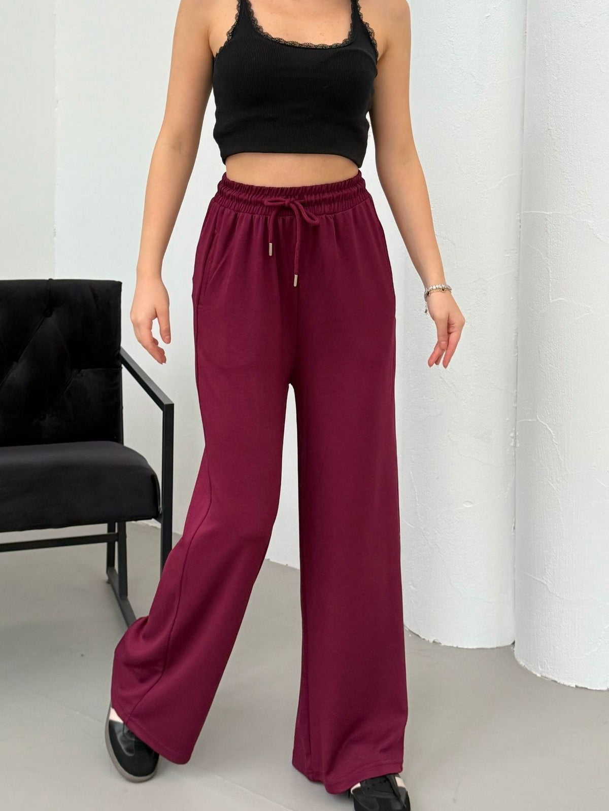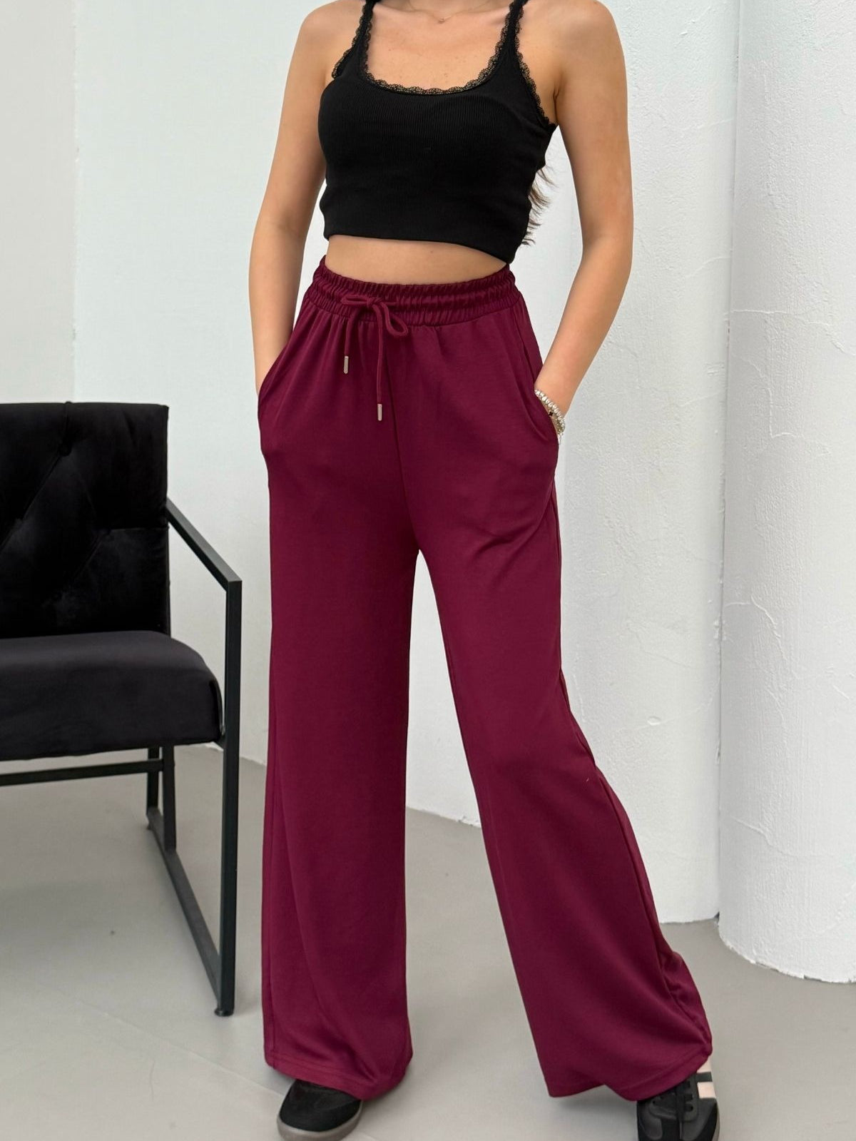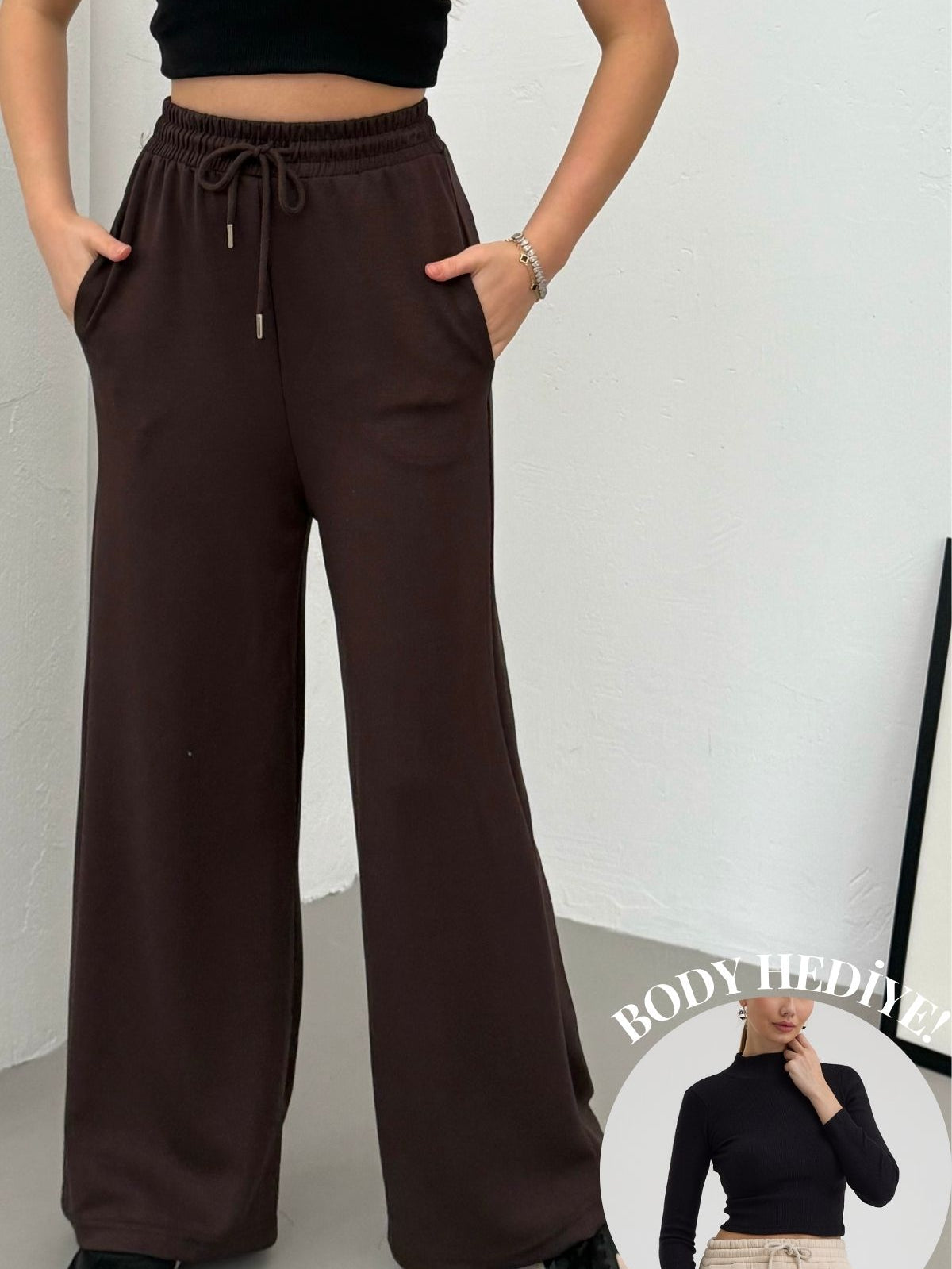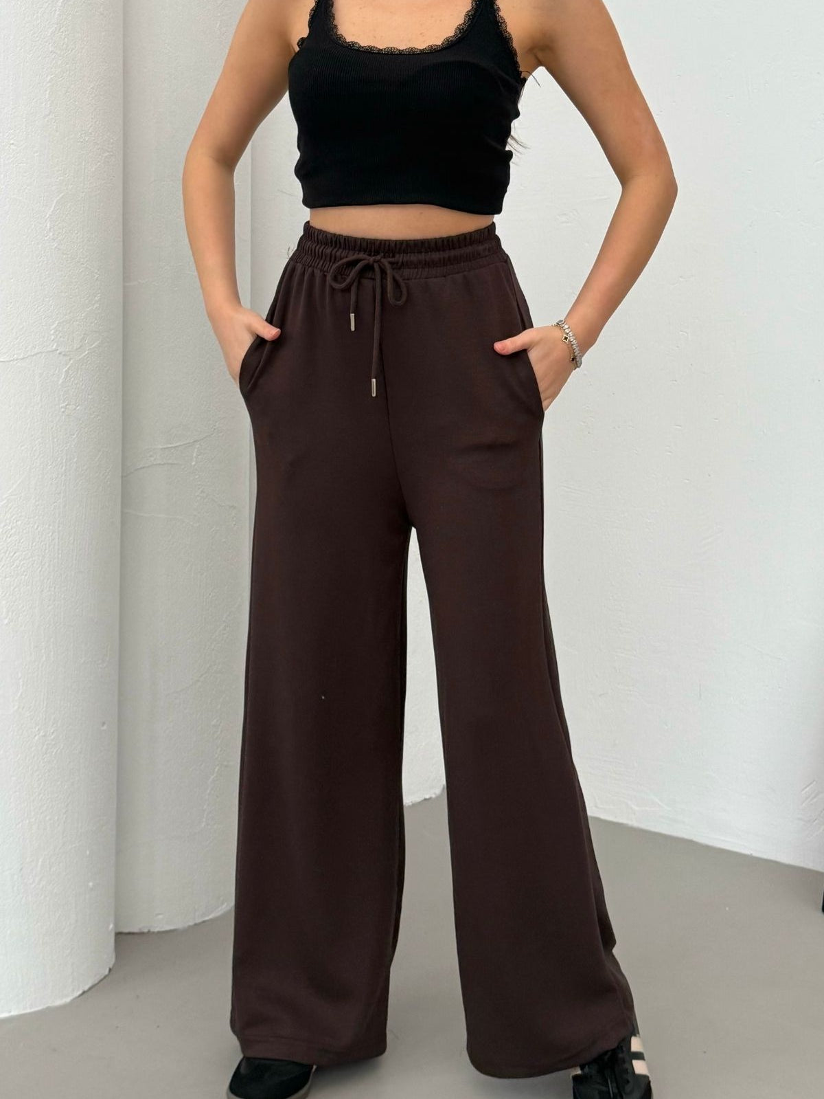 Yüksek Bel Cepli Rahat Form Modal Touch Geniş Paça Kadın Eşofman Alt