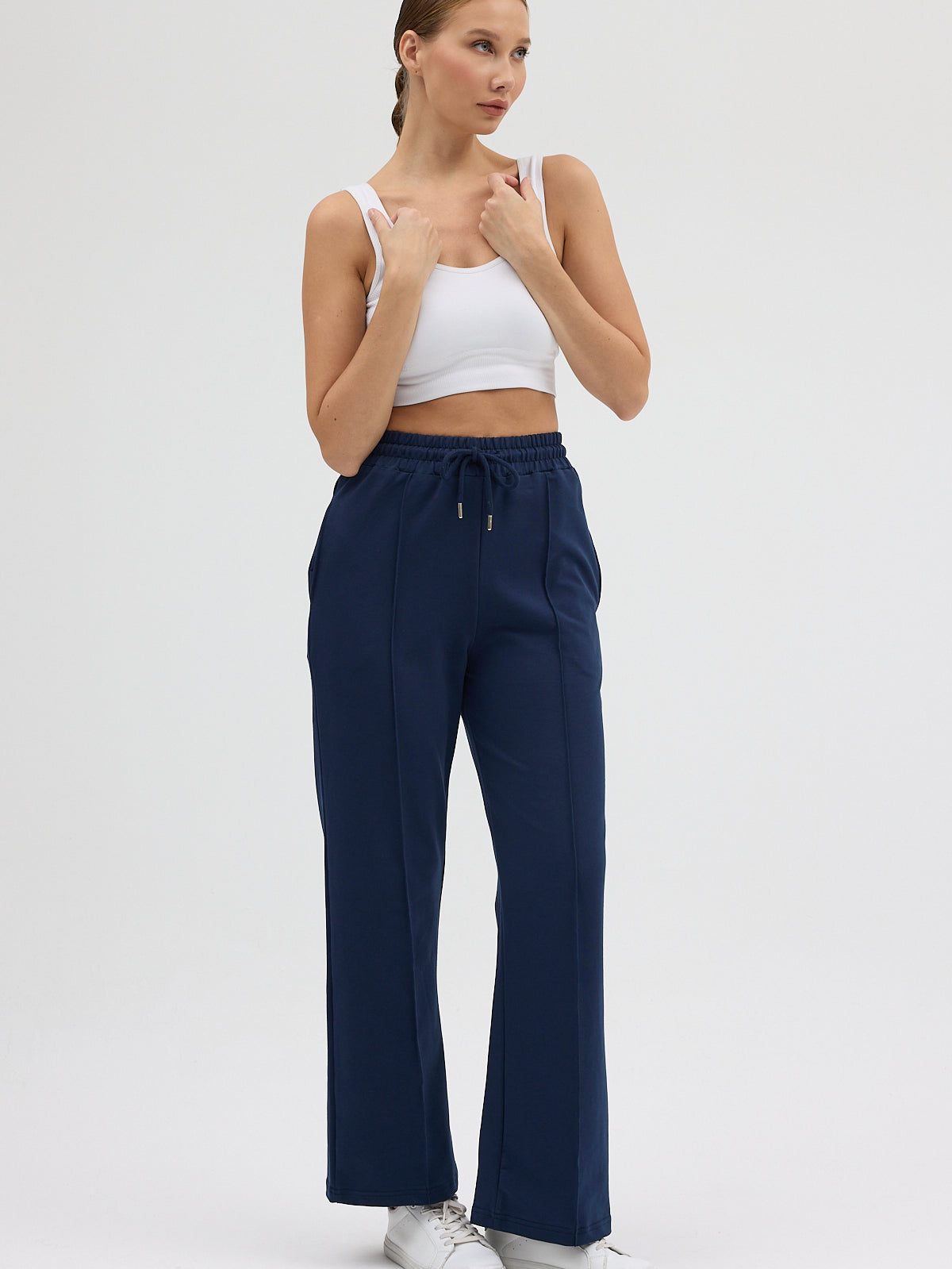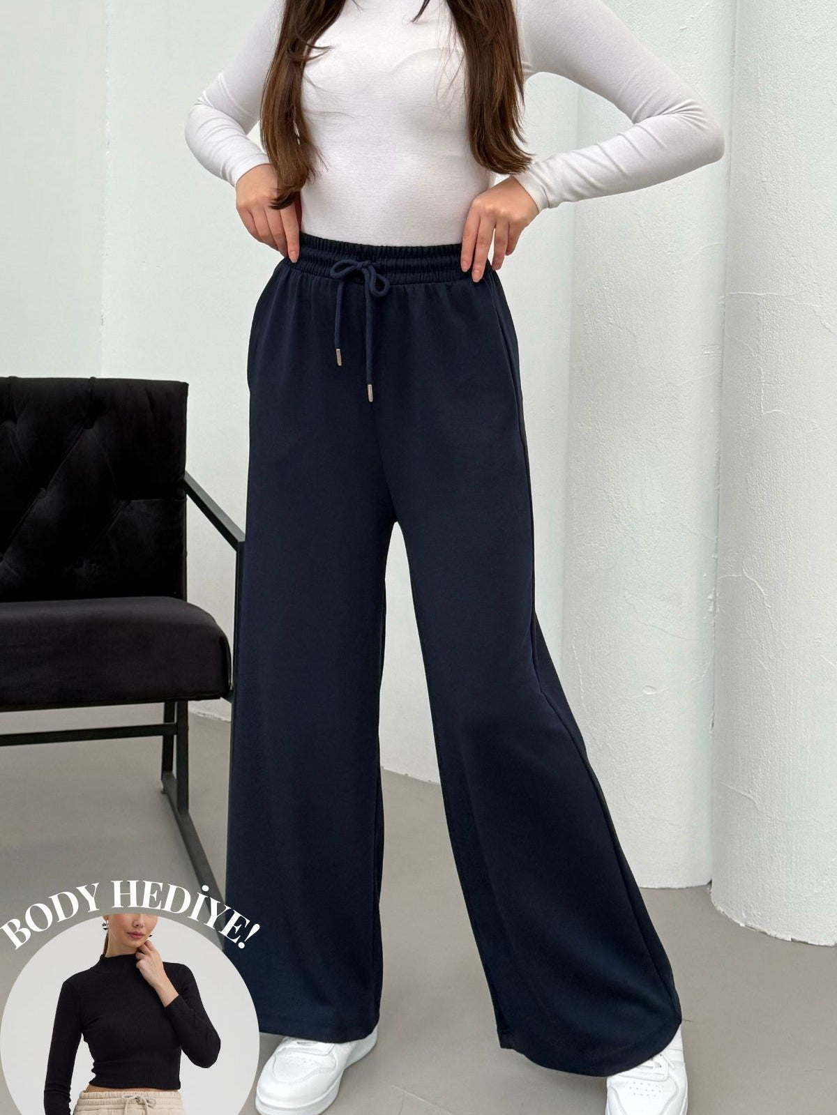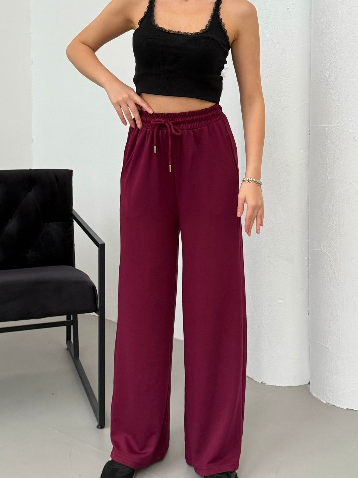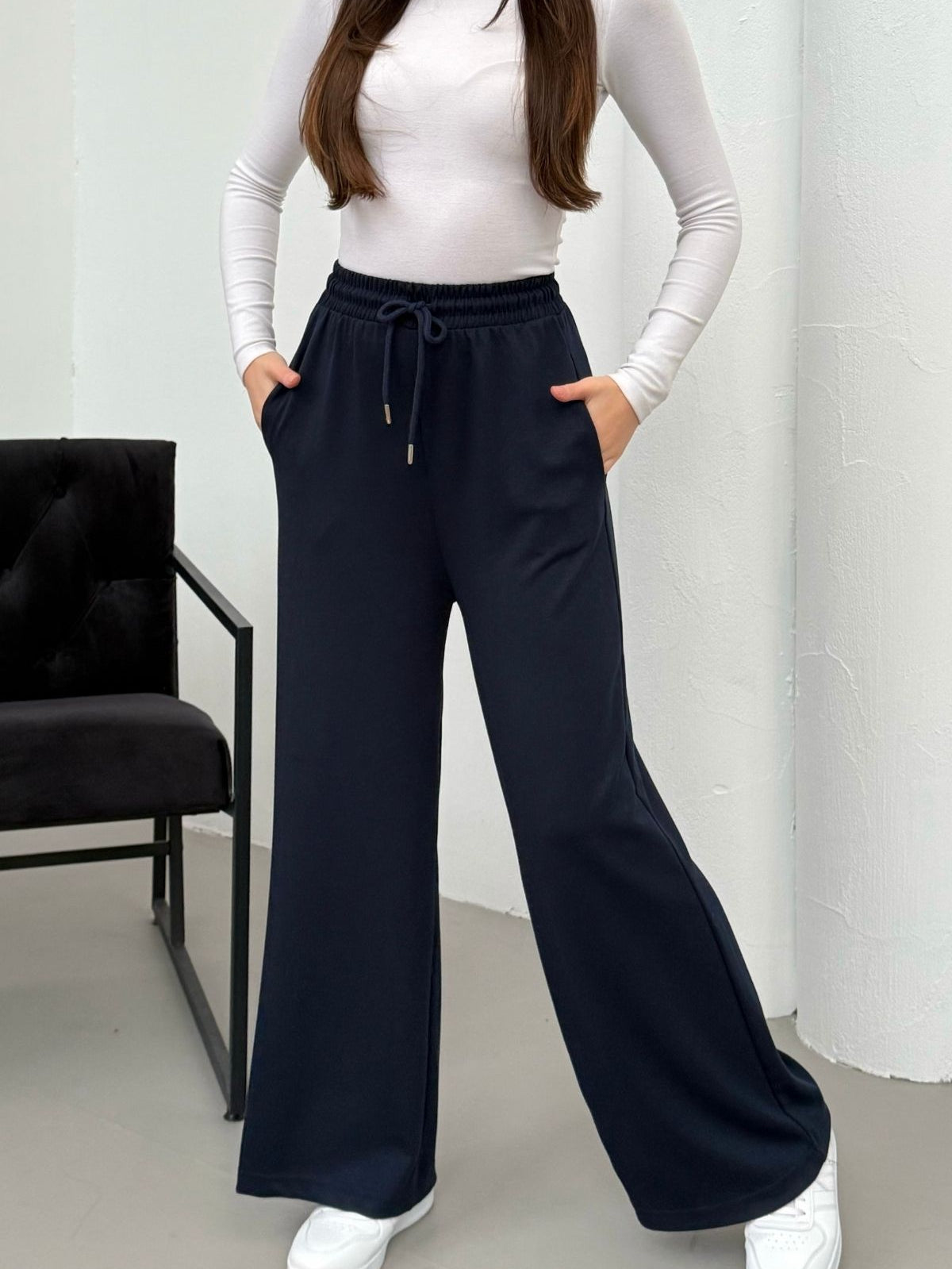 Yüksek Bel Cepli Rahat Form Modal Touch Geniş Paça Kadın Eşofman Alt