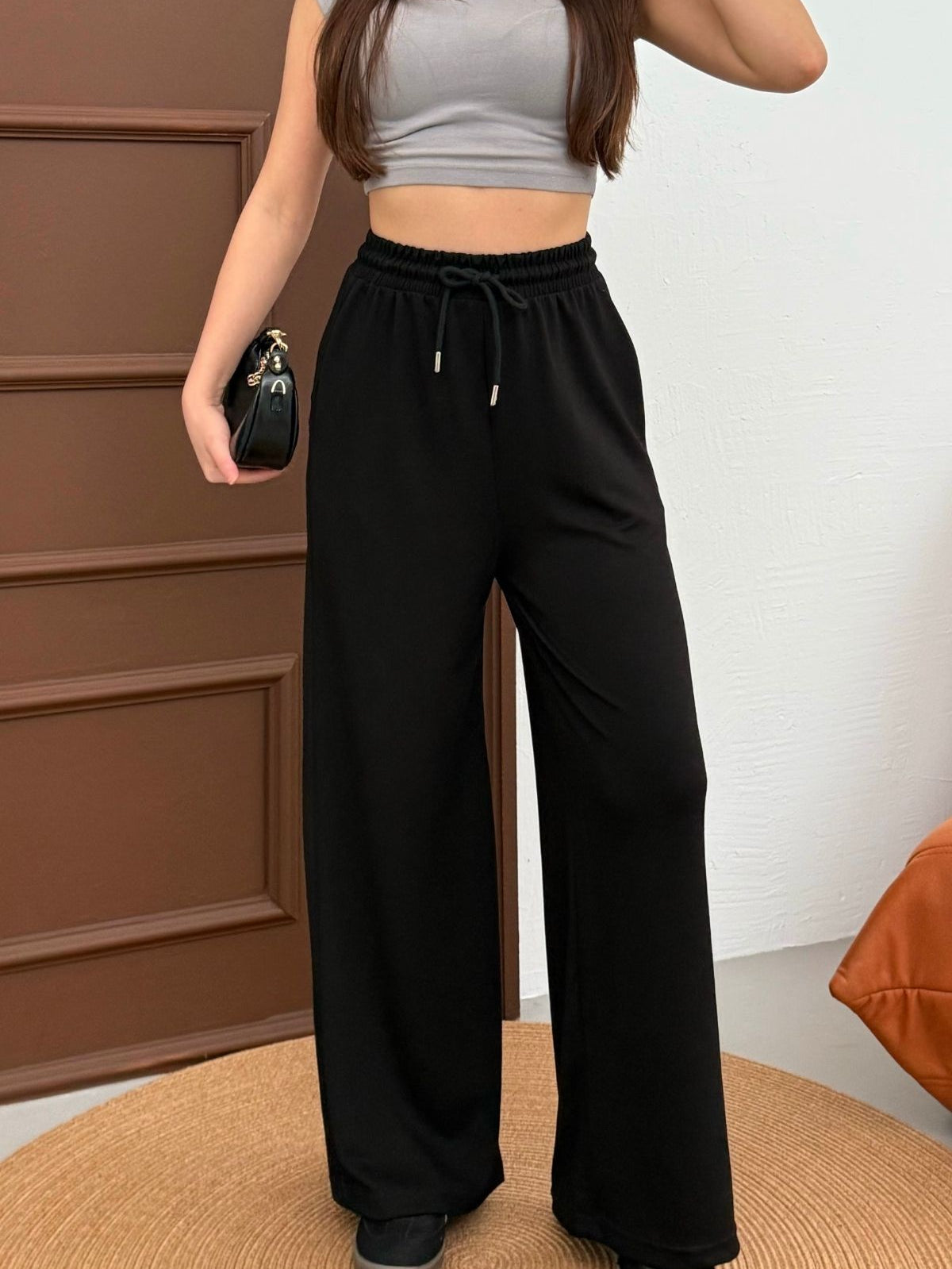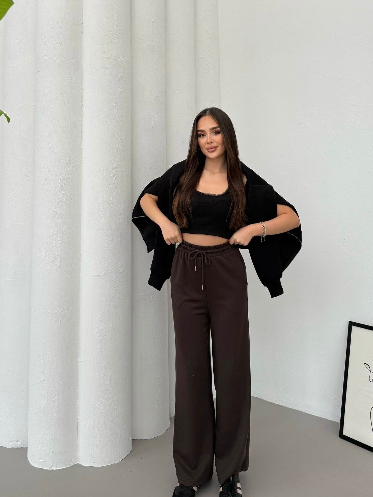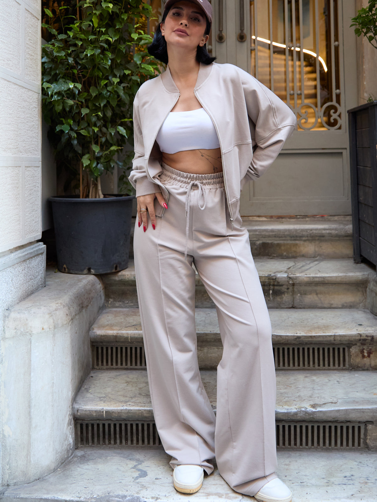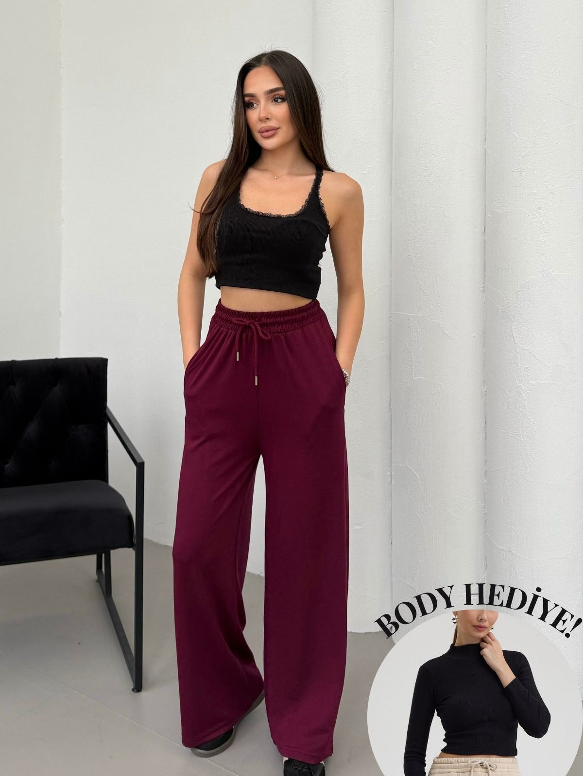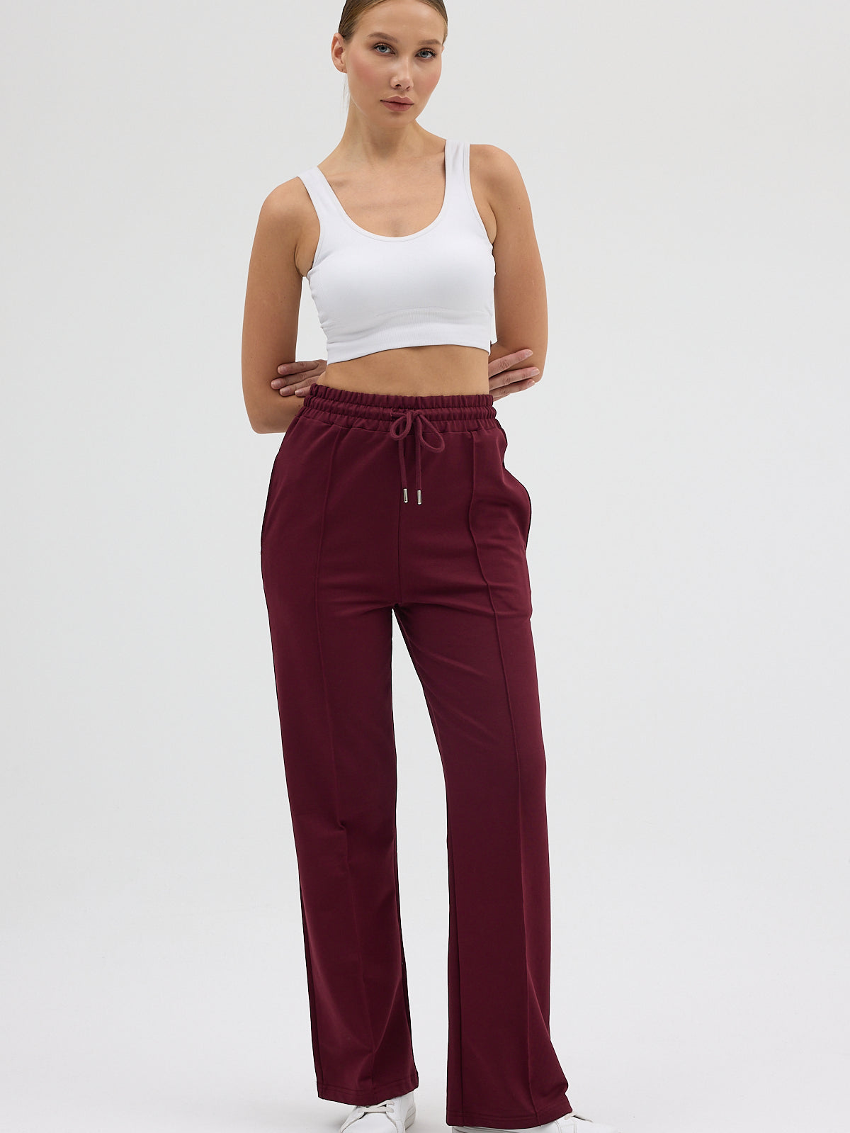 Yüksek Bel Cepli Rahat Form Modal Touch Geniş Paça Kadın Eşofman Alt