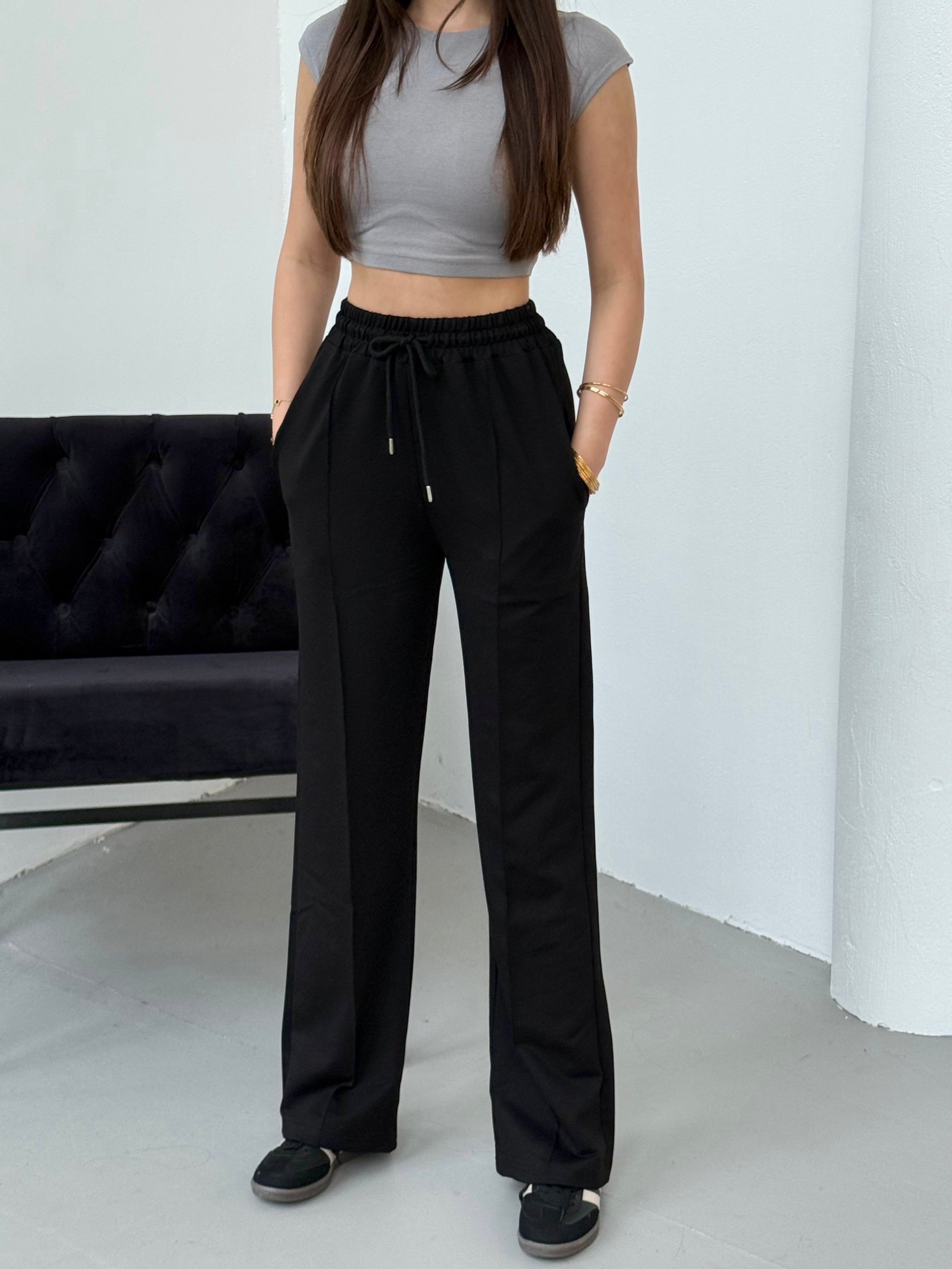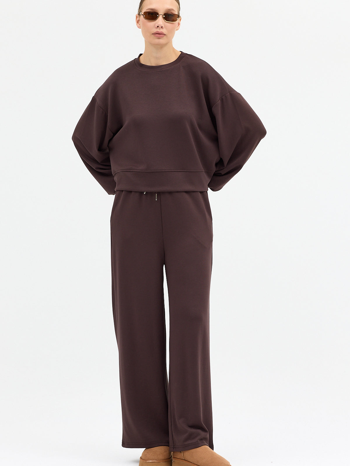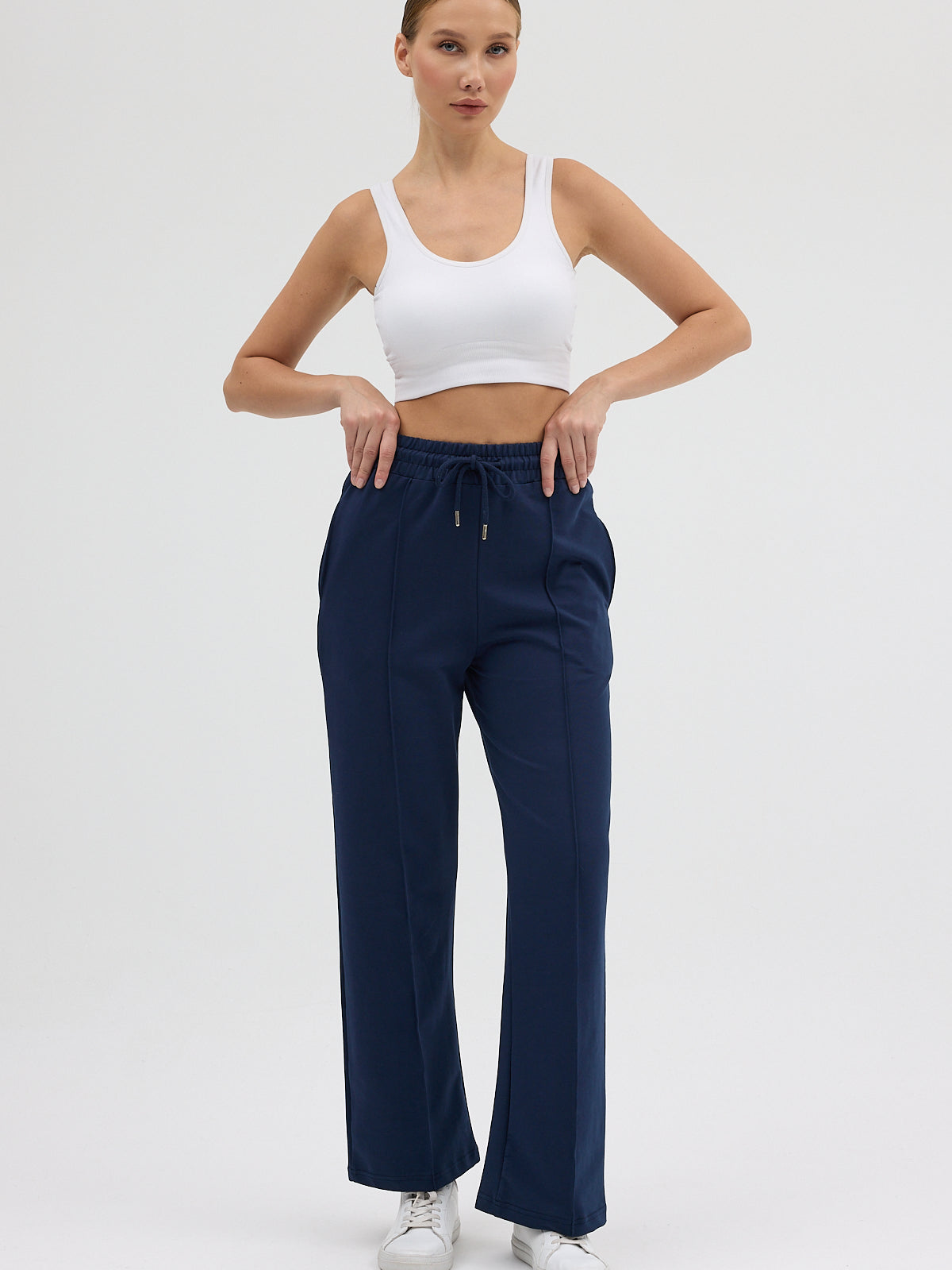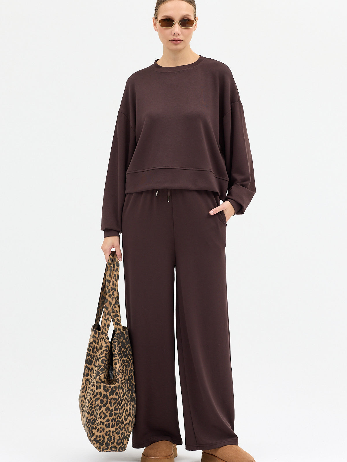 Yüksek Bel Cepli Rahat Form Modal Touch Geniş Paça Kadın Eşofman Alt