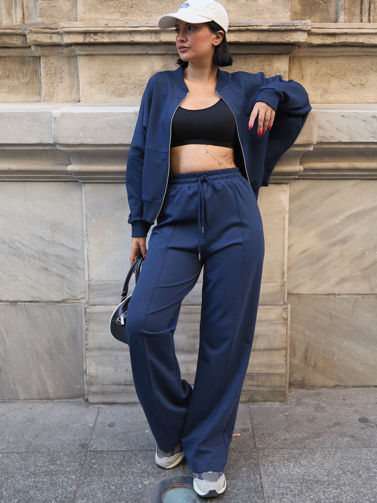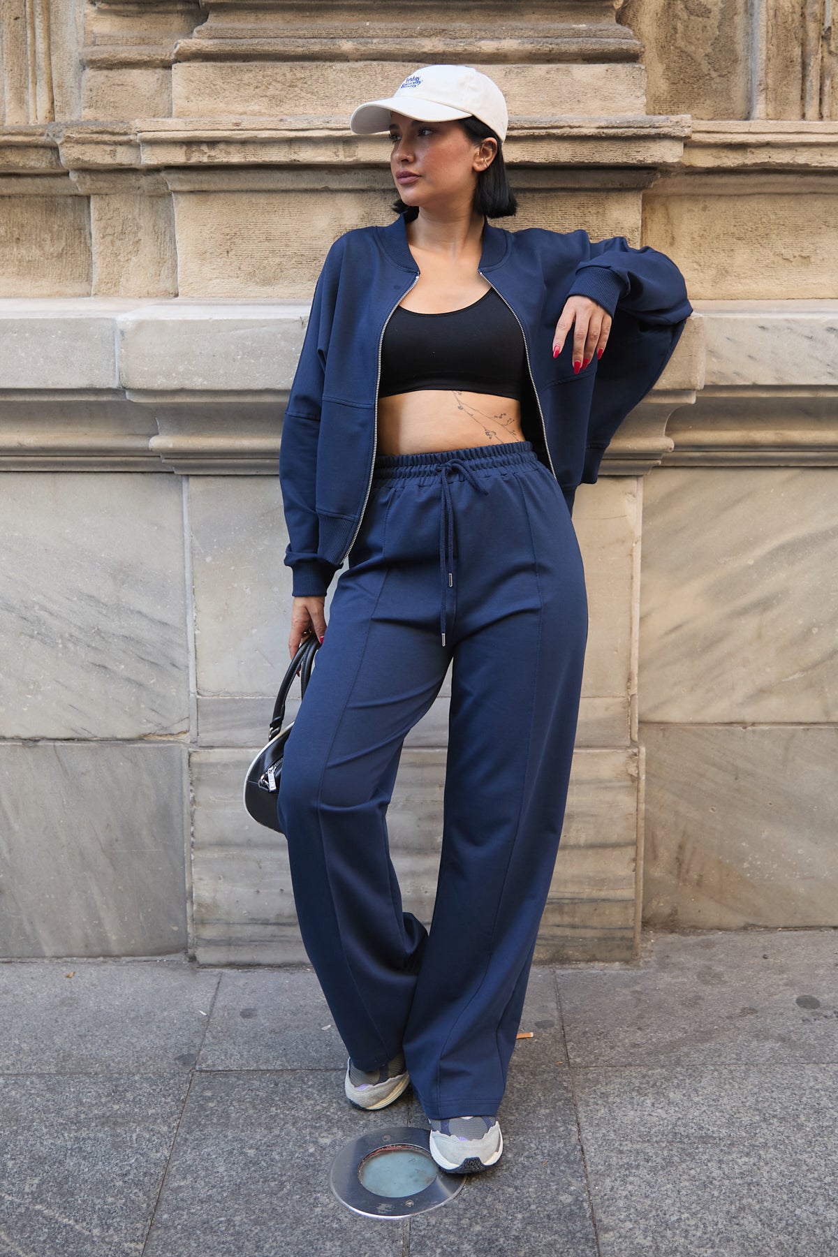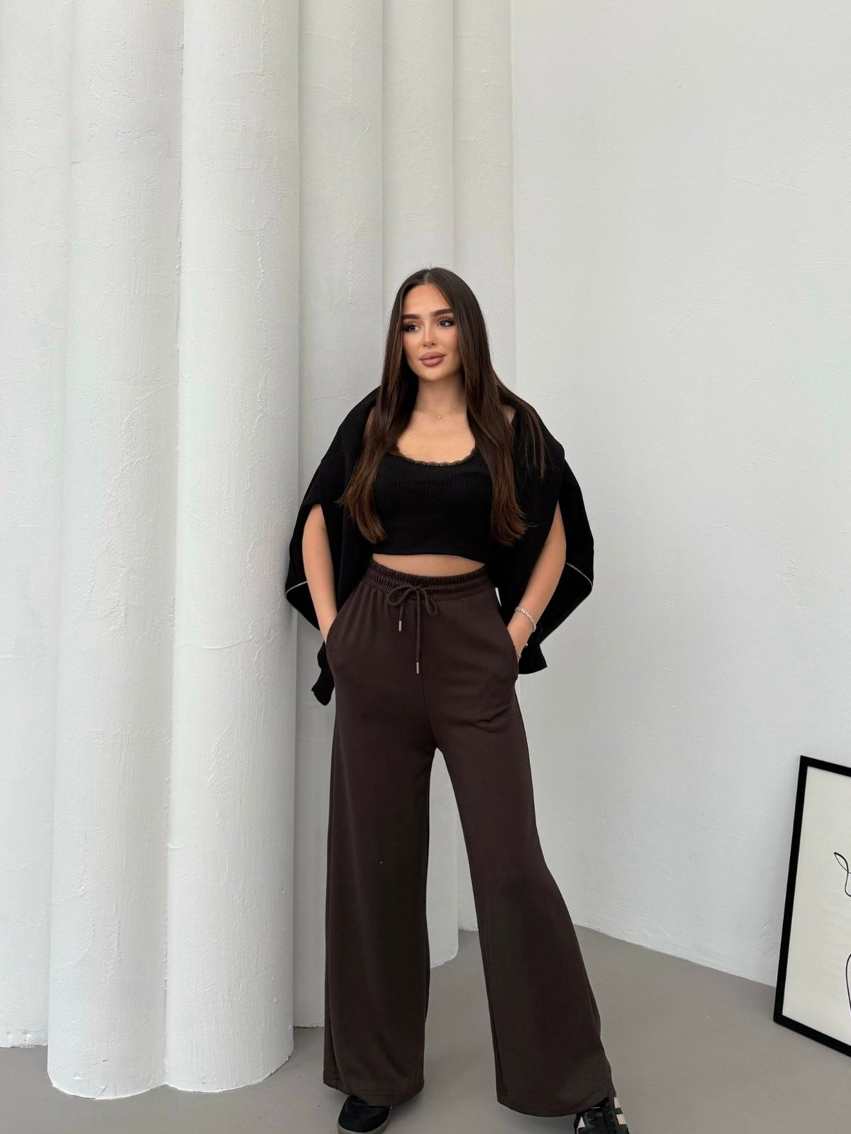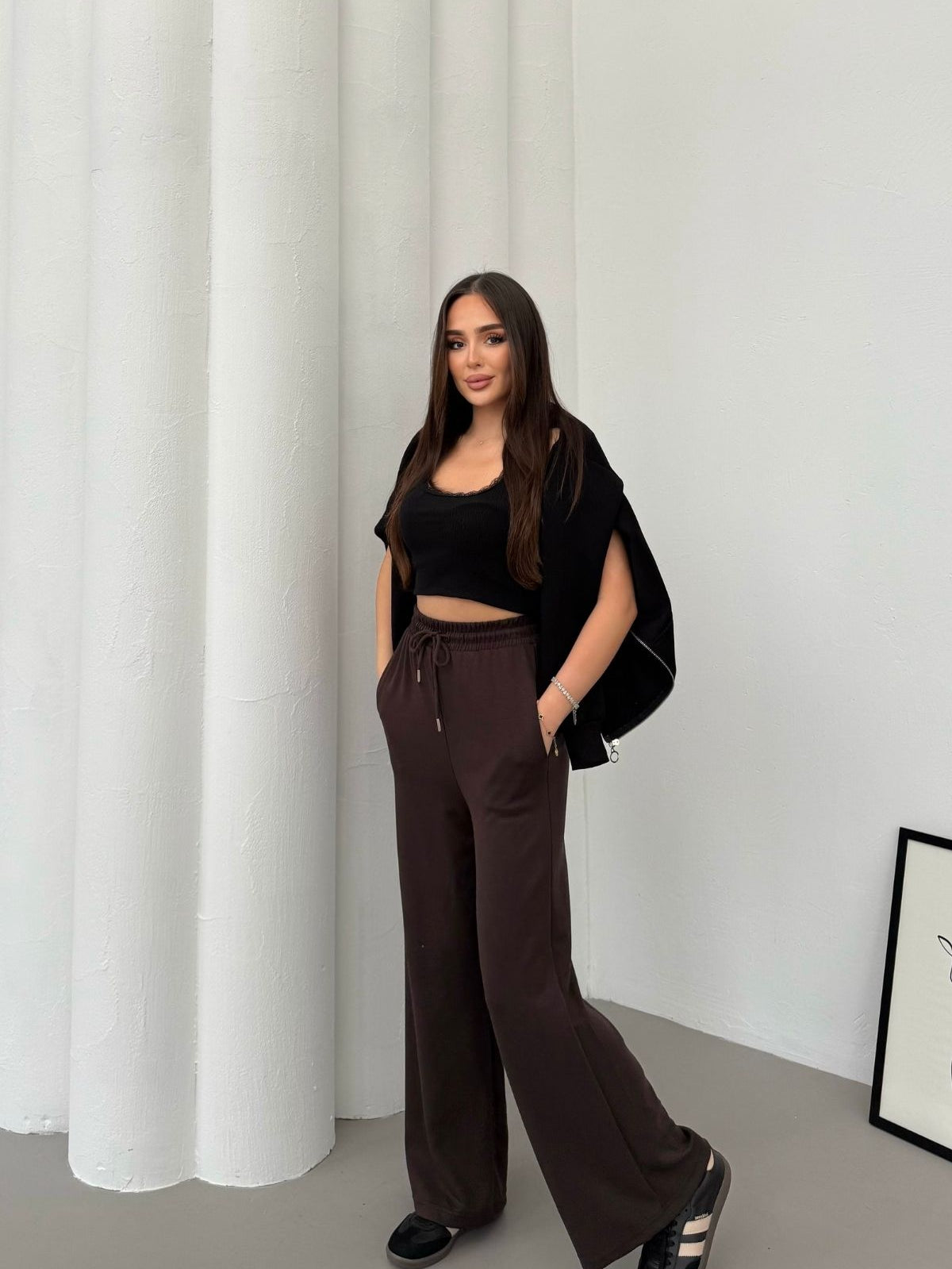 Yüksek Bel Cepli Rahat Form Modal Touch Geniş Paça Kadın Eşofman Alt