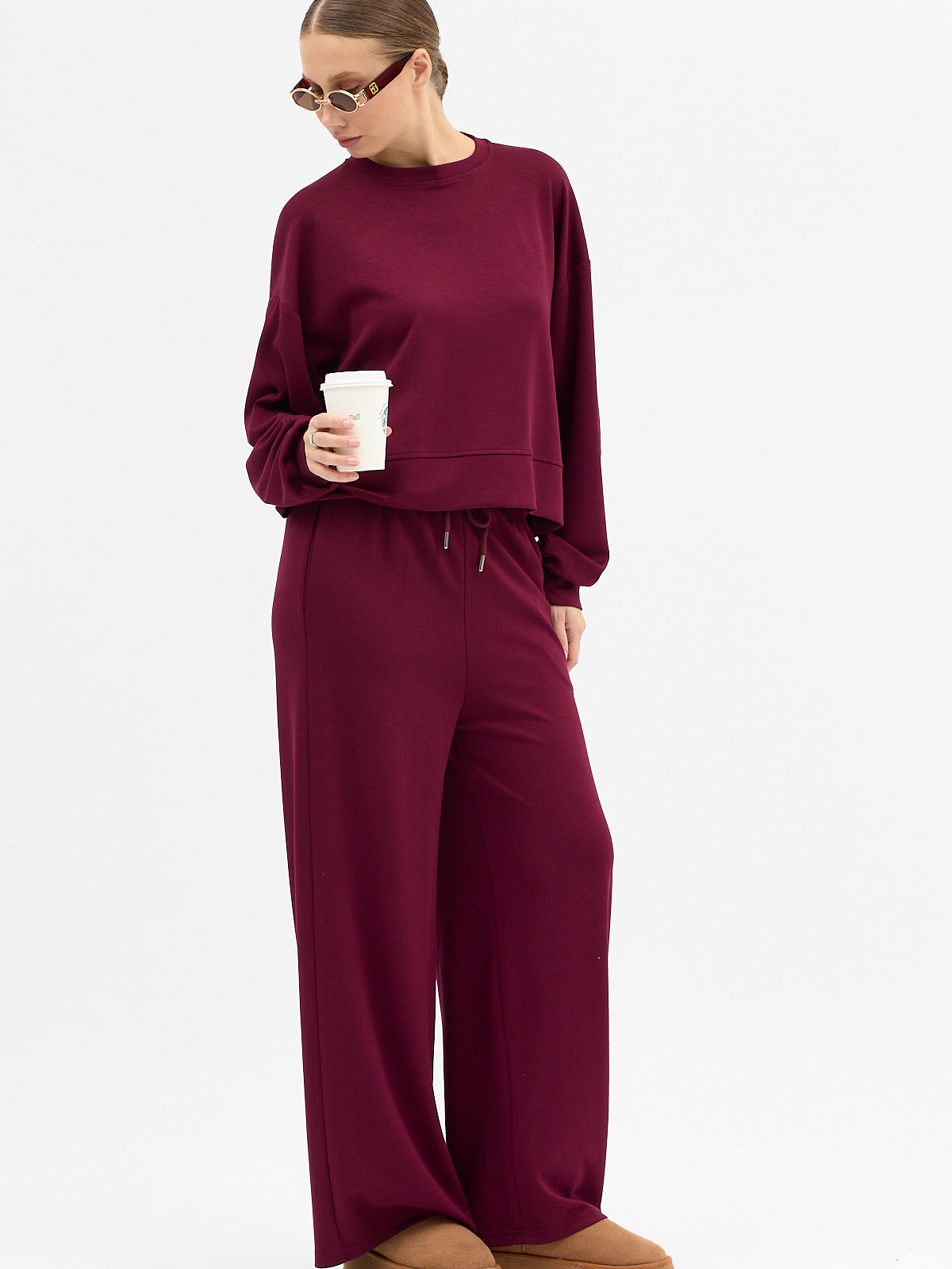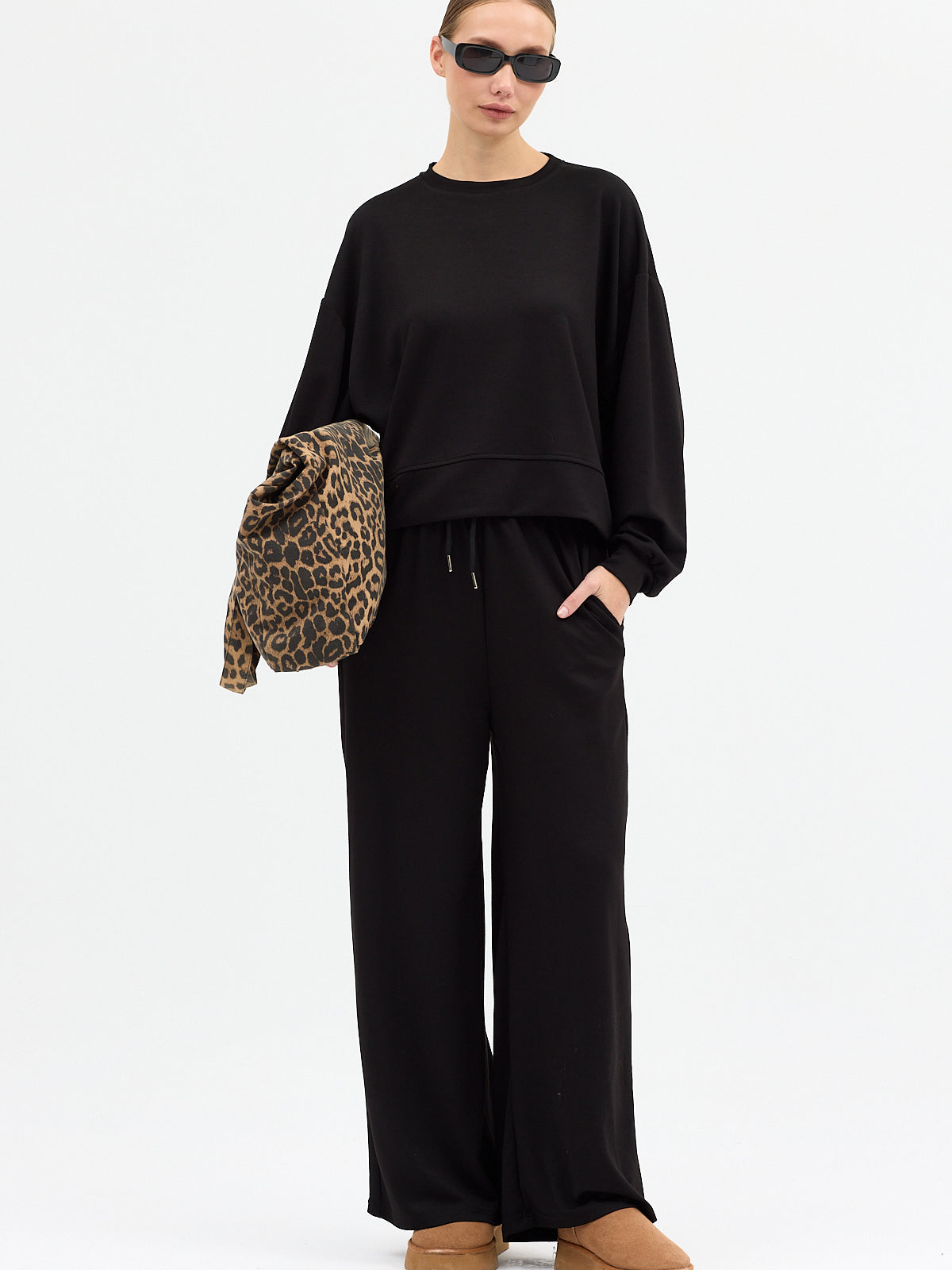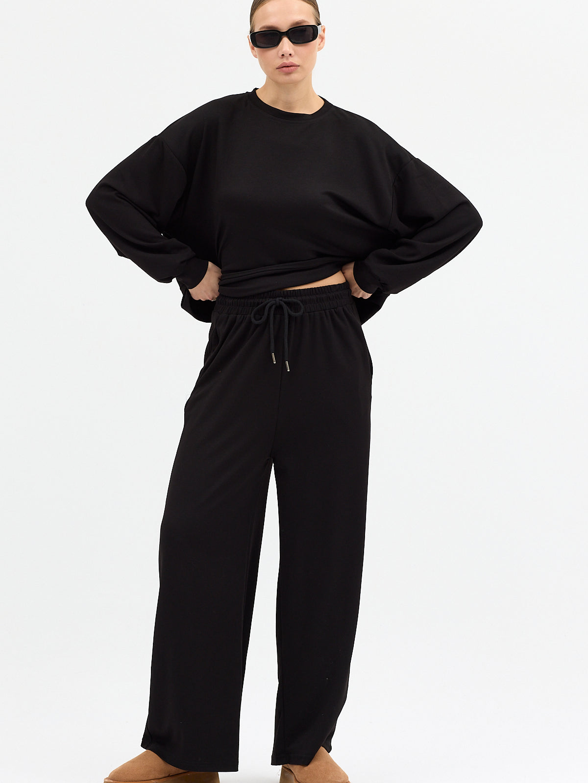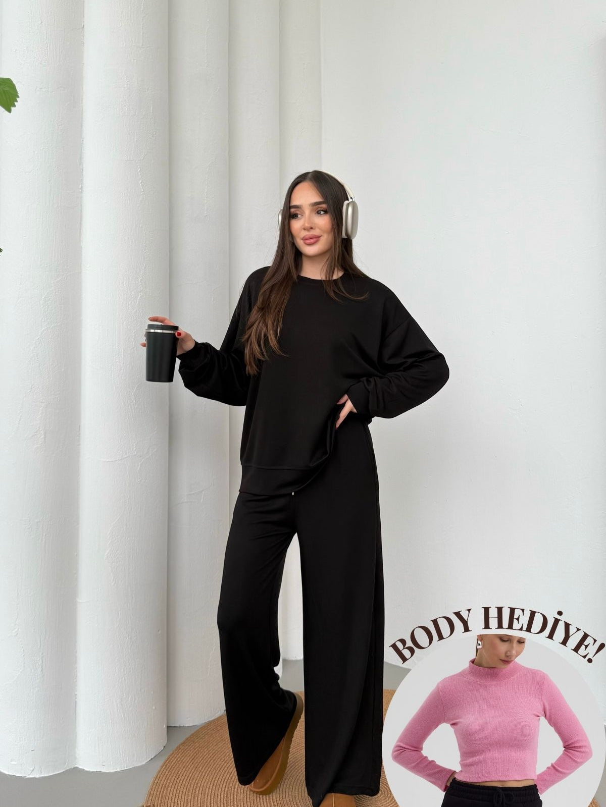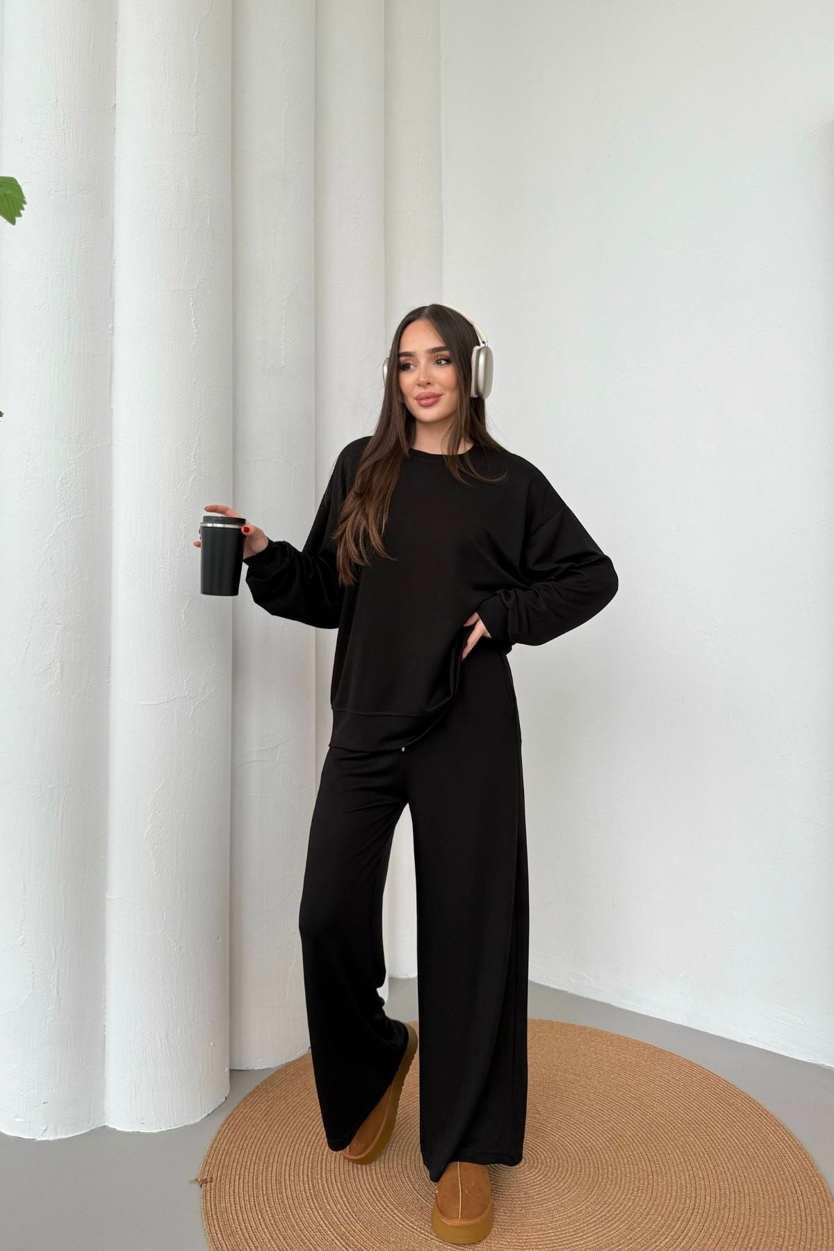 Basic Yumuşak Premium Kumaş Uzun Beli Lastikli Bol Paça Modal Alt-Üst Takım