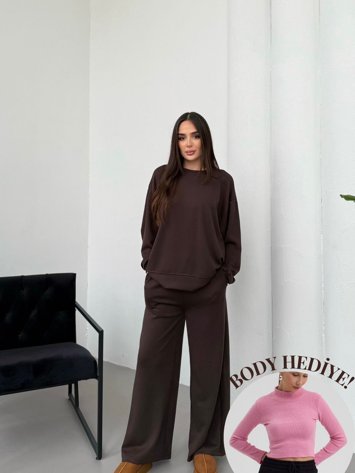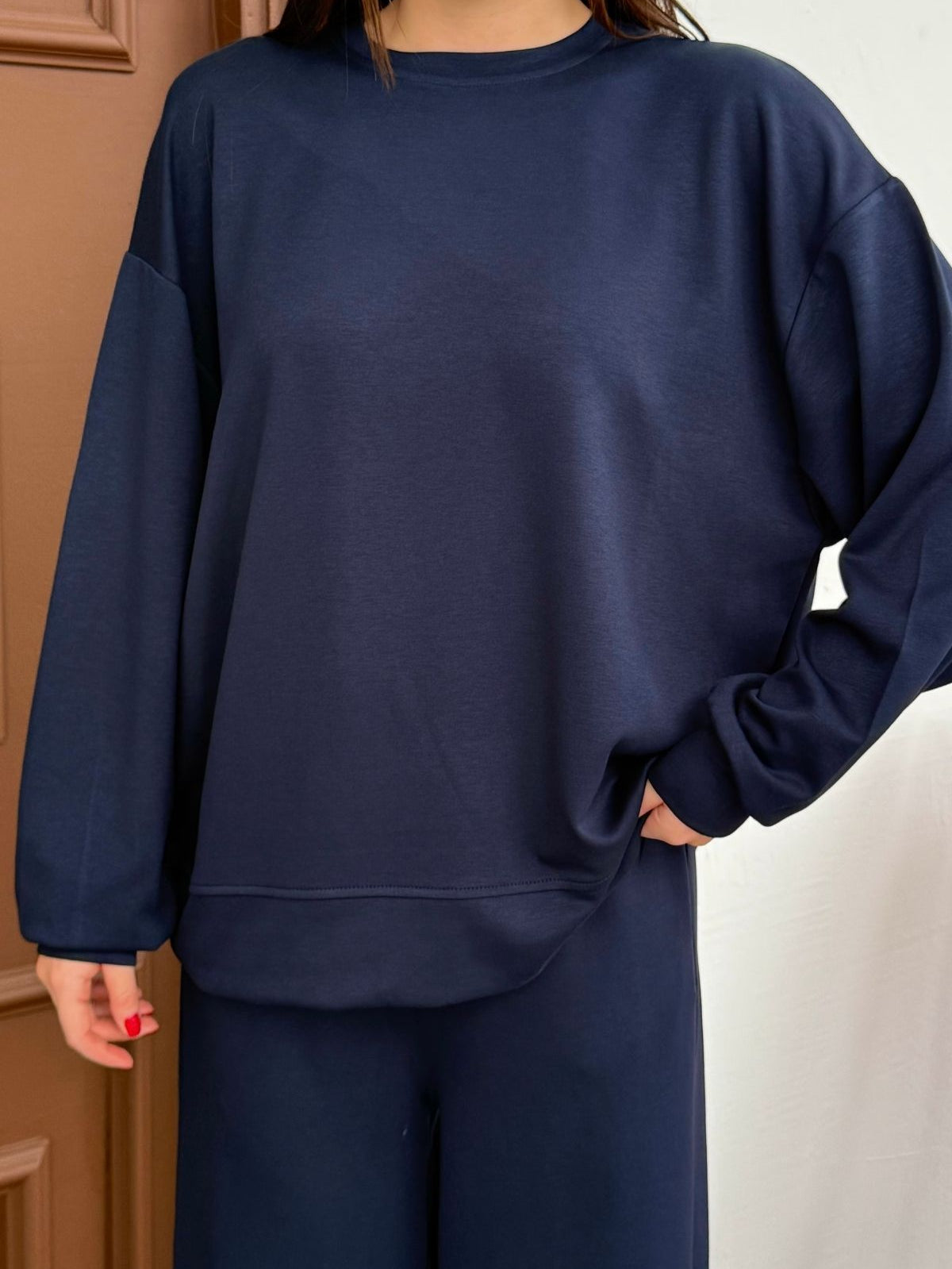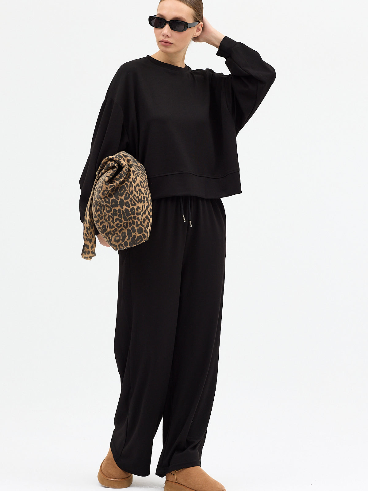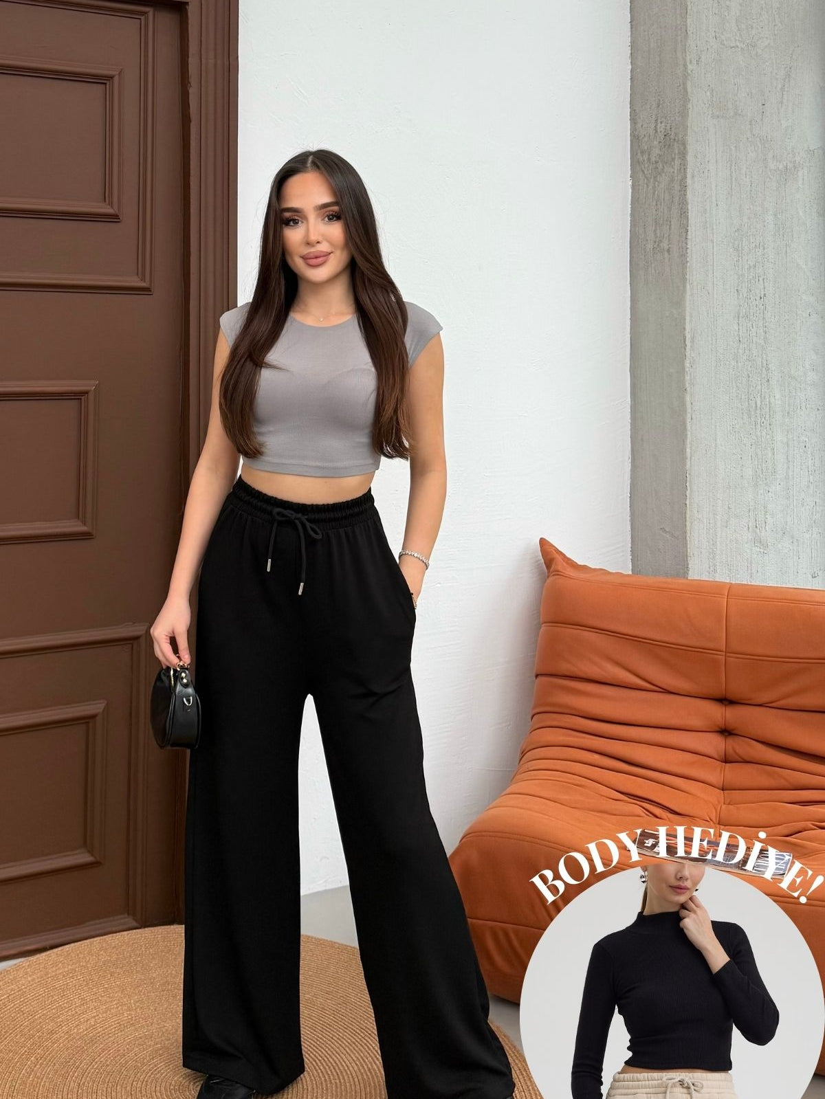 Basic Yumuşak Premium Kumaş Uzun Beli Lastikli Bol Paça Modal Alt-Üst Takım