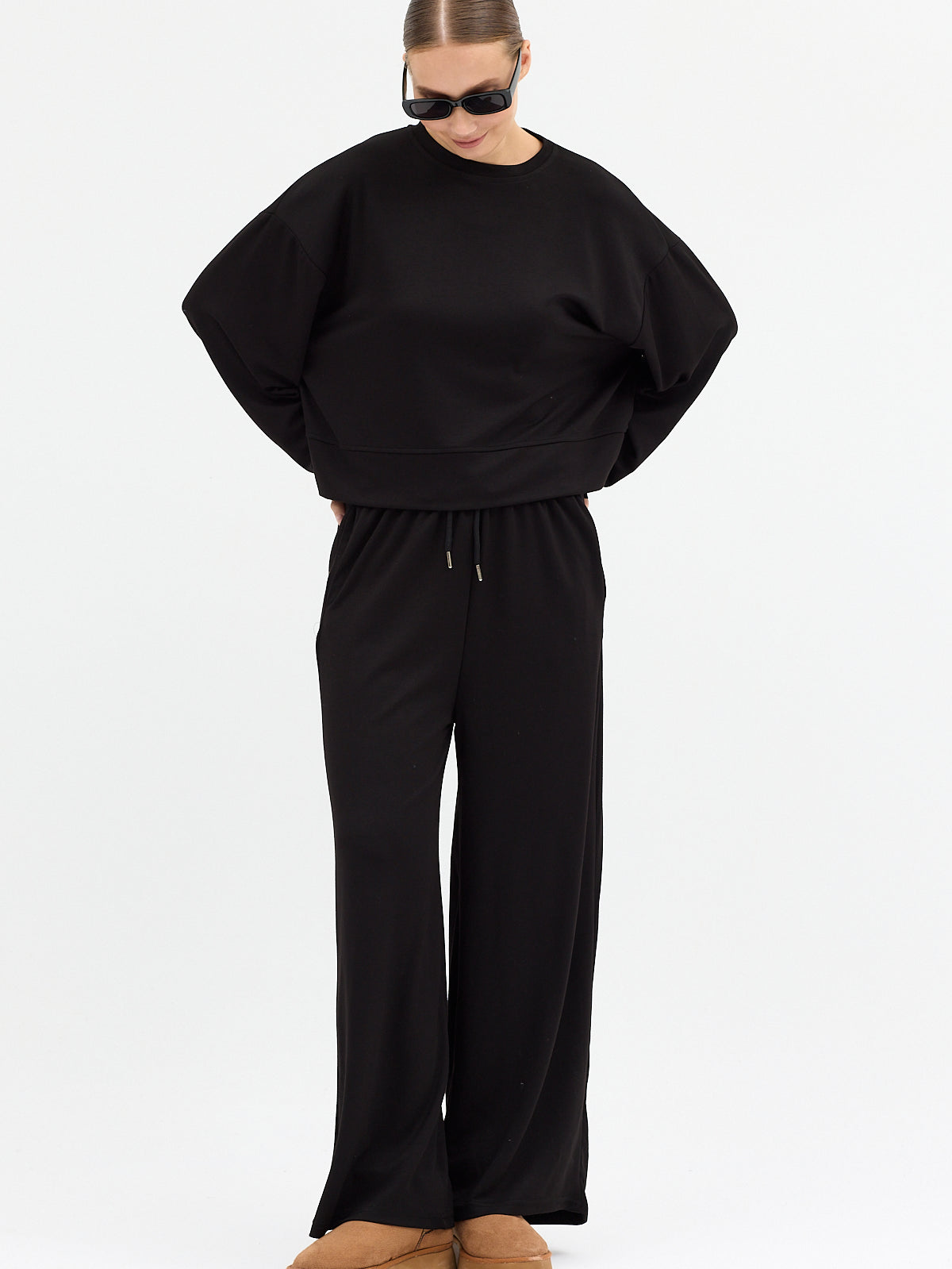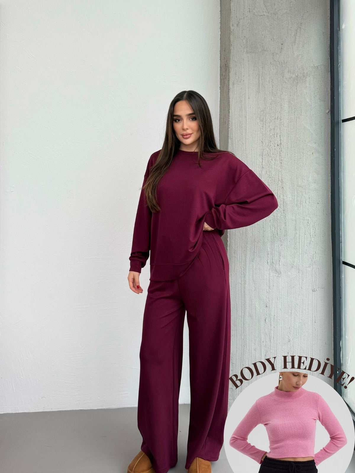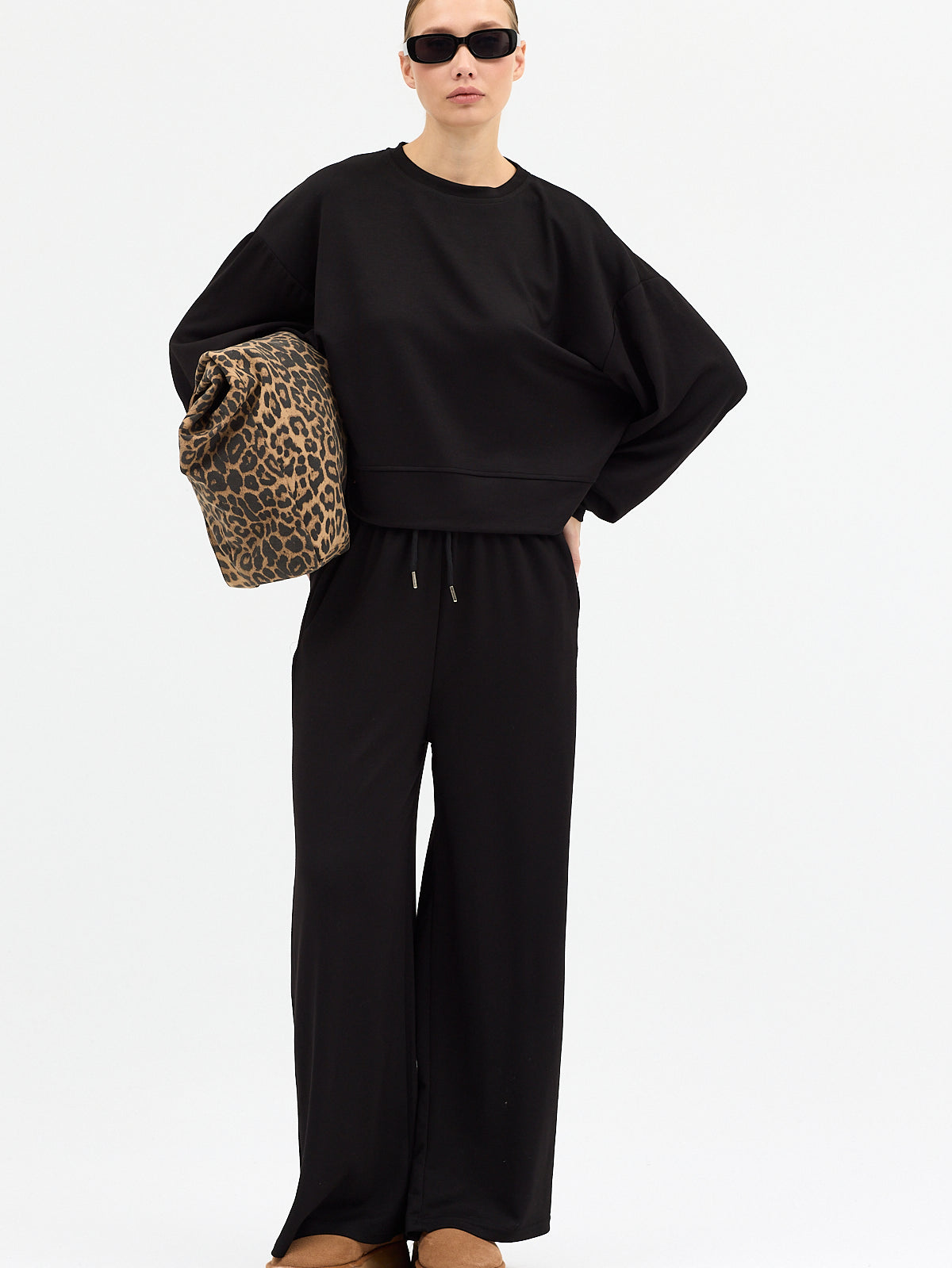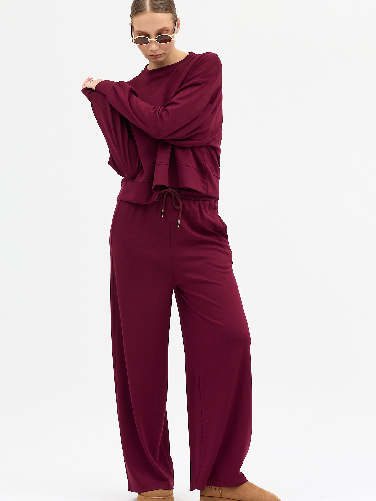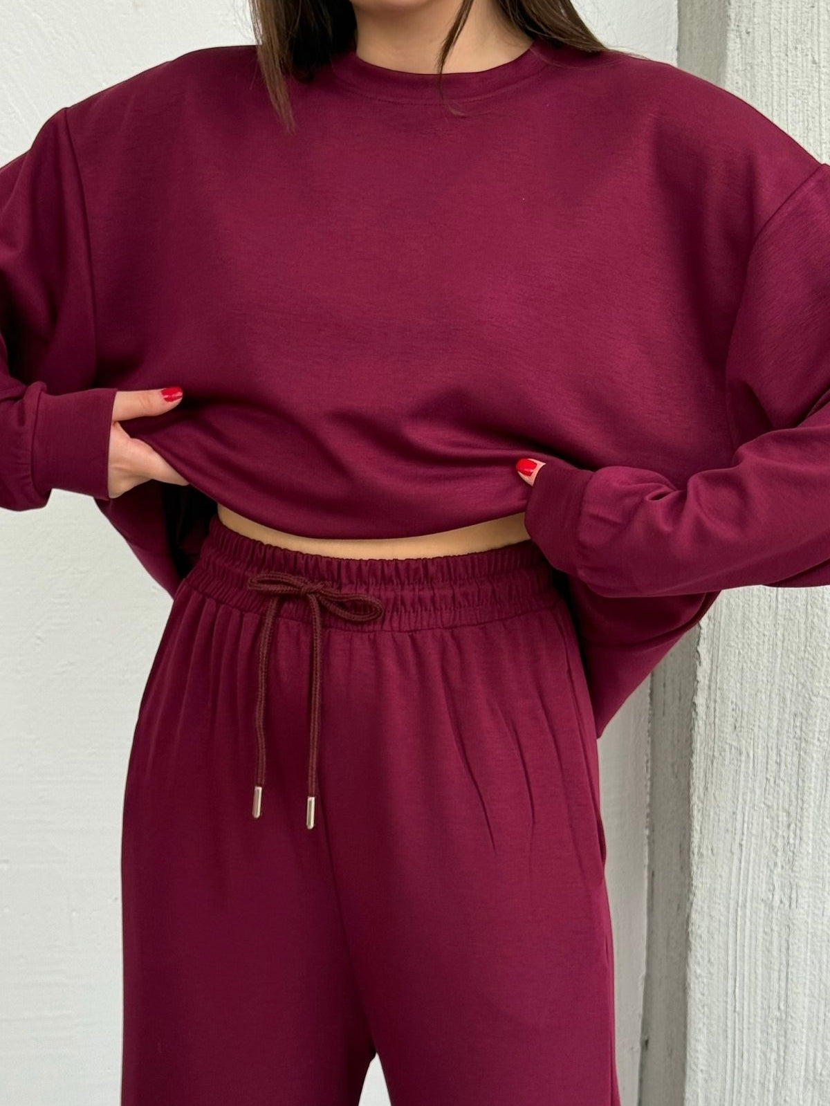 Basic Yumuşak Premium Kumaş Uzun Beli Lastikli Bol Paça Modal Alt-Üst Takım