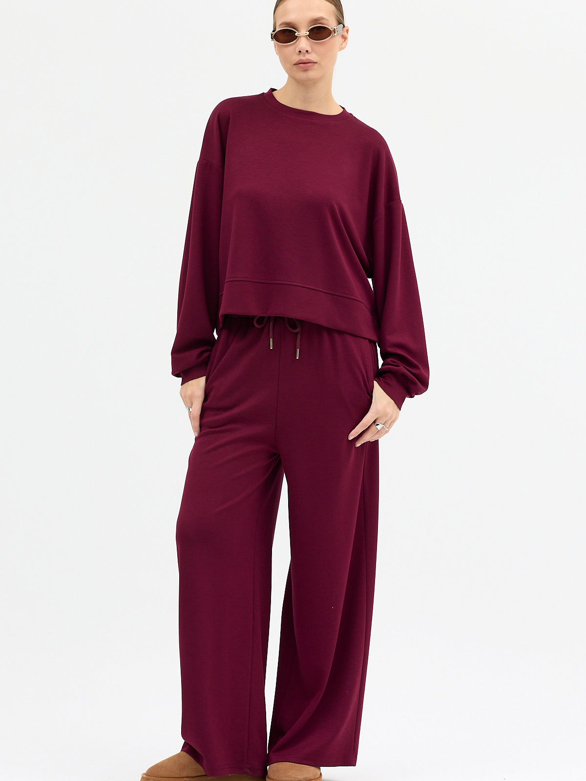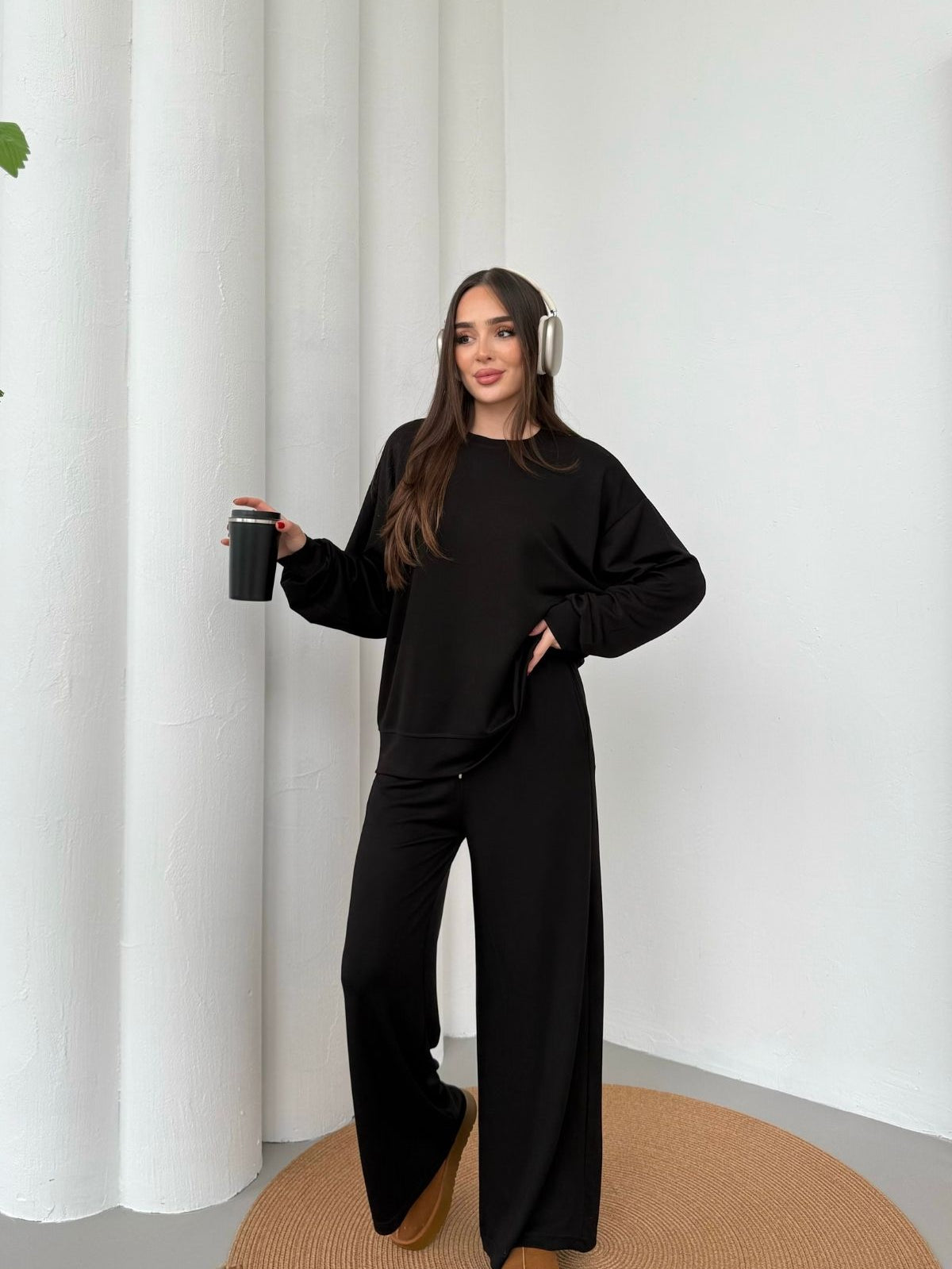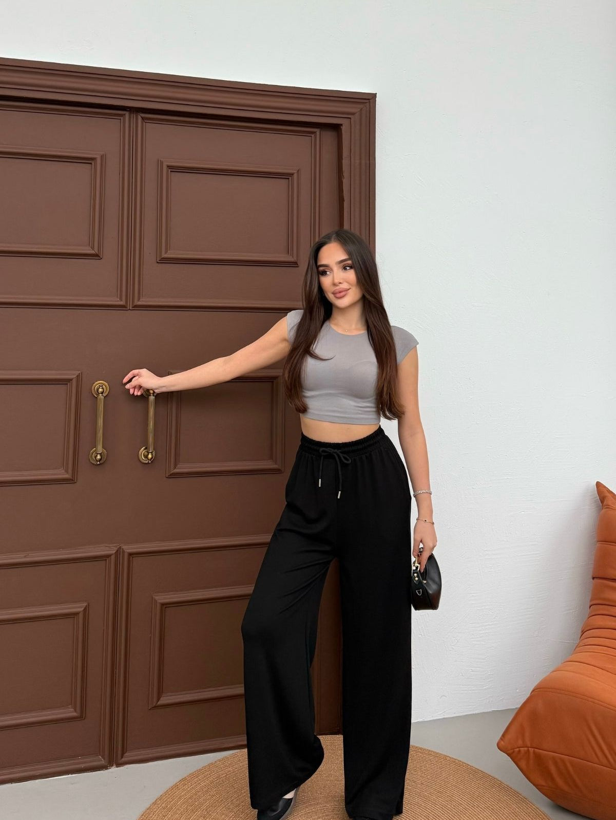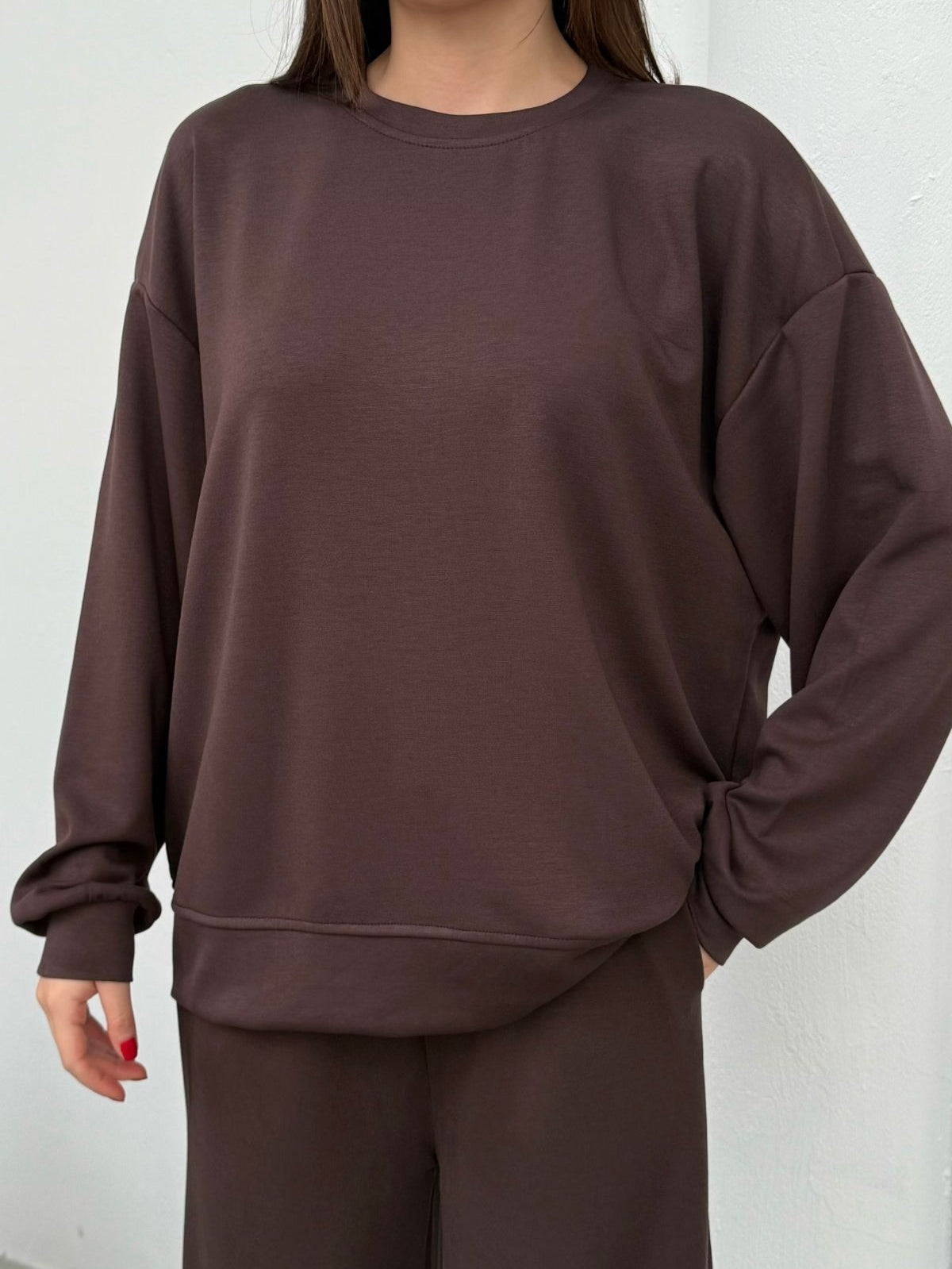 Basic Yumuşak Premium Kumaş Uzun Beli Lastikli Bol Paça Modal Alt-Üst Takım