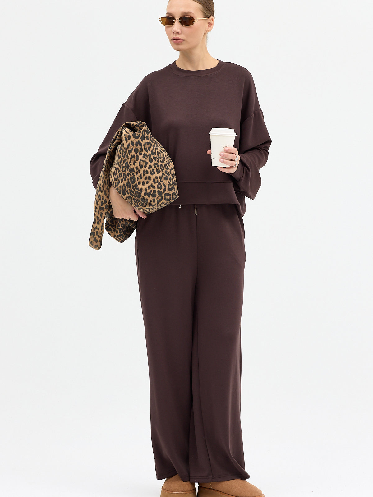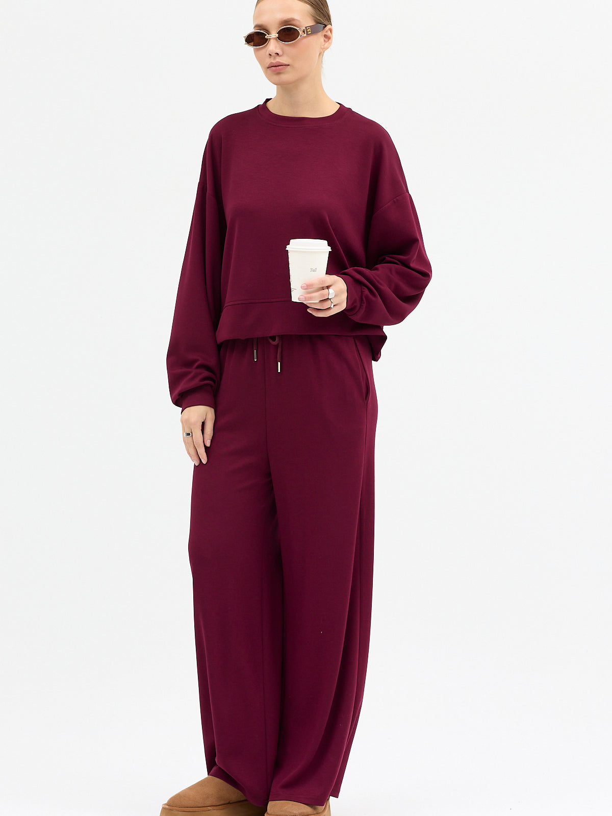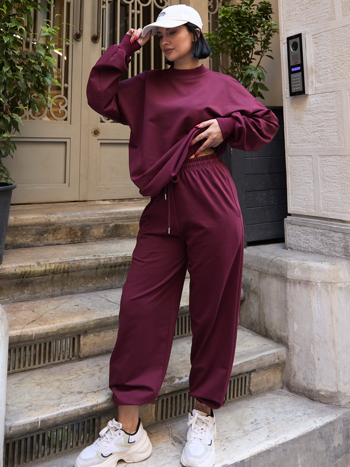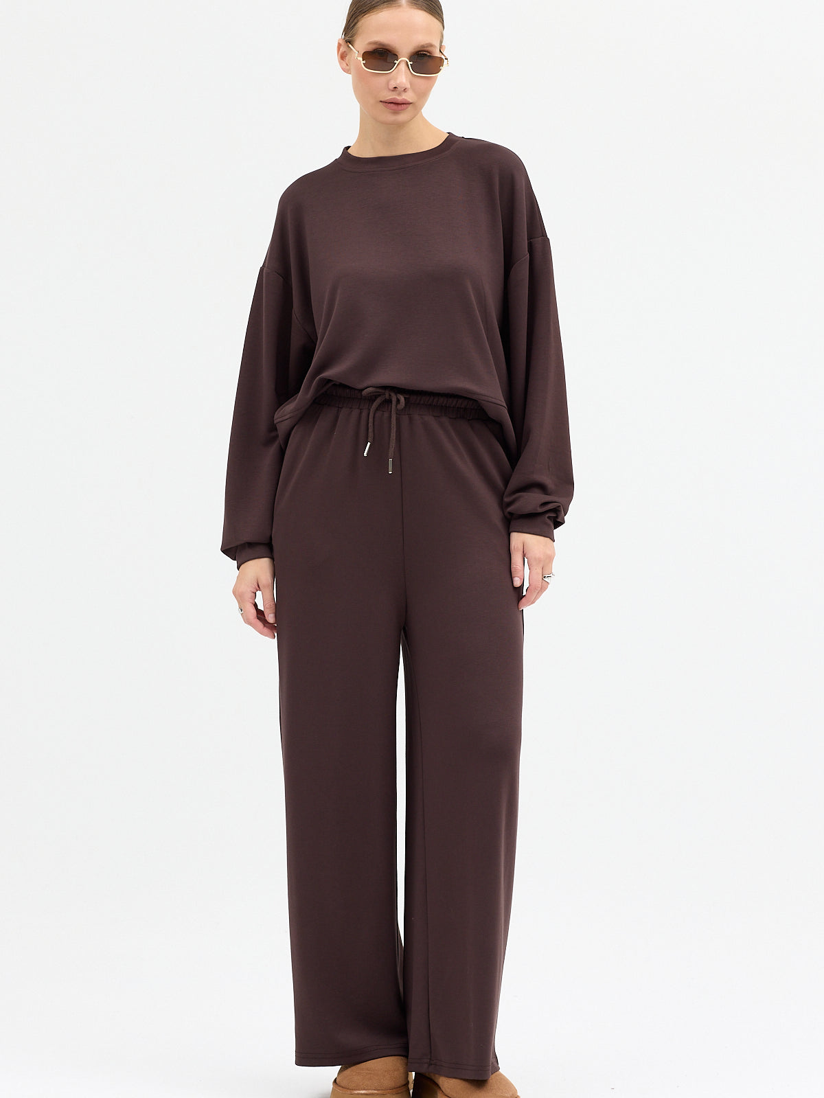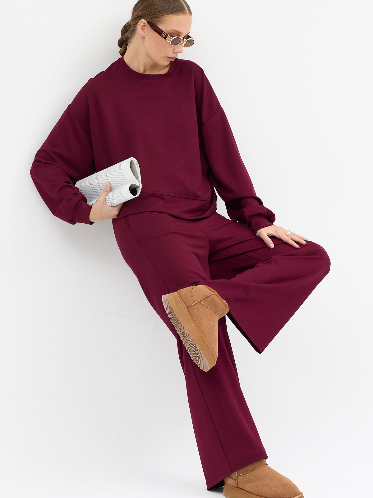 Basic Yumuşak Premium Kumaş Uzun Beli Lastikli Bol Paça Modal Alt-Üst Takım