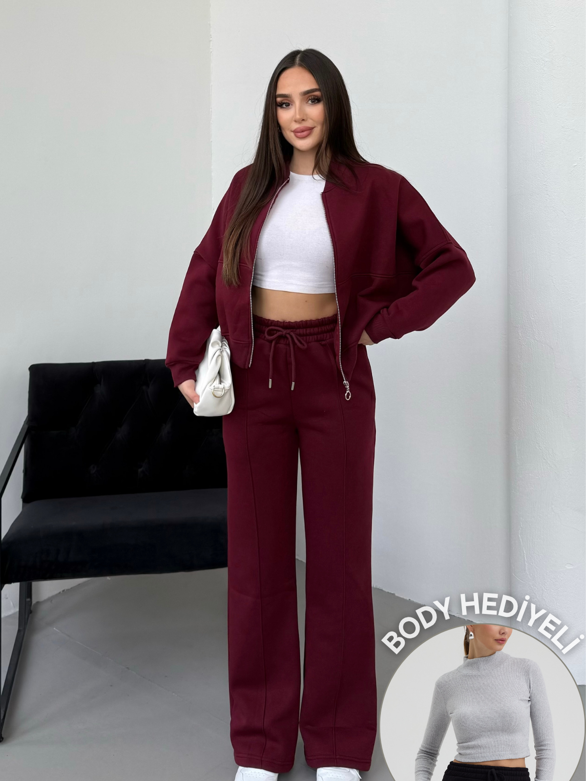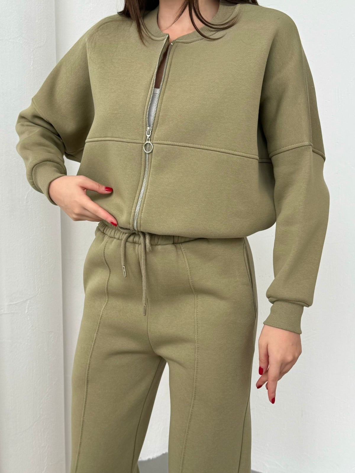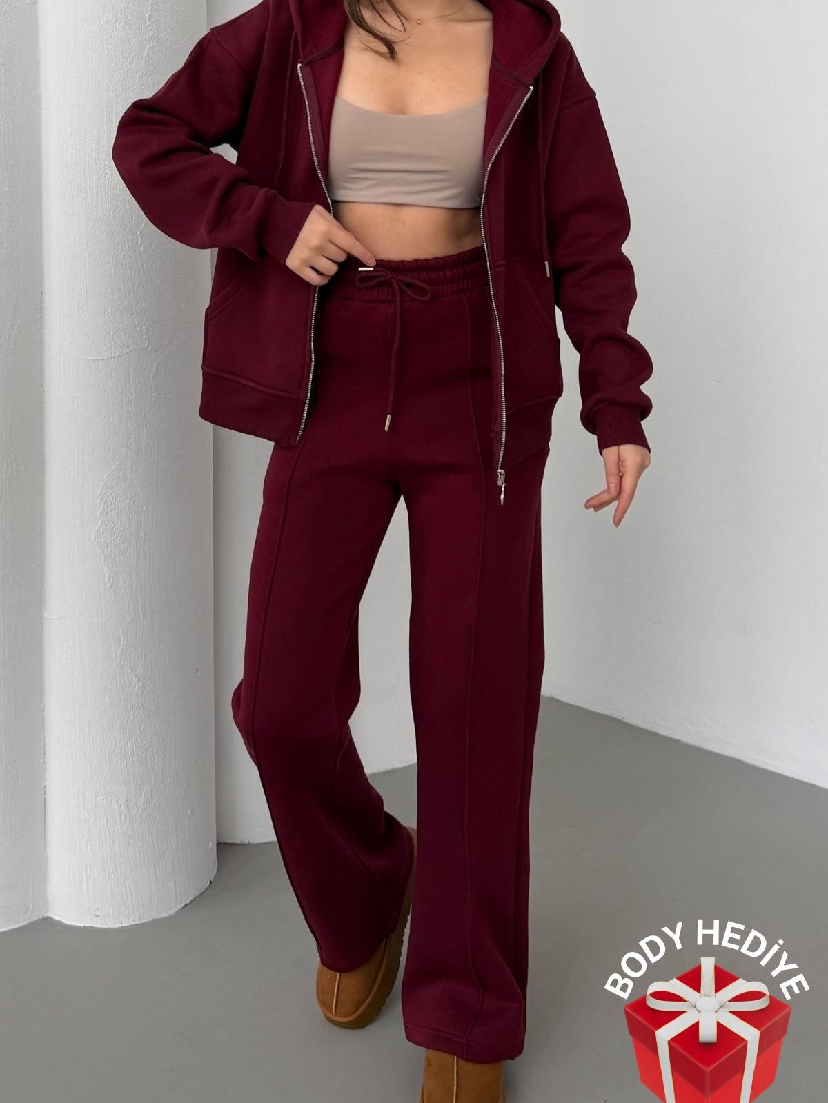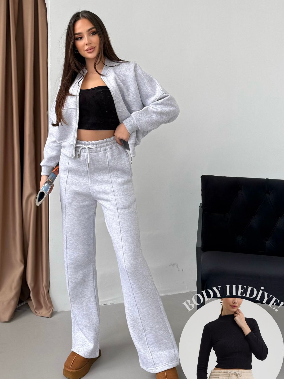 Kadın Şardonlu Fermuar Detaylı Üç Iplik Kışlık Eşofman Takımı