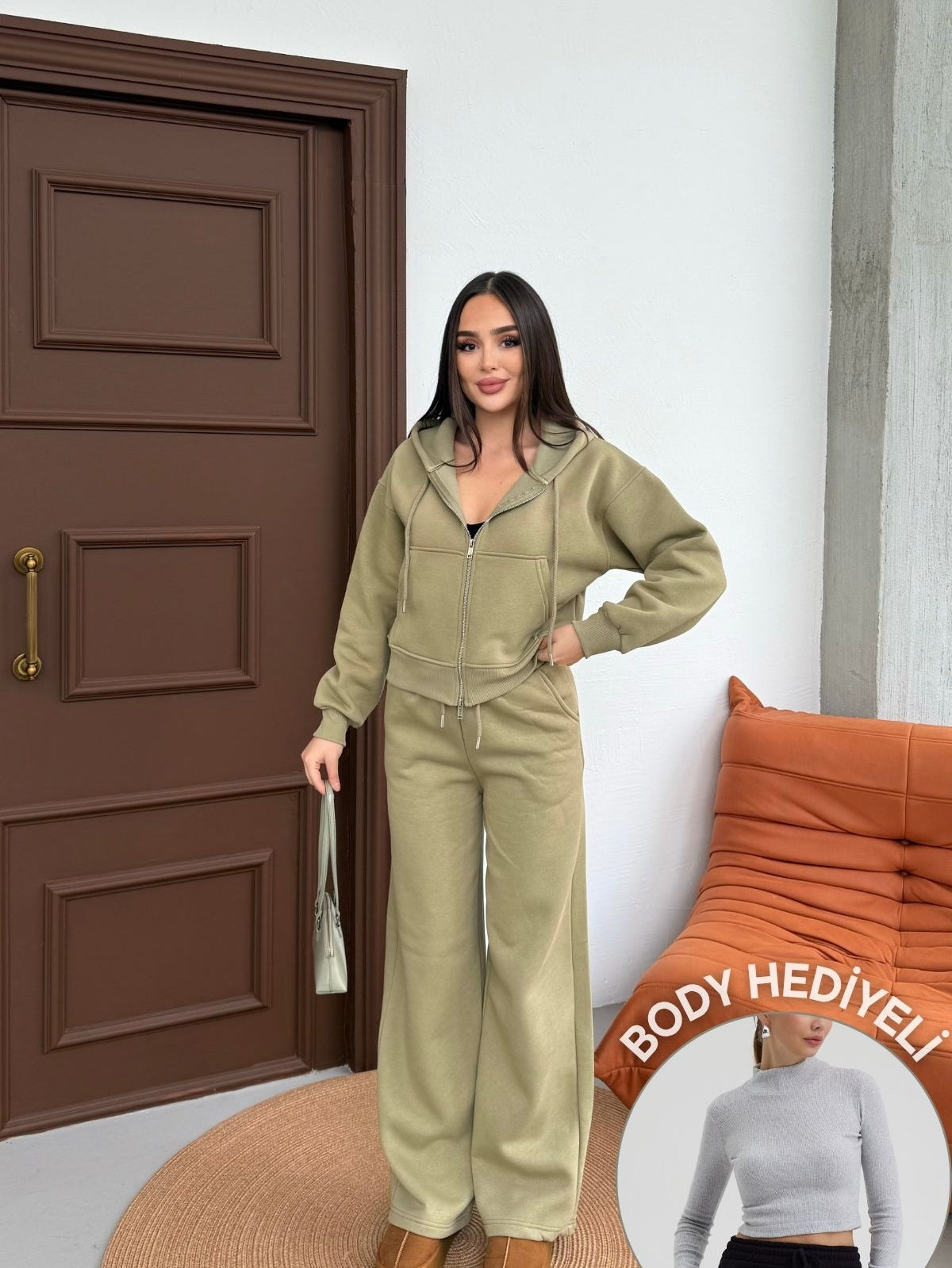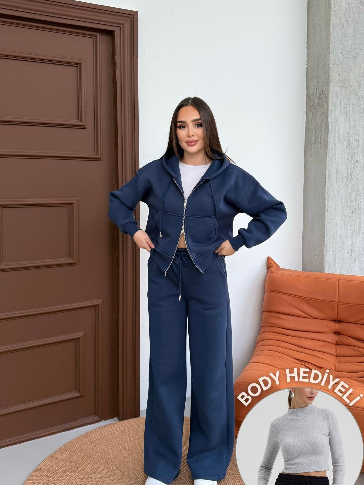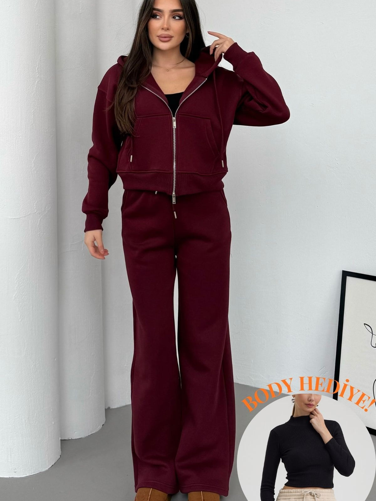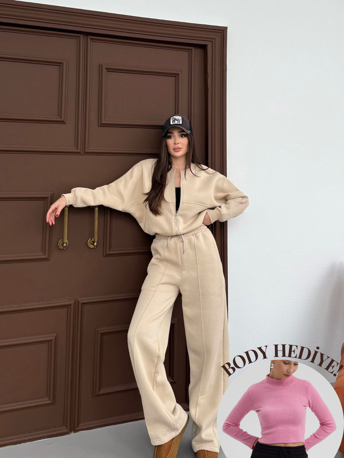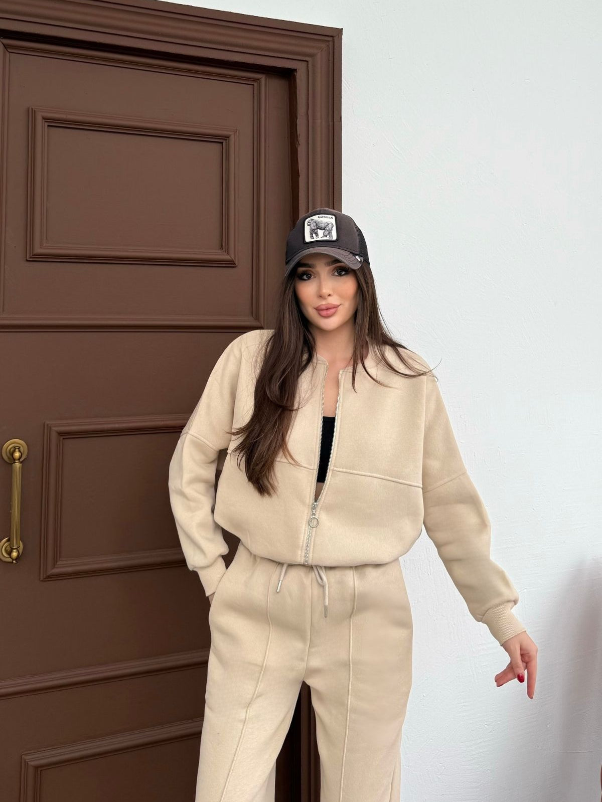 Kadın Şardonlu Fermuar Detaylı Üç Iplik Kışlık Eşofman Takımı