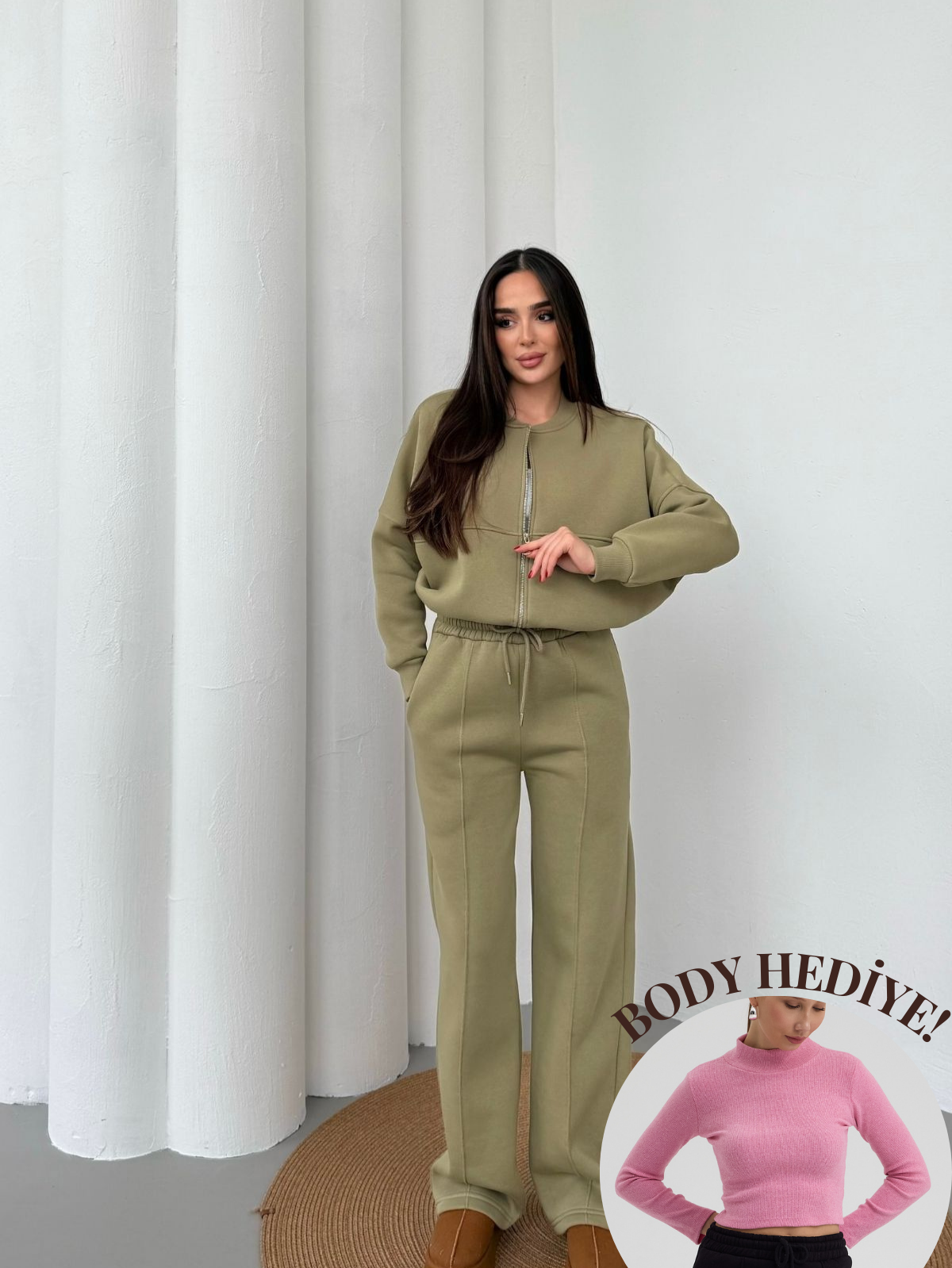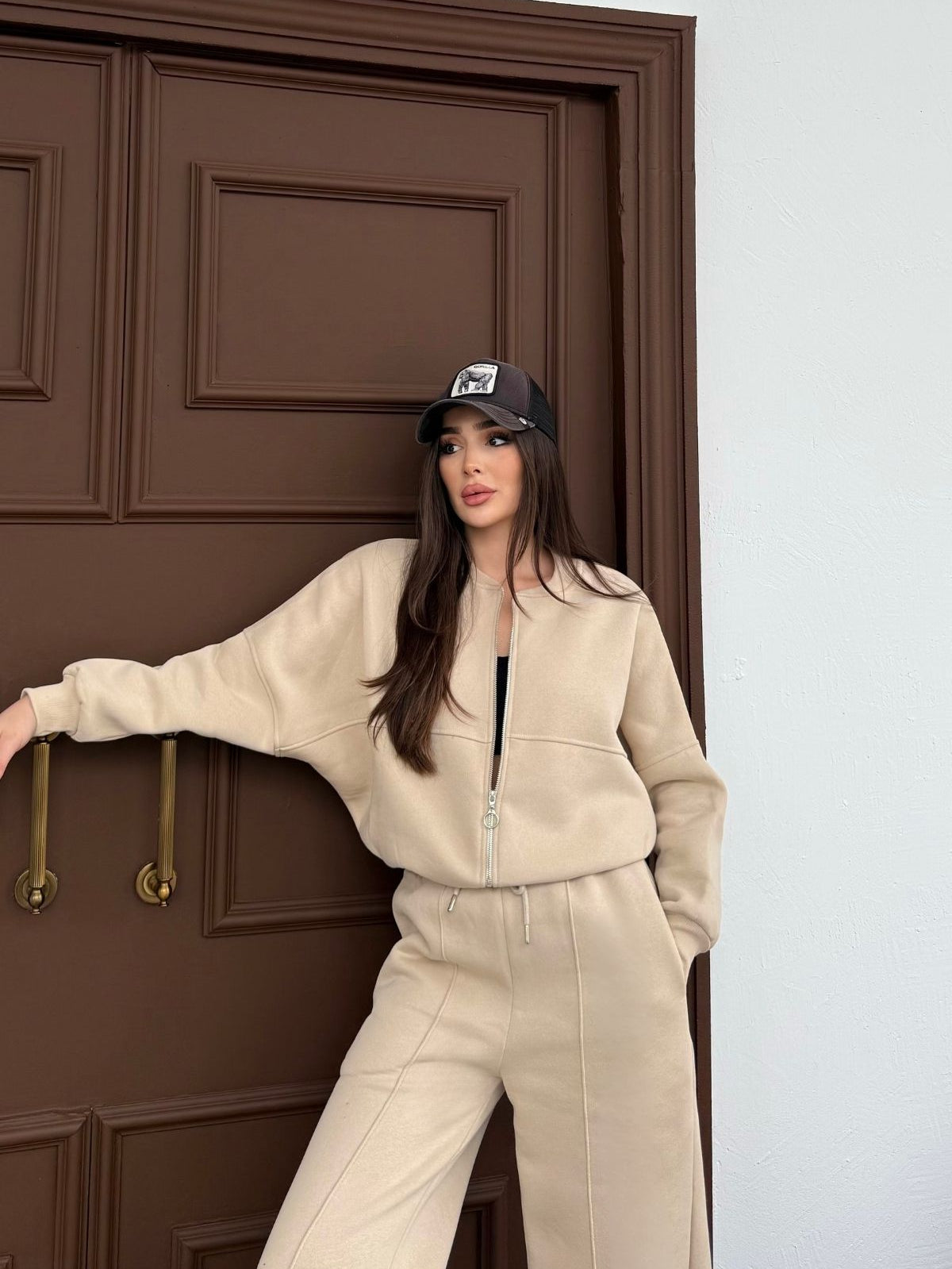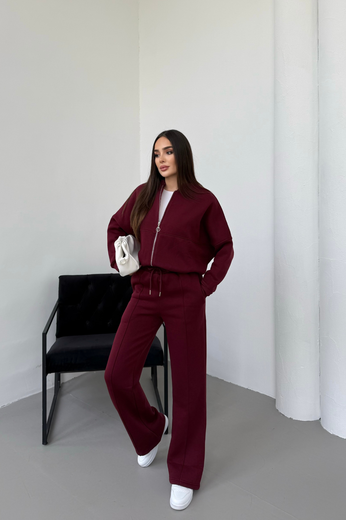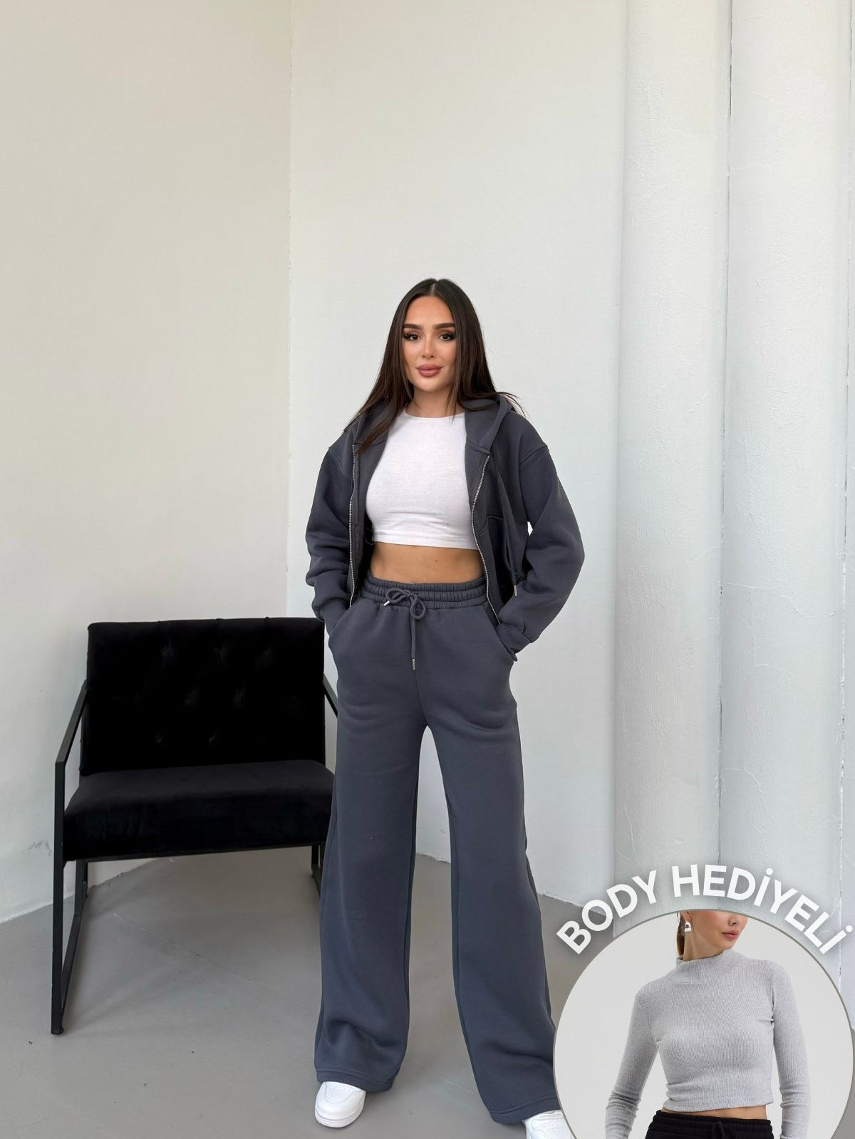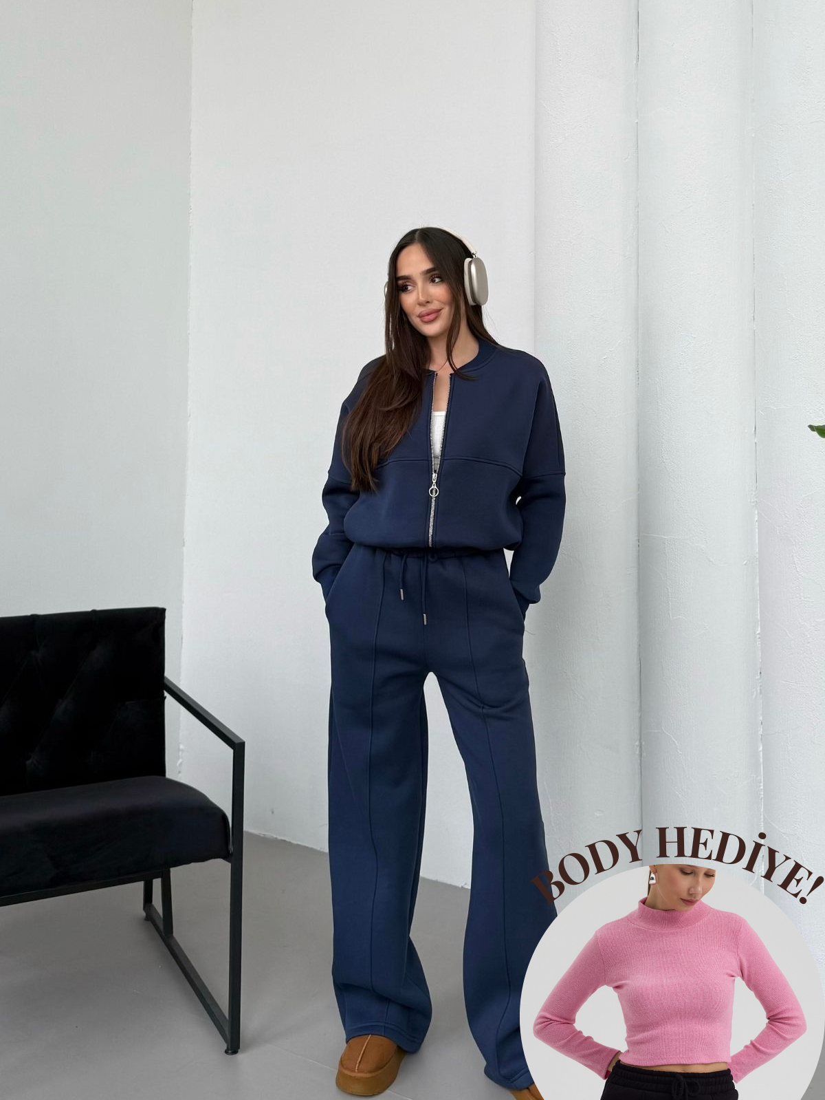 Kadın Şardonlu Fermuar Detaylı Üç Iplik Kışlık Eşofman Takımı