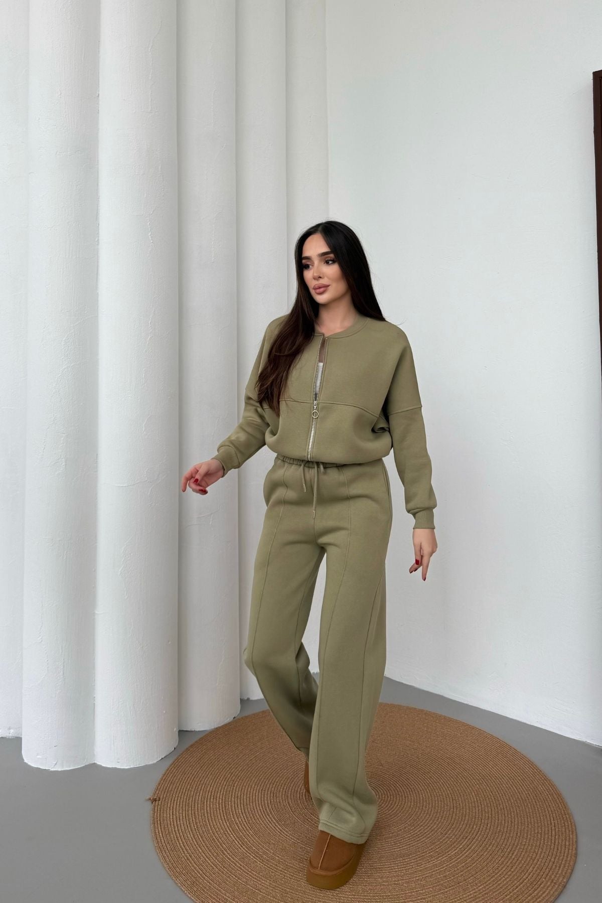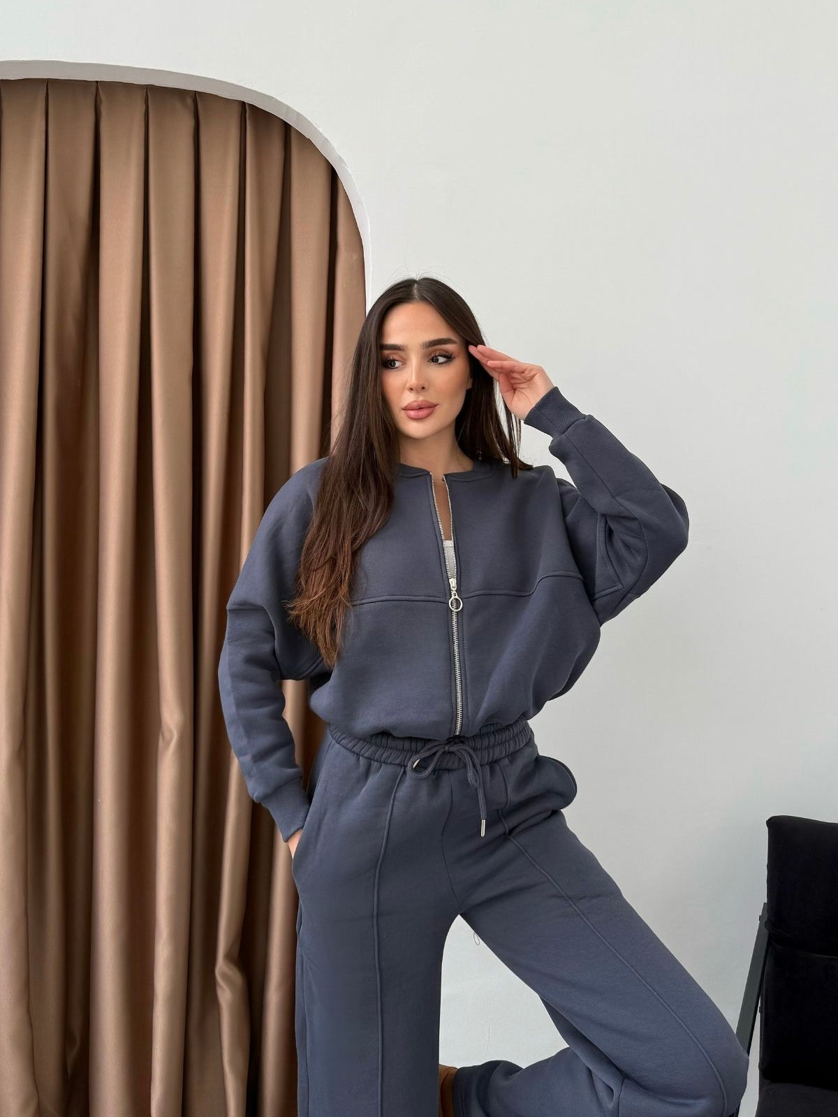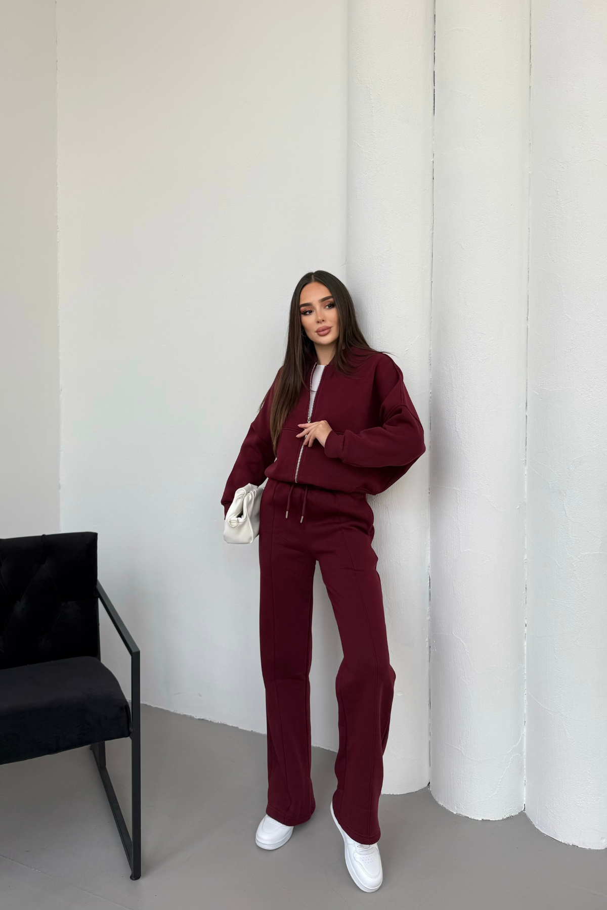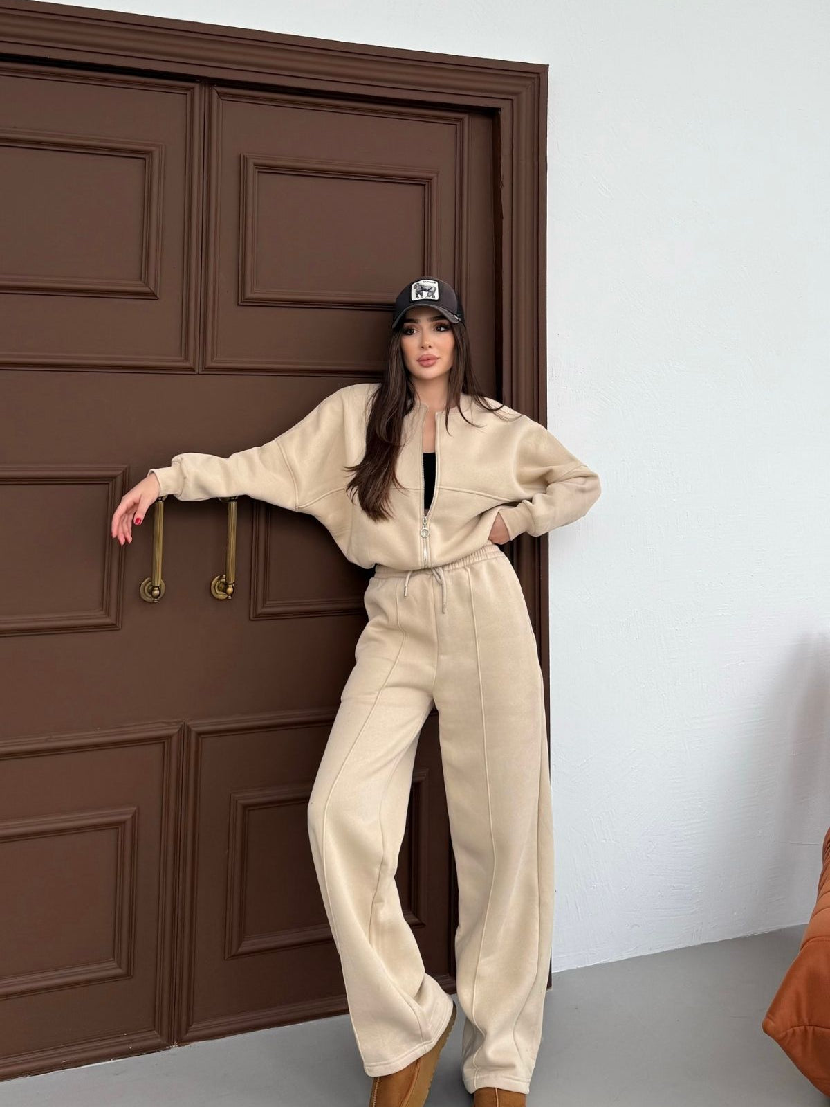 Kadın Şardonlu Fermuar Detaylı Üç Iplik Kışlık Eşofman Takımı