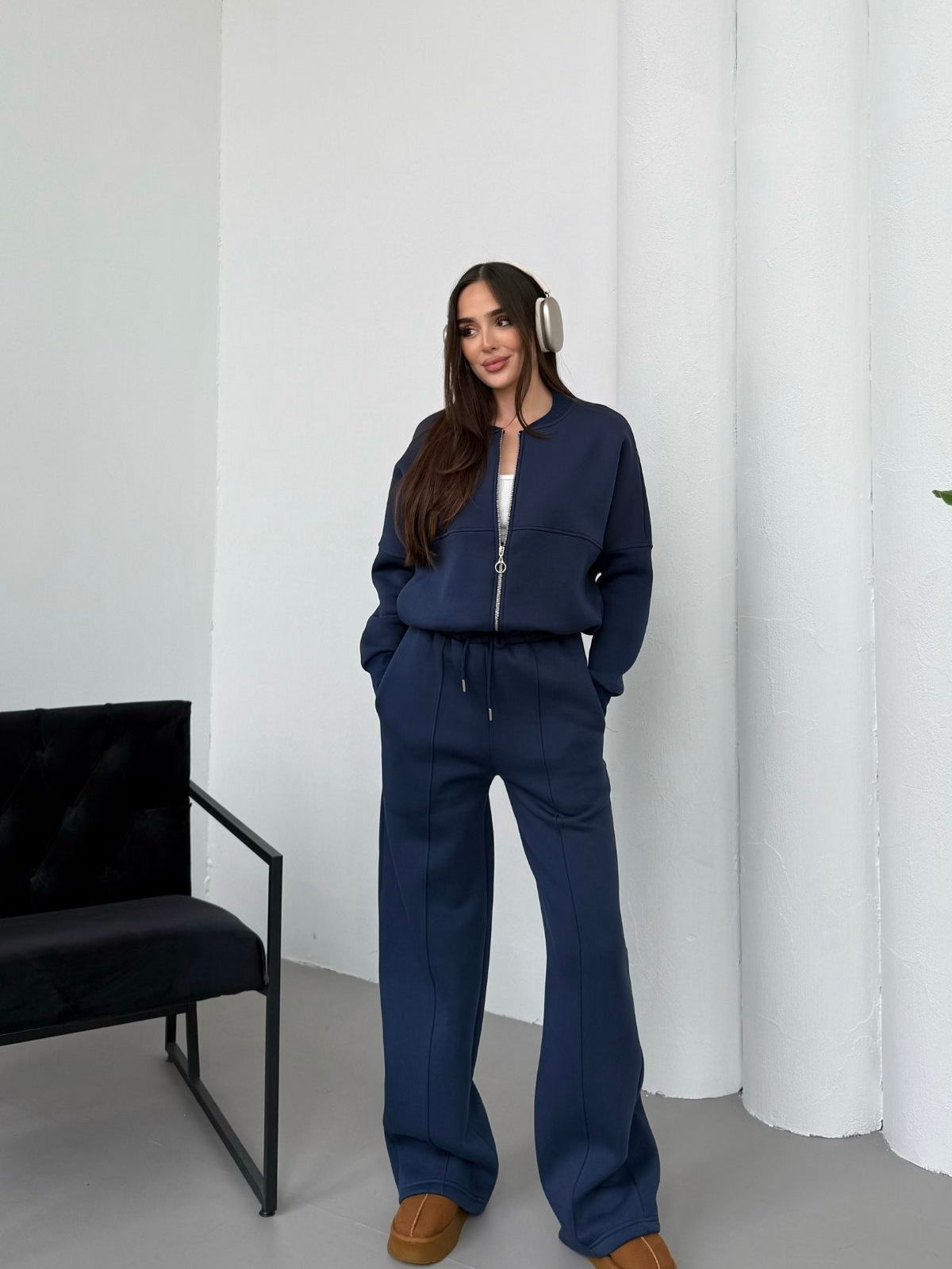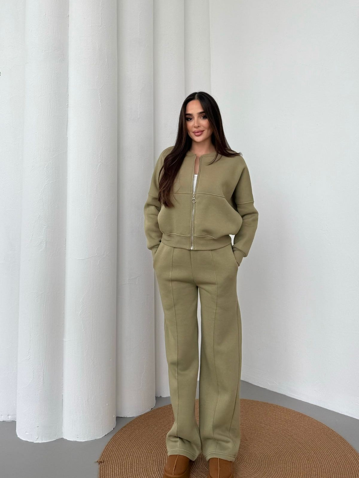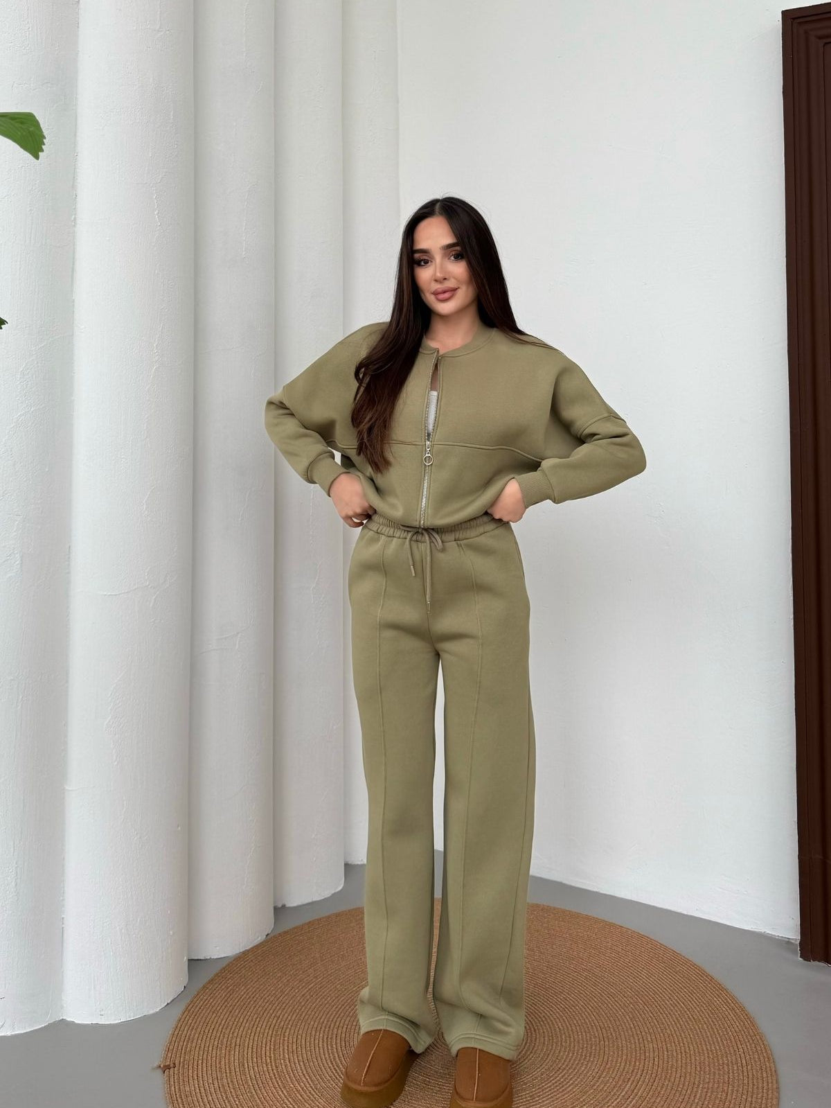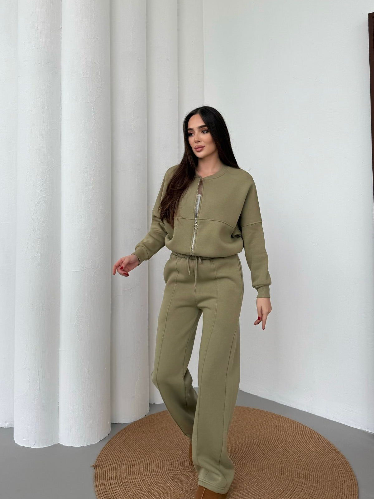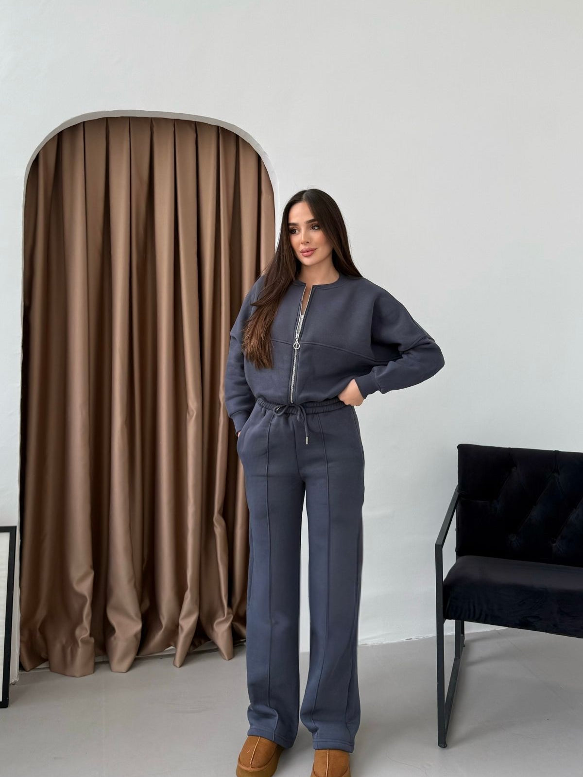 Kadın Şardonlu Fermuar Detaylı Üç Iplik Kışlık Eşofman Takımı