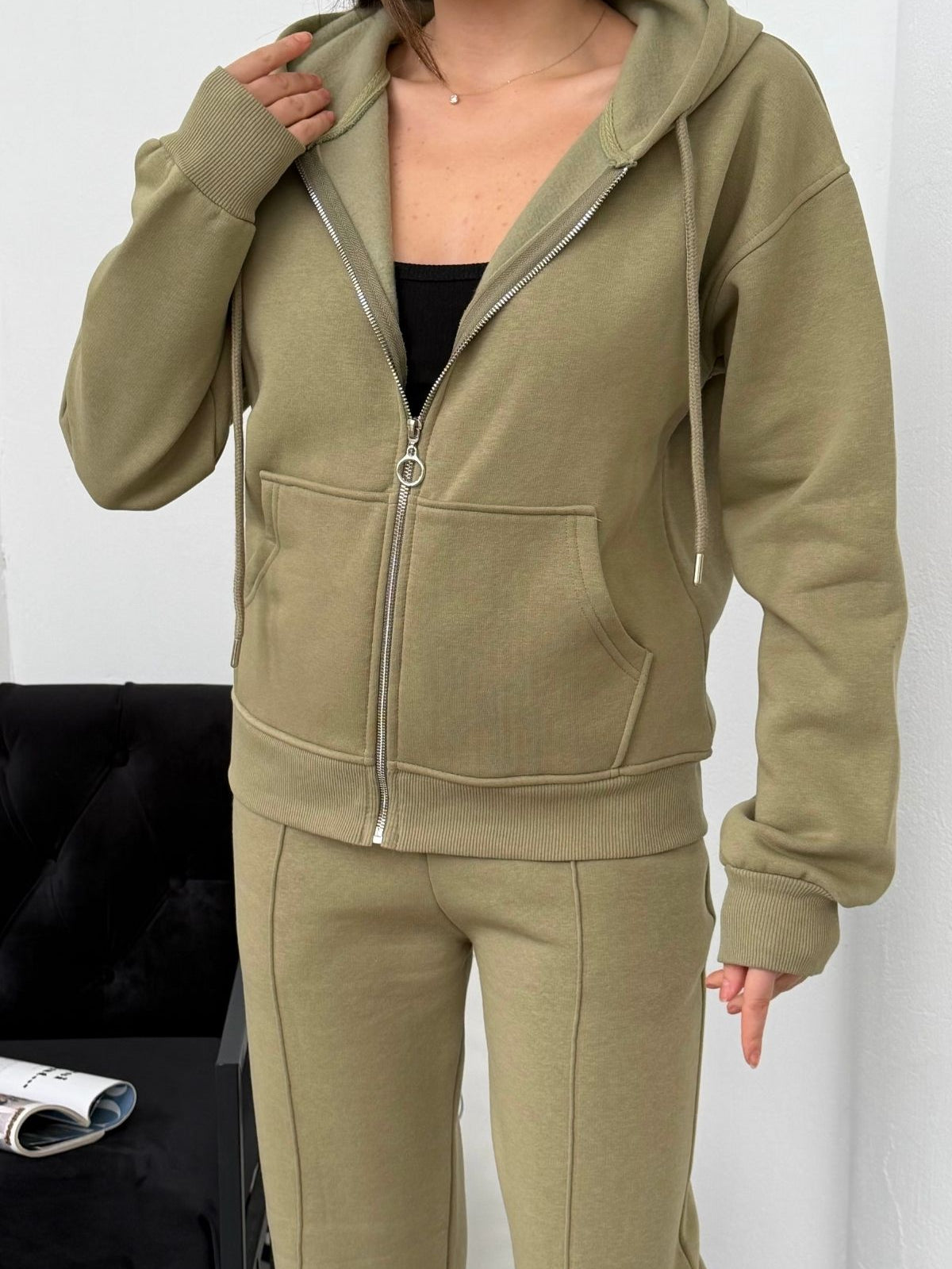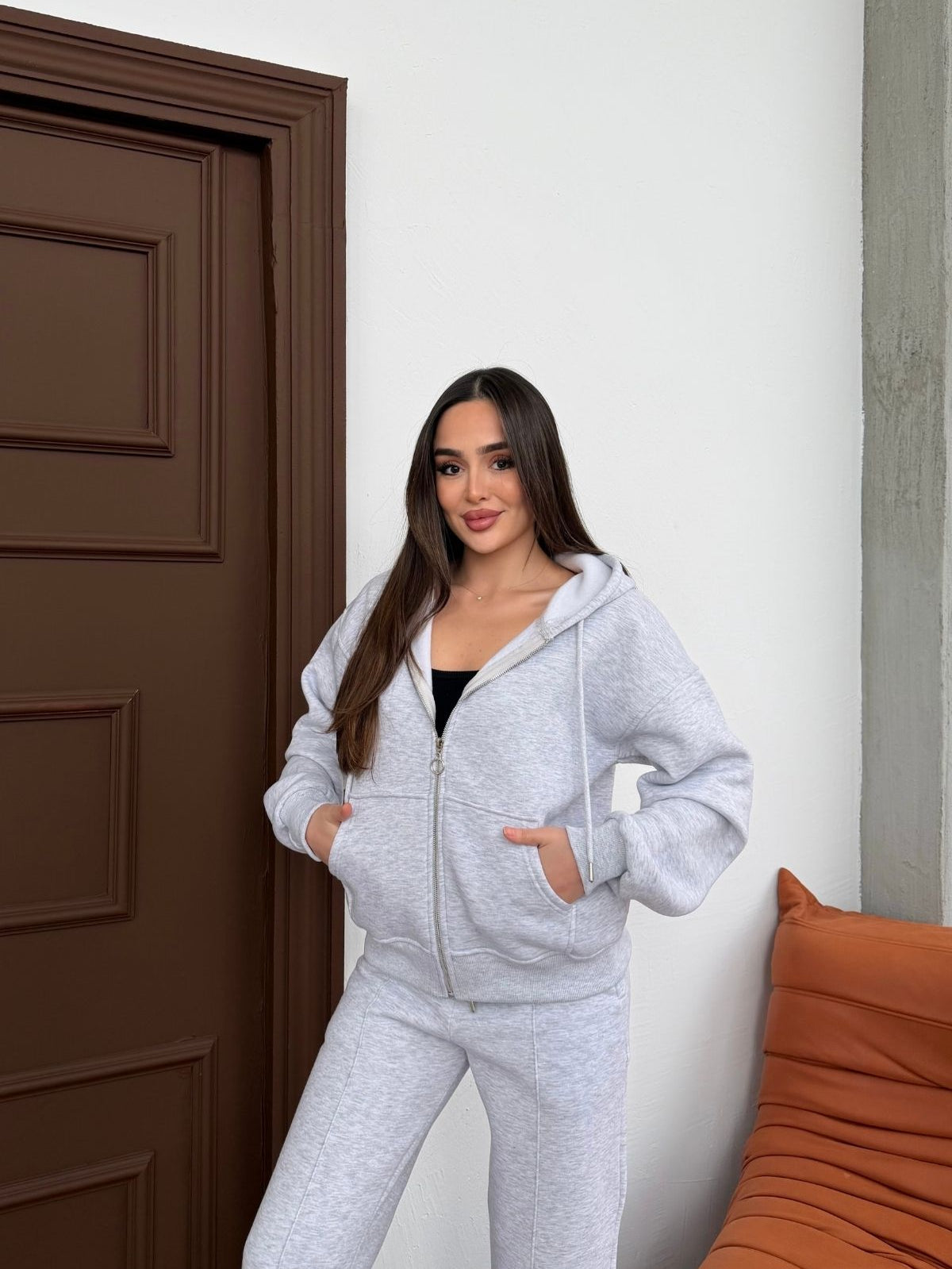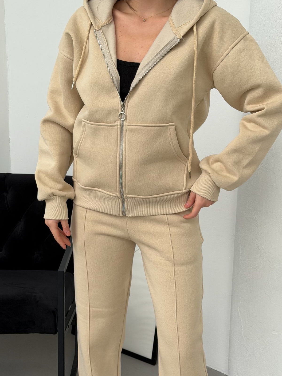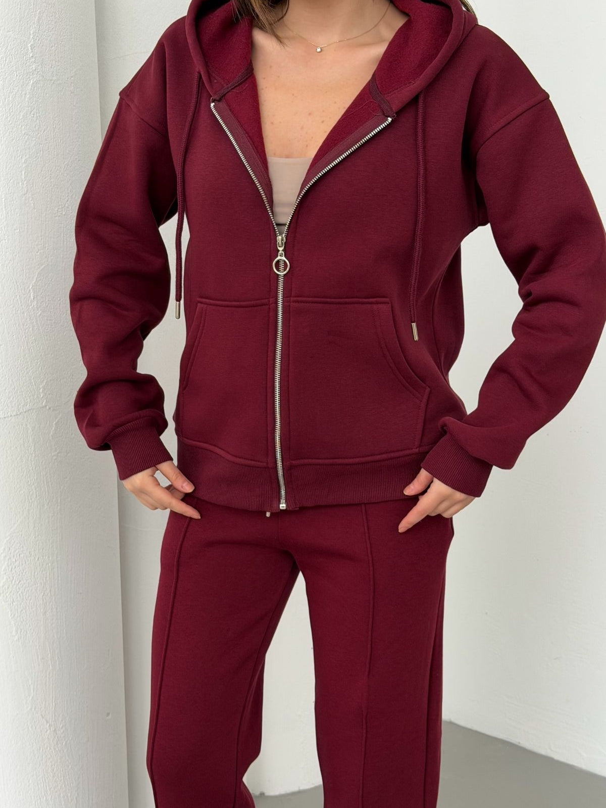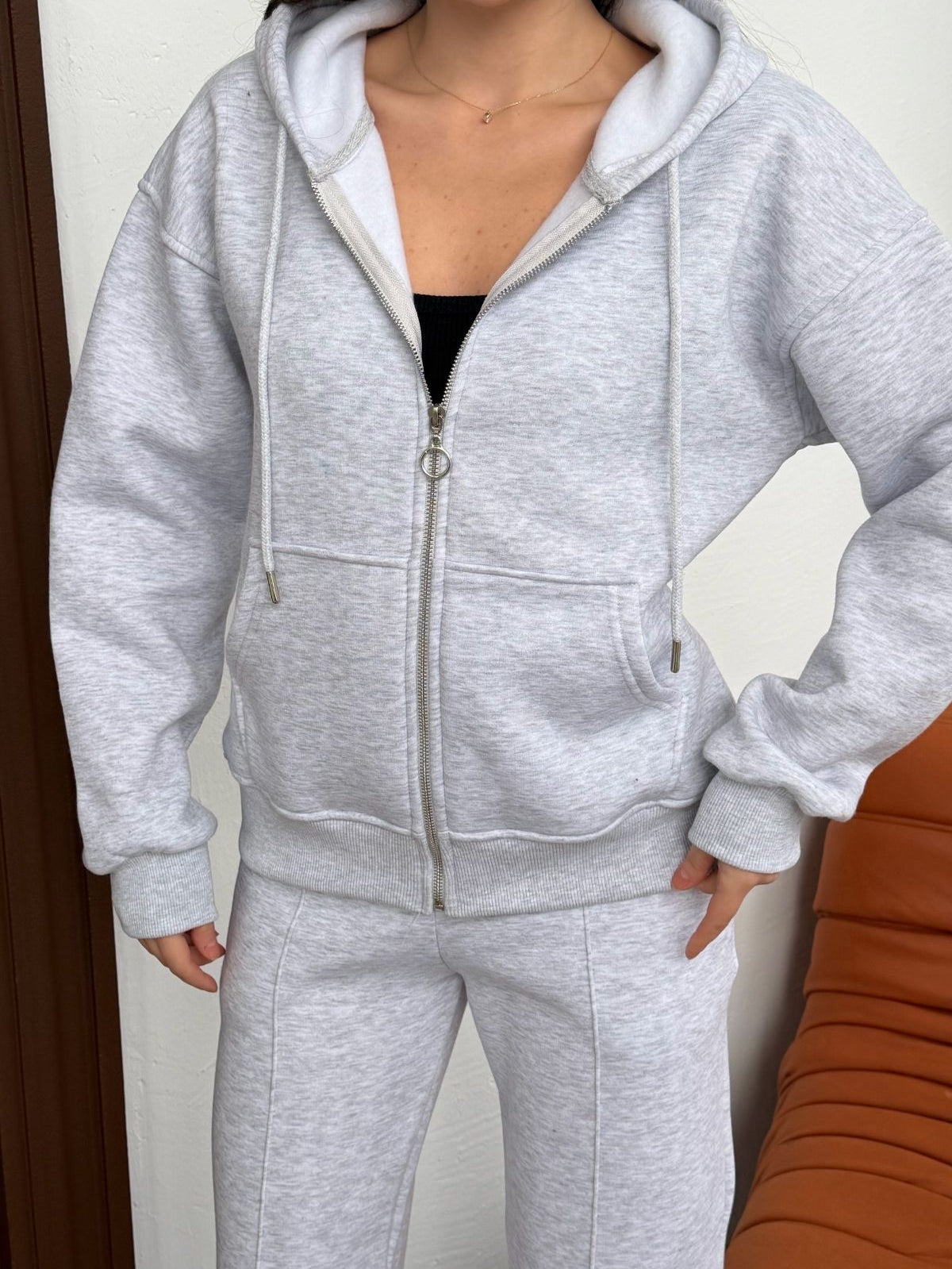 İçi Polar Rahat Kesim Kapüşonlu Fermuarlı Eşofman Takımı