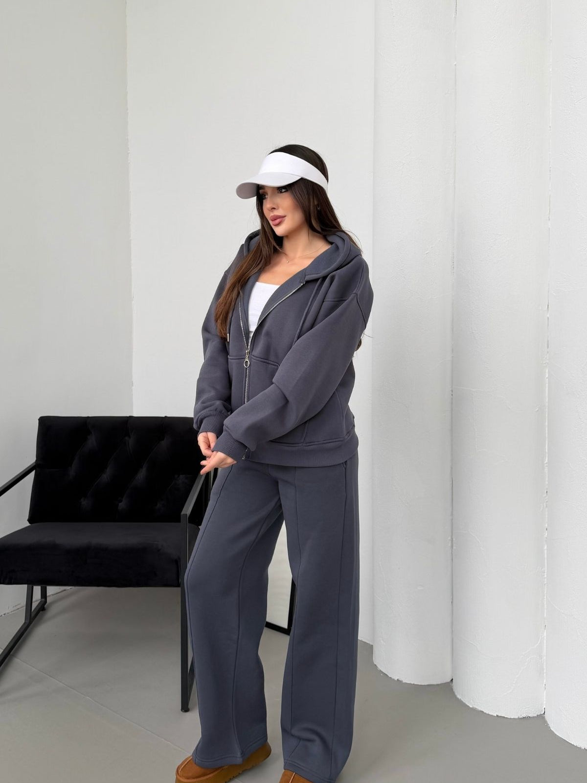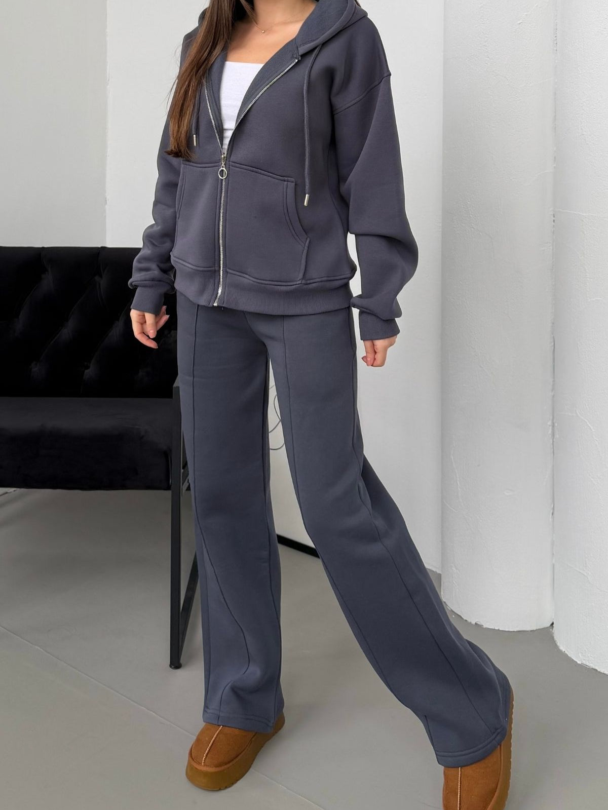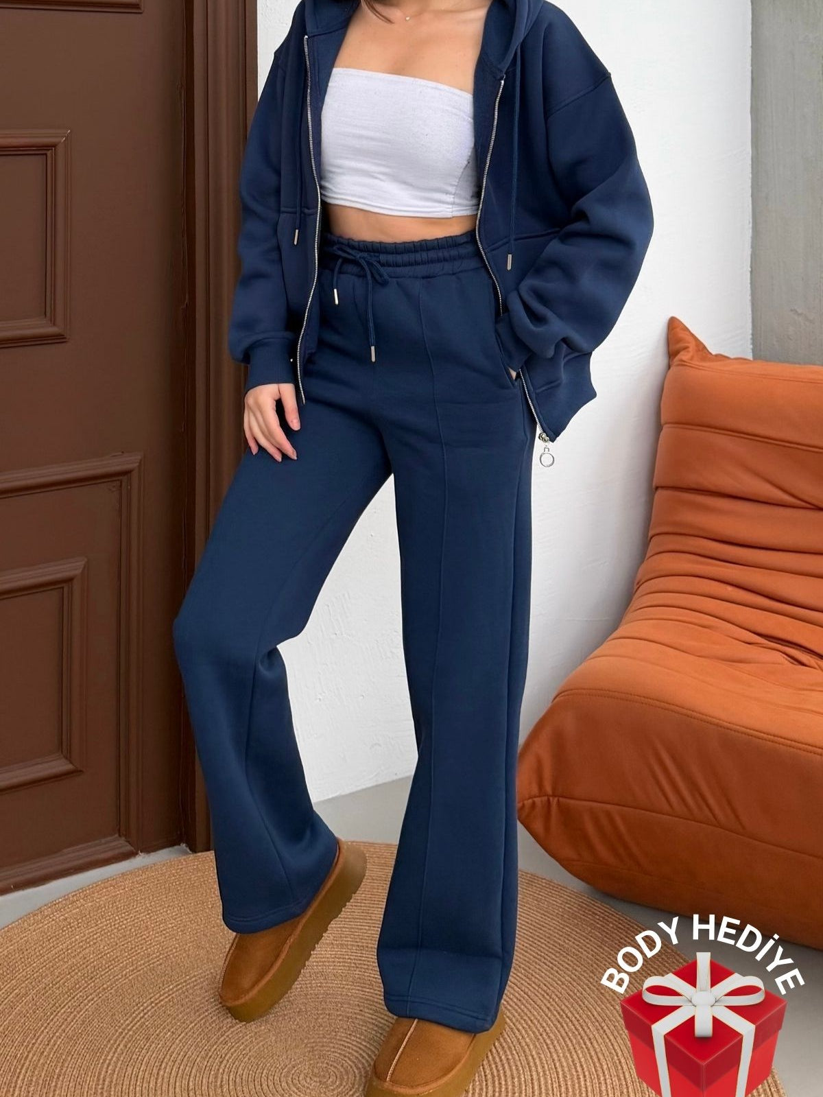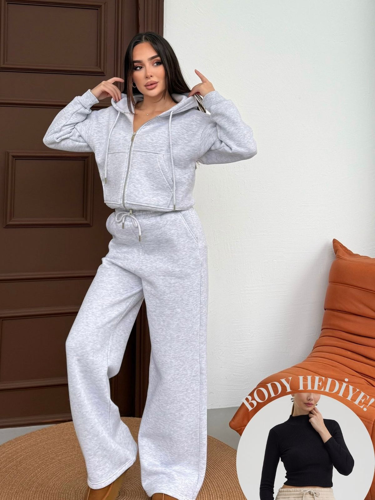 İçi Polar Rahat Kesim Kapüşonlu Fermuarlı Eşofman Takımı
