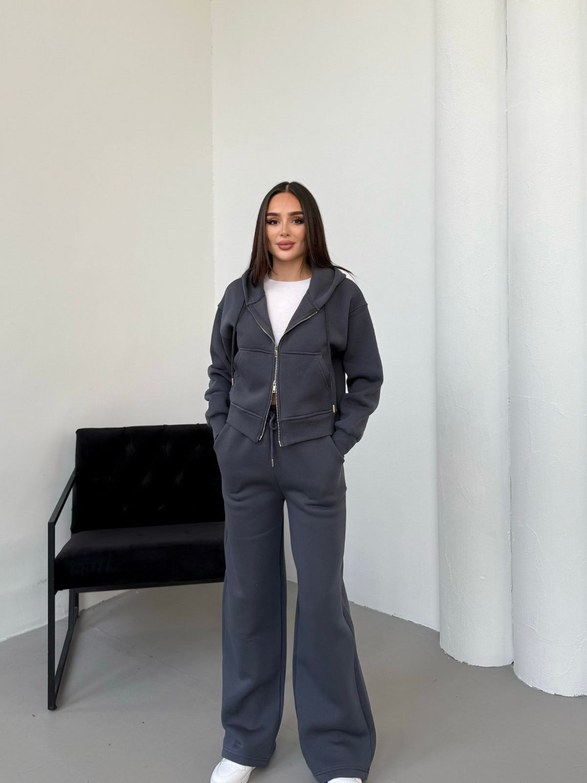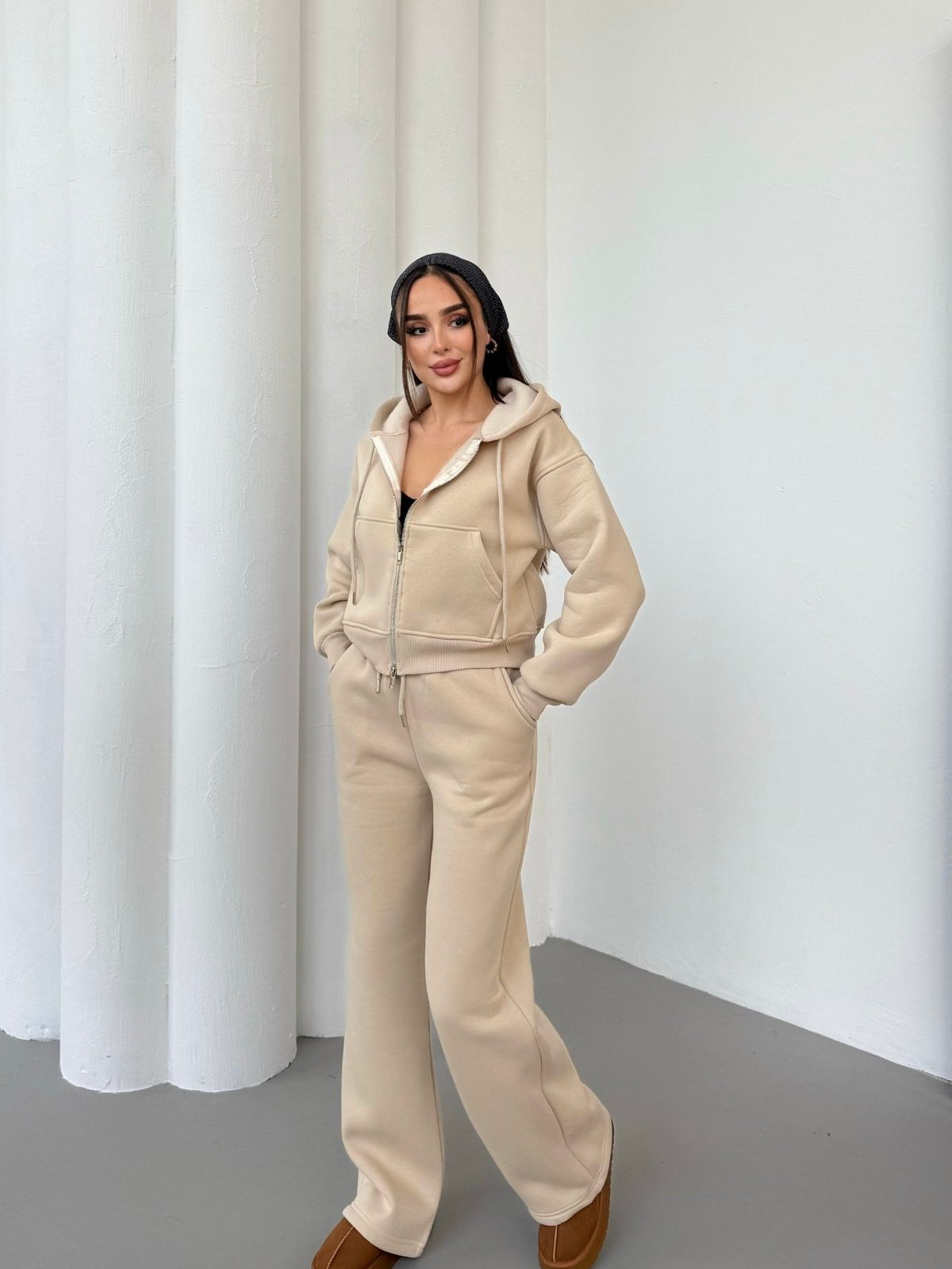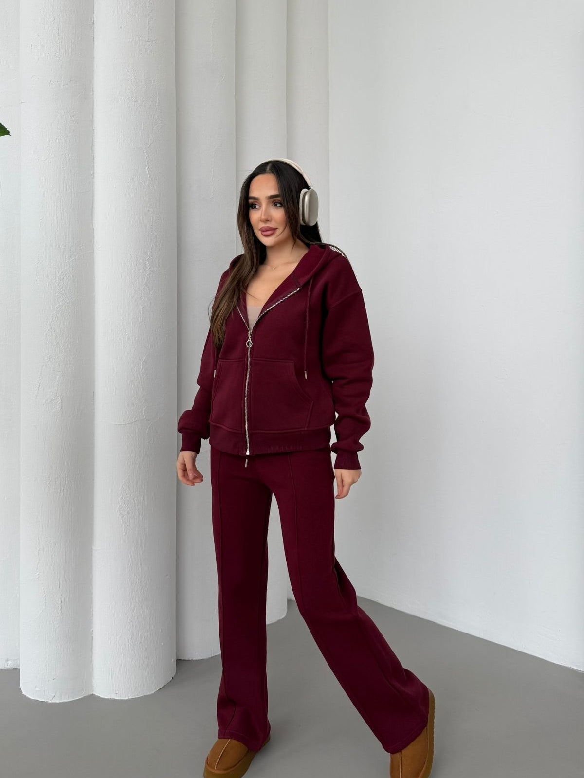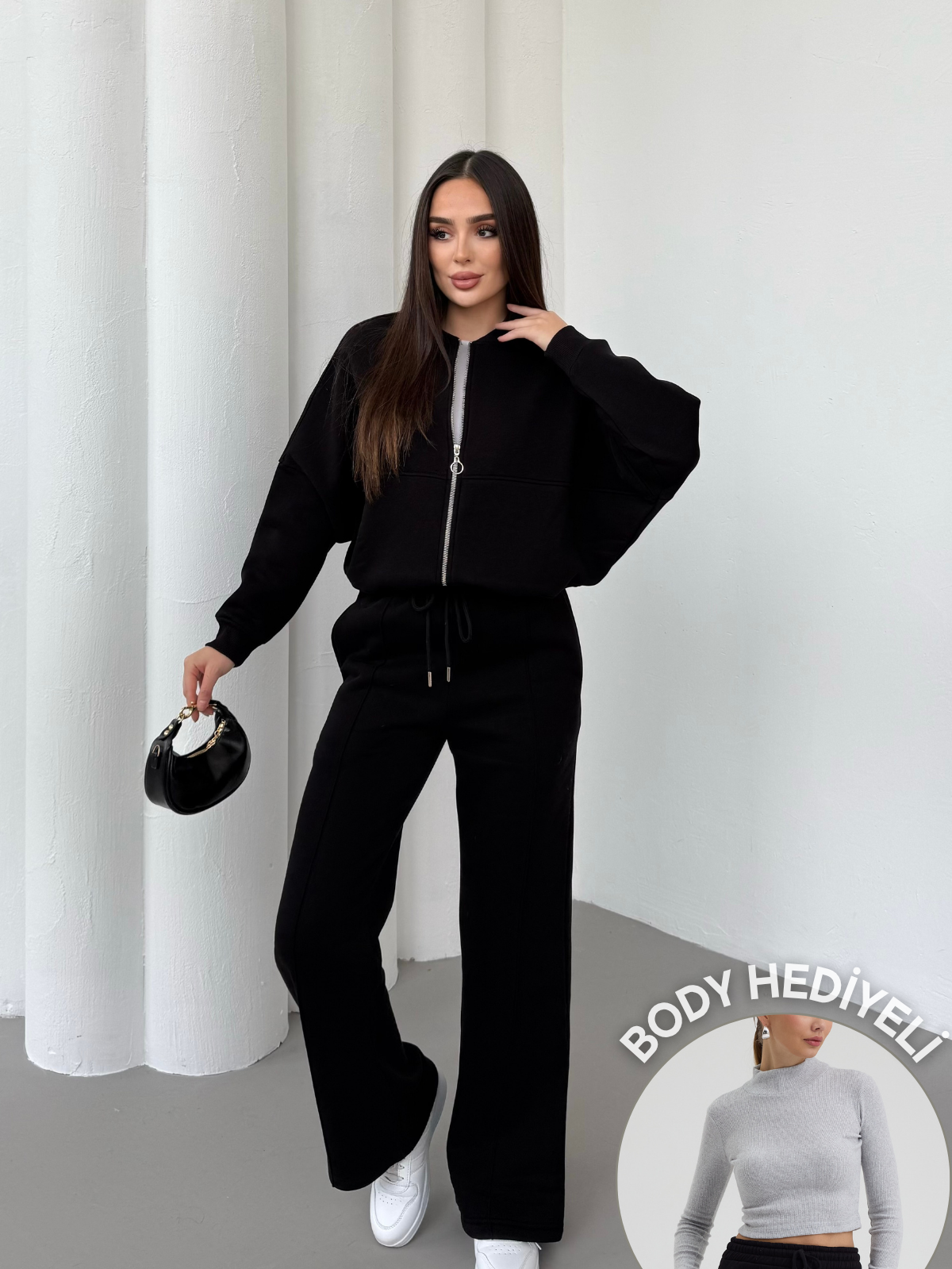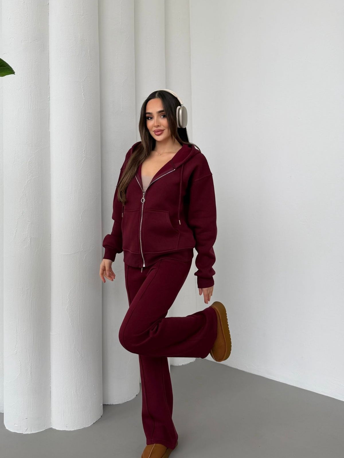 İçi Polar Rahat Kesim Kapüşonlu Fermuarlı Eşofman Takımı