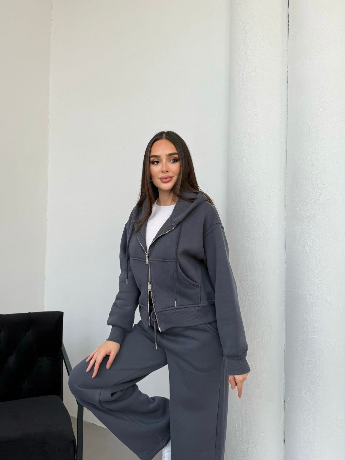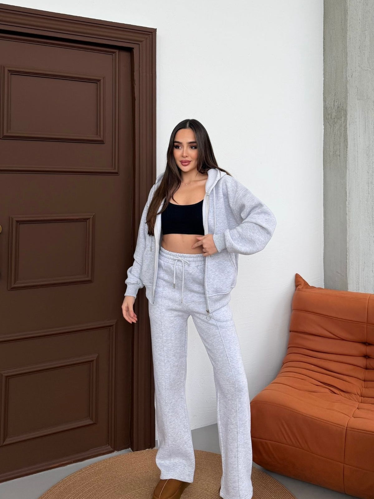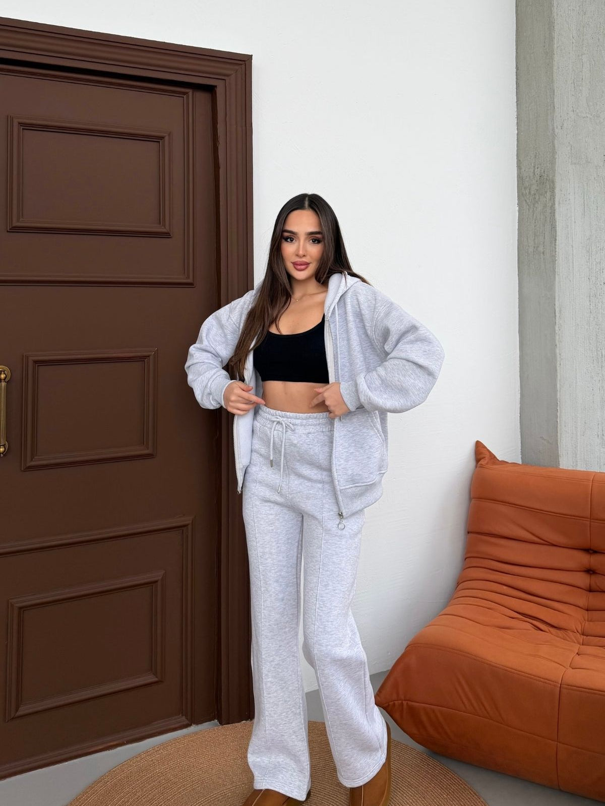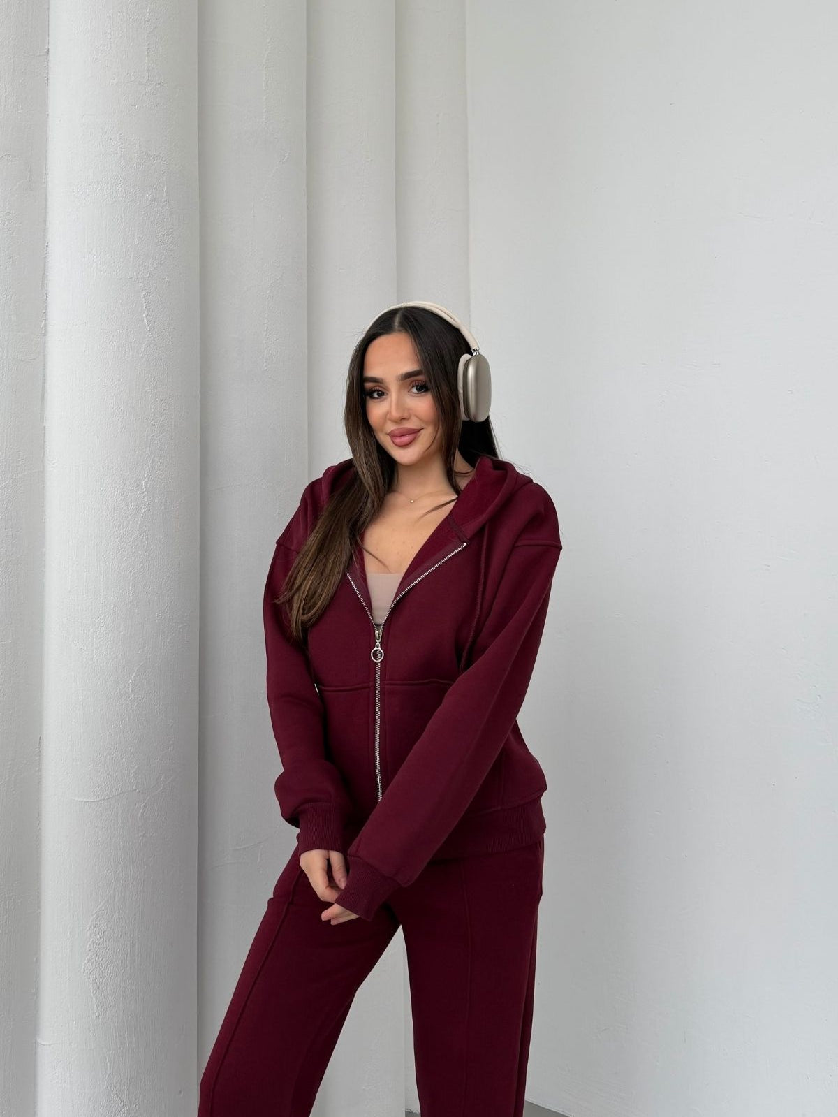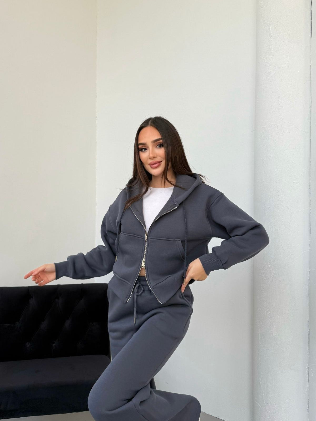 İçi Polar Rahat Kesim Kapüşonlu Fermuarlı Eşofman Takımı