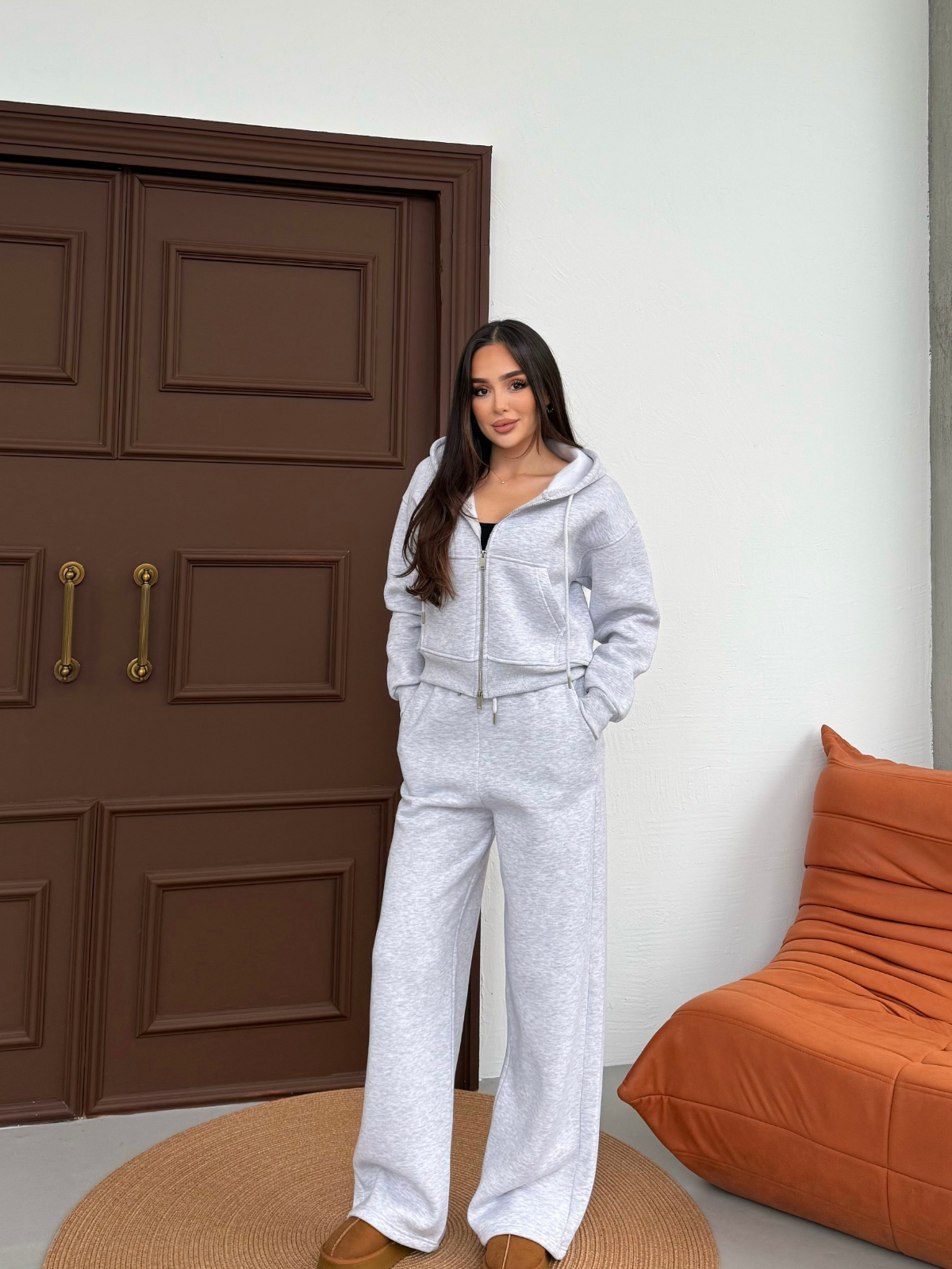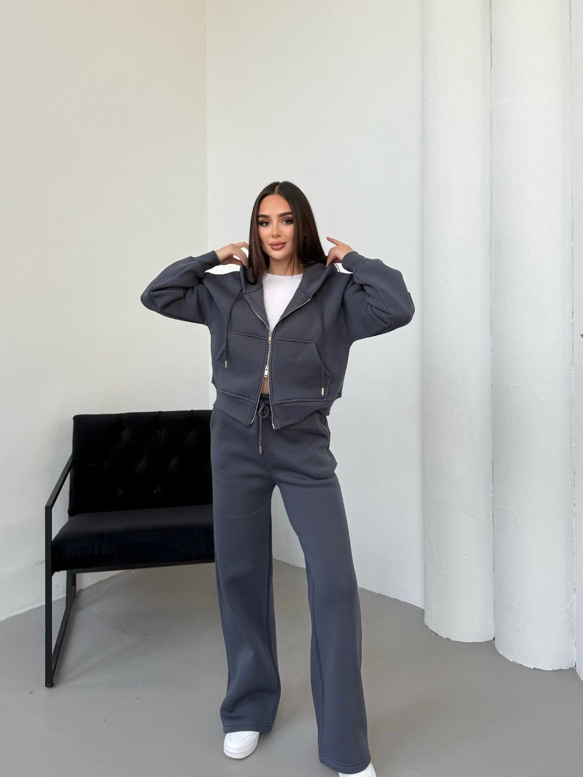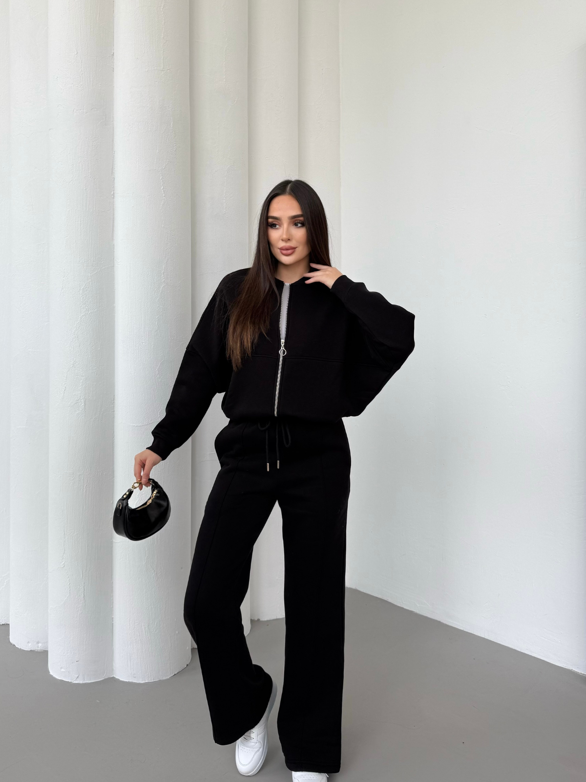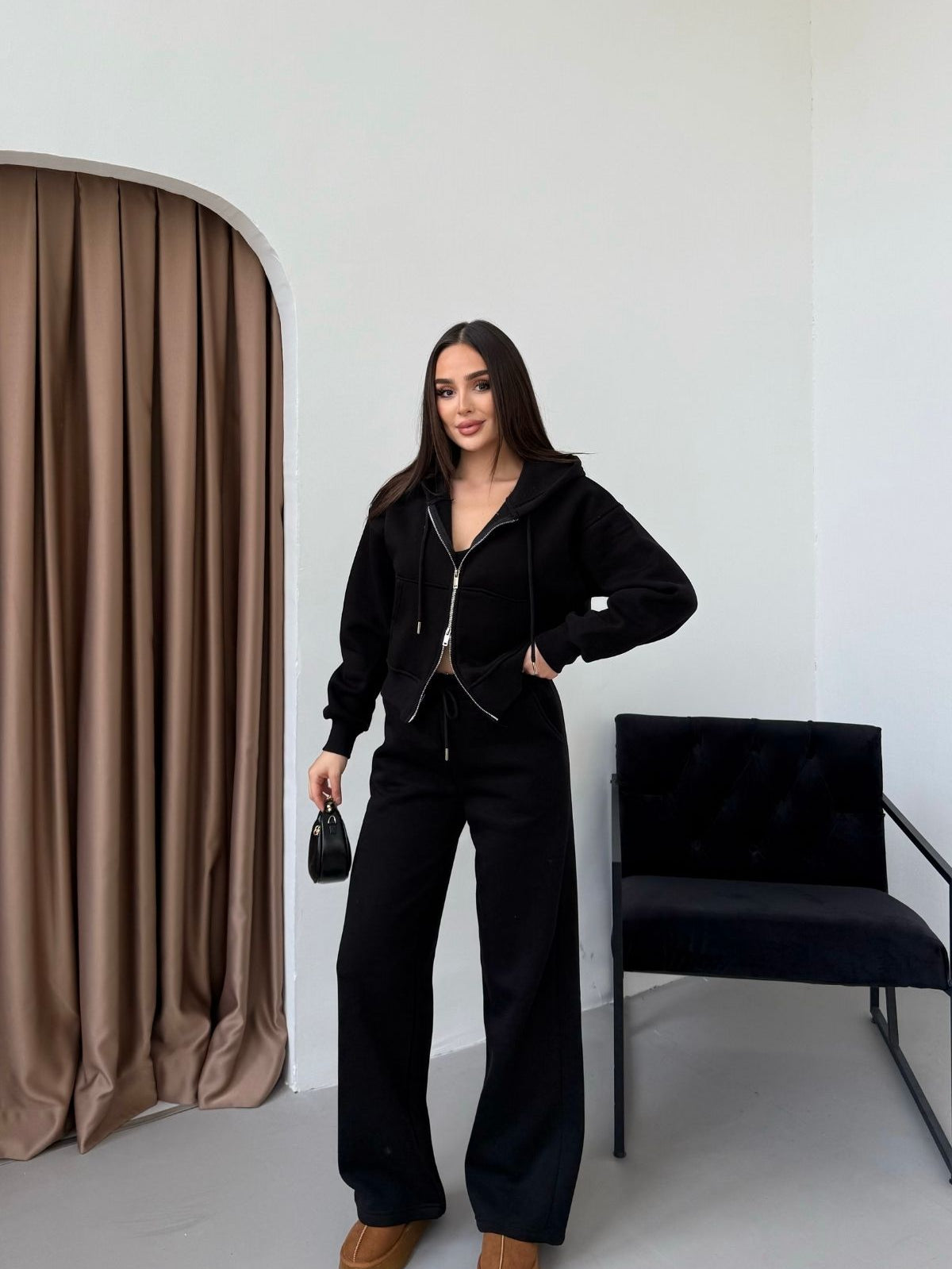 İçi Polar Rahat Kesim Kapüşonlu Fermuarlı Eşofman Takımı