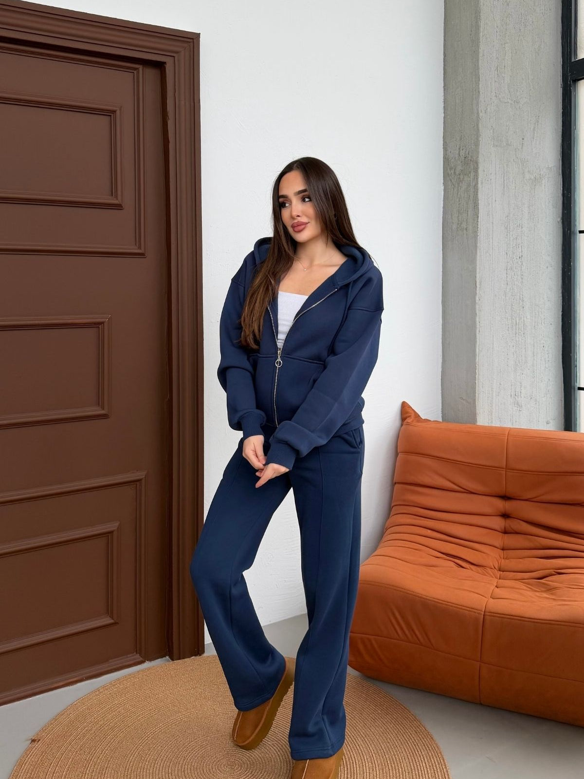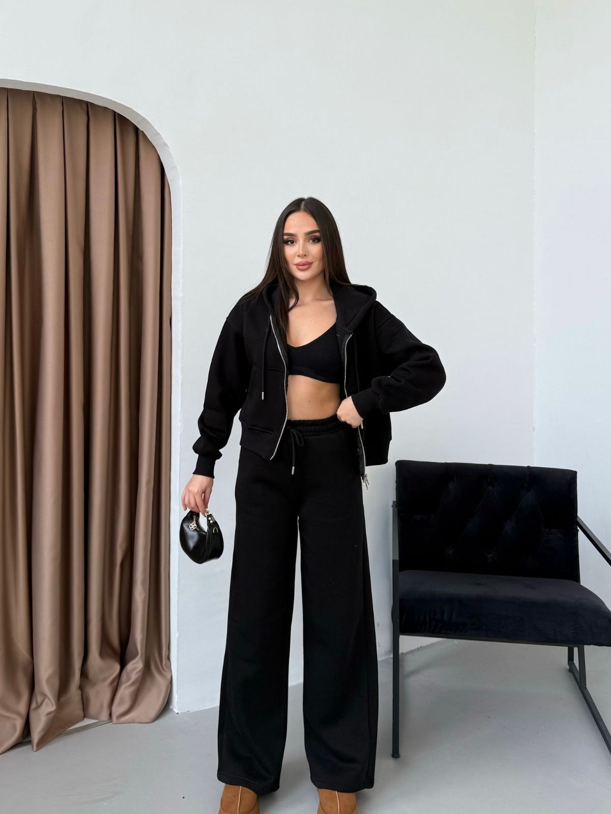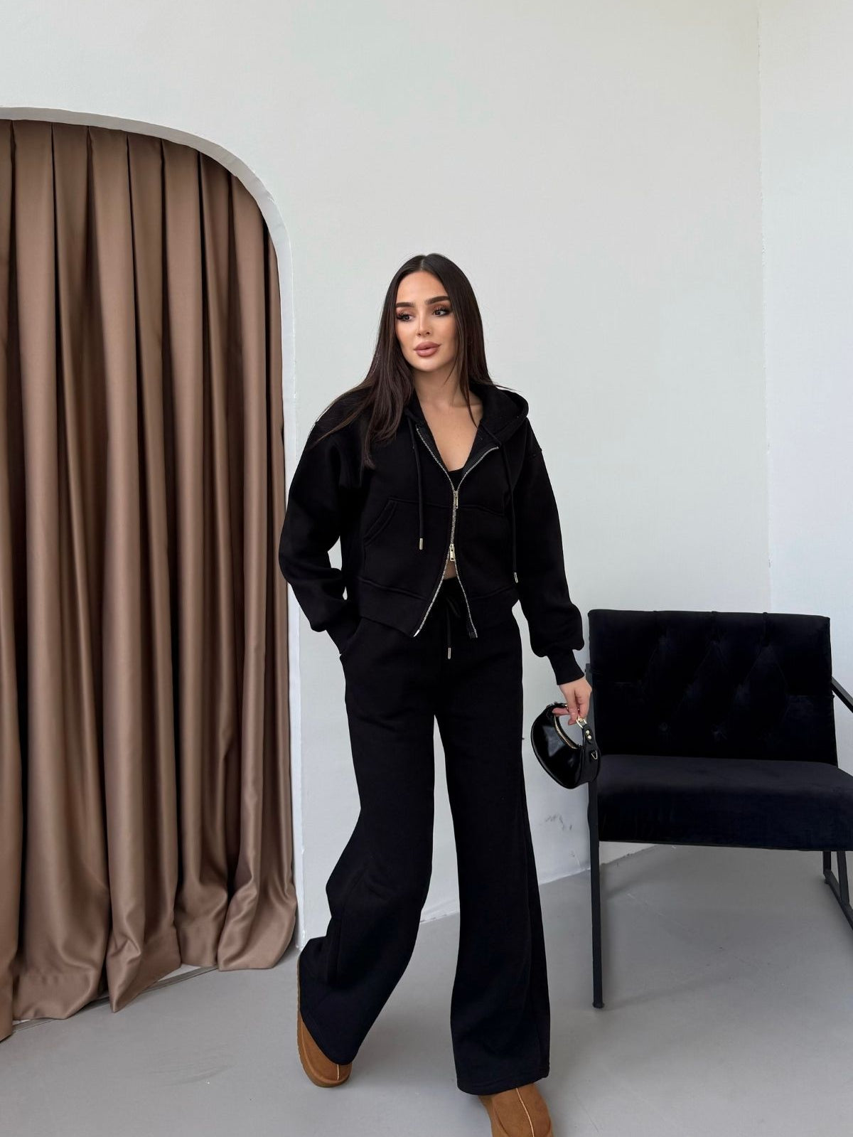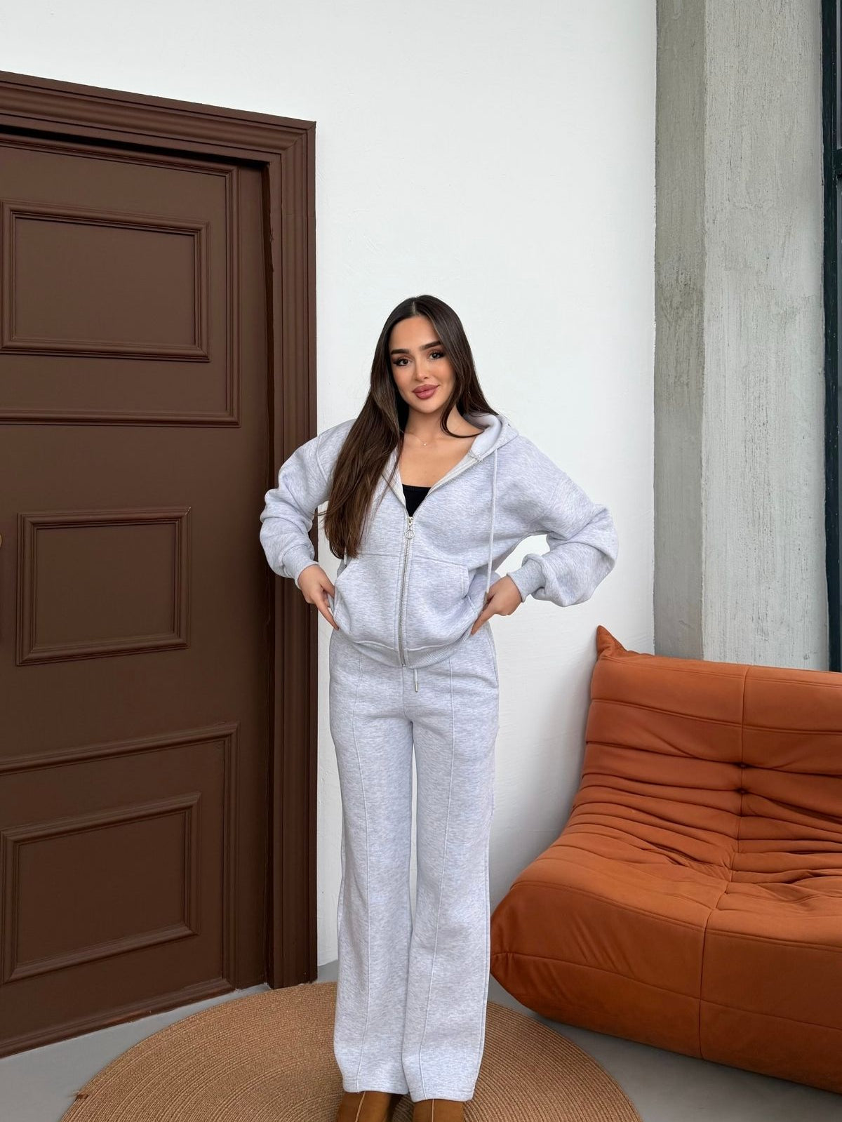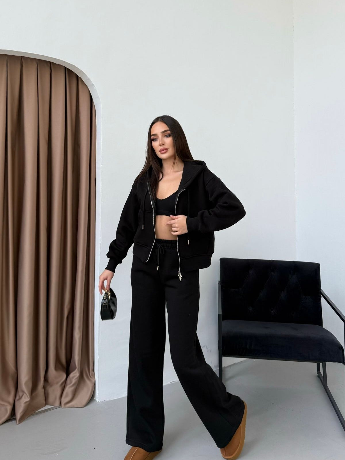 İçi Polar Rahat Kesim Kapüşonlu Fermuarlı Eşofman Takımı
