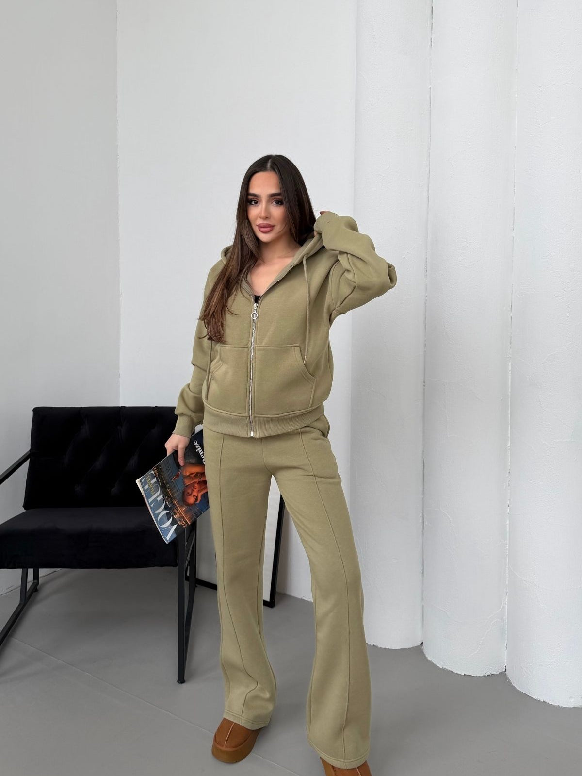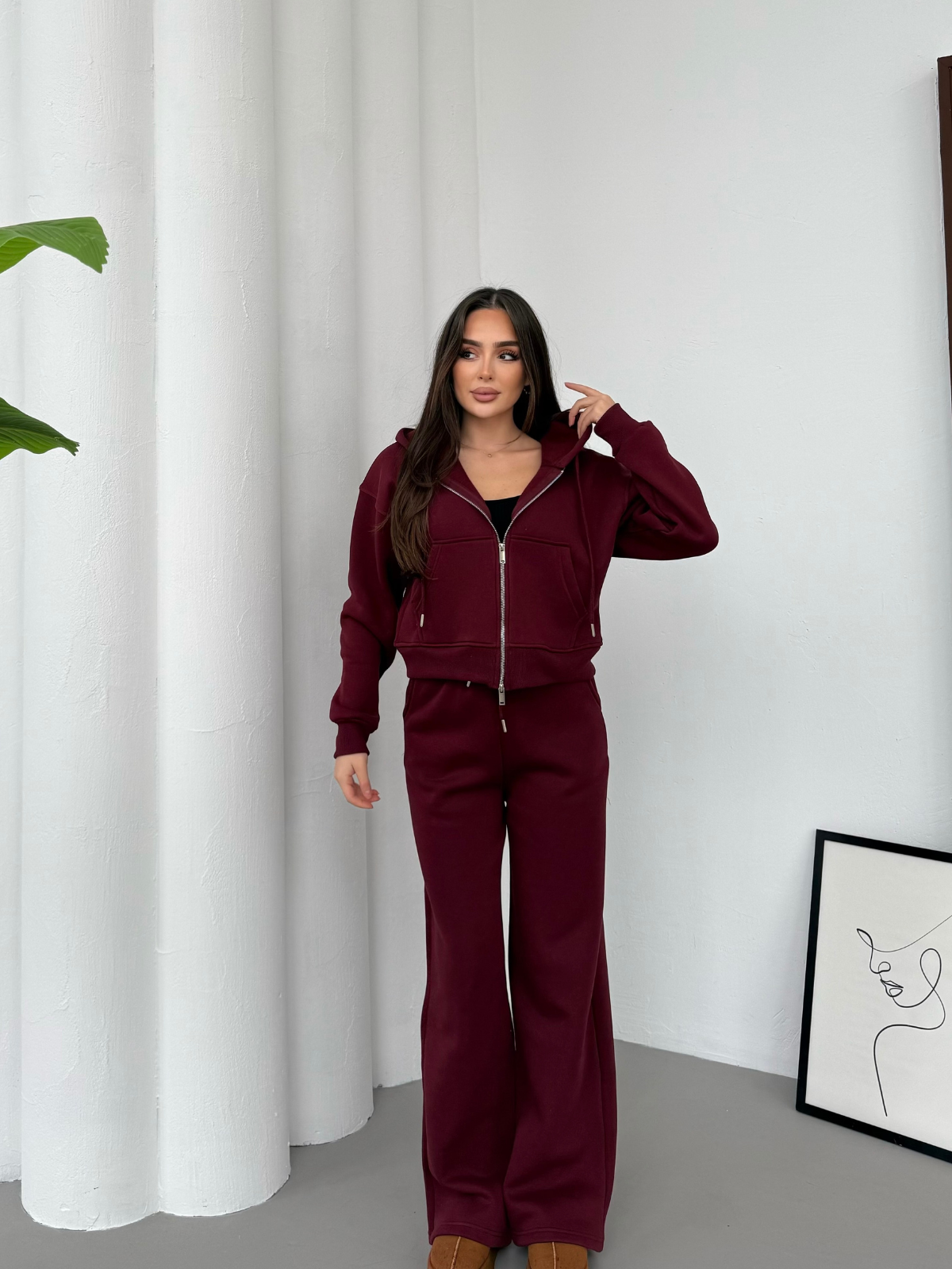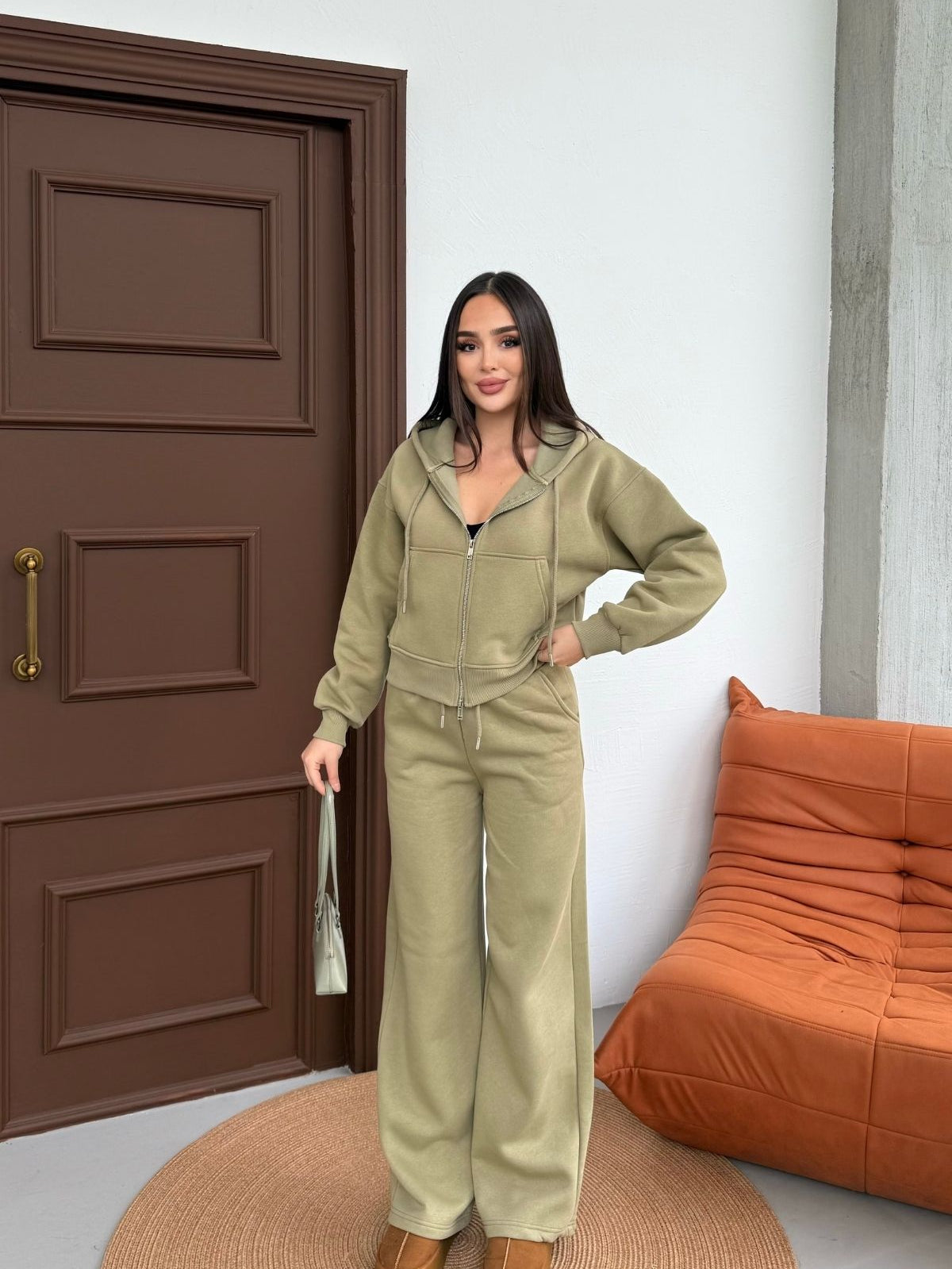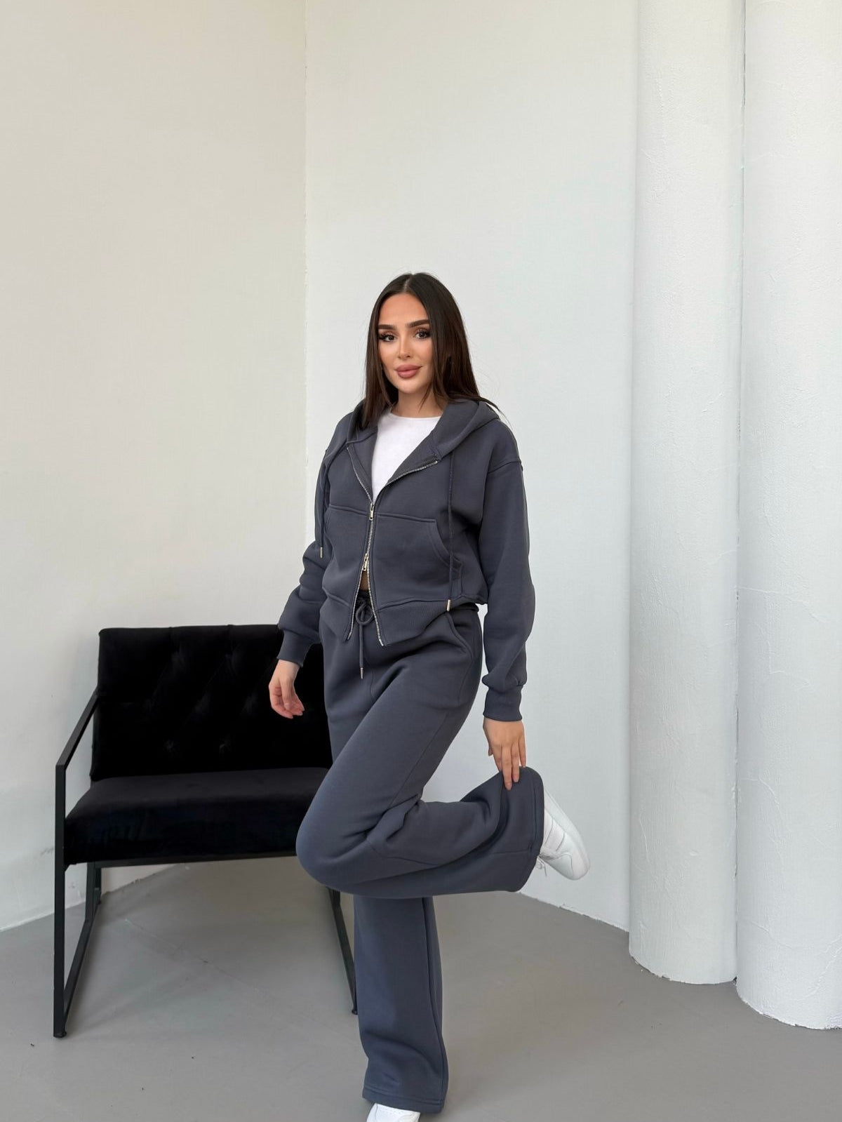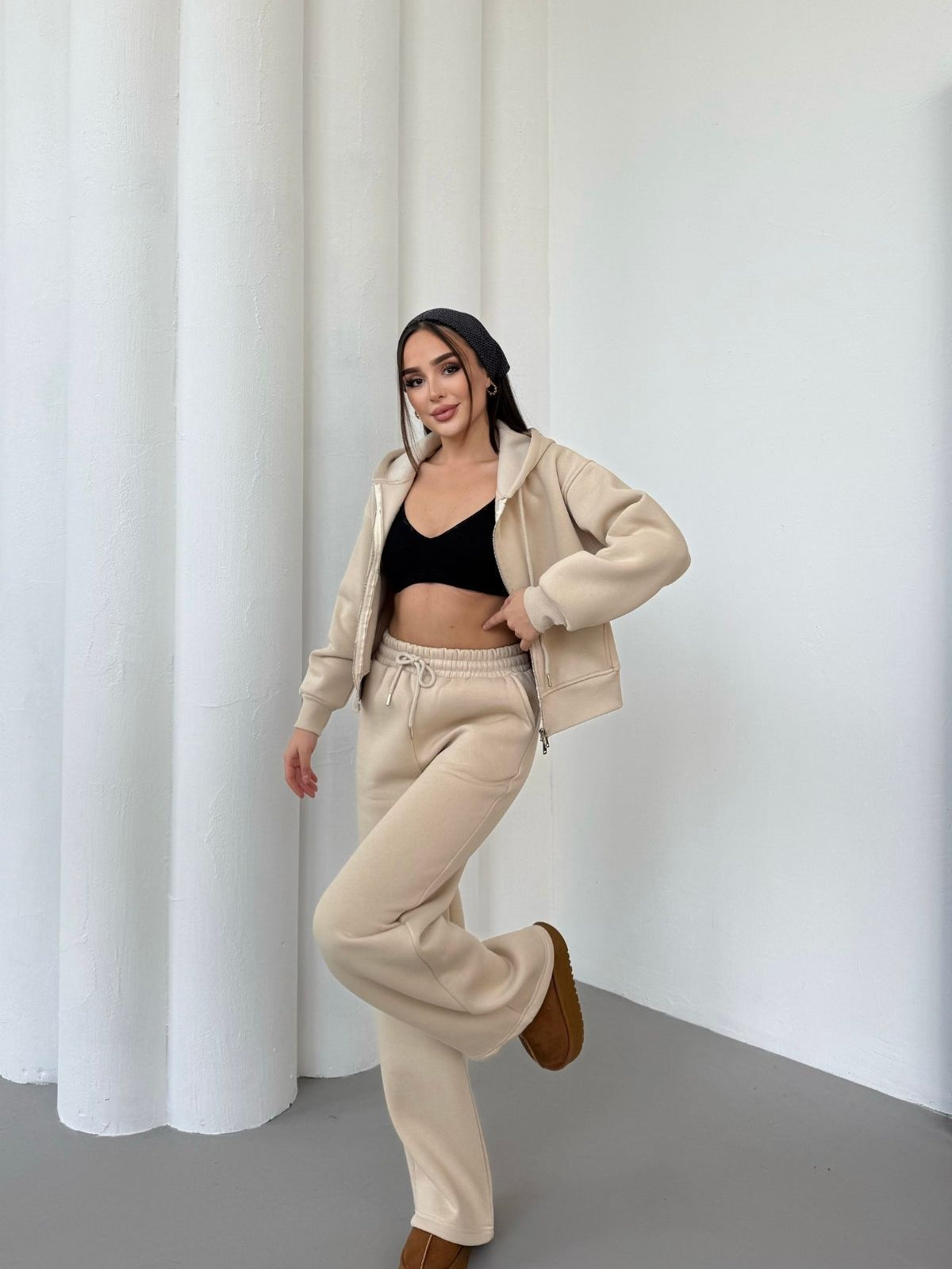 İçi Polar Rahat Kesim Kapüşonlu Fermuarlı Eşofman Takımı