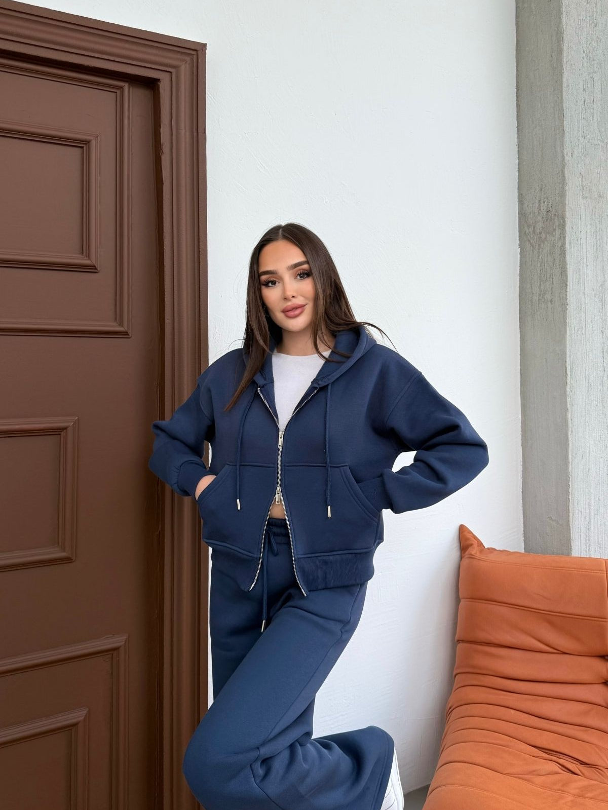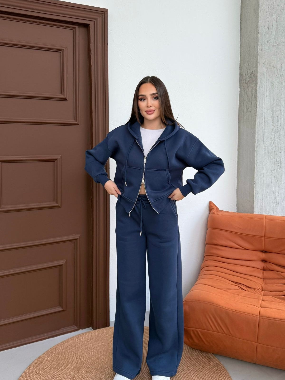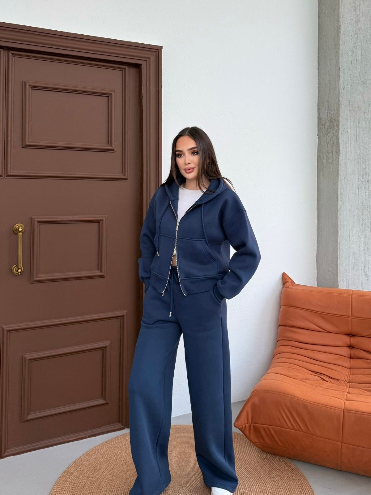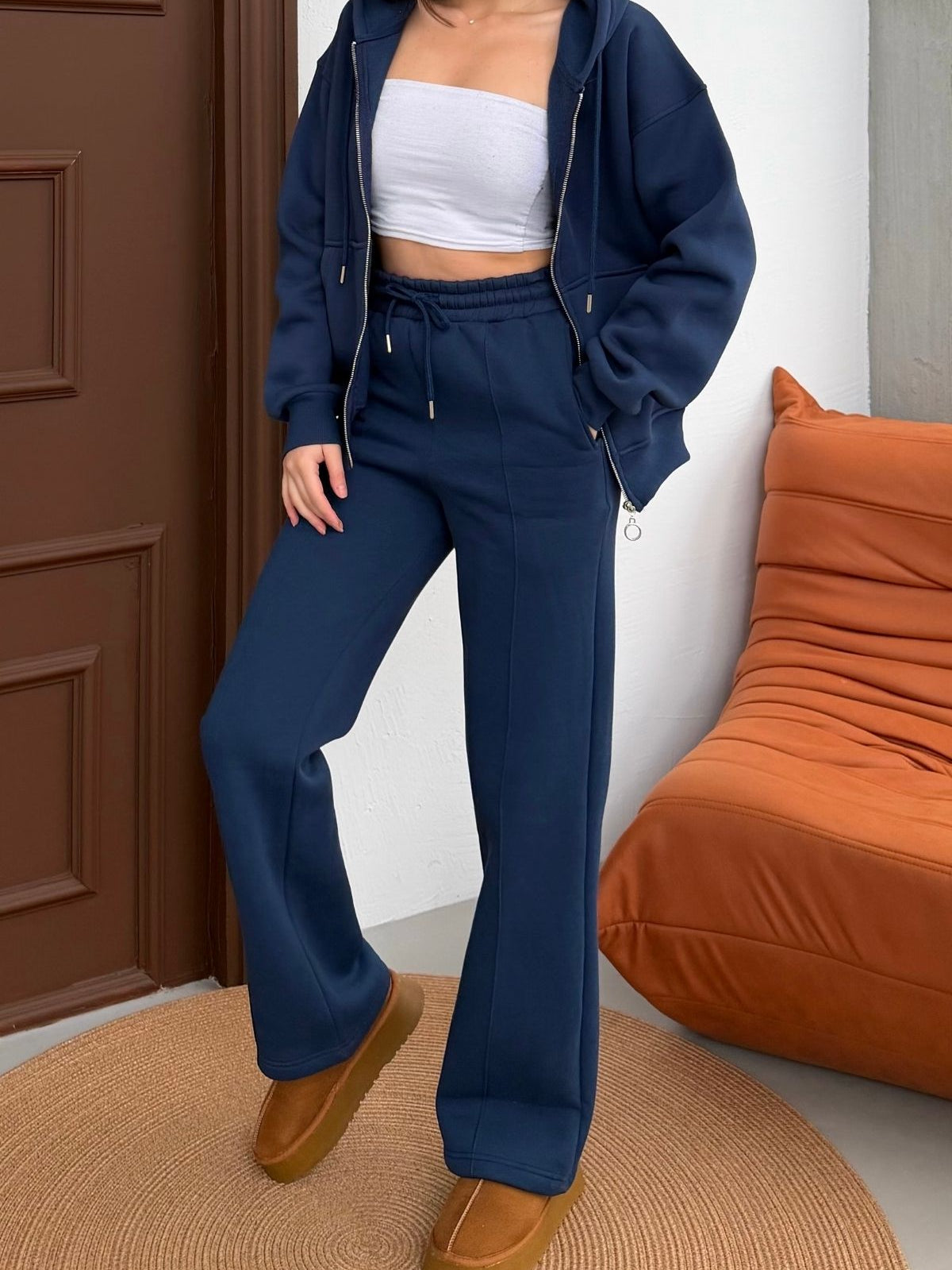İçi Polar Rahat Kesim Kapüşonlu Fermuarlı Eşofman Takımı