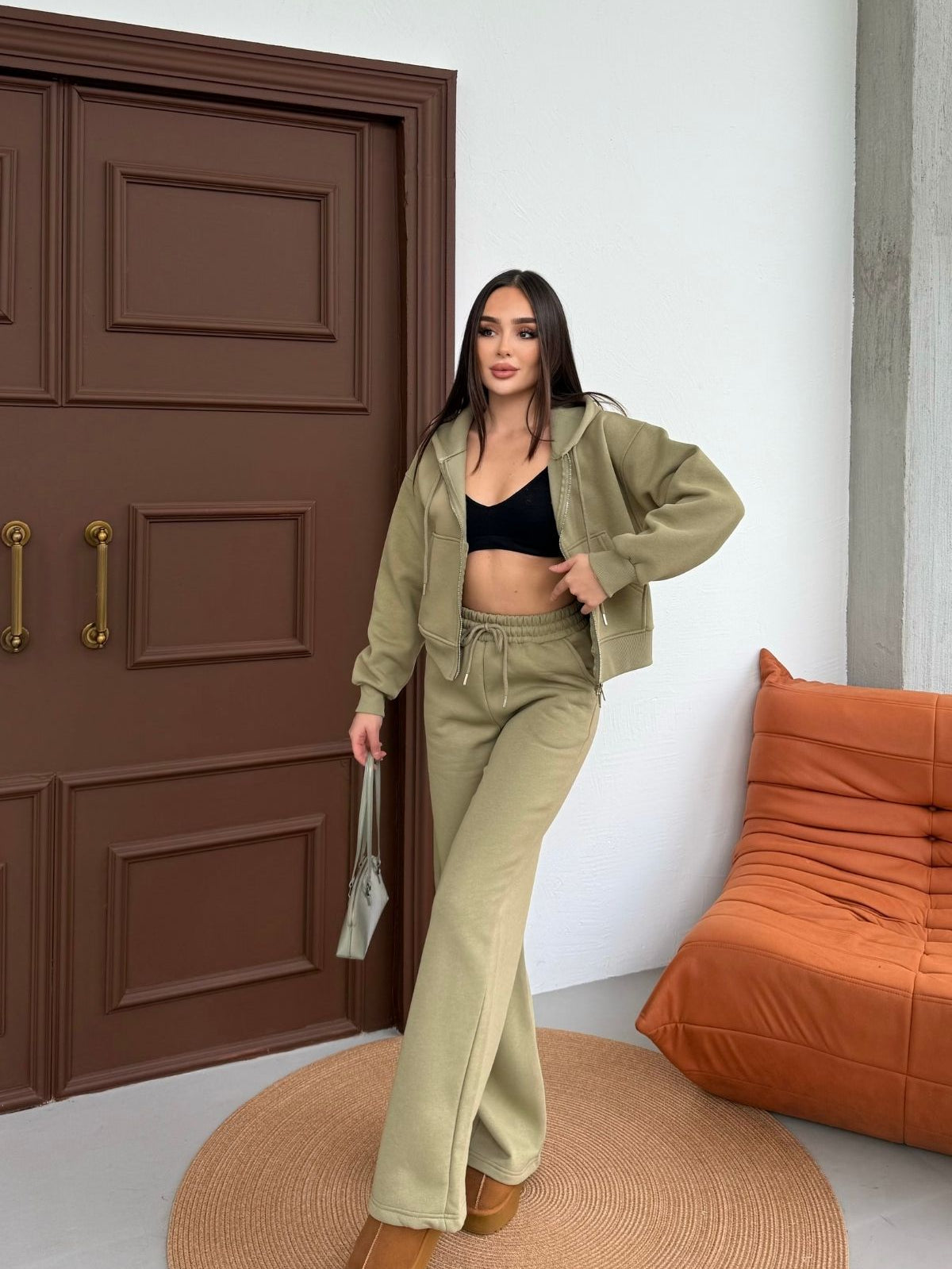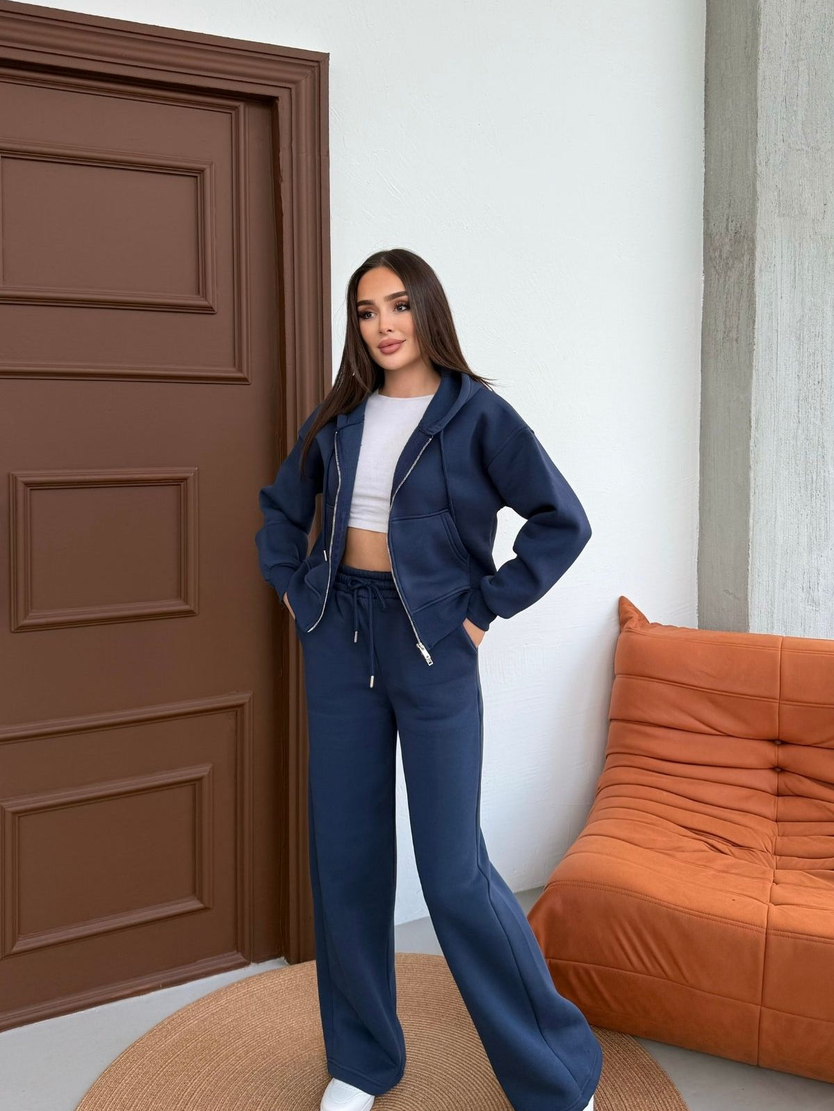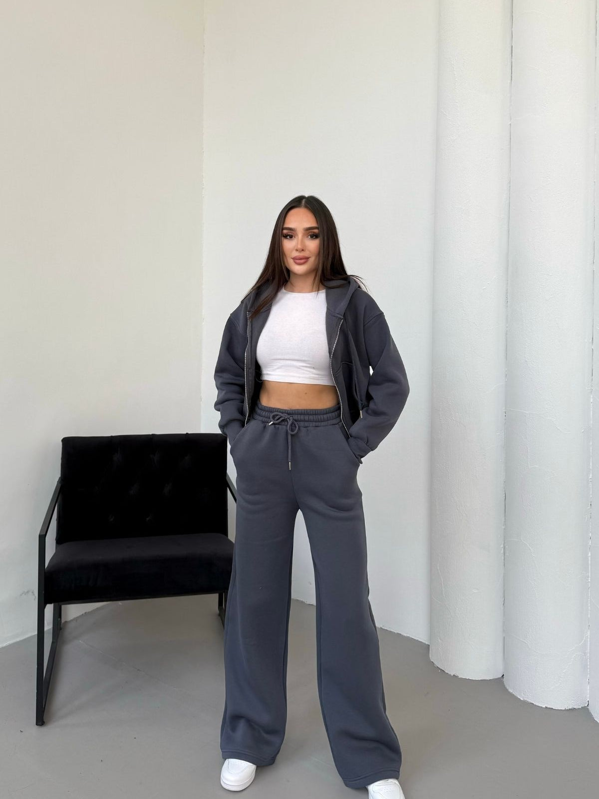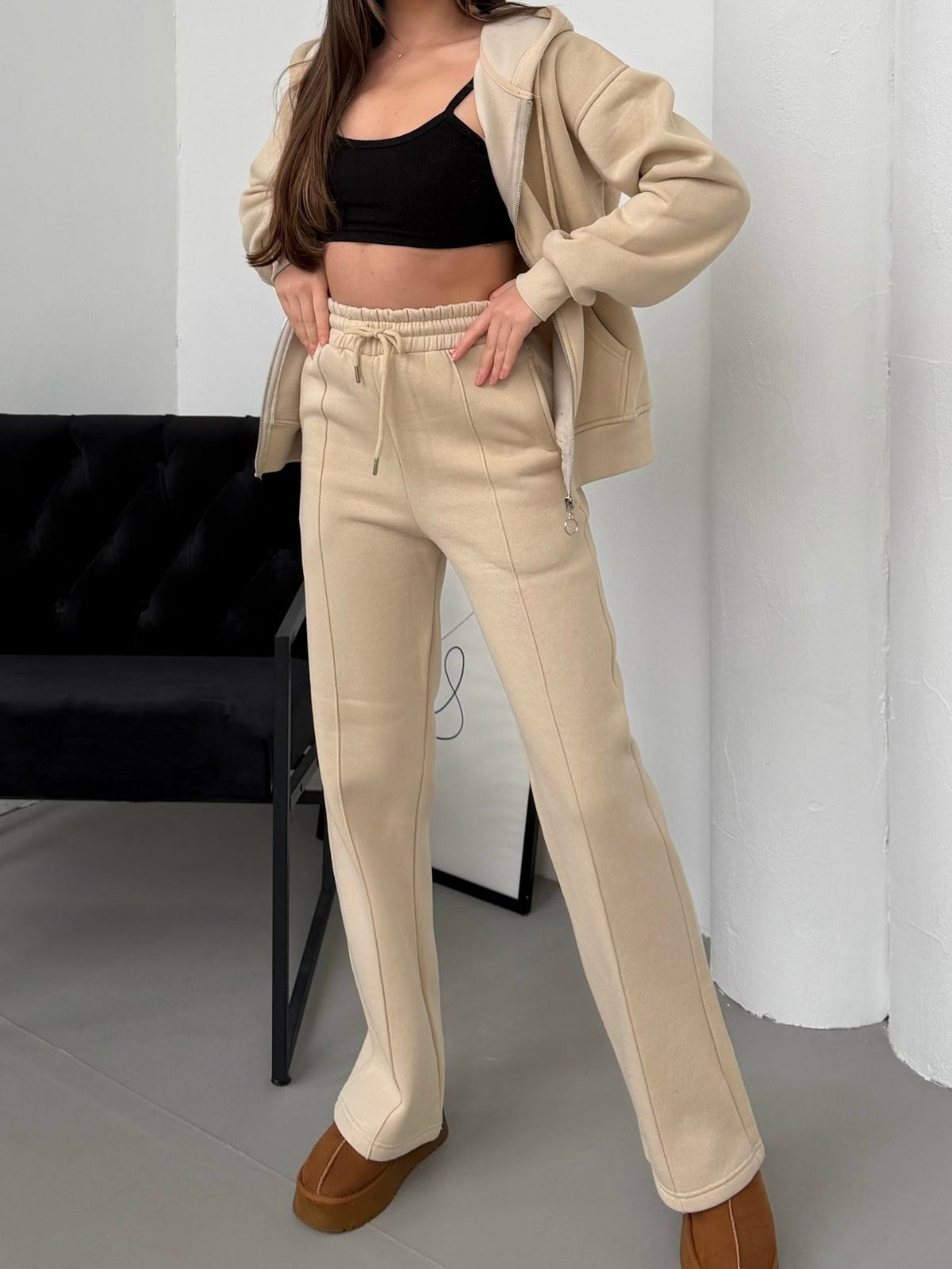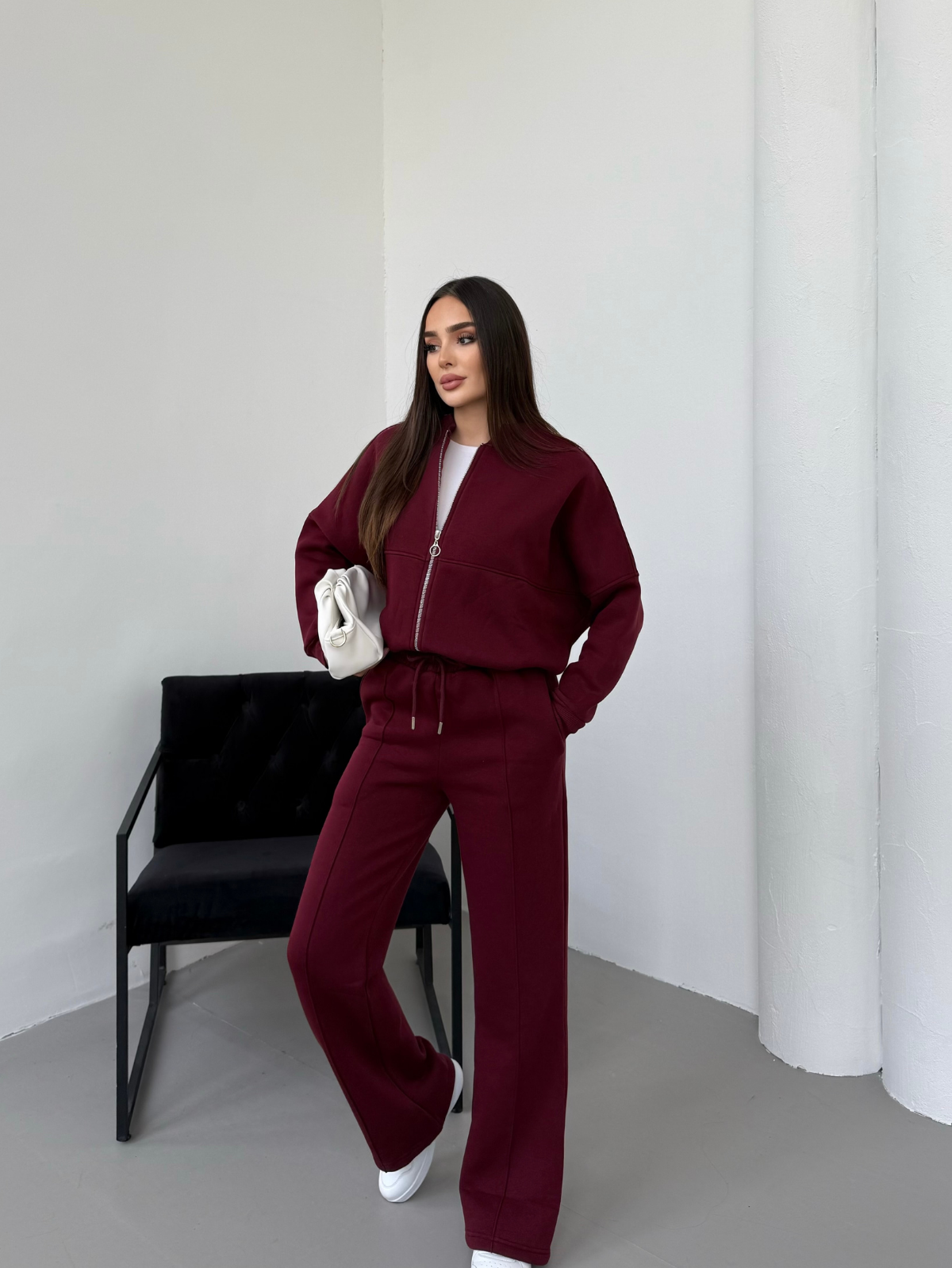 İçi Polar Rahat Kesim Kapüşonlu Fermuarlı Eşofman Takımı