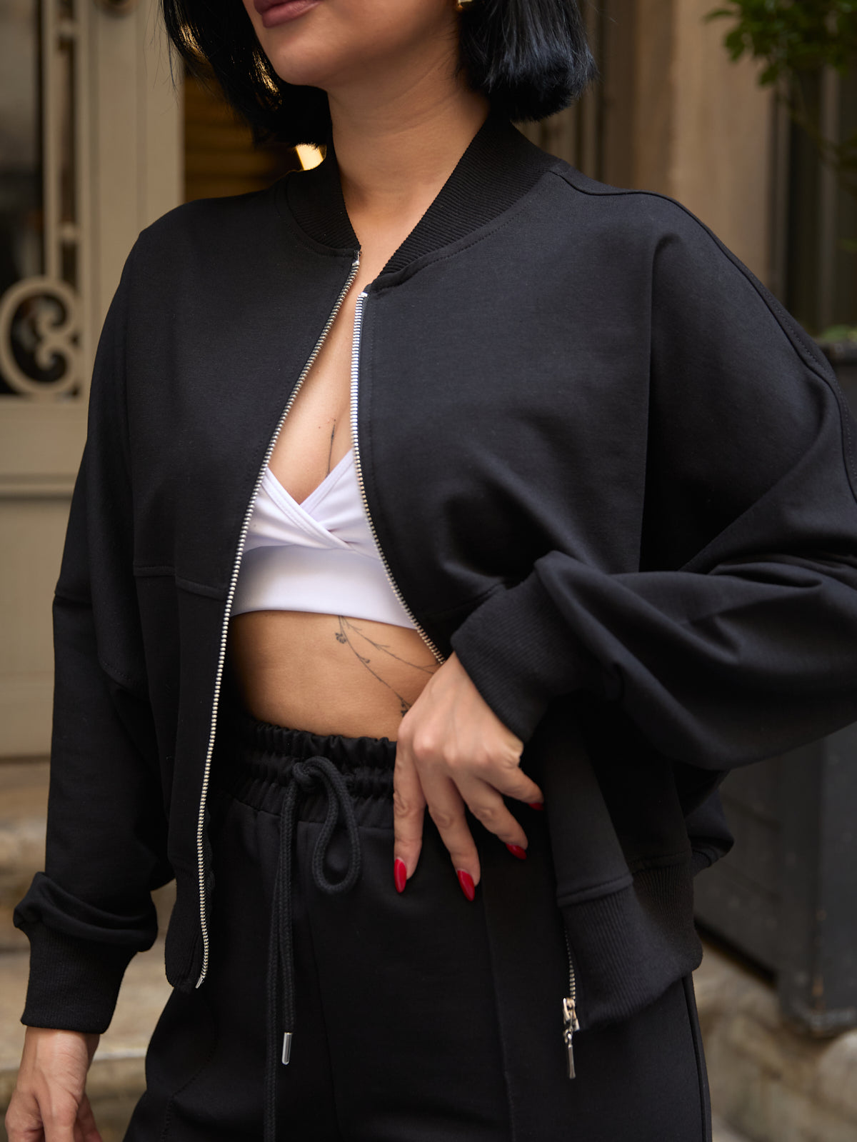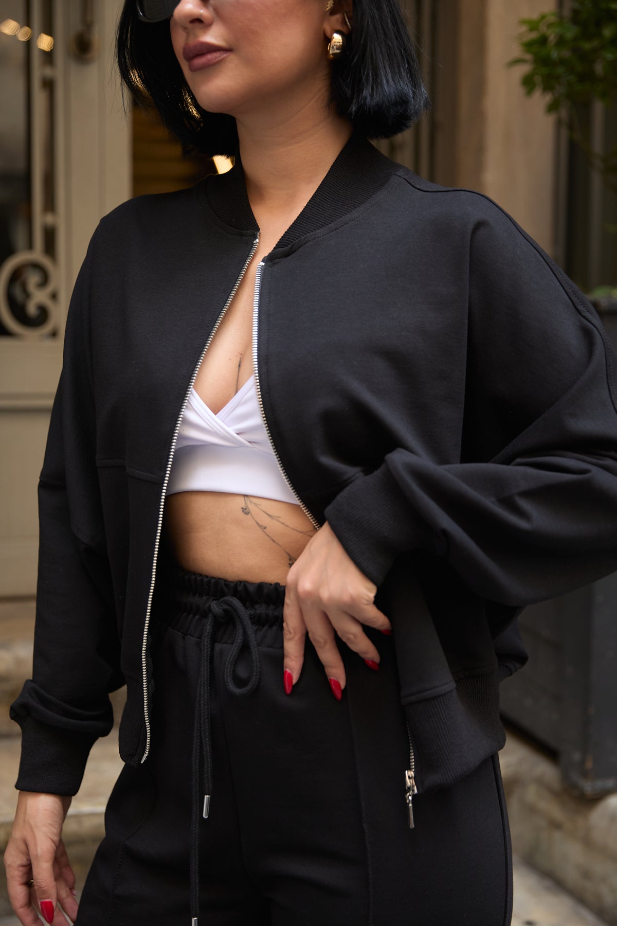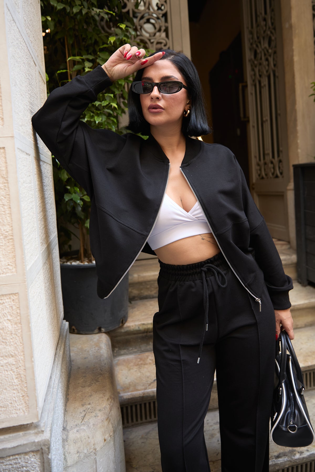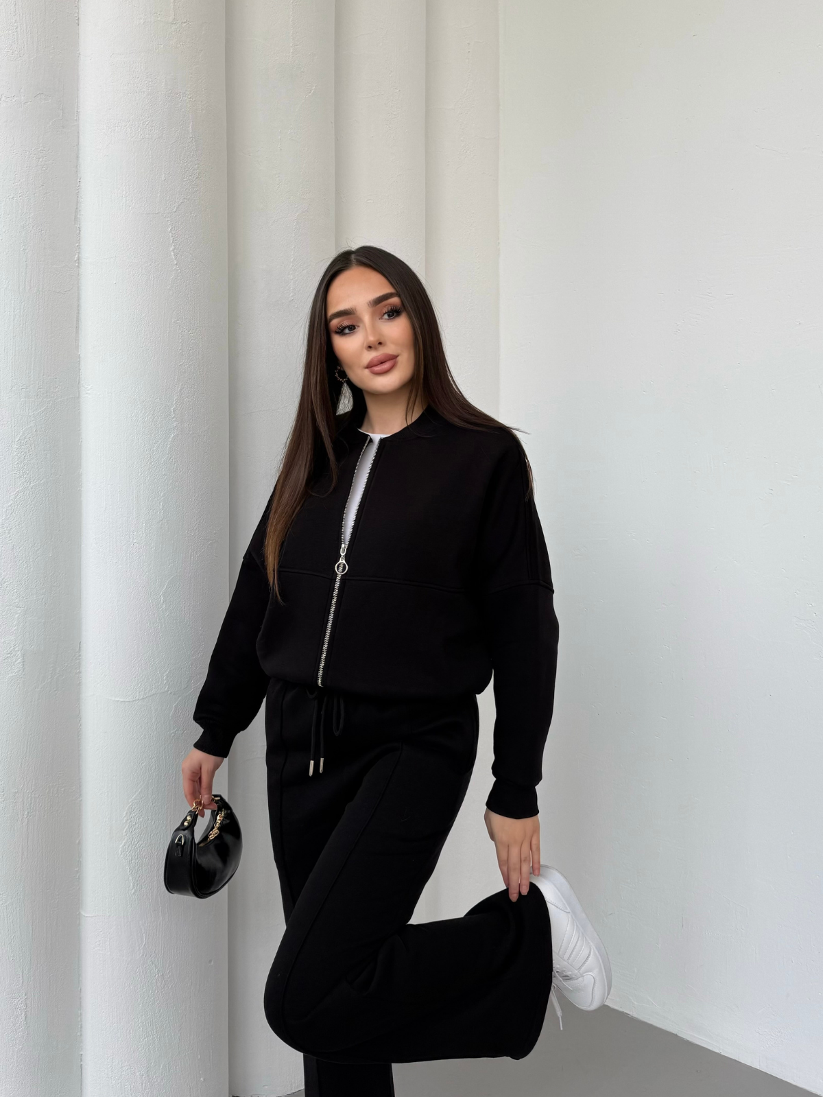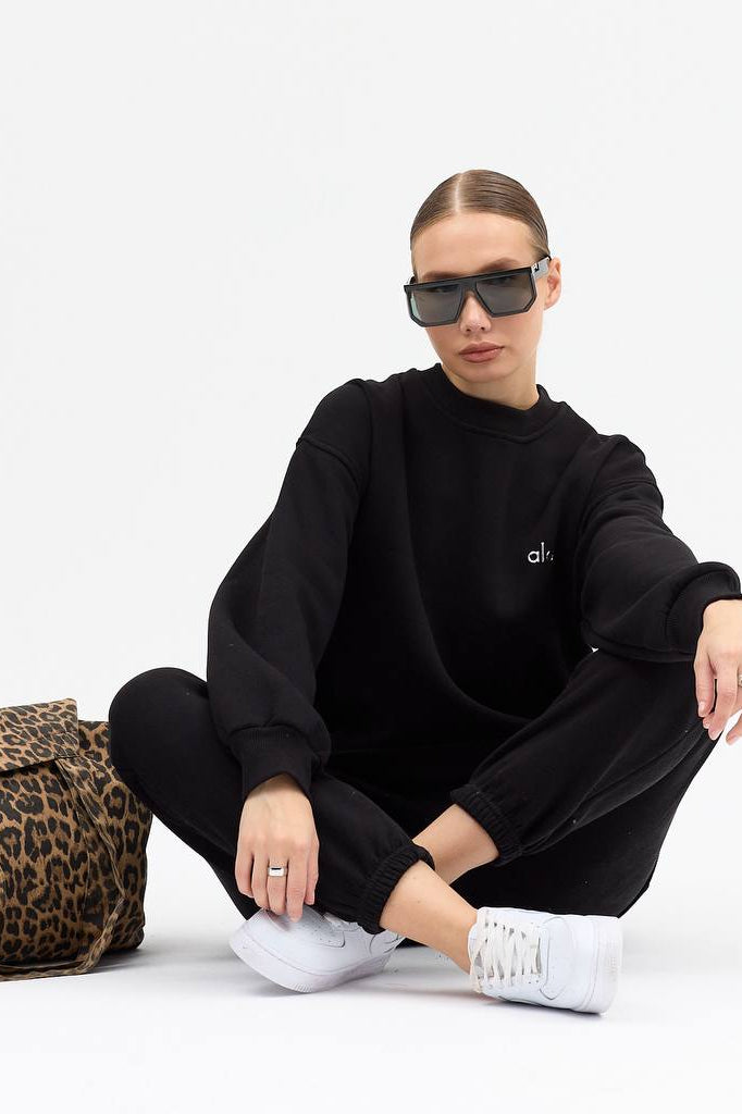 Regular Fit 2'li Takım Sweatshirt Beli Lastikli Jogger Siyah Eşofman Altı