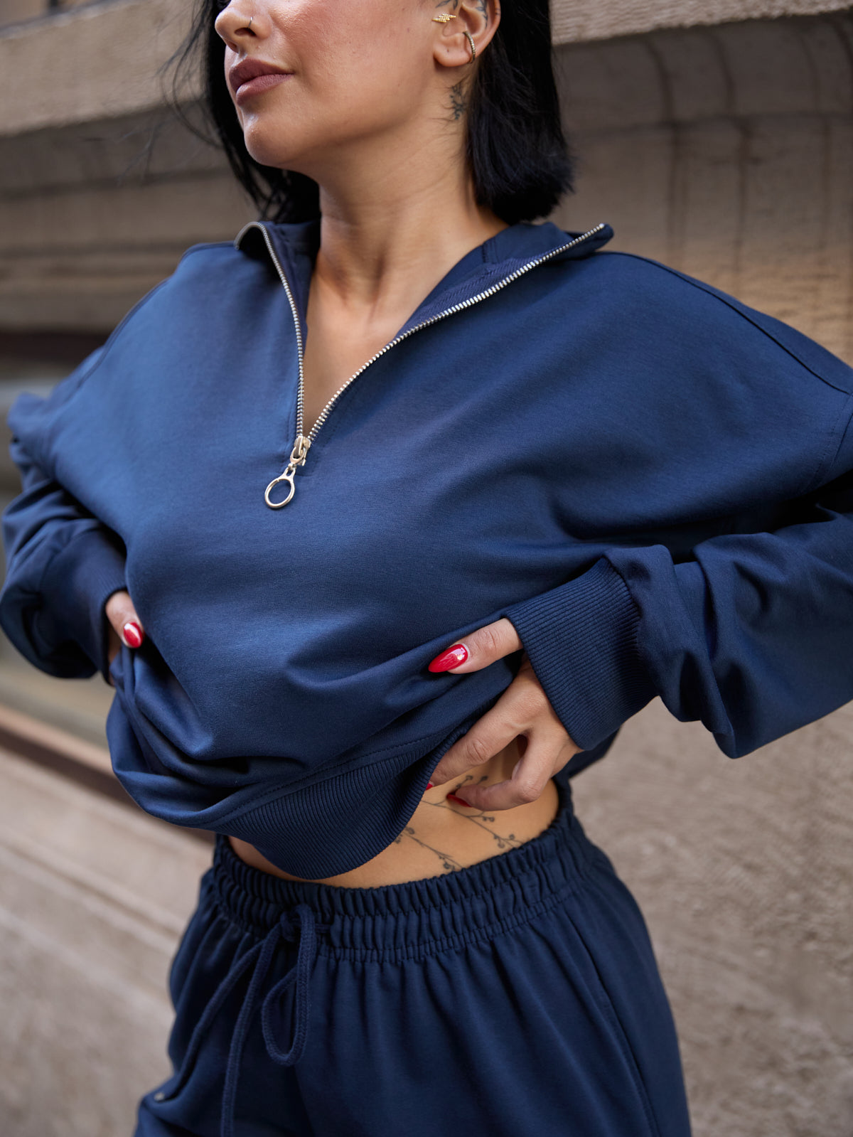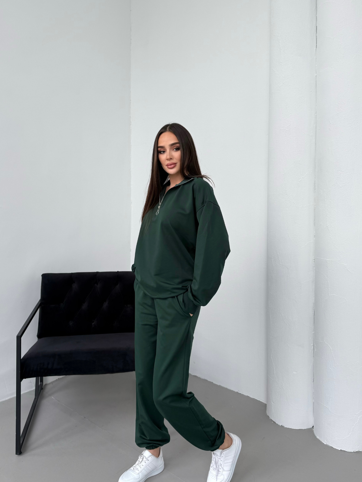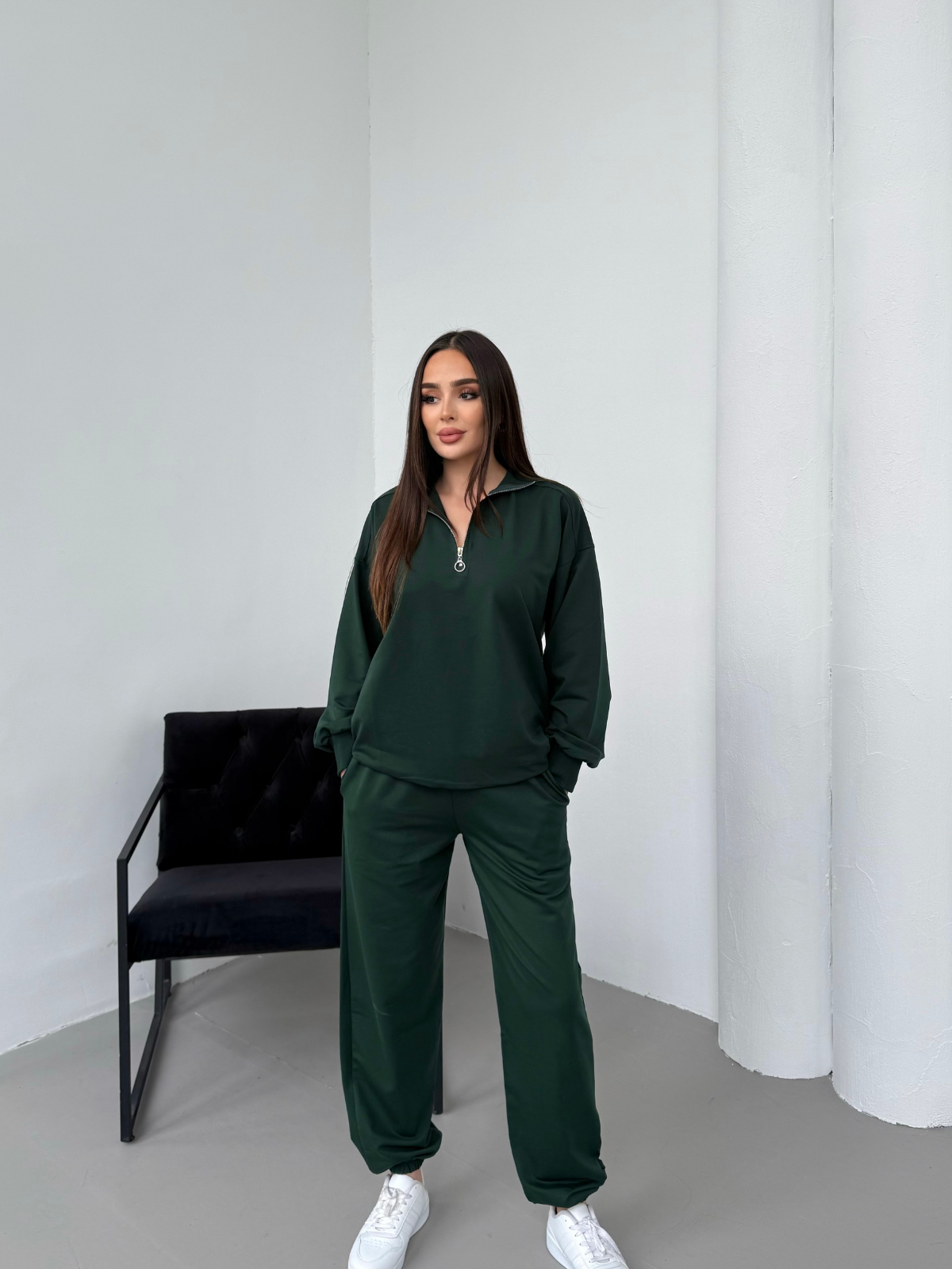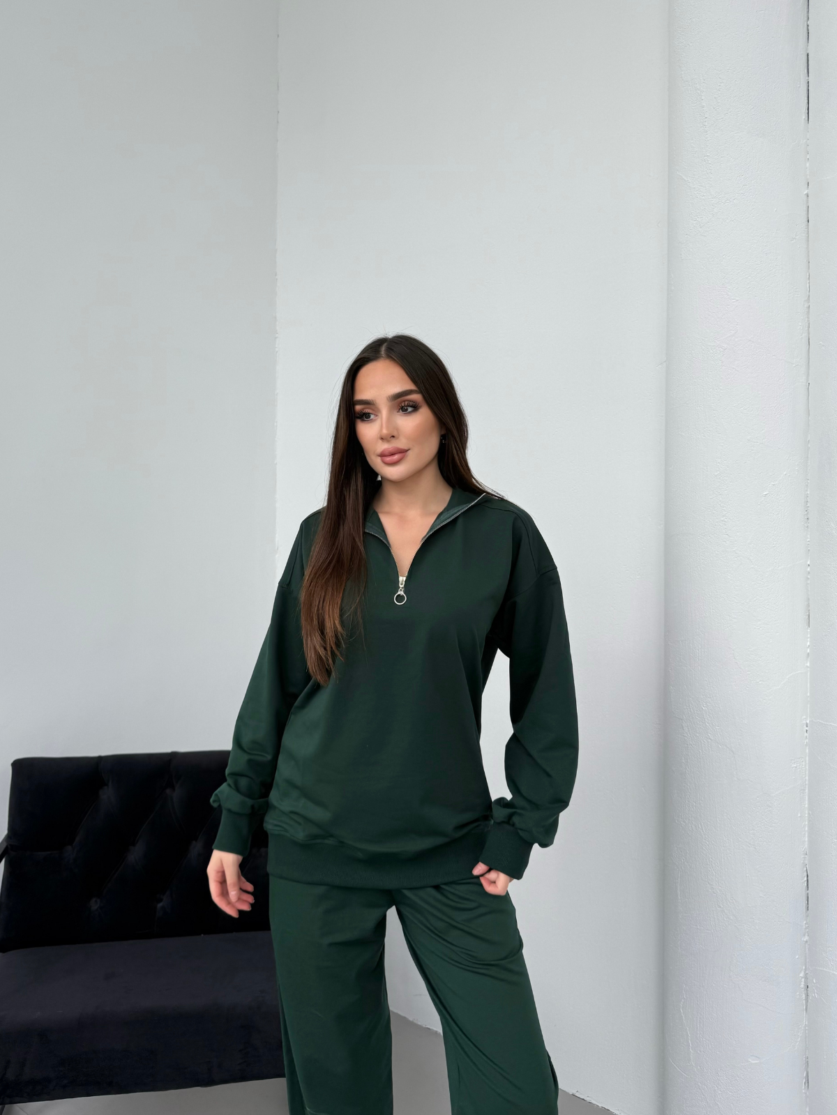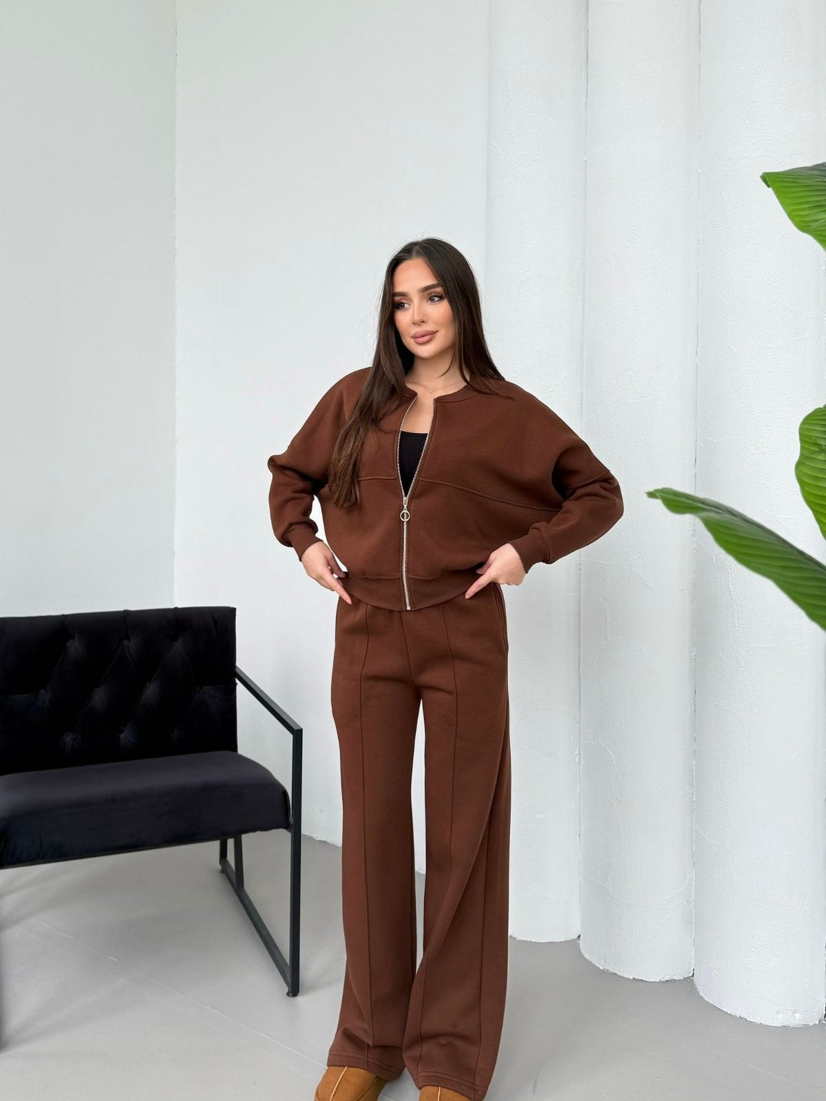 Kadın Yarım Fermuarlı Sweatshırt Ve Paçası Lastikli Kahverengi Eşofman Takımı