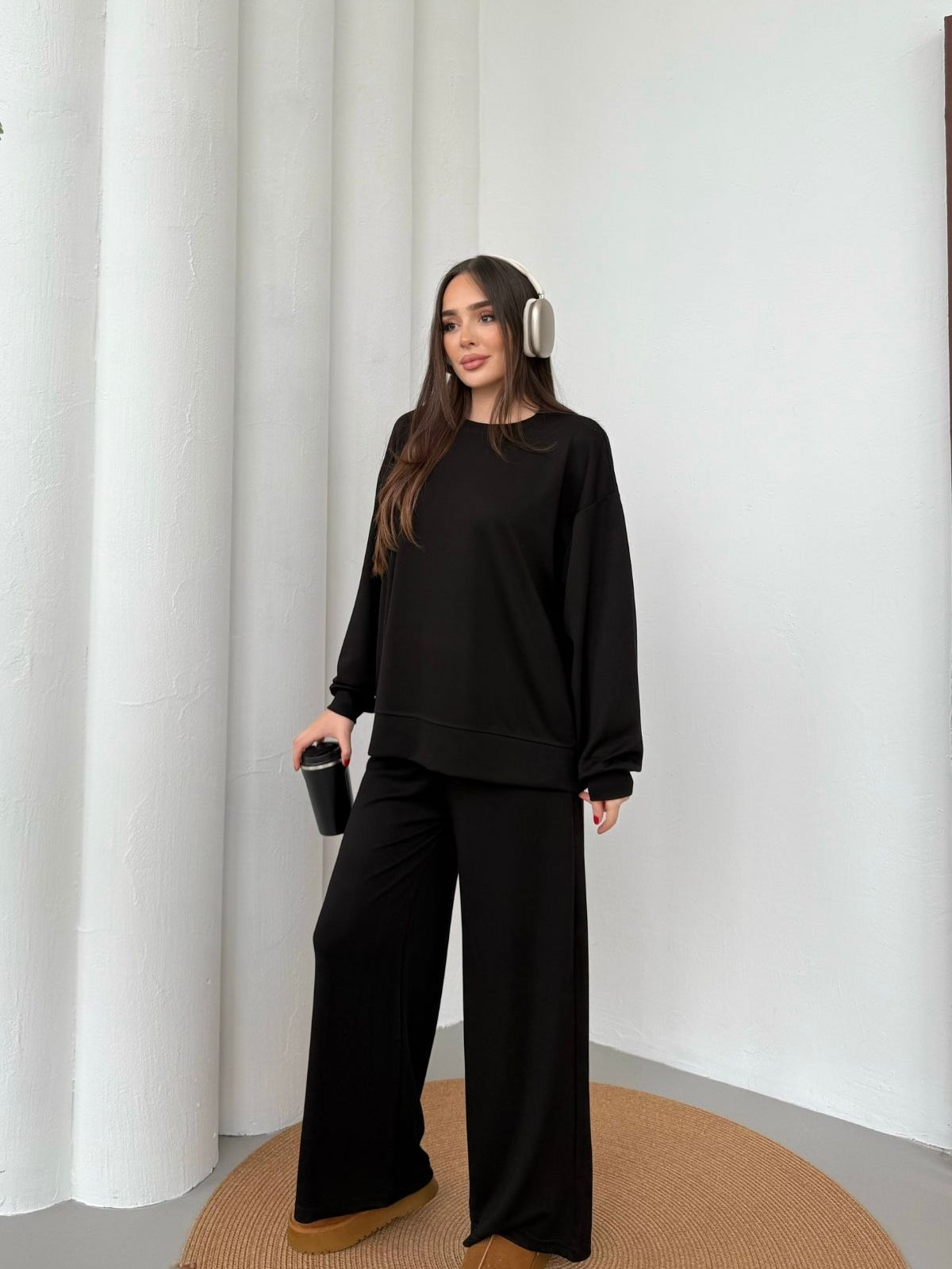 1 DeğerlendirmeBasic Yumuşak Premium Kumaş Uzun Beli Lastikli Bol Paça Modal Alt-Üst Takım