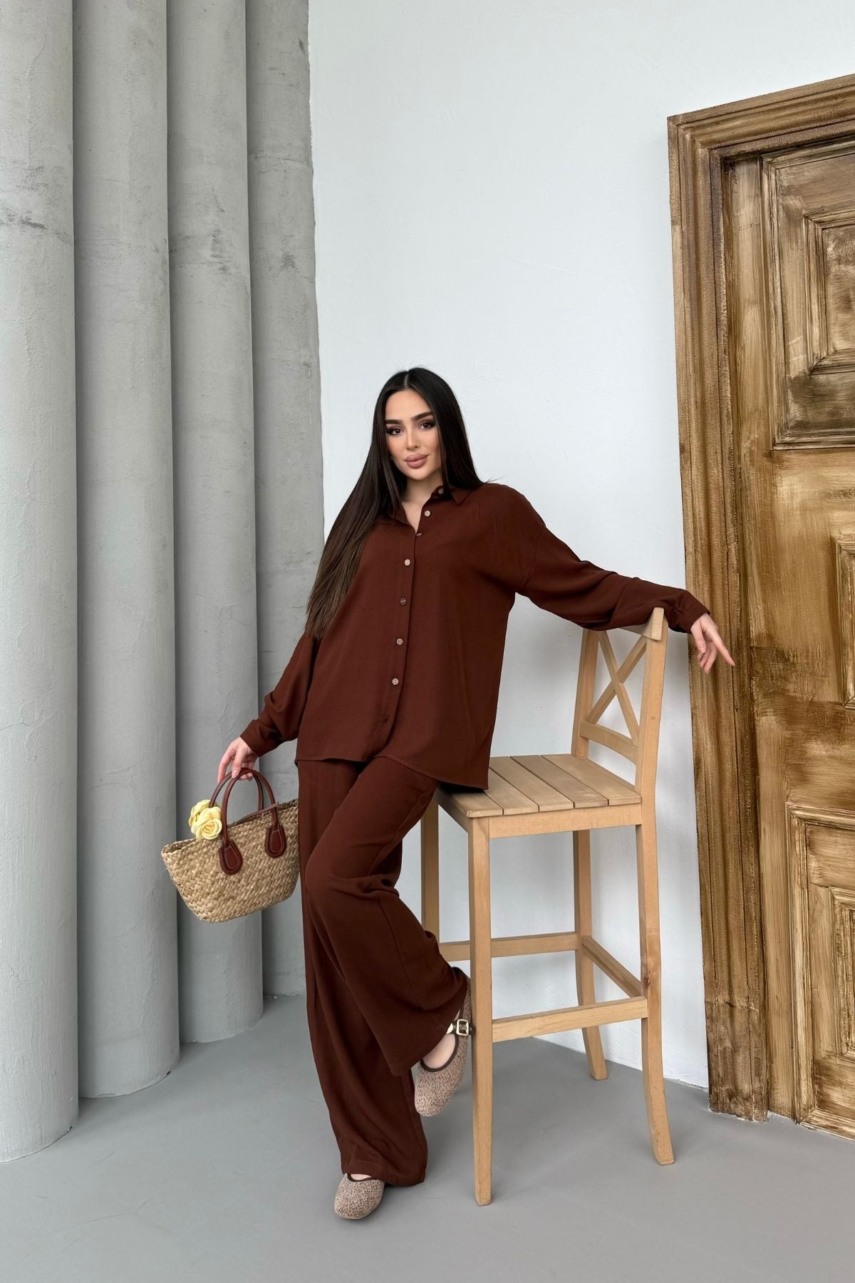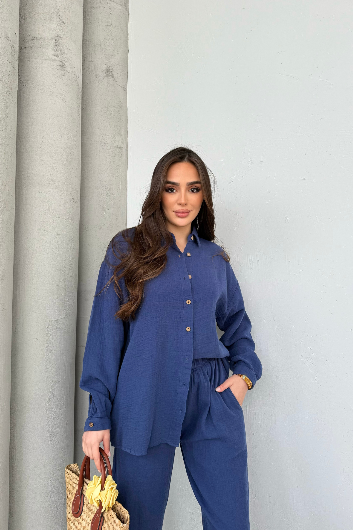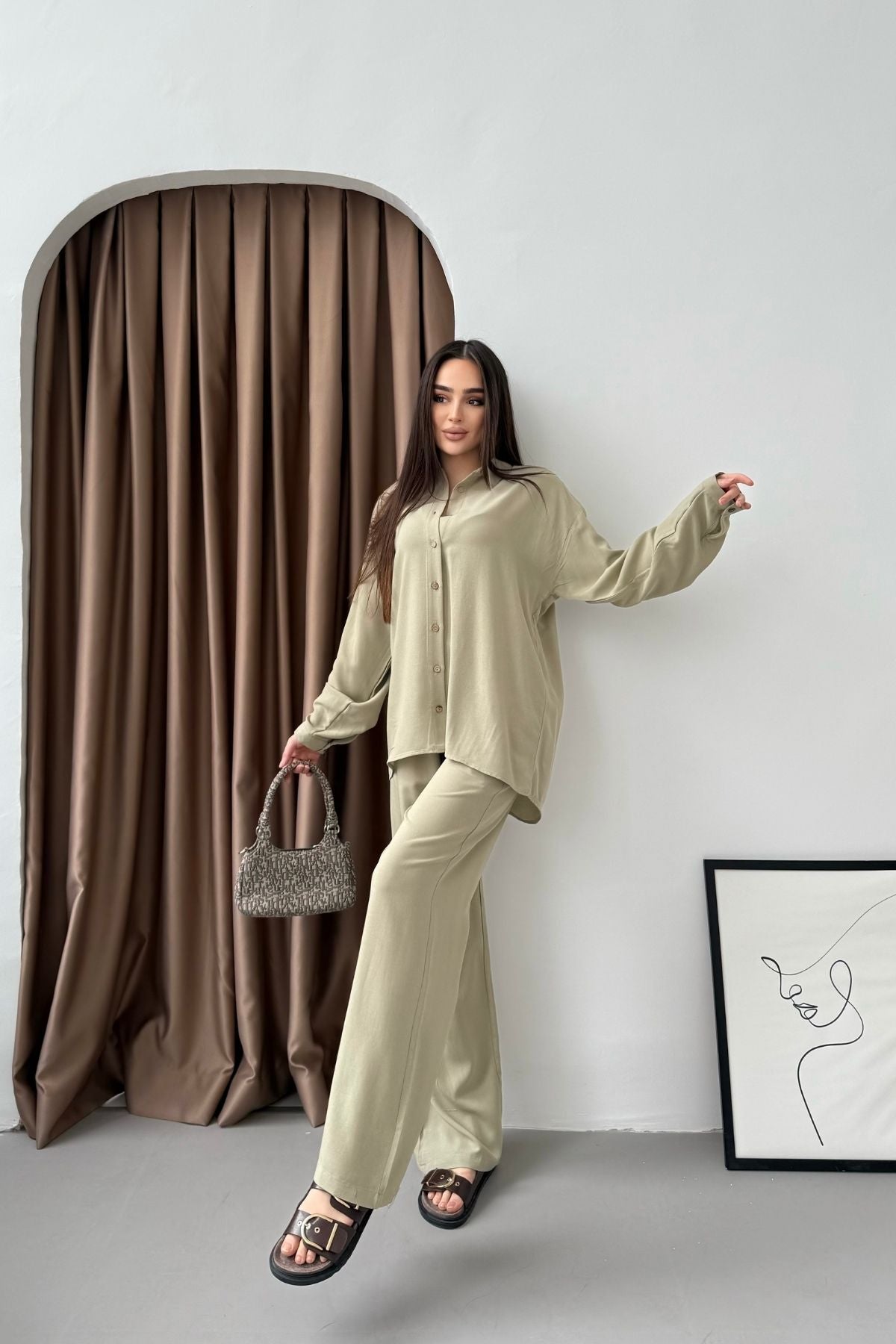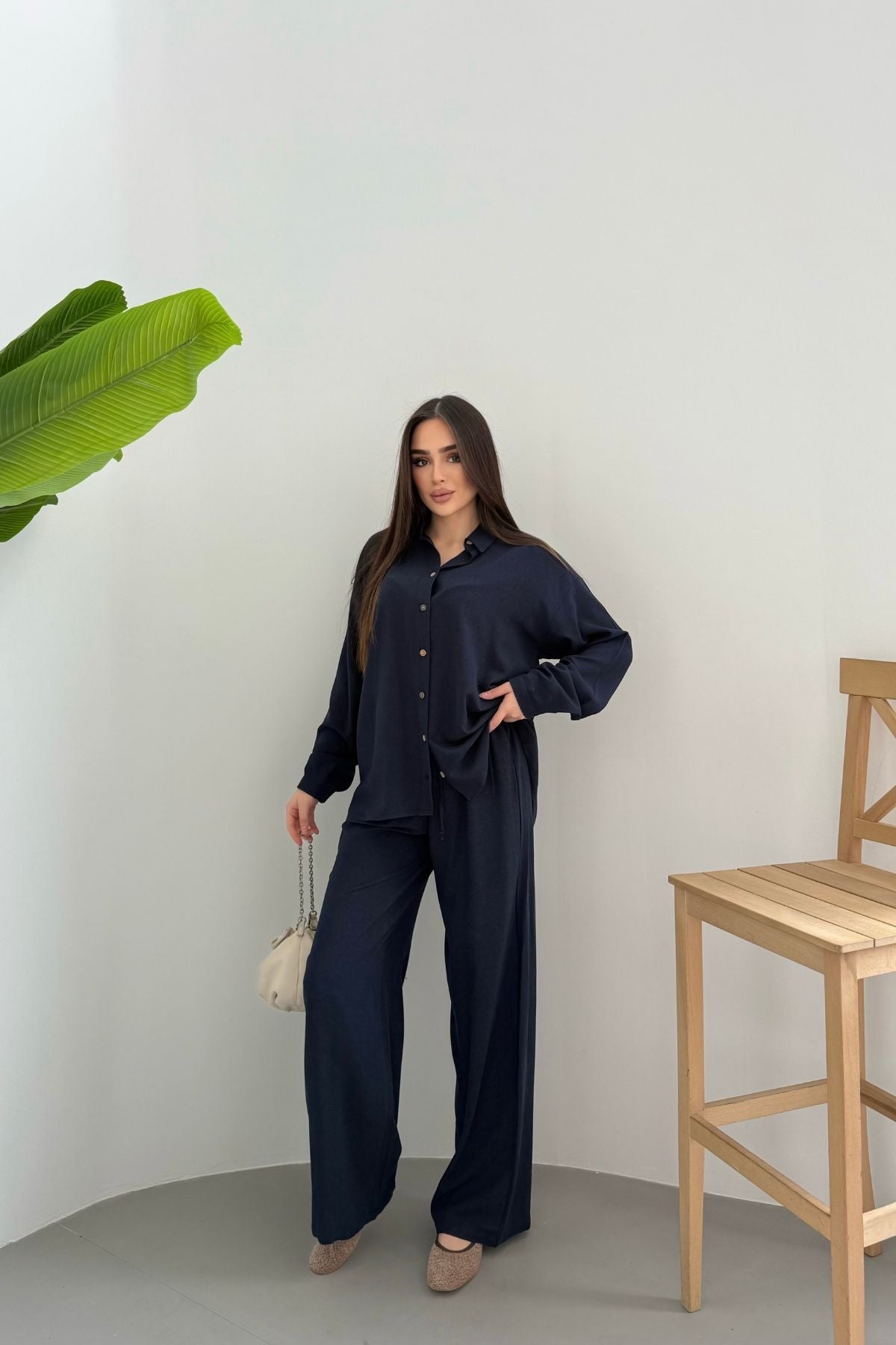 Kadın İkili Rahat Kesim Keten Gömlek Pantolon Alt Üst Takım