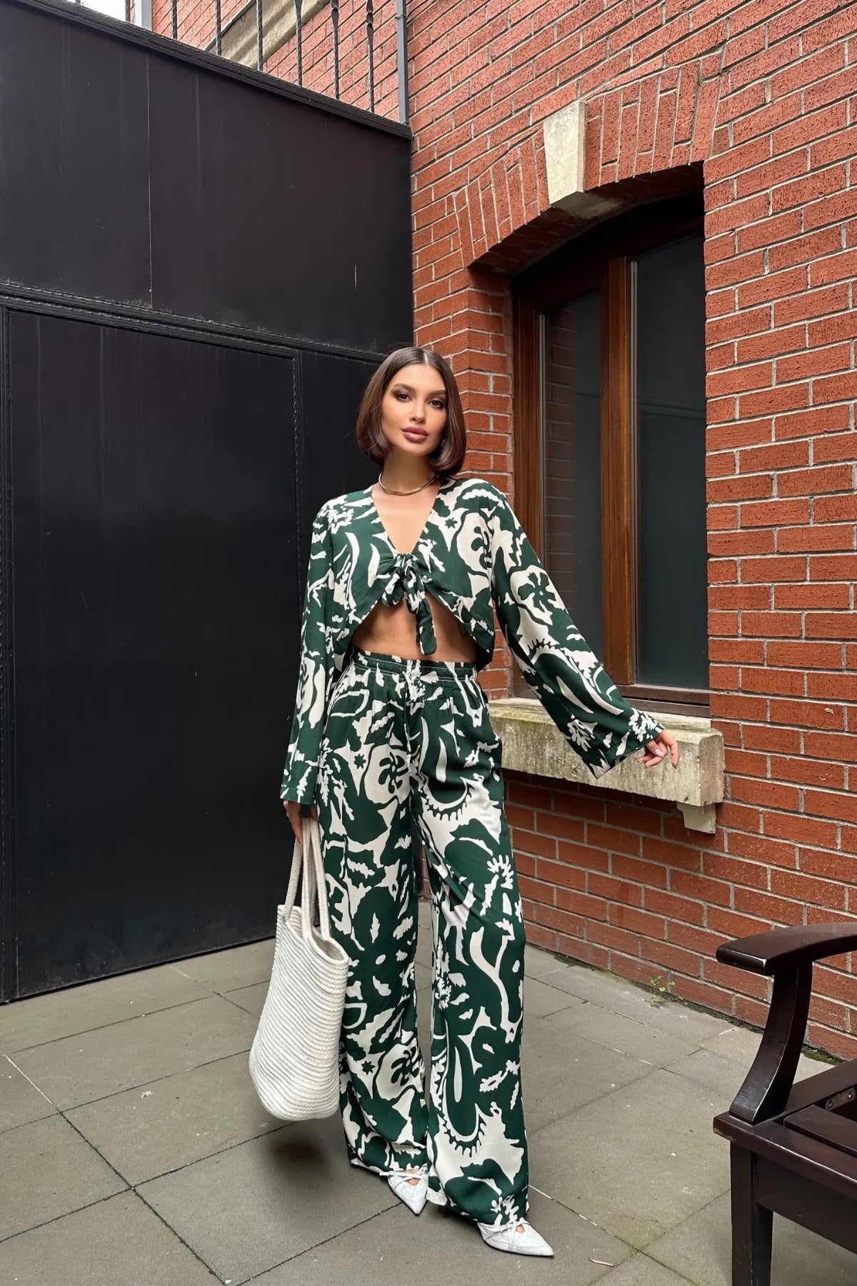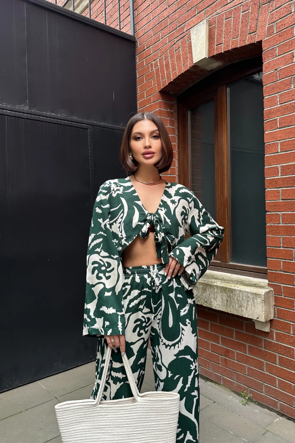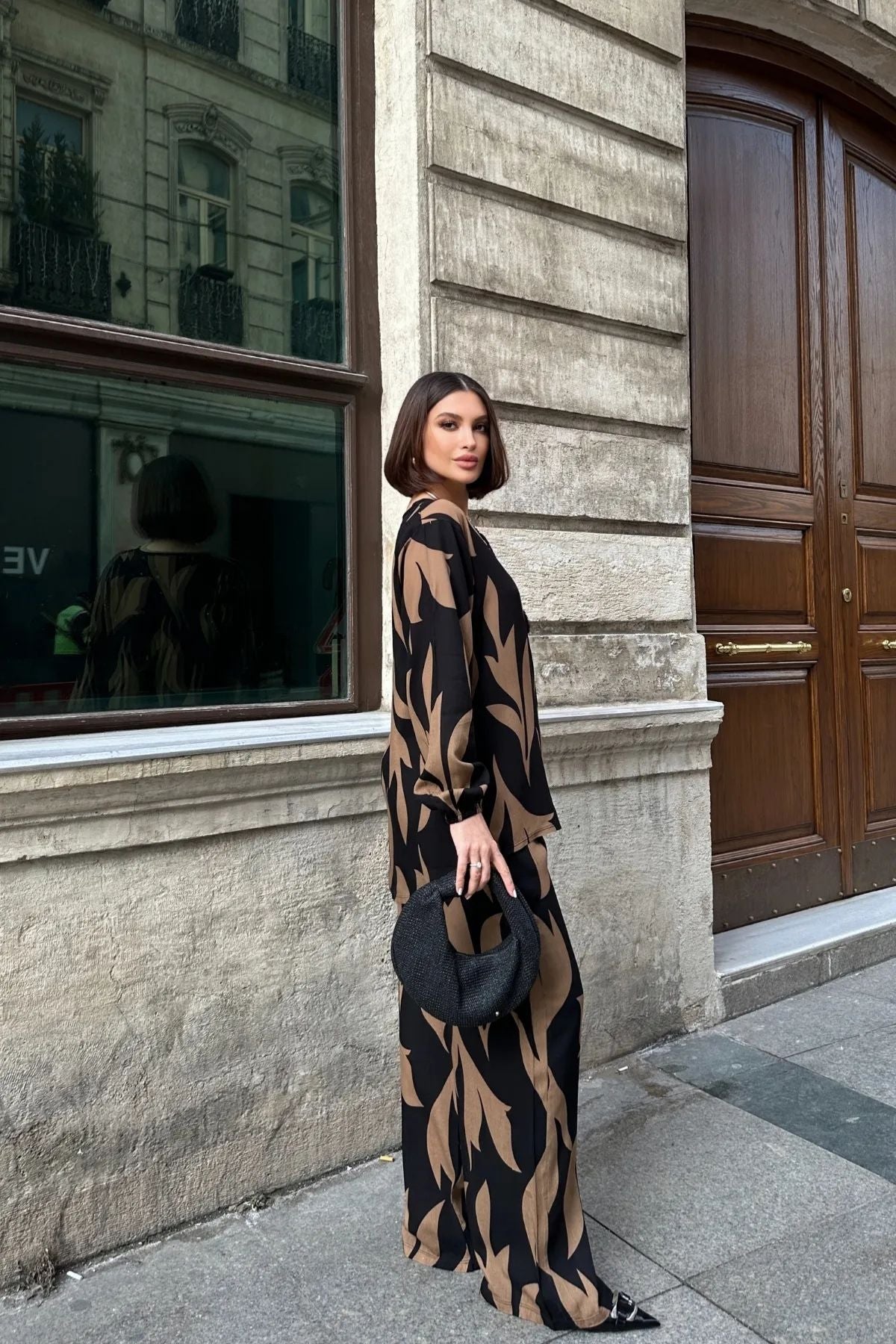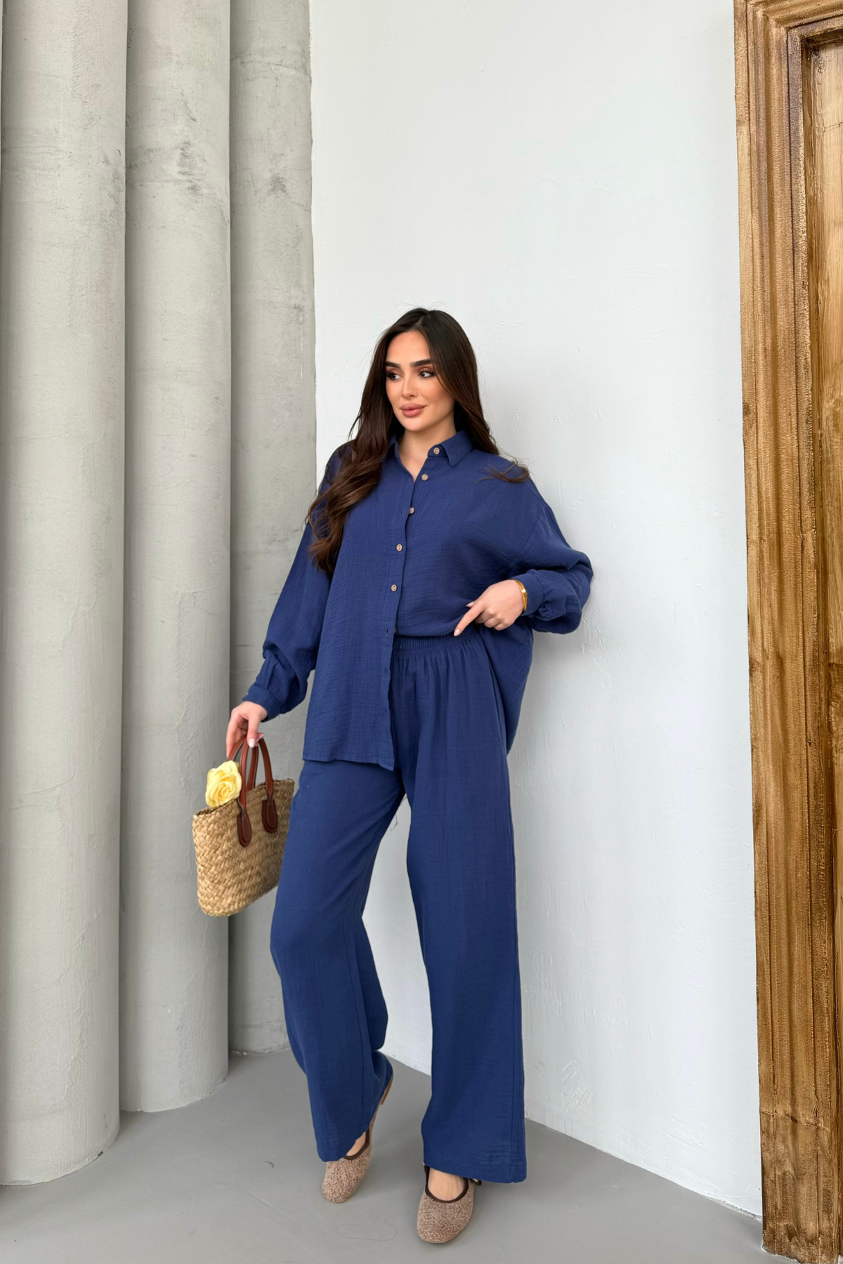 Kadın İkili Rahat Kesim Keten Gömlek Pantolon Alt Üst Takım