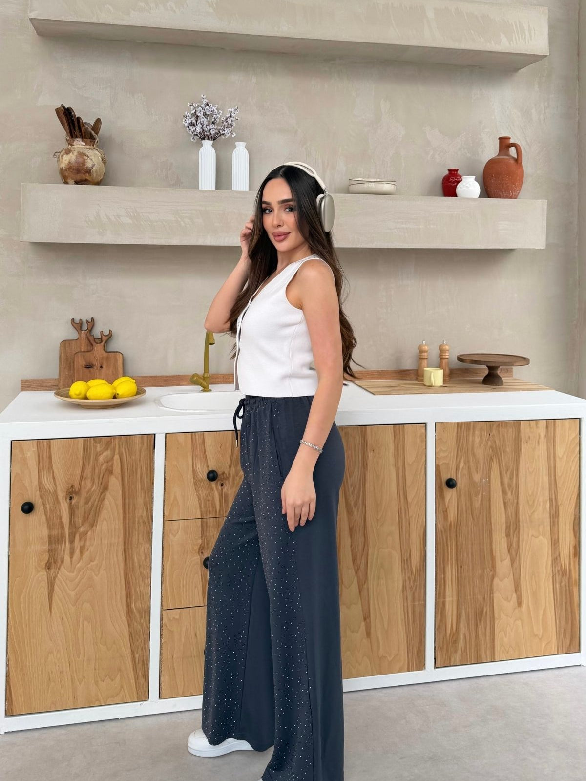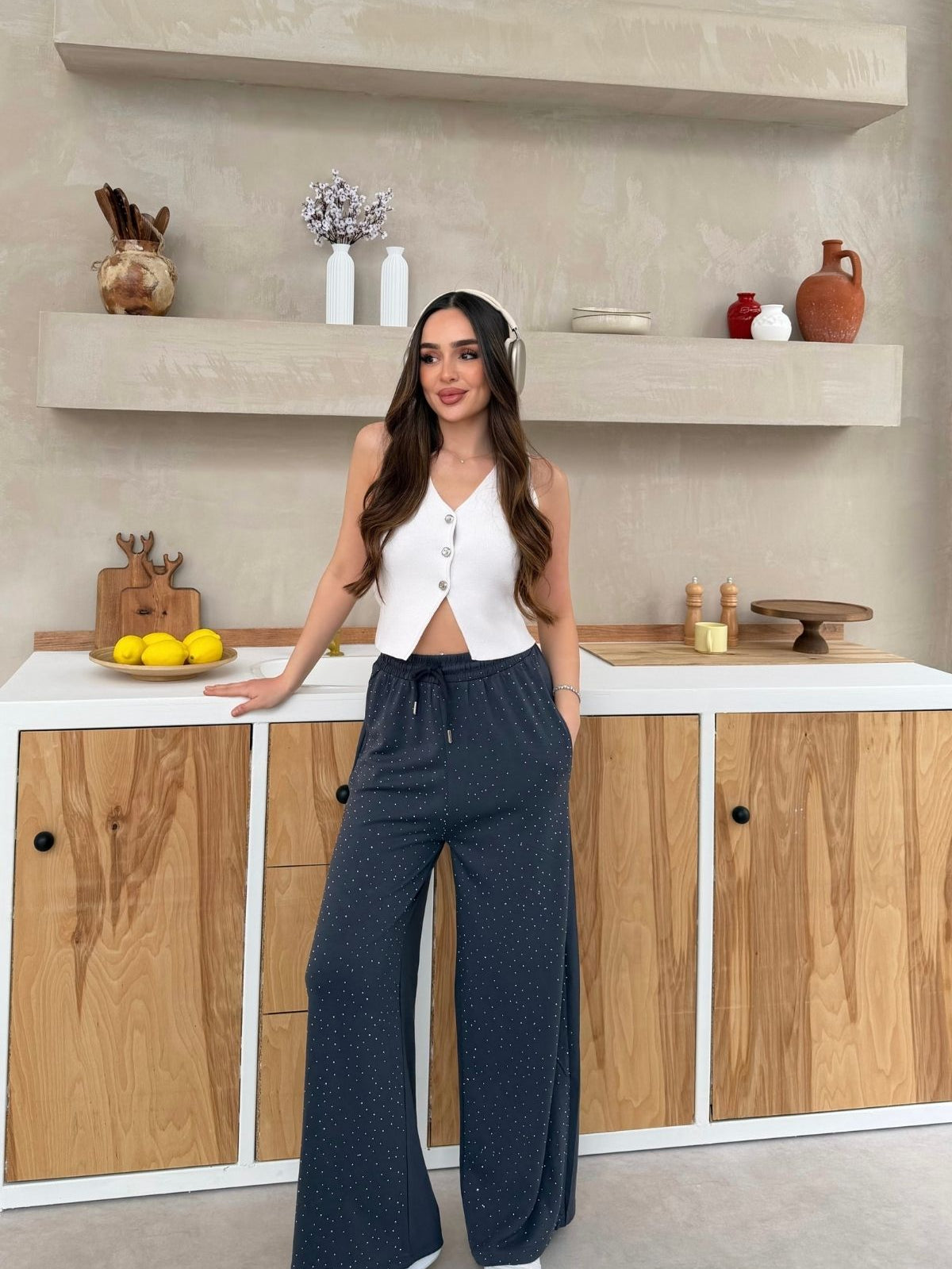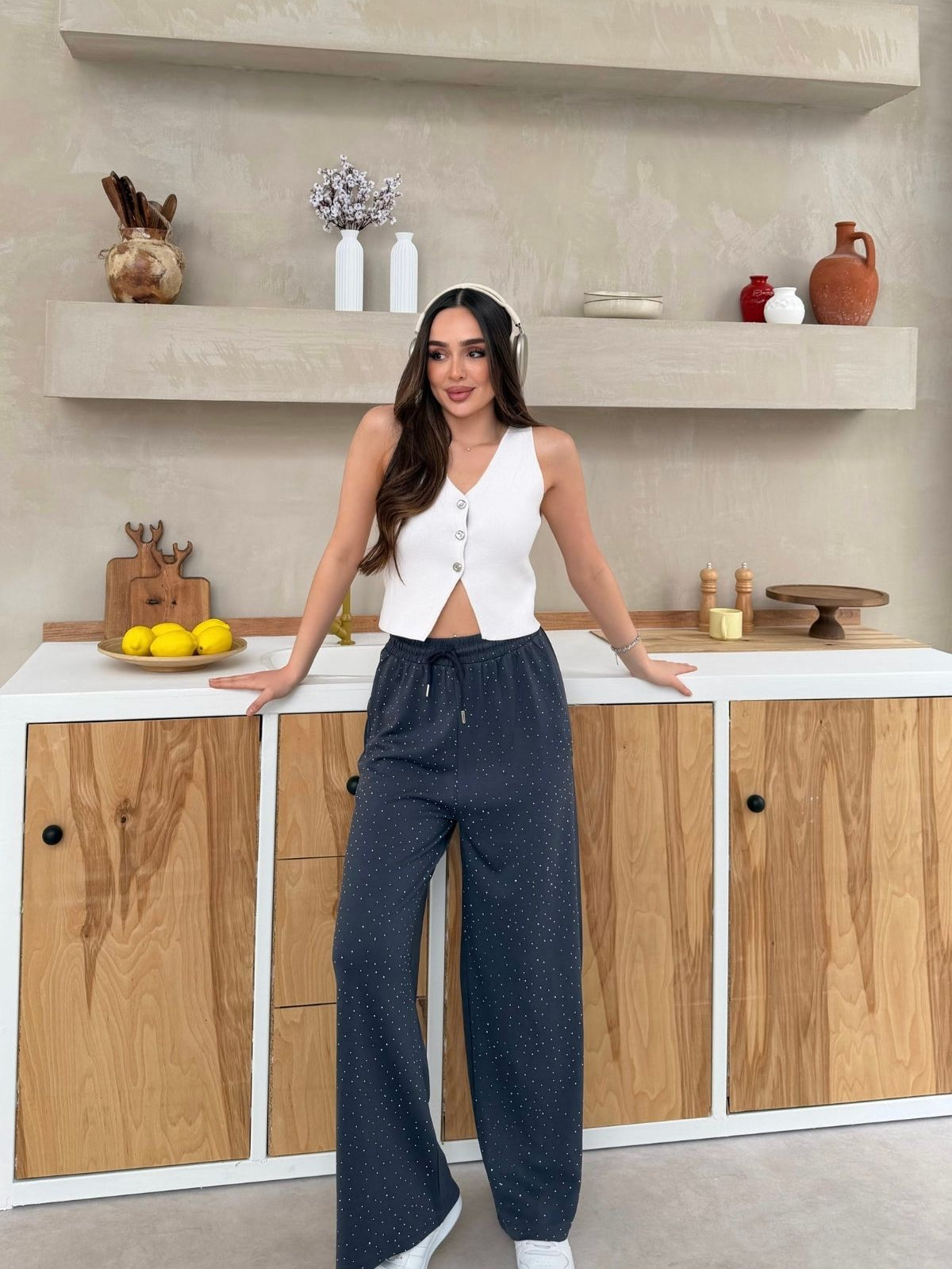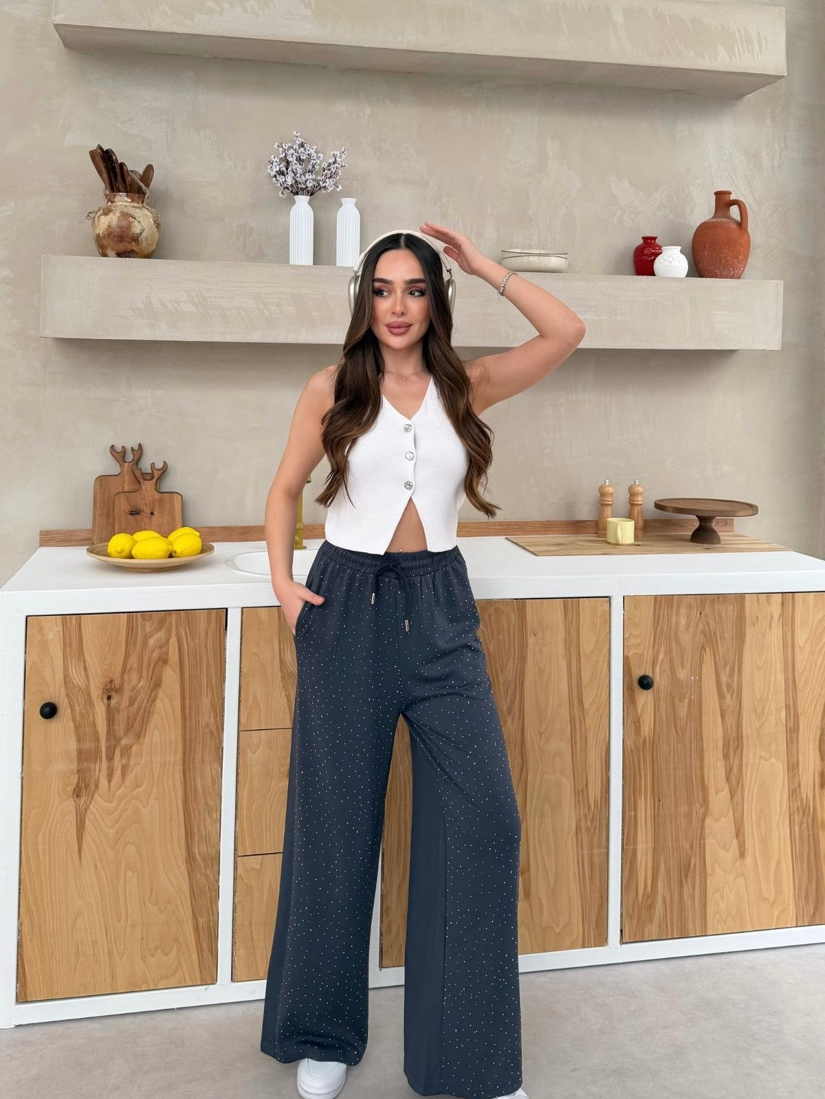 Kadın Taşlı Bol Paça Modal Kumaş Eşofman Altı