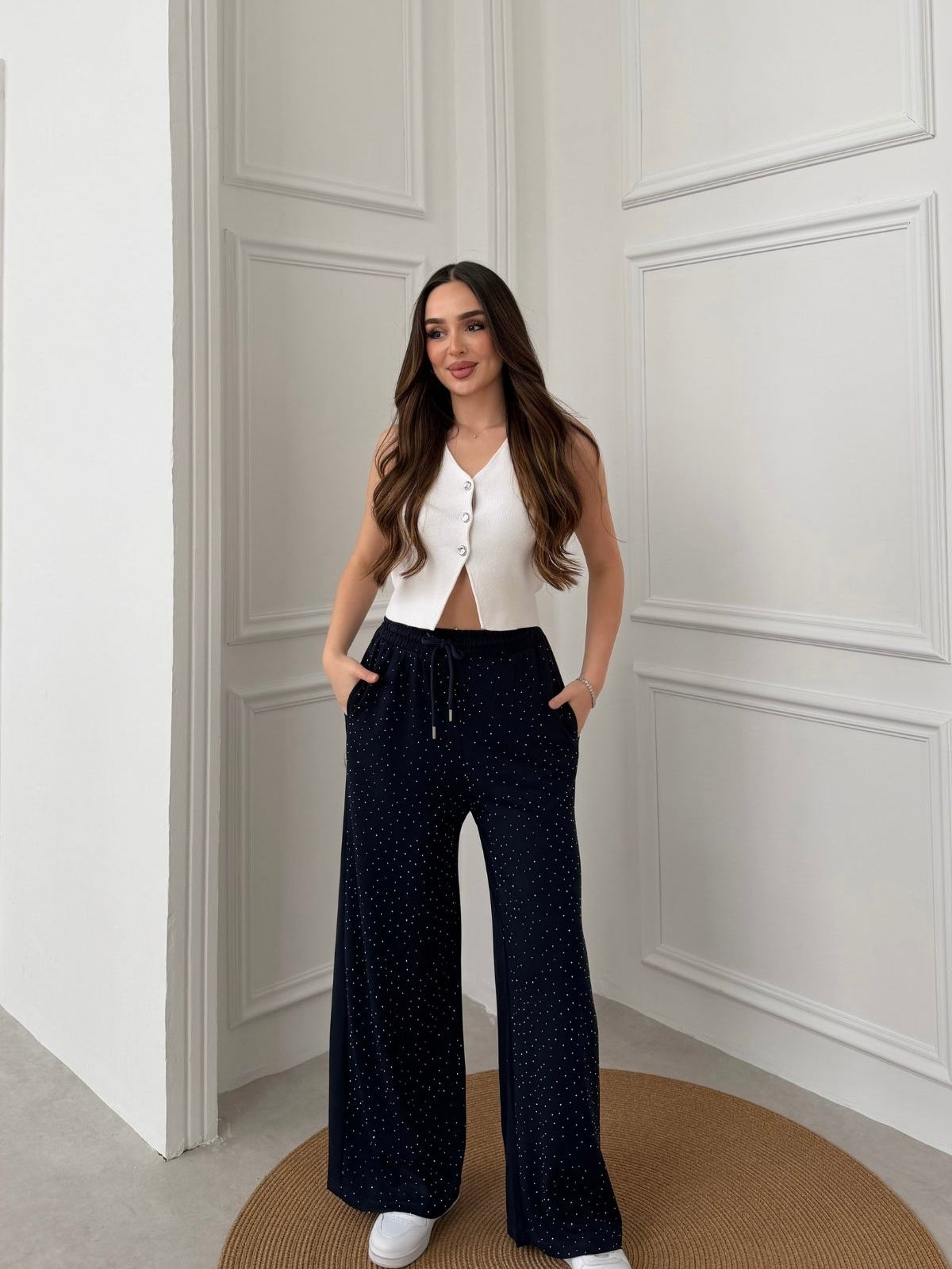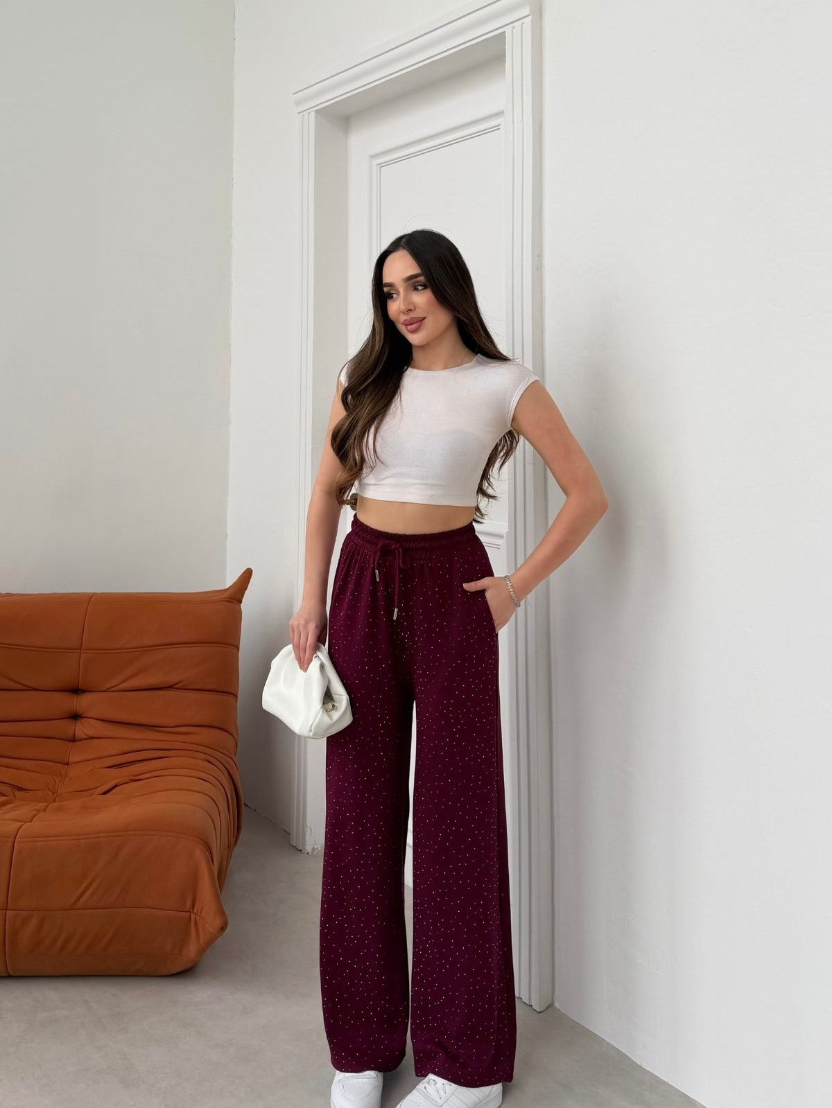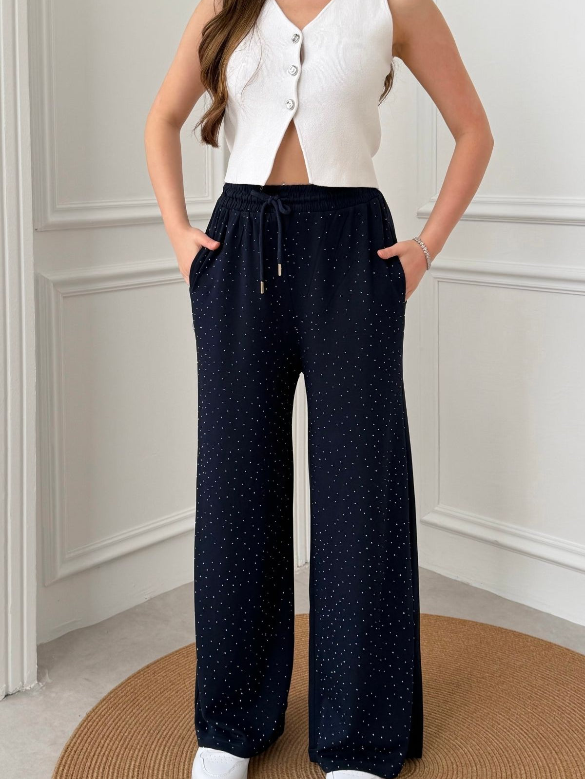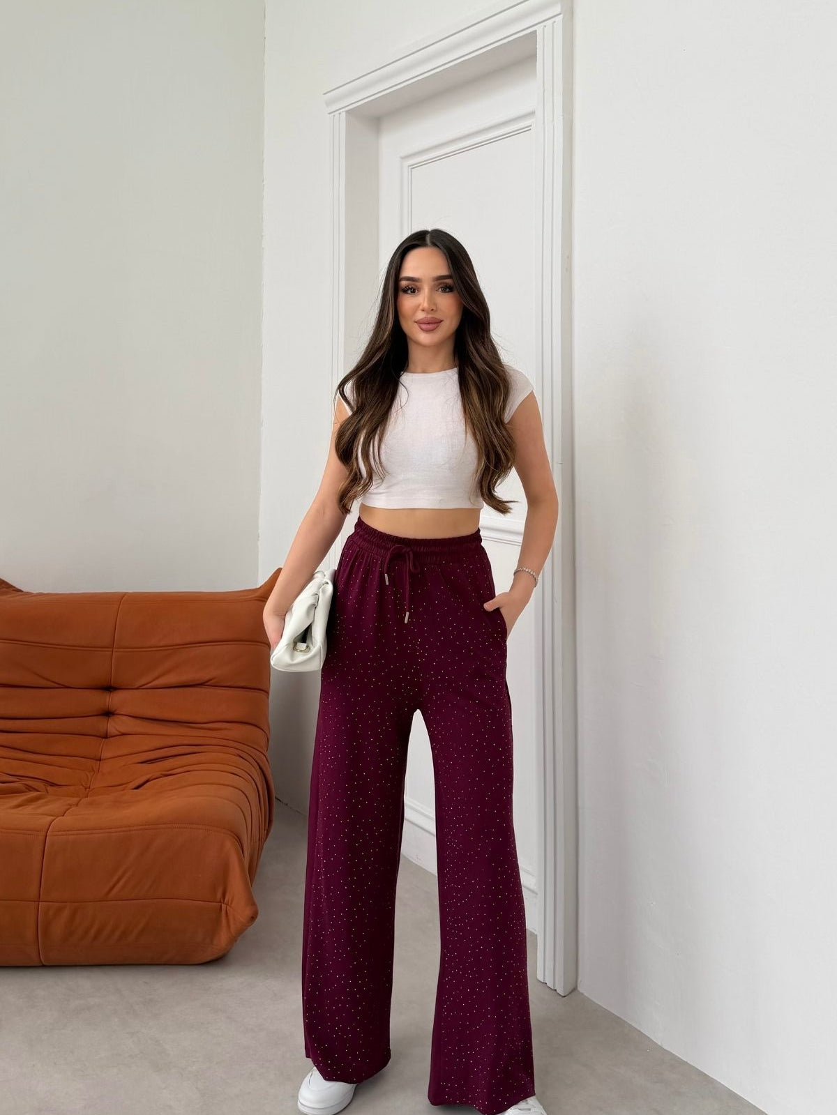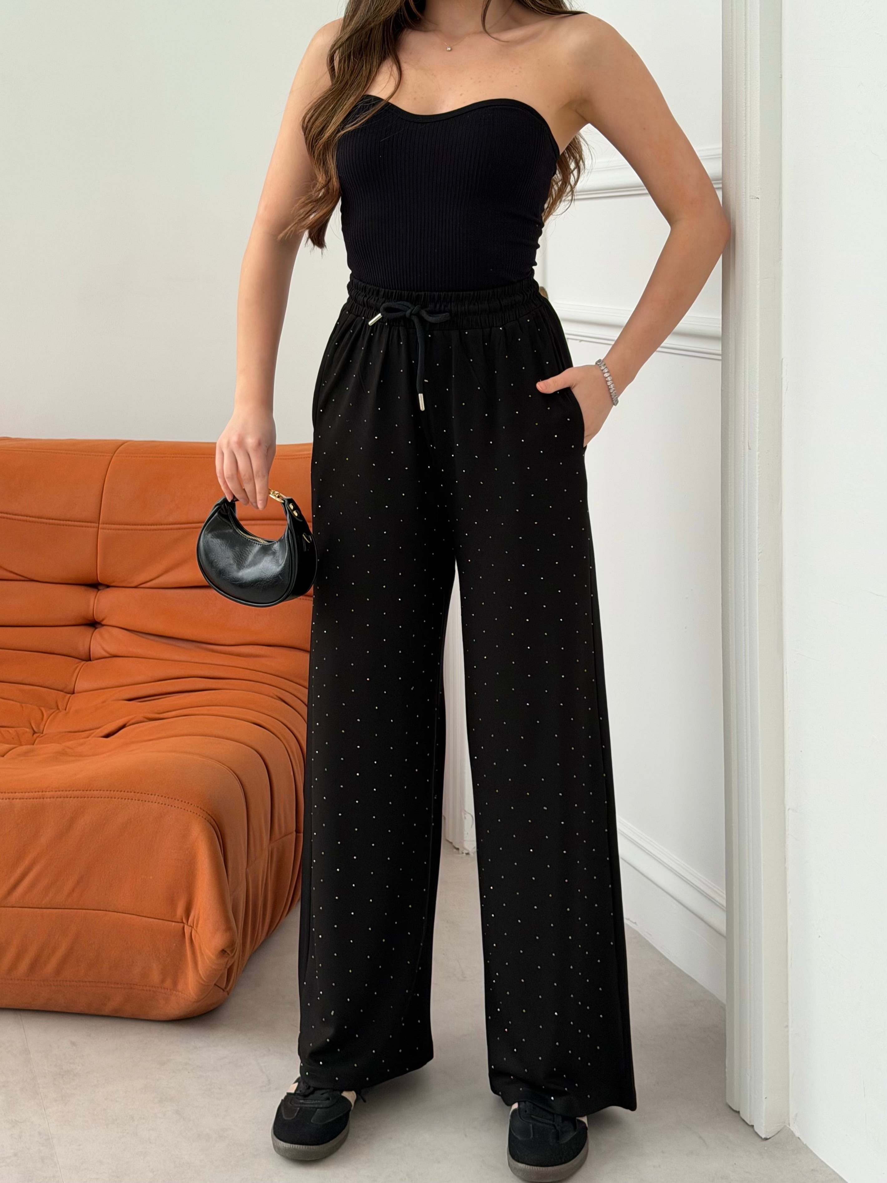 Kadın Taşlı Bol Paça Modal Kumaş Eşofman Altı