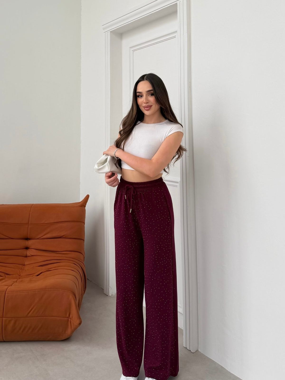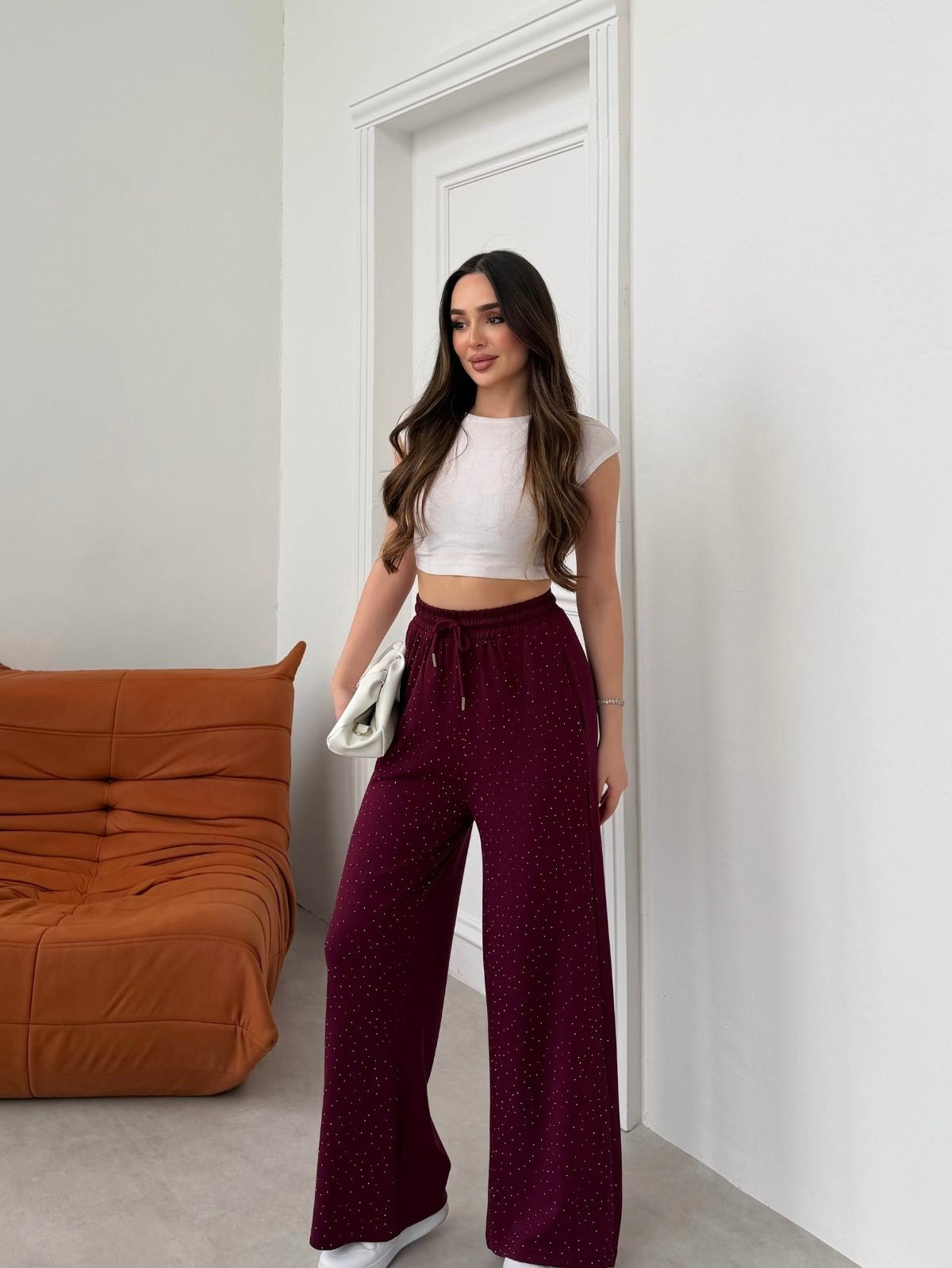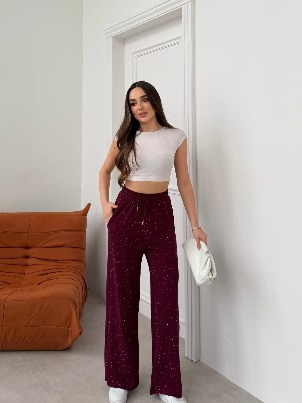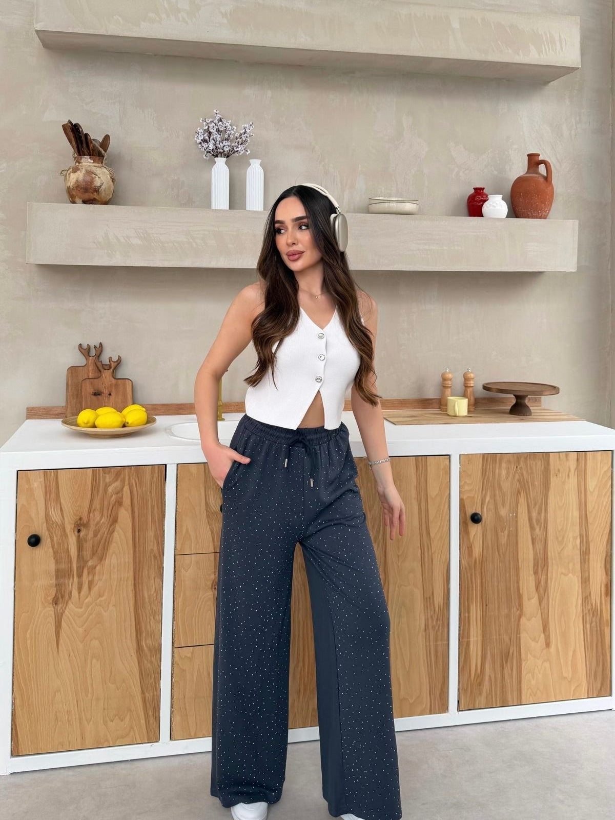 Kadın Taşlı Bol Paça Modal Kumaş Eşofman Altı