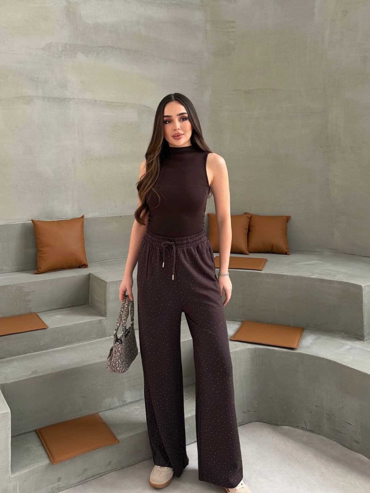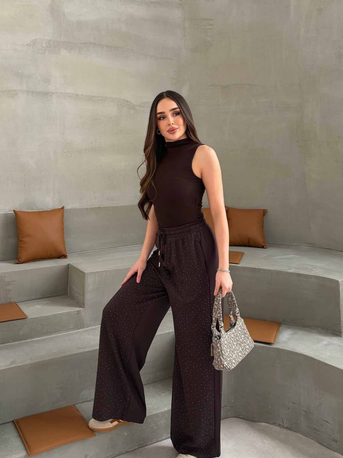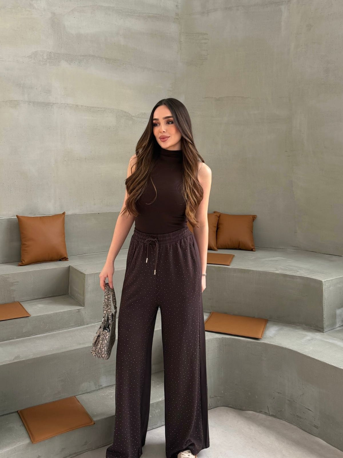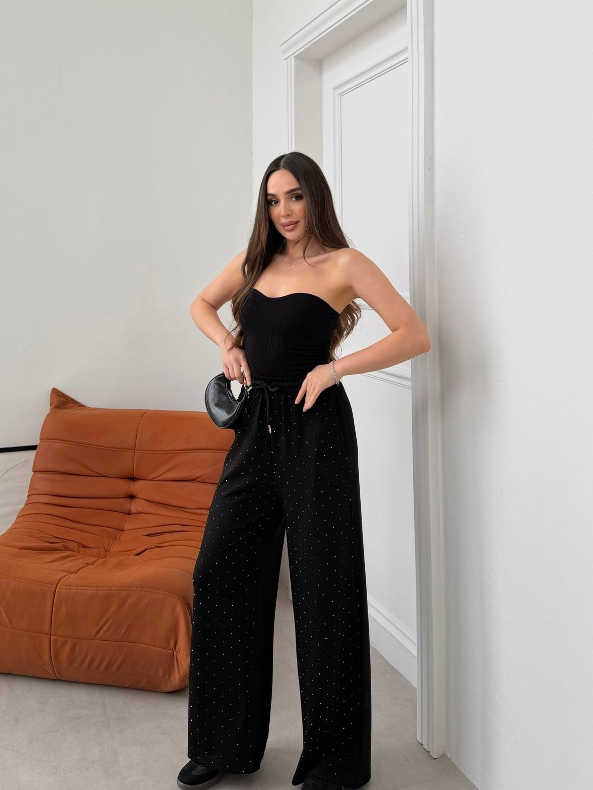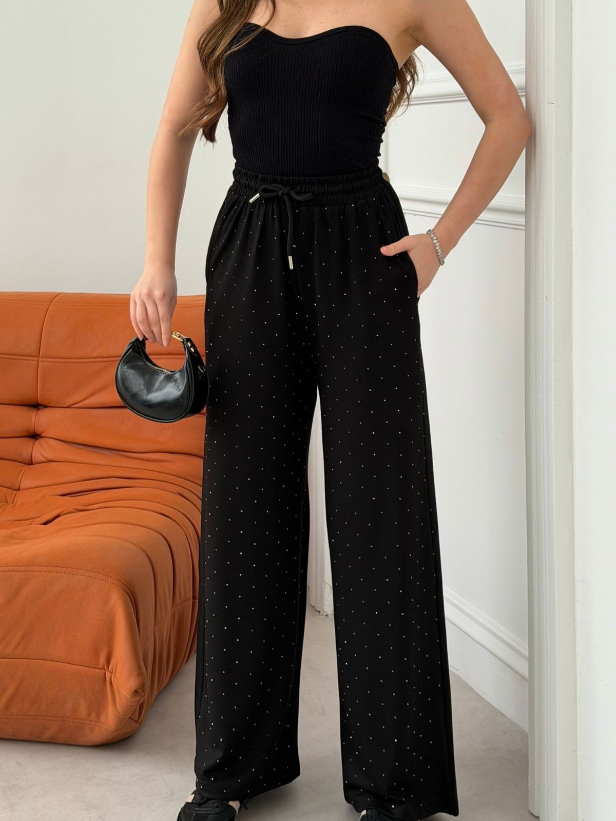 Kadın Taşlı Bol Paça Modal Kumaş Eşofman Altı
