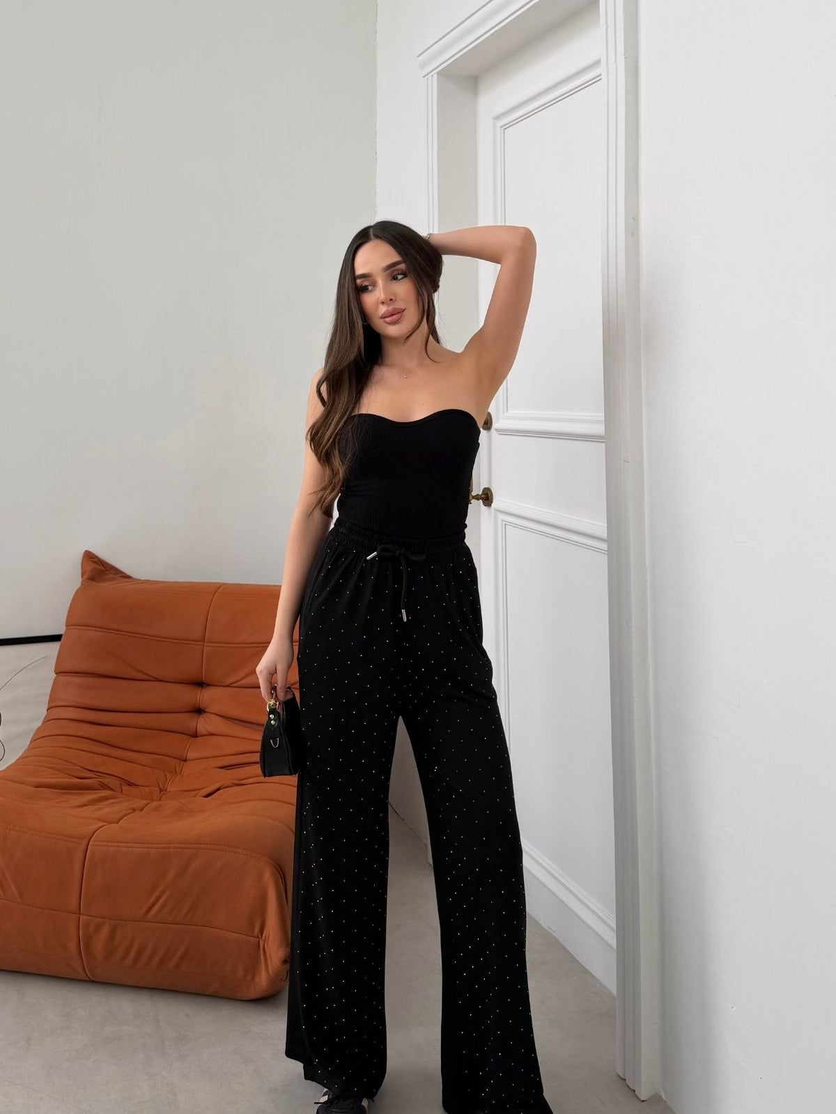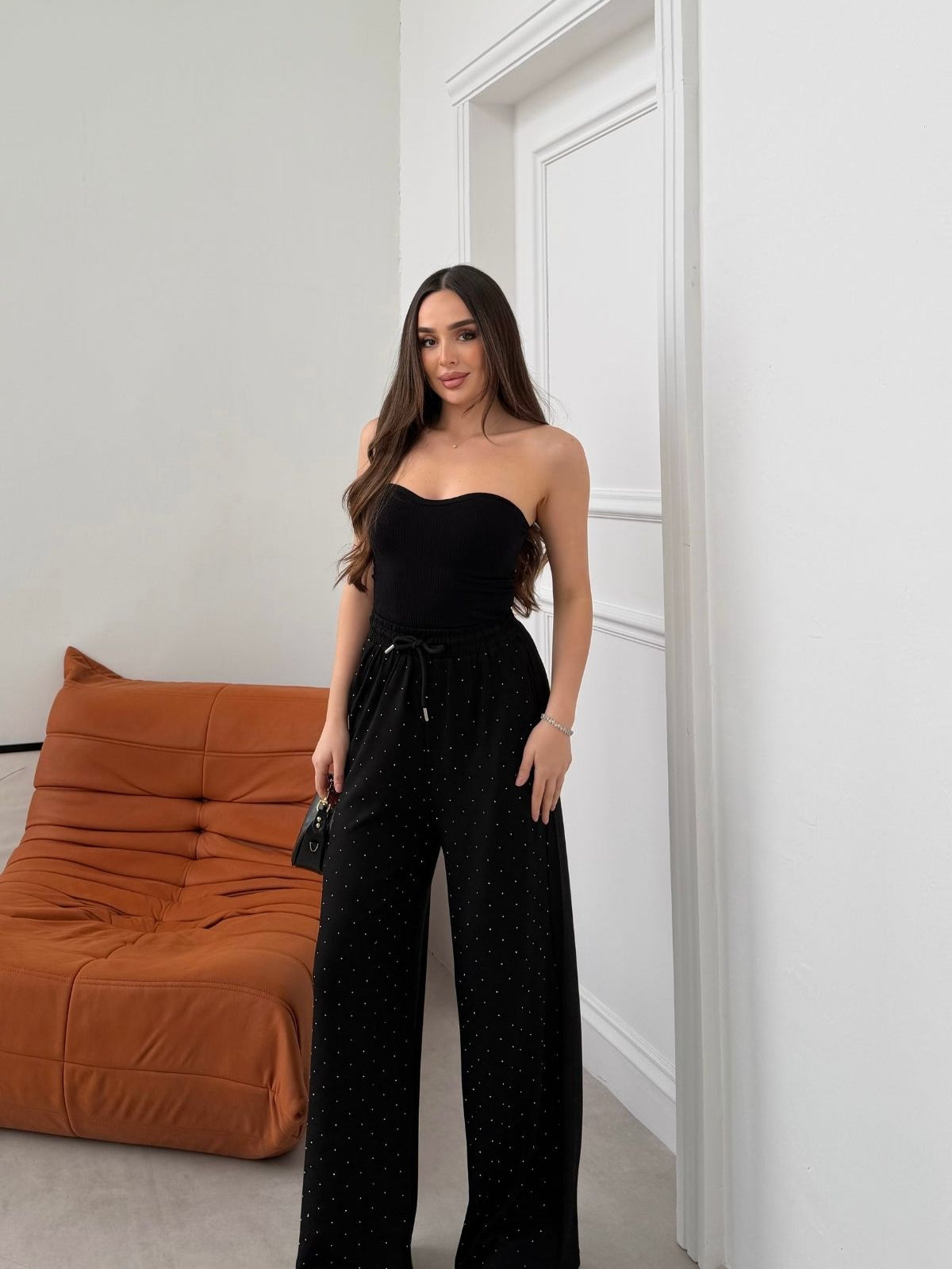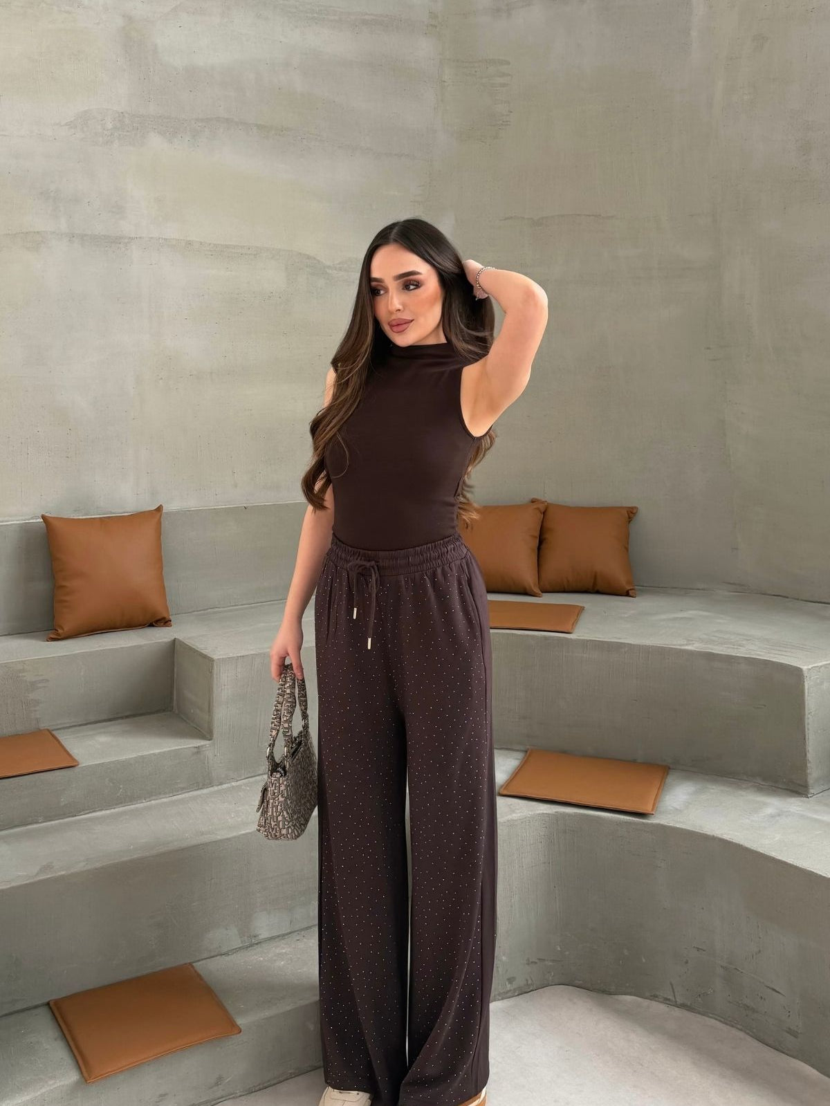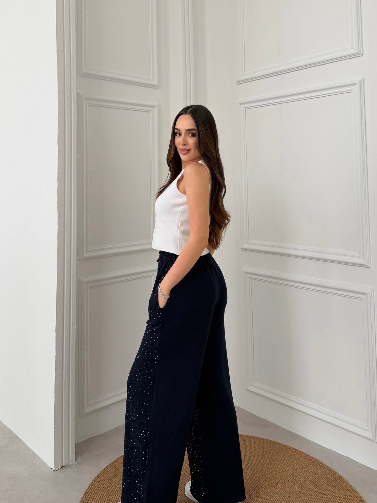 Kadın Taşlı Bol Paça Modal Kumaş Eşofman Altı