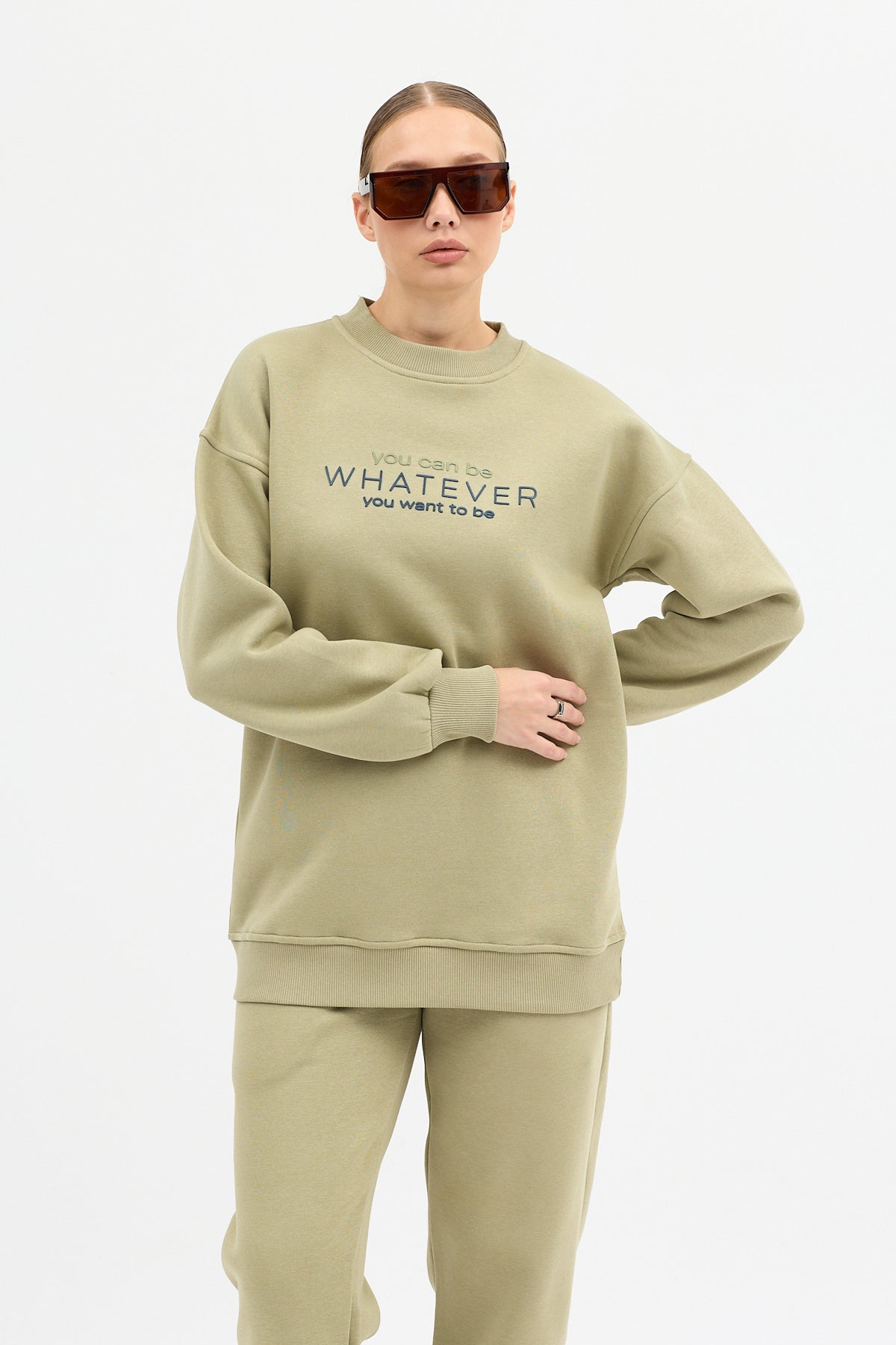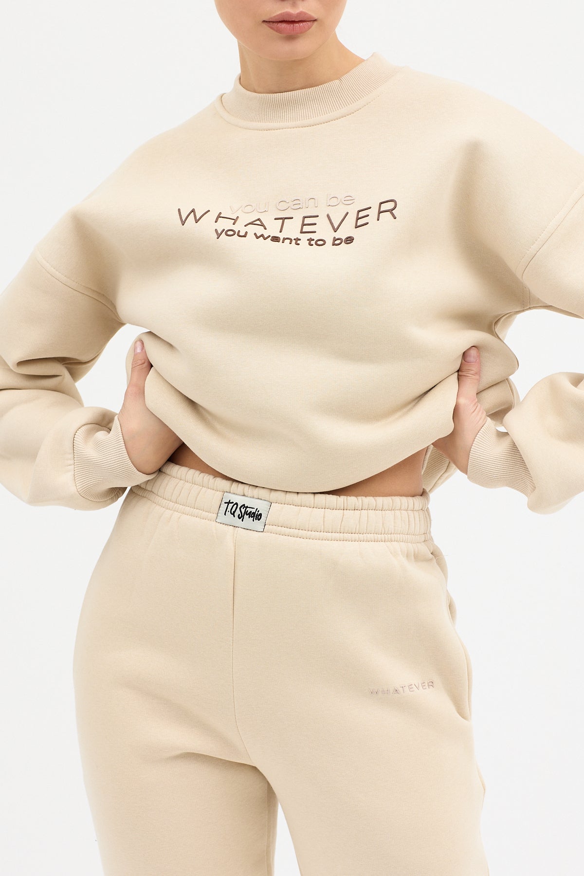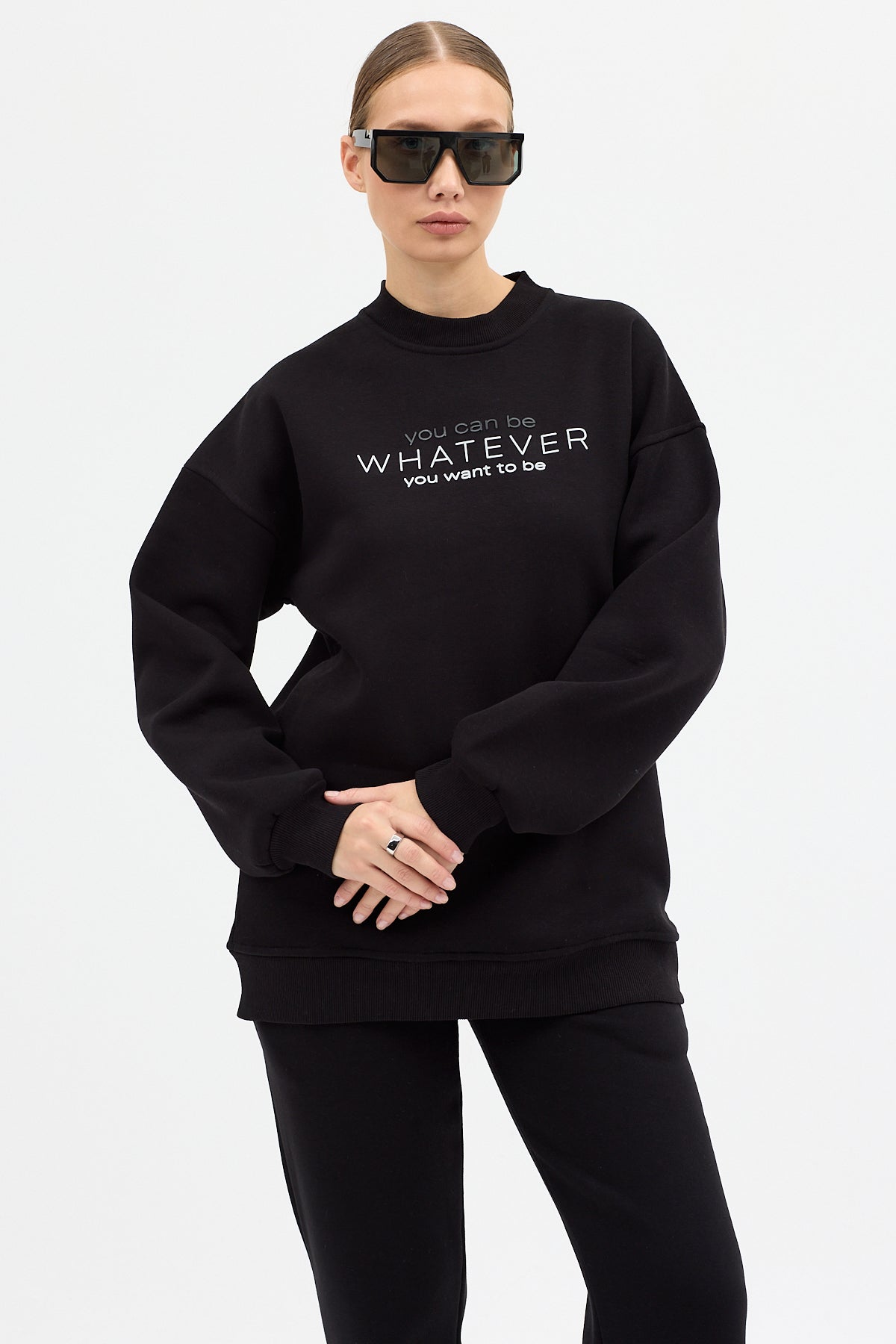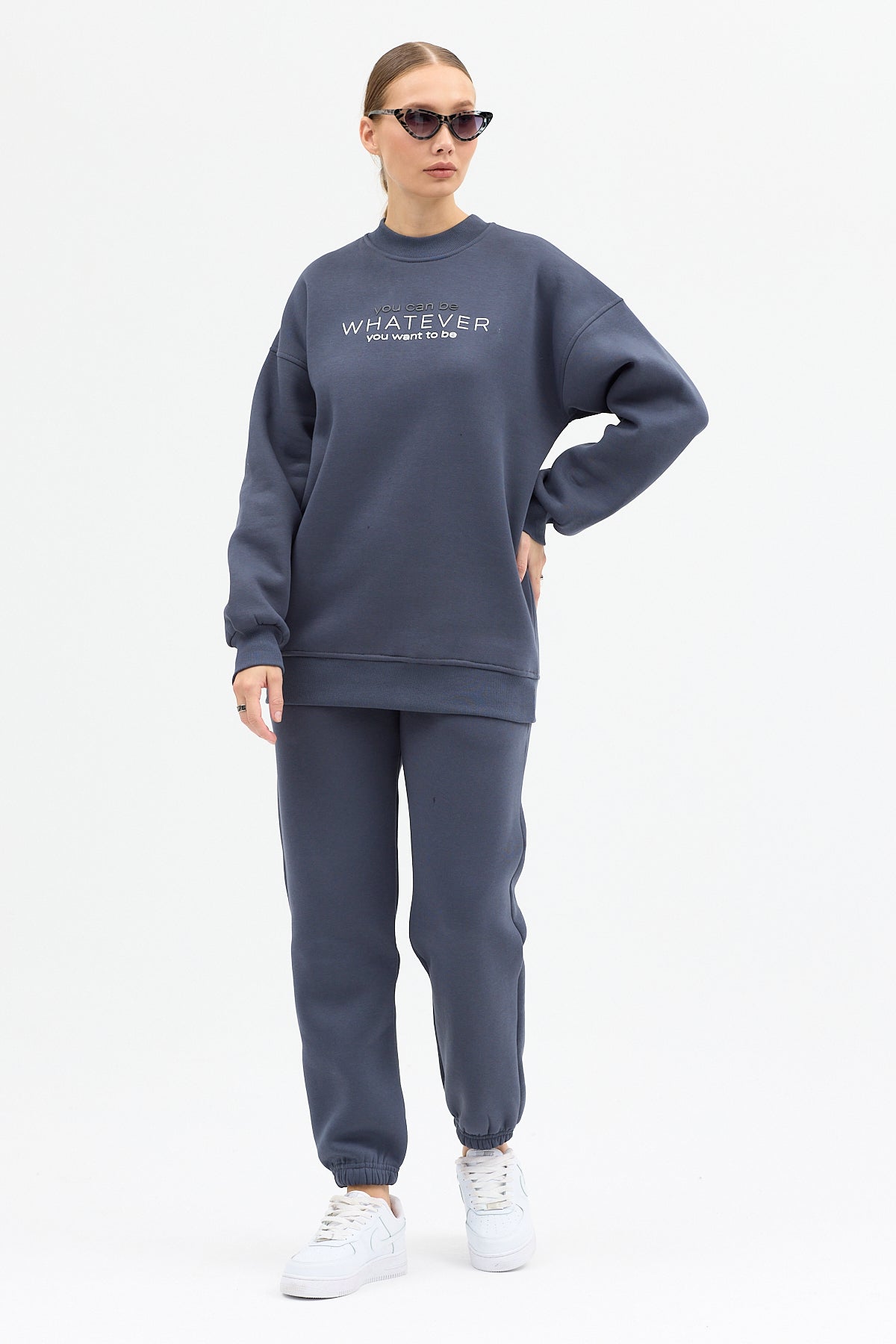Kadın Whatever Baskılı Bisiklet Yaka Paçası Lastikli Oversize Eşofman Takımı