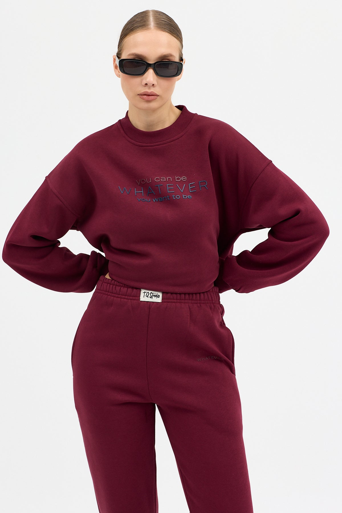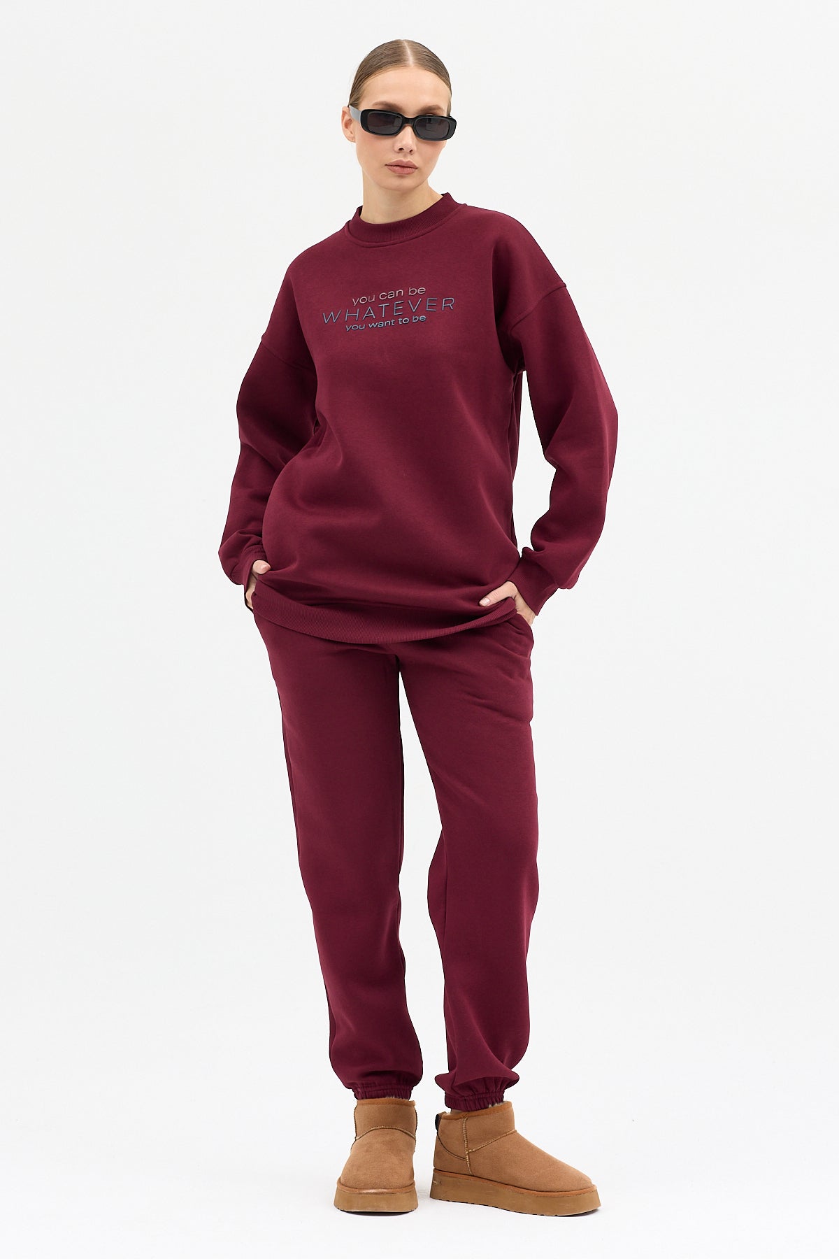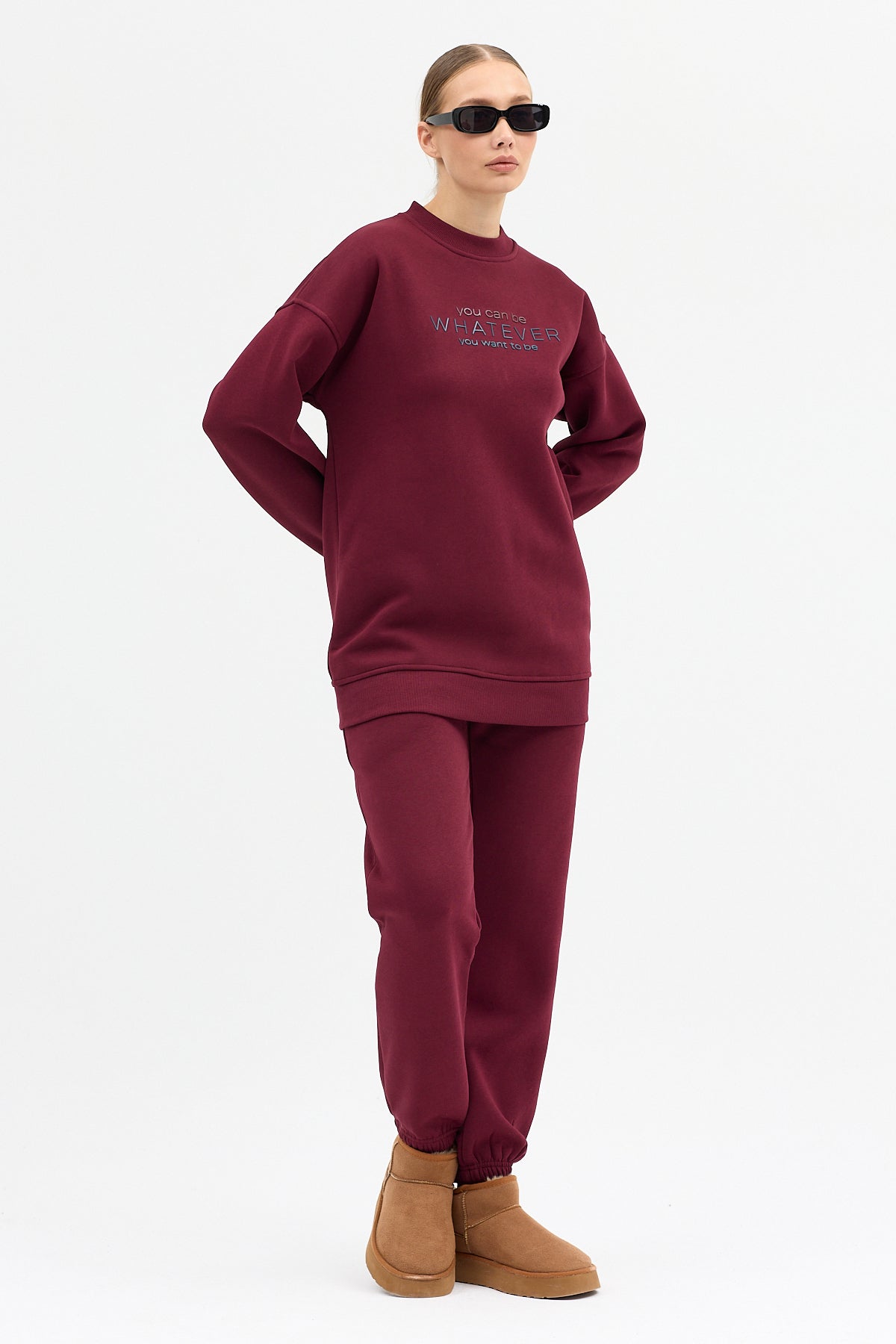 Kadın Oversize Kapüşonlu Bordo Eşofman Takımı Kışlık Içi Pamuklu