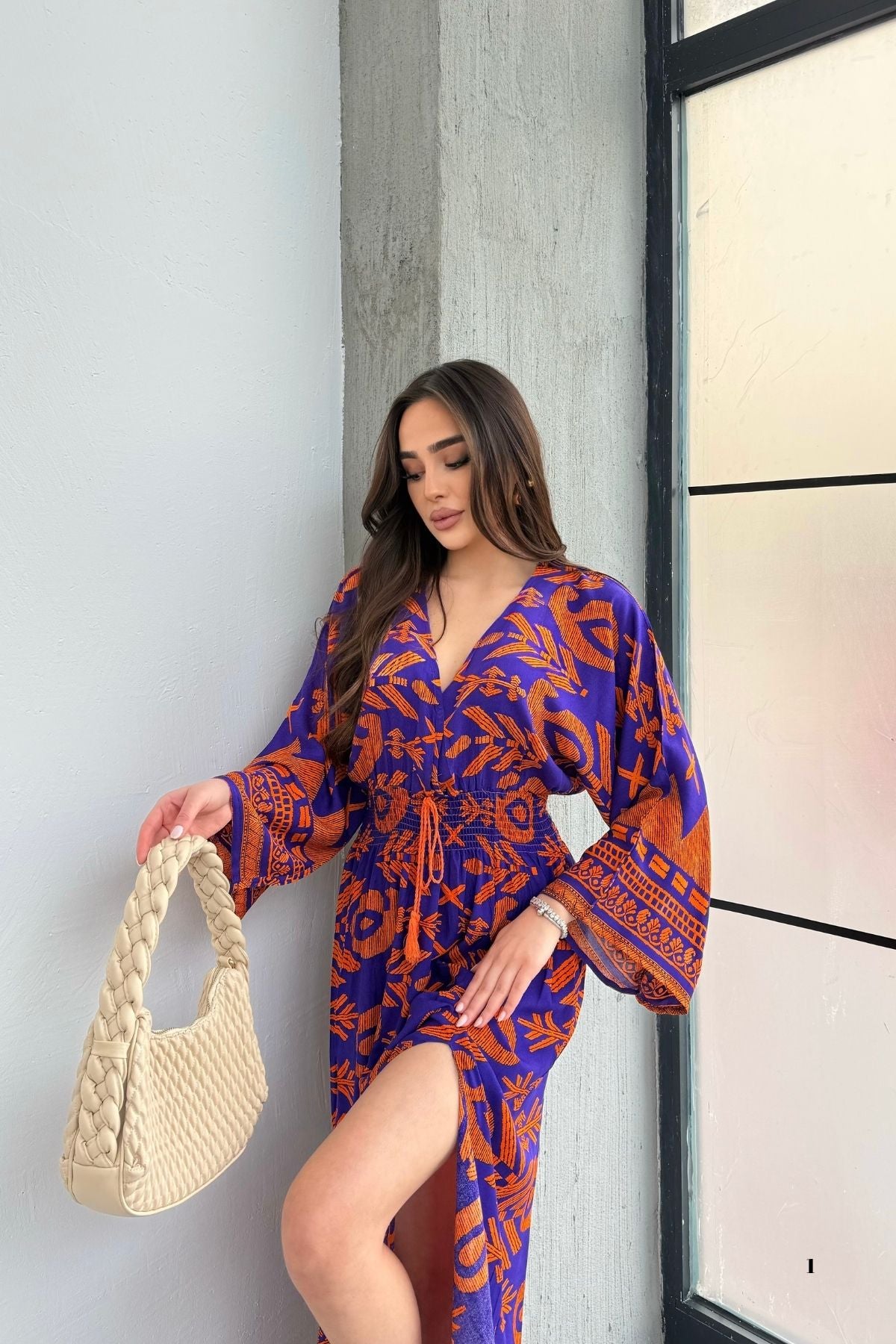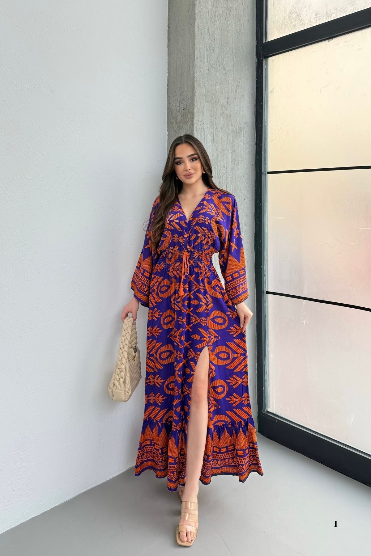 - Kruvaze yaka tasarımı ile zarif ve modern bir görünüm sunar.; - Mavi desenleriyle dikkat çeken bu elbise, etnik tarzınıza canlılık katar.; - Dokuma detaylarıyla zenginleştirilmiş yapısı, kaliteli hissiyat sağlar.; - Astarsız olması sayesinde hafif ve rahat bir kullanım sunar.; - Kemer veya kuşak gerektirmeyen tasarımıyla kolayca kombinlenebilir.; - Cepsiz yapısı, minimalist ve şık bir stil oluşturmanızı sağlar.; - Tüm sezonlarda tercih edebileceğiniz çok yönlü bir parça olarak gardırobunuzda yerini alır.; - Orta kalınlıkta kumaşı mevsim geçişlerinde ideal konforu sunarken, tüm yaş gruplarına hitap eder.; - Baskısız baskı tekniğiyle sade ve şık bir duruş sergiler.; - Günlük kullanıma uygun tasarımıyla her ortamda rahatça giyilebilir.; - Uzun kol boyu ve uzun kesimi ile mevsim koşullarına uyum sağlar.;