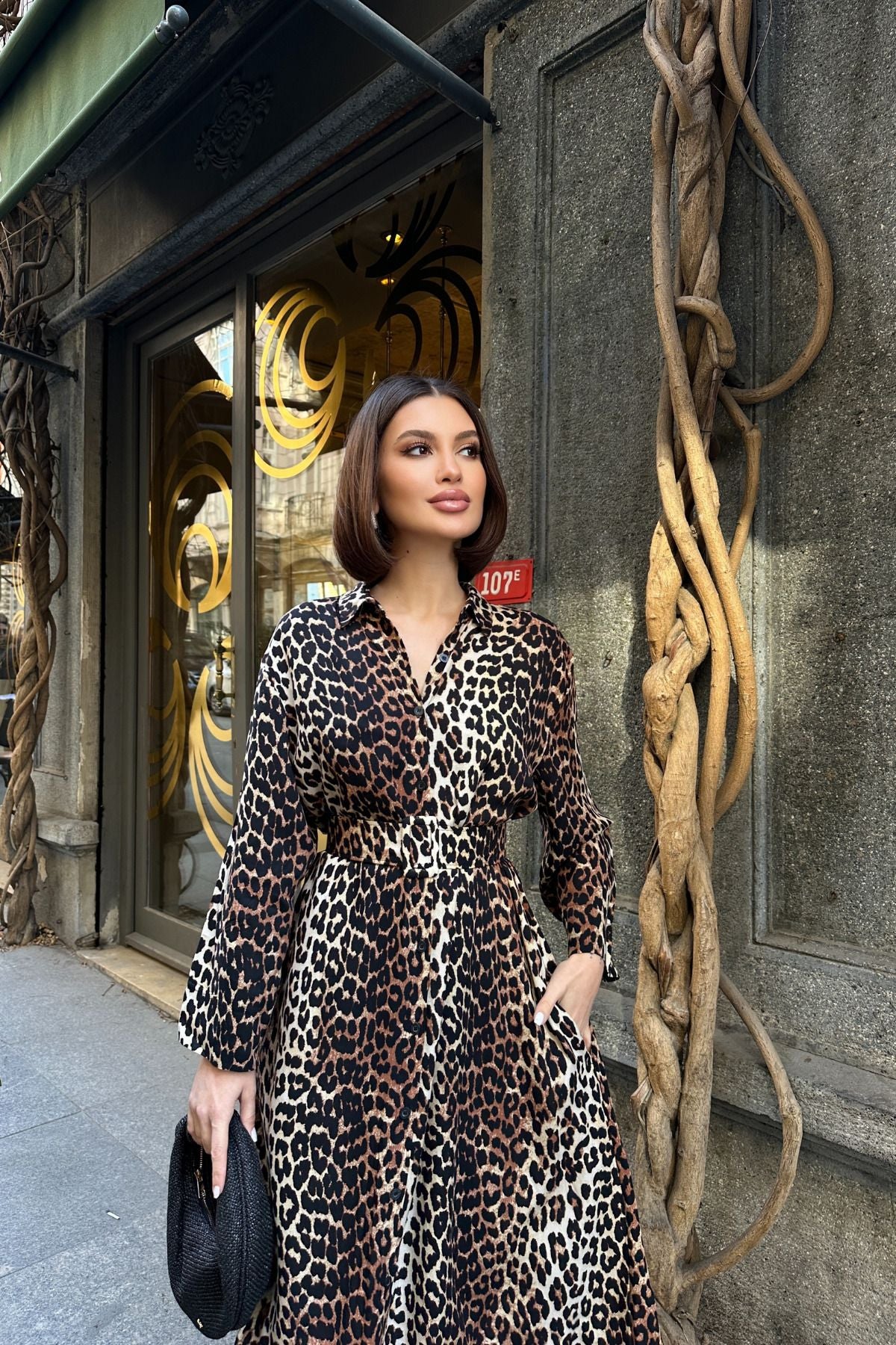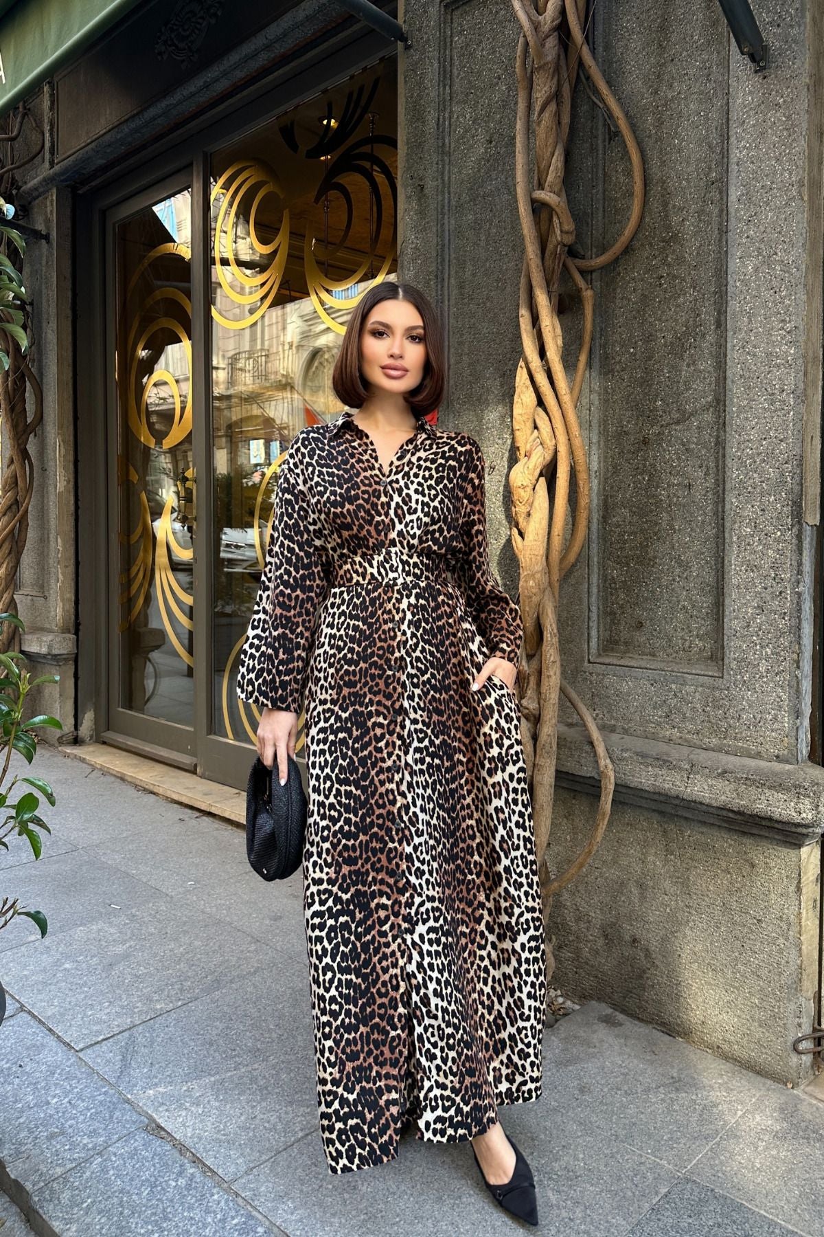 - Leopar desenleriyle göz alıcı bir görünüm sunan bu elbise, yaz aylarının enerjisini stilinize taşıyor.; - Uzun kollu tasarımı ile mevsimin sıcak günlerinde serinlik ve şıklığı bir arada sunuyor.; - Beli kemerli yapısı sayesinde vücut hatlarınıza mükemmel uyum sağlayarak feminen bir siluet oluşturmanızı sağlıyor.; - Önden yırtmaç detayı ile hareket özgürlüğü kazandırırken, modern bir dokunuş katıyor.; - Gömlek yakası, hem rahatlık hem de zarif bir hava sunarak günlük kombinlerinizde fark yaratmanızı sağlıyor.; - Astarsız yapısıyla hafif ve nefes alabilen bir yapıya sahip olan bu elbise, tüm gün konforlu hissetmenize yardımcı oluyor.; - Kemer tokası kapama şekli pratik kullanım imkanı tanırken, leopar deseniyle dikkat çekici bir stil oluşturmanız için idealdir.; - Her yaş grubuna hitap eden tasarımıyla geniş bir kullanıcı kitlesine uygunluk gösteriyor; genç ruhunuzu yansıtan detaylarıyla ön plana çıkıyor.; - Gizli cep tasarımına sahip olması günlük eşyalarınız için ekstra saklama alanı sunarken, uzun kol boyu mevsim geçişlerinde de tercih edilebilirlik sağlıyor.; - Dokuma kumaşı dayanıklılığı arttırarak uzun süreli kullanım vaat ediyor; aynı zamanda orta kalınlığı sayesinde mevsim koşullarına uyum sağlayabiliyor.; - Casual/günlük ortamlarda rahatlıkla tercih edebileceğiniz bu elbise, modaya uygun kombinlerinizde vazgeçilmez parça haline gelecek.;