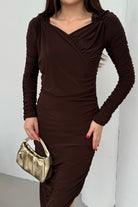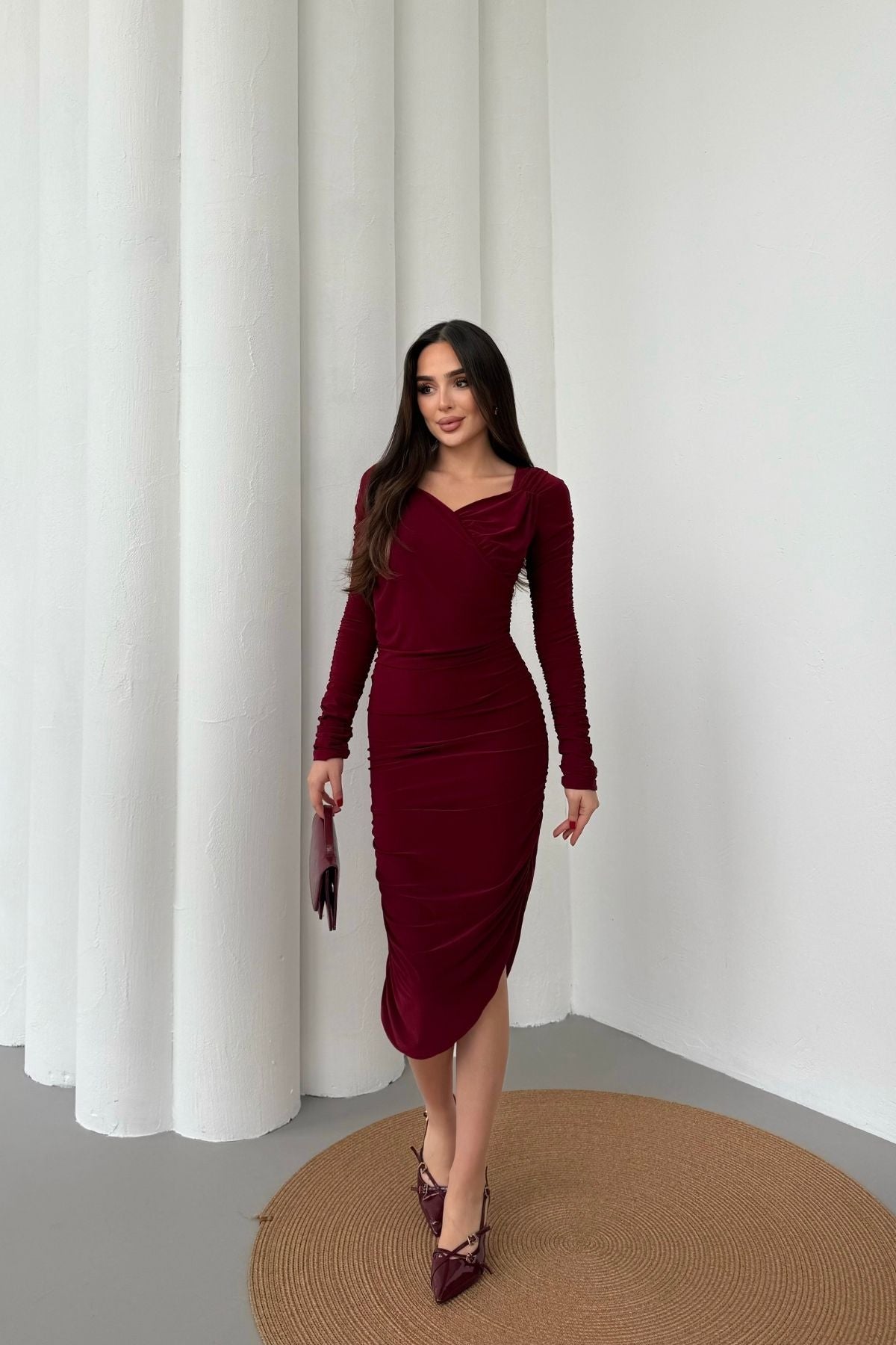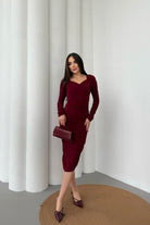 Kadın Soft Touch Drape Detay Yanları Büzgülü Midi Elbise