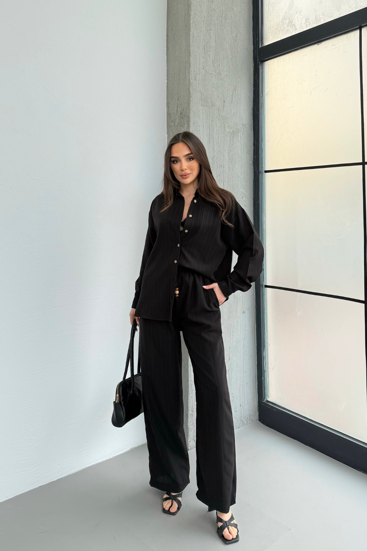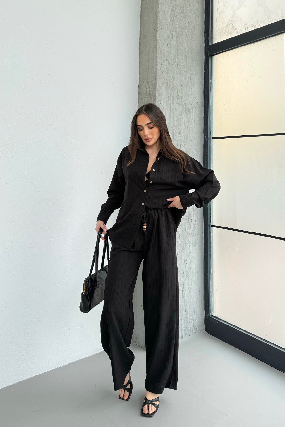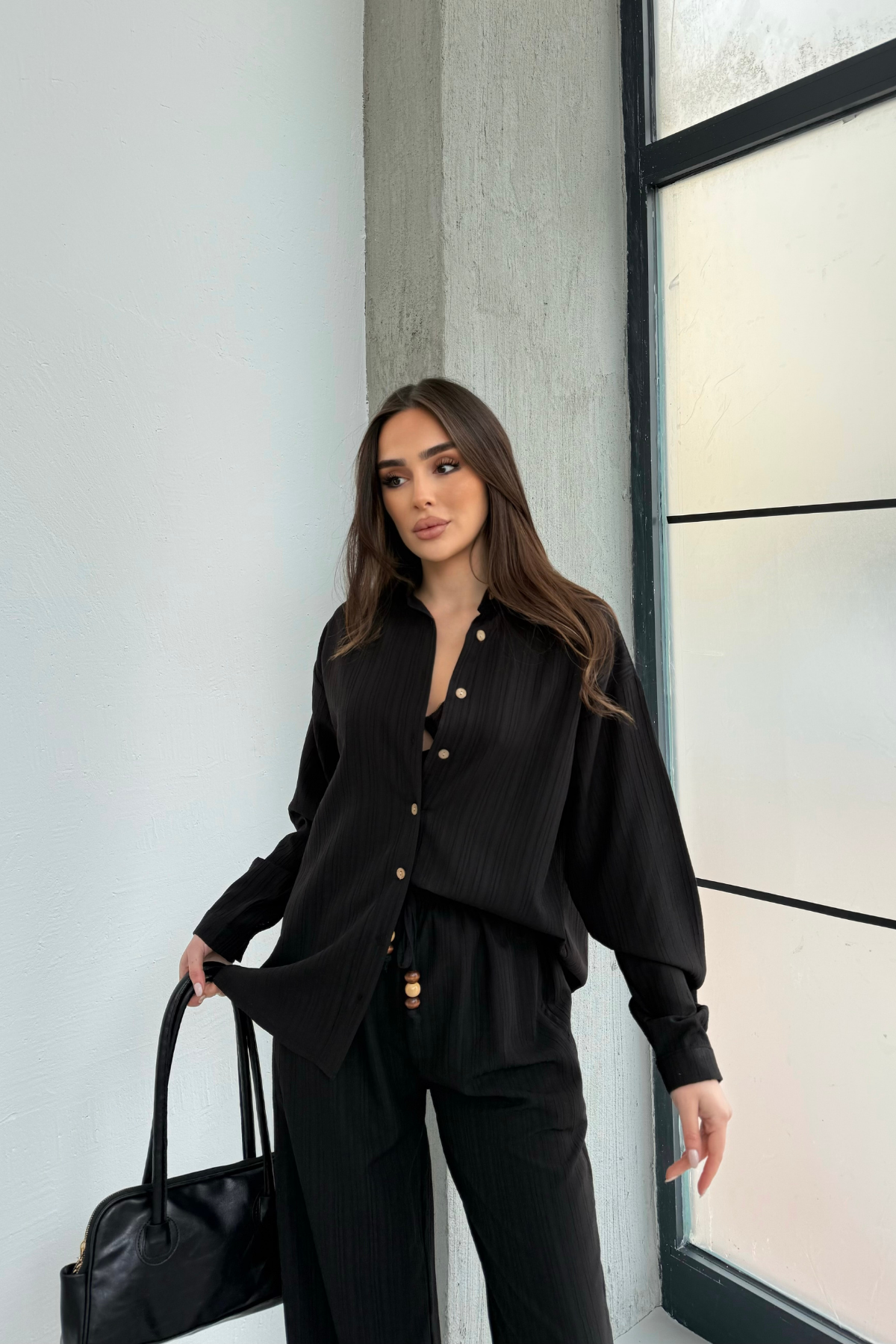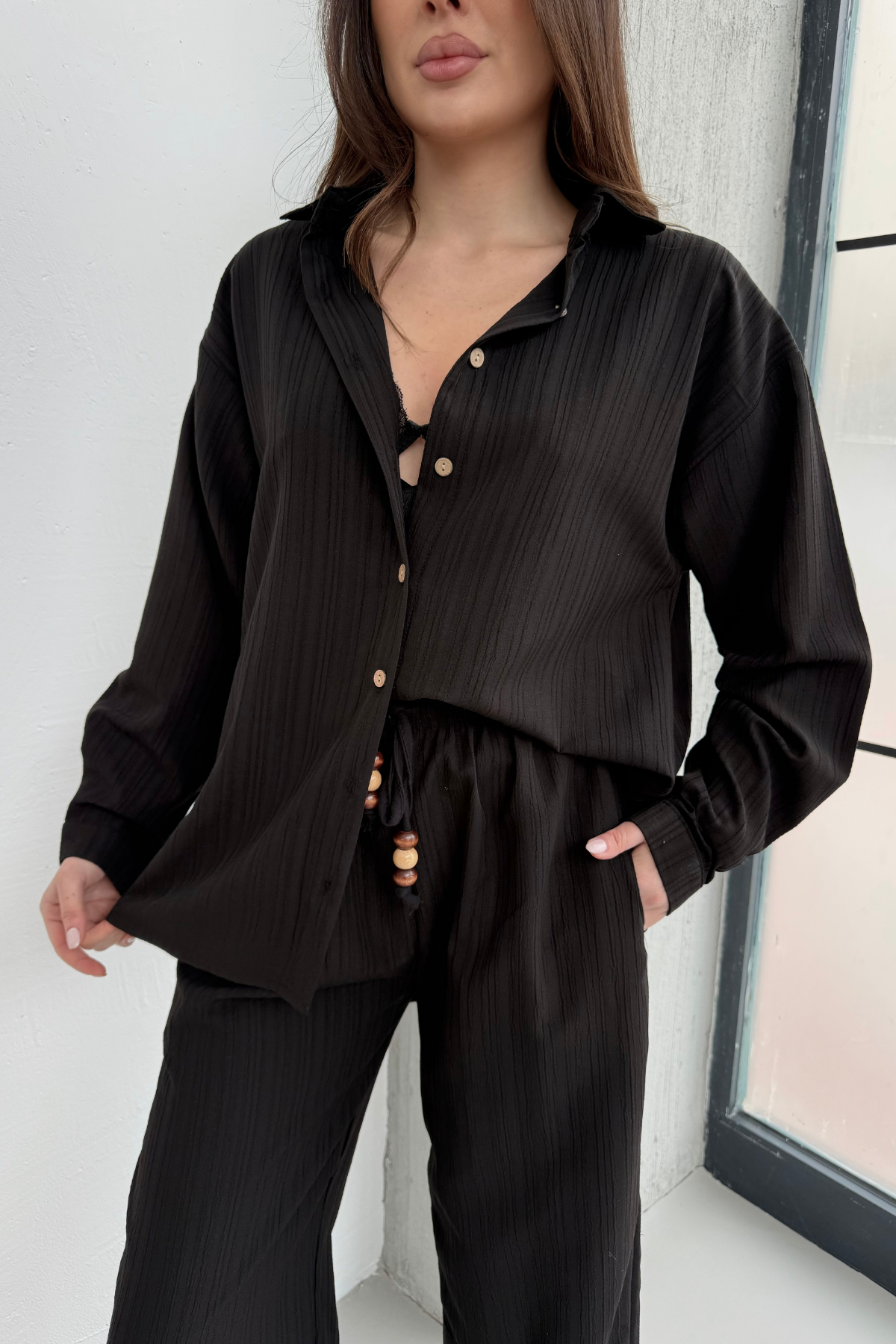 Siyah Gofre Dokuma Kumaş Gömlek Alt-üst Takım