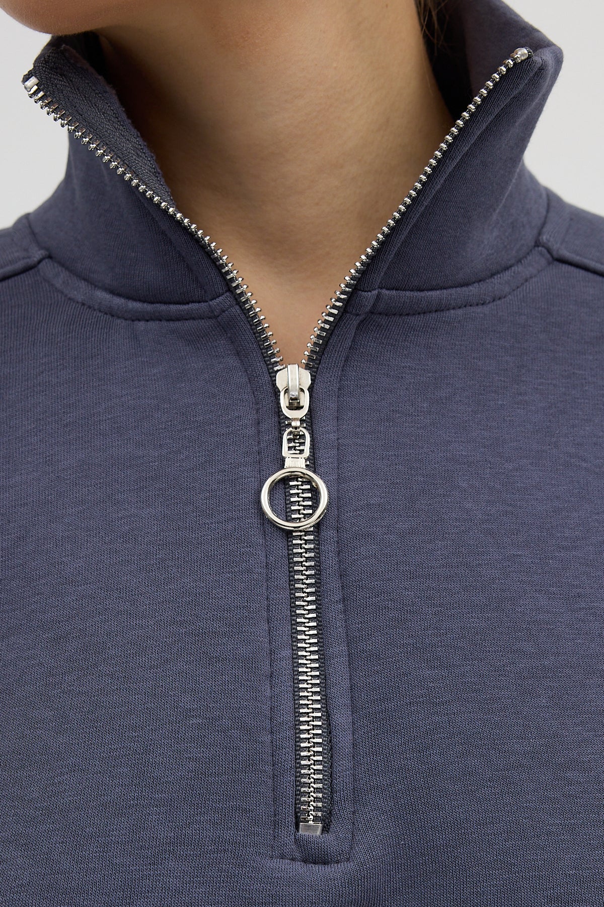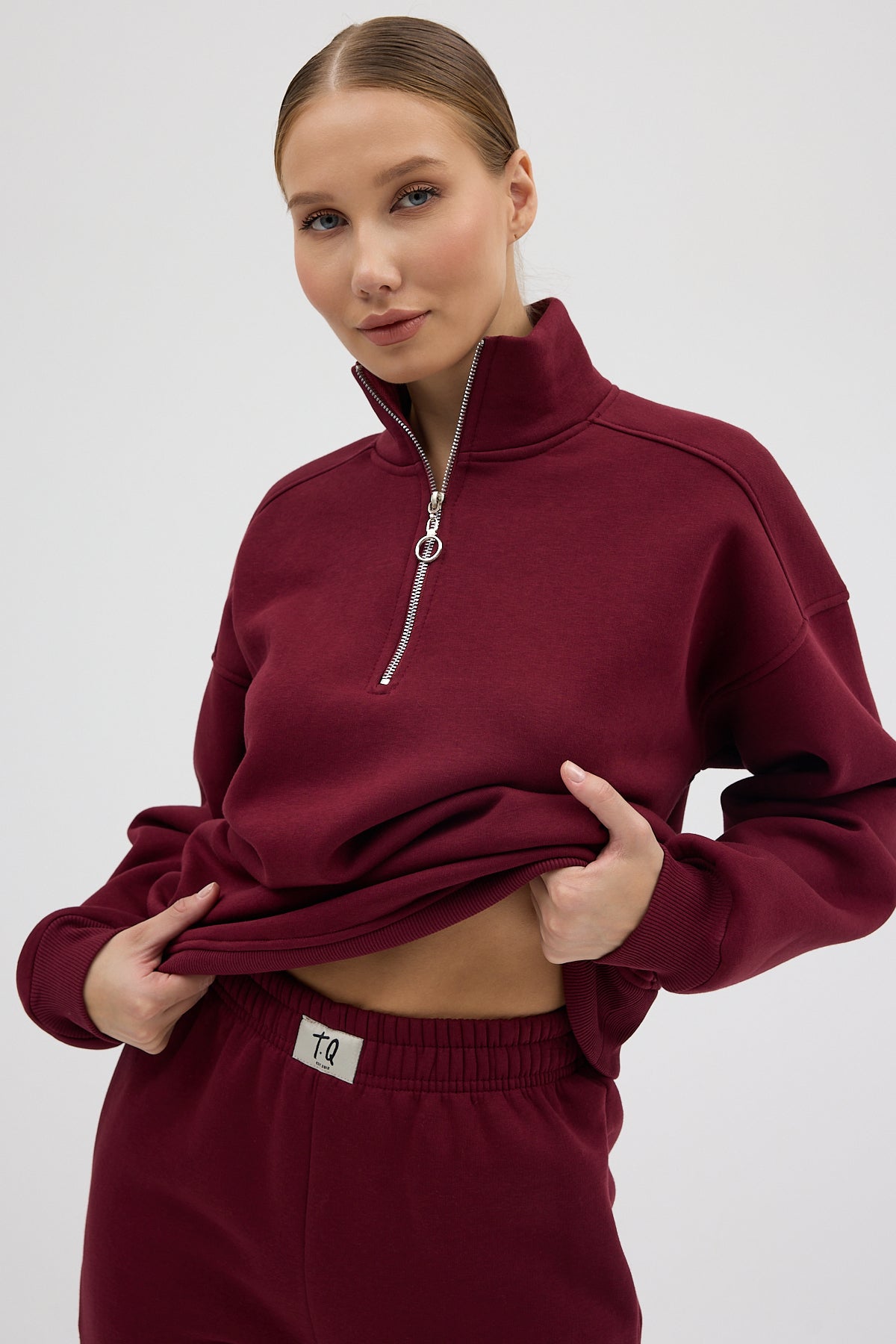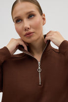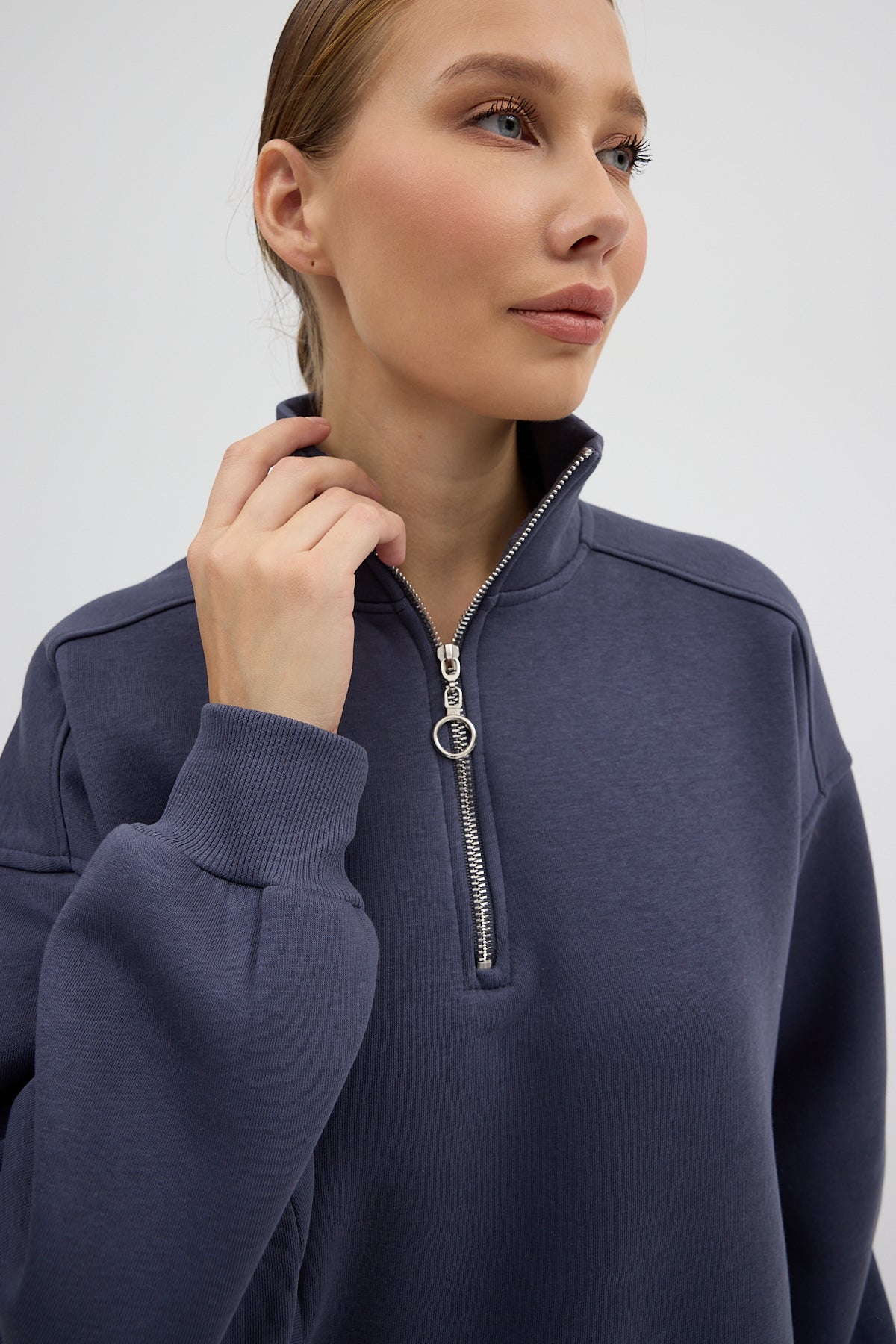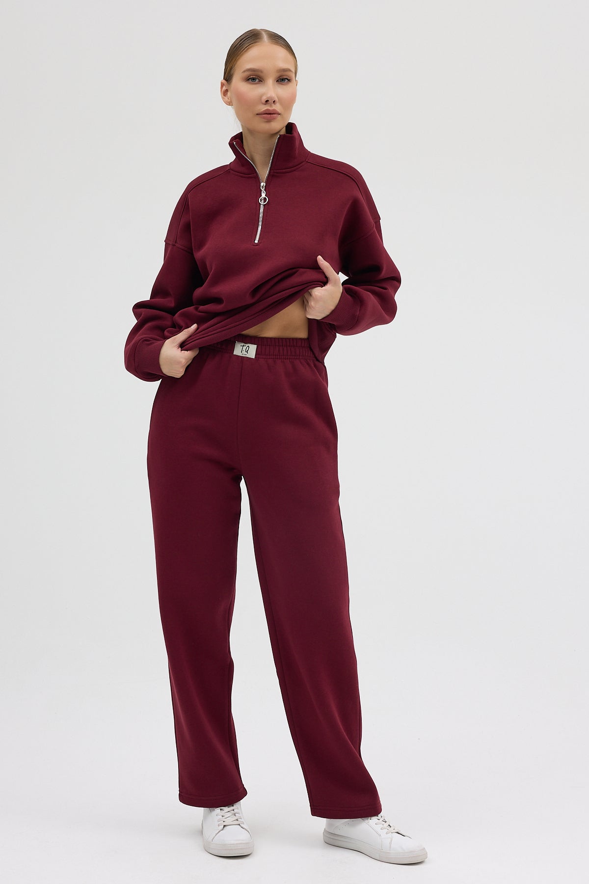 Kadın Yarım Fermuarlı Kışlık İçi Şardonlu Kalın Sweatshırt Ve Paçası Düz Füme Eşofman Takımı