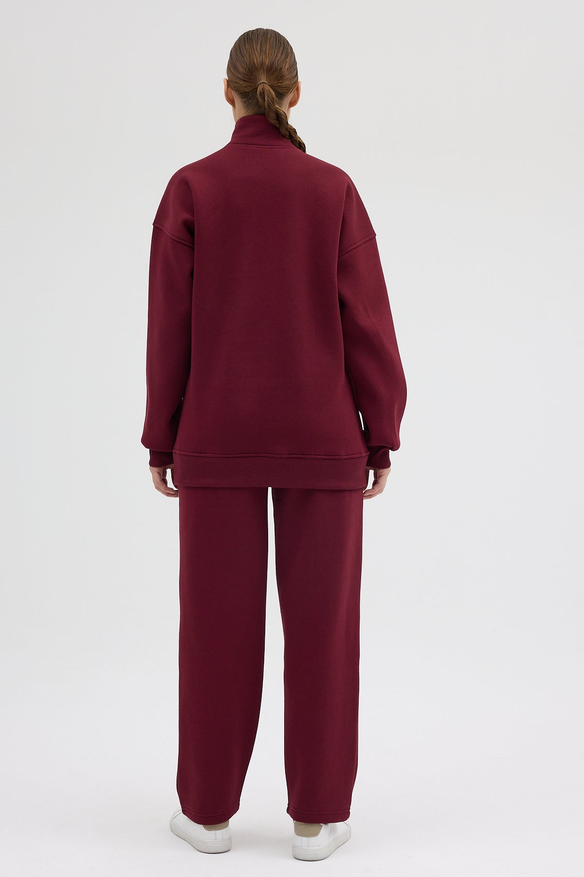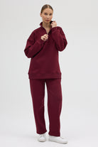 Tam kalıptır. (Kendi bedeninizi tercih edebilirsiniz.) Yarım fermuarlı yaka detayıyla spor ve şıklığı bir arada sunan kadın ikili eşofman takımı, iki iplik compact penye likralı kumaştan üretilmiştir. Yumuşak dokusu, ve şardonlu kumaşı esnek yapısı ve nefes alabilen kumaşı sayesinde gün boyu rahatlık sağlar.