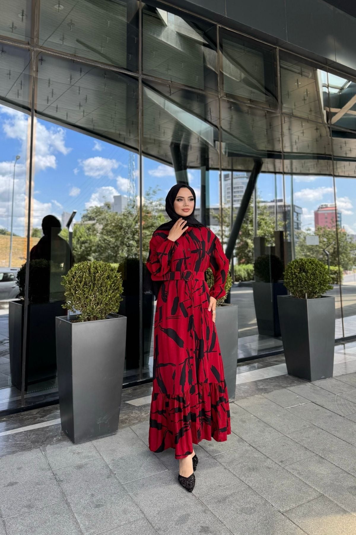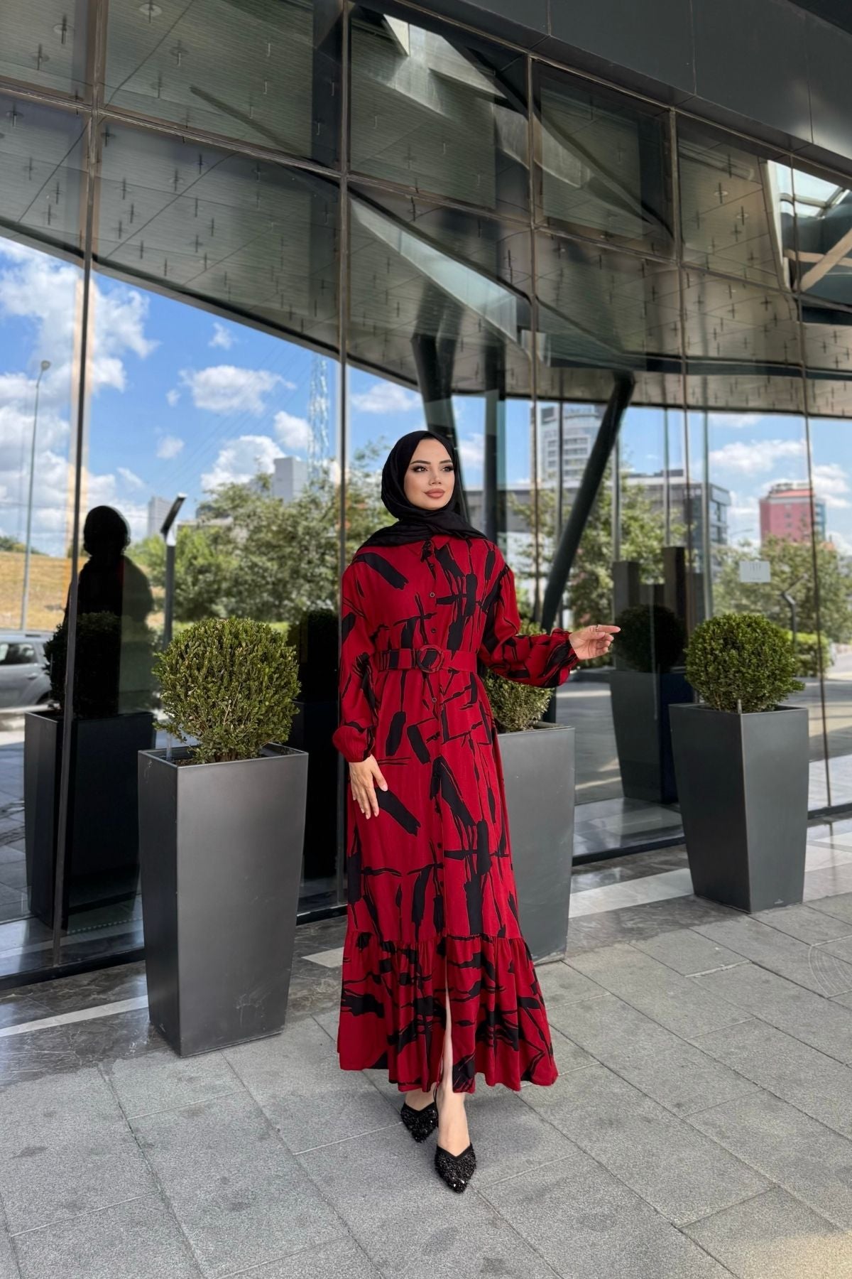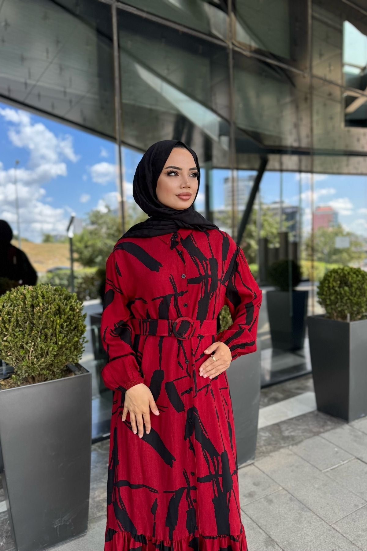 - Kırmızı ve siyah renk seçenekleriyle her gardıropta yerini alacak uzun kol, kemerli, yırtmaçlı viskon gömlek elbise.; - Pratik kullanım sunan düğmeli kapama şekli ile kolayca giyilip çıkarılabilir.; - Kapsız tasarımı sayesinde rahat hareket etme özgürlüğü sağlar.; - Astarsız yapısıyla hafif ve konforlu bir deneyim sunar.; - Type 1 yıkama talimatına uygun şekilde temizlenebilir; böylece uzun süreli kullanım için idealdir.; - Sürdürülebilirlik detayının olmadığı bu parça, günlük kullanımda pratikliği ön planda tutar.; - Genç ve dinamik tarza hitap eden modern kesimiyle dikkat çeker.; - Kemer detayı bel bölgesini vurgularken şıklığı tamamlar.; - Tekli paket içeriğiyle ihtiyacınız olan tek ürün olarak sunulur.; - Modest koleksiyonuna ait bu elbise, zamansız parçalar arasında yerini alır.; - Cepsiz tasarımında minimalist yaklaşımı benimserken fonksiyonellikten ödün vermez.; - Her mevsim tercih edilebilecek esneklikteki kalıbıyla tüm sezonlarda yanınızda olacak.; - Orta kalınlıkta dokuma kumaşı sayesinde mevsim geçişlerinde ideal konforu sağlar.; - Baskısız baskı/nakış tekniğiyle sade ama etkileyici bir görünüm kazandırır.; - Tüm yaş gruplarına hitap eden geniş kullanıcı kitlesi düşünülerek tasarlanmıştır.; - Türk menşeili olmasıyla yerel üretim avantajını da beraberinde getirir.; - Uzun boy kesimiyle zarif duruş sergilerken gömlek yakası detayı sofistike bir hava katmaktadır.; - Dokuma materyali dayanıklılığı arttırarak ürün ömrünü uzatırken aynı zamanda nefes alabilir yapıya sahiptir.; - Trend ortamlarda bile stilinizi korumanız için ideal seçimdir.; - Uzun kol tipiyle mevsimsel değişimlerde de şıklığınızdan ödün vermezsiniz.;