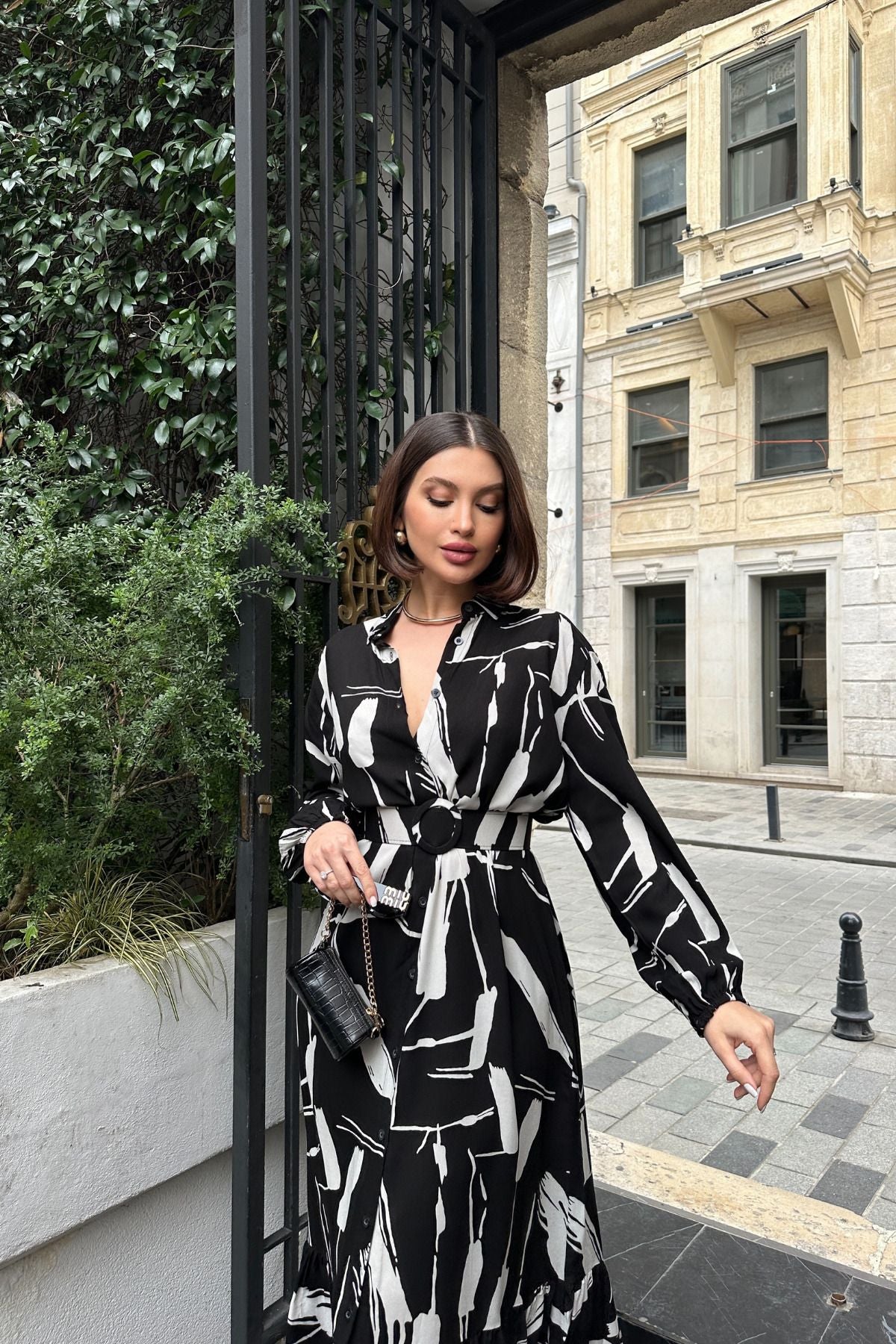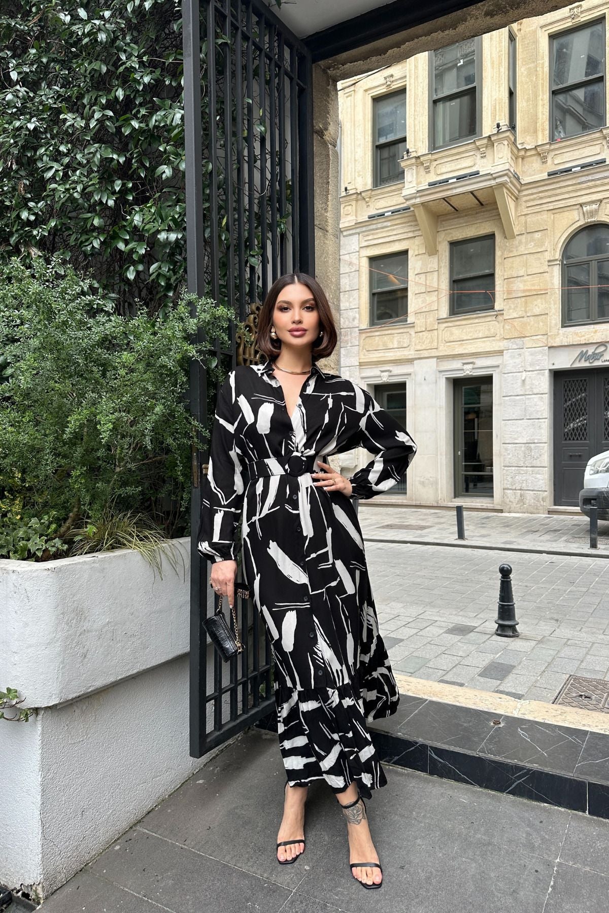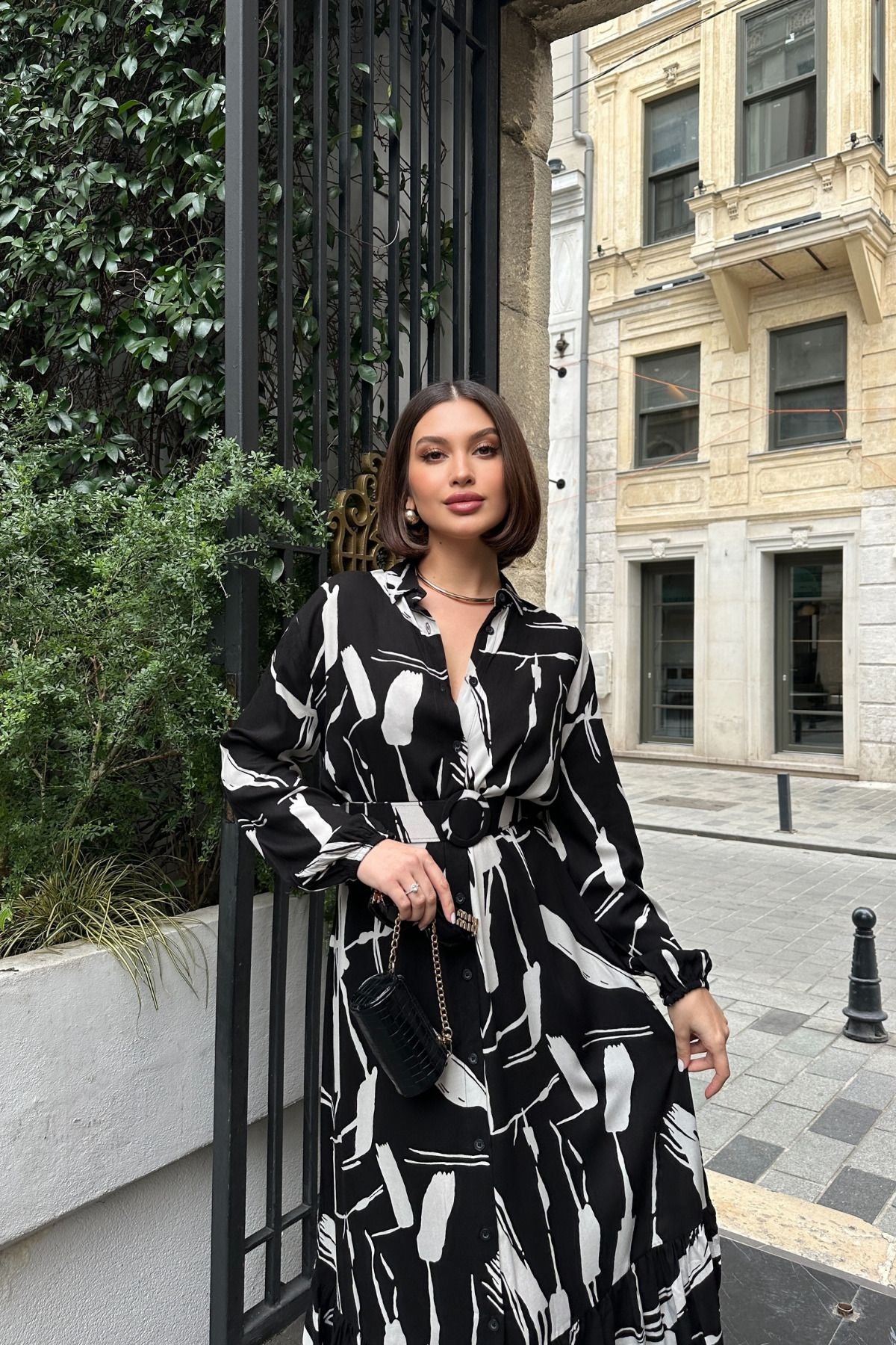 - Siyah ve Beyaz renk seçenekleriyle her gardıropta yerini alacak uzun kol, kemerli, yırtmaçlı viskon gömlek elbise.; - Pratik kullanım sunan düğmeli kapama şekli ile kolayca giyilip çıkarılabilir.; - Kapsız tasarımı sayesinde rahat hareket etme özgürlüğü sağlar.; - Astarsız yapısıyla hafif ve konforlu bir deneyim sunar.; - Type 1 yıkama talimatına uygun şekilde temizlenebilir; böylece uzun süreli kullanım için idealdir.; - Sürdürülebilirlik detayının olmadığı bu parça, günlük kullanımda pratikliği ön planda tutar.; - Genç ve dinamik tarza hitap eden modern kesimiyle dikkat çeker.; - Kemer detayı bel bölgesini vurgularken şıklığı tamamlar.; - Tekli paket içeriğiyle ihtiyacınız olan tek ürün olarak sunulur.; - Modest koleksiyonuna ait bu elbise, zamansız parçalar arasında yerini alır.; - Cepsiz tasarımında minimalist yaklaşımı benimserken fonksiyonellikten ödün vermez.; - Her mevsim tercih edilebilecek esneklikteki kalıbıyla tüm sezonlarda yanınızda olacak.; - Orta kalınlıkta dokuma kumaşı sayesinde mevsim geçişlerinde ideal konforu sağlar.; - Baskısız baskı/nakış tekniğiyle sade ama etkileyici bir görünüm kazandırır.; - Tüm yaş gruplarına hitap eden geniş kullanıcı kitlesi düşünülerek tasarlanmıştır.; - Türk menşeili olmasıyla yerel üretim avantajını da beraberinde getirir.; - Uzun boy kesimiyle zarif duruş sergilerken gömlek yakası detayı sofistike bir hava katmaktadır.; - Dokuma materyali dayanıklılığı arttırarak ürün ömrünü uzatırken aynı zamanda nefes alabilir yapıya sahiptir.; - Trend ortamlarda bile stilinizi korumanız için ideal seçimdir.; - Uzun kol tipiyle mevsimsel değişimlerde de şıklığınızdan ödün vermezsiniz.;