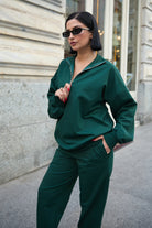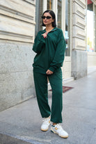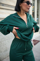 Kadın Yarım Fermuarlı Sweatshırt Ve Paçası Lastikli Yeşil Eşofman Takımı