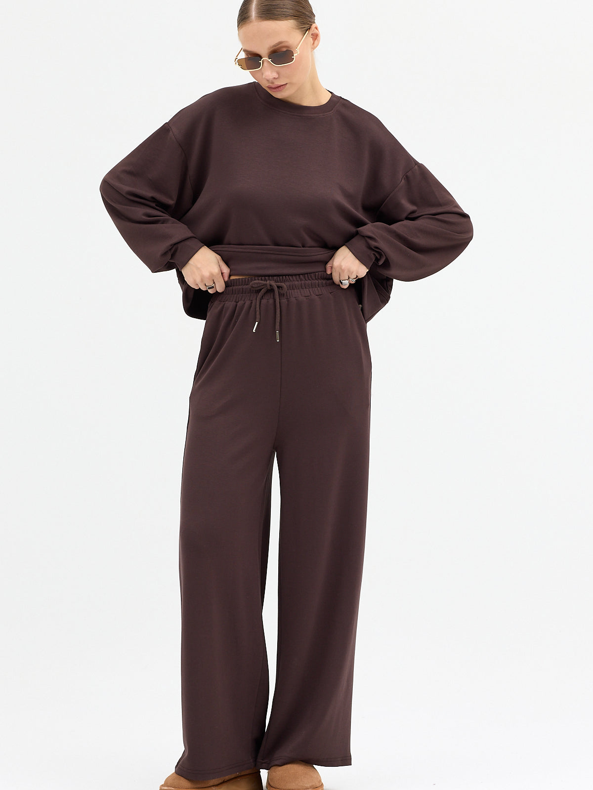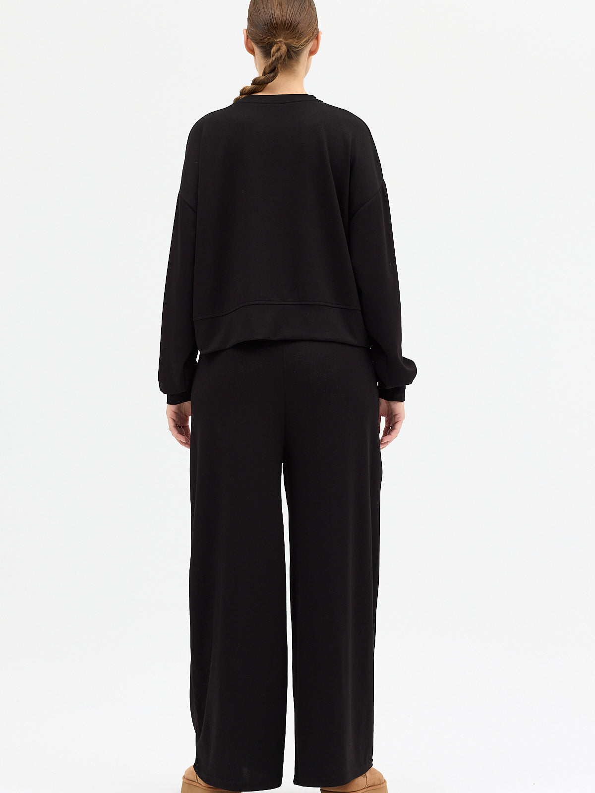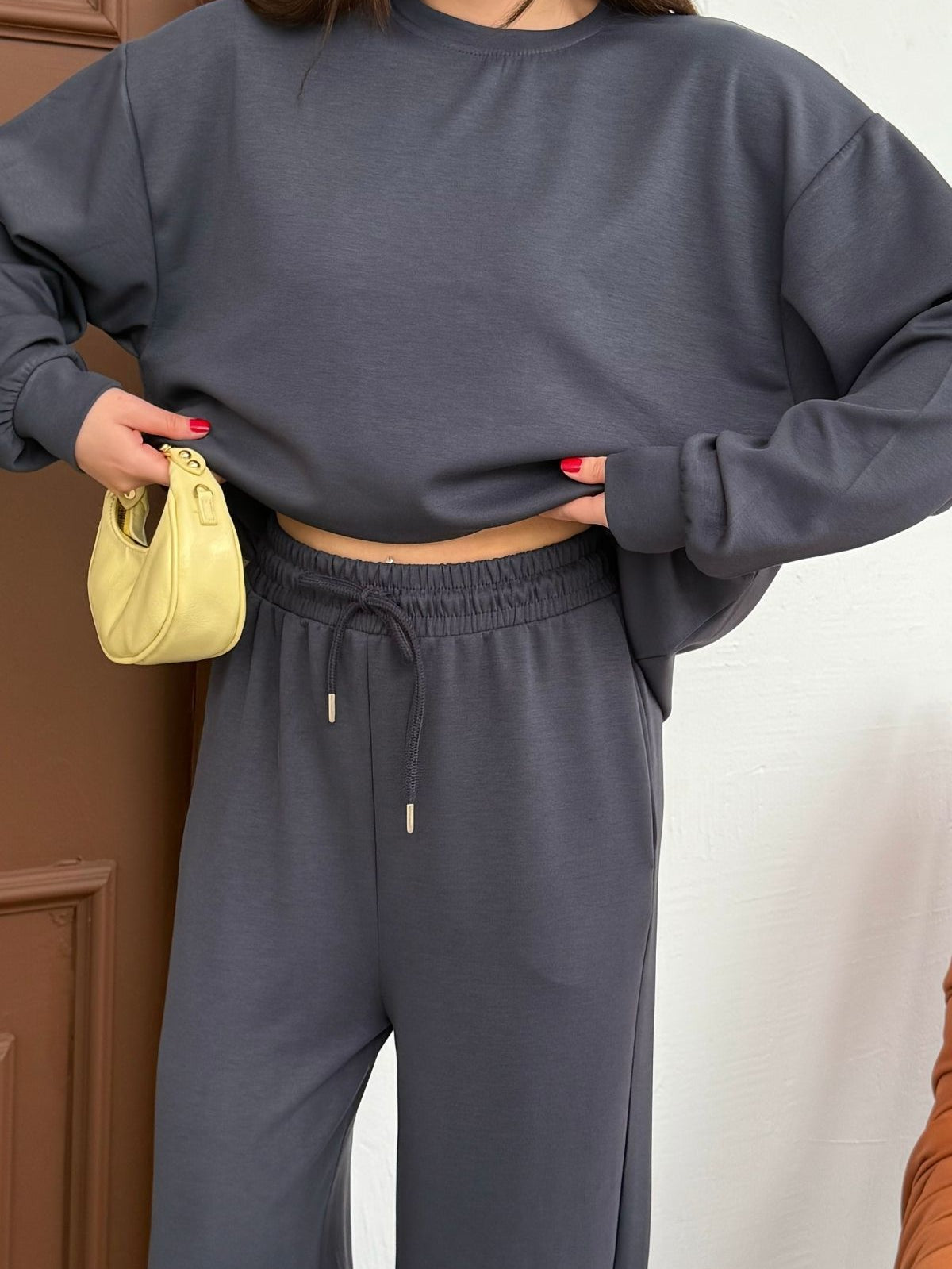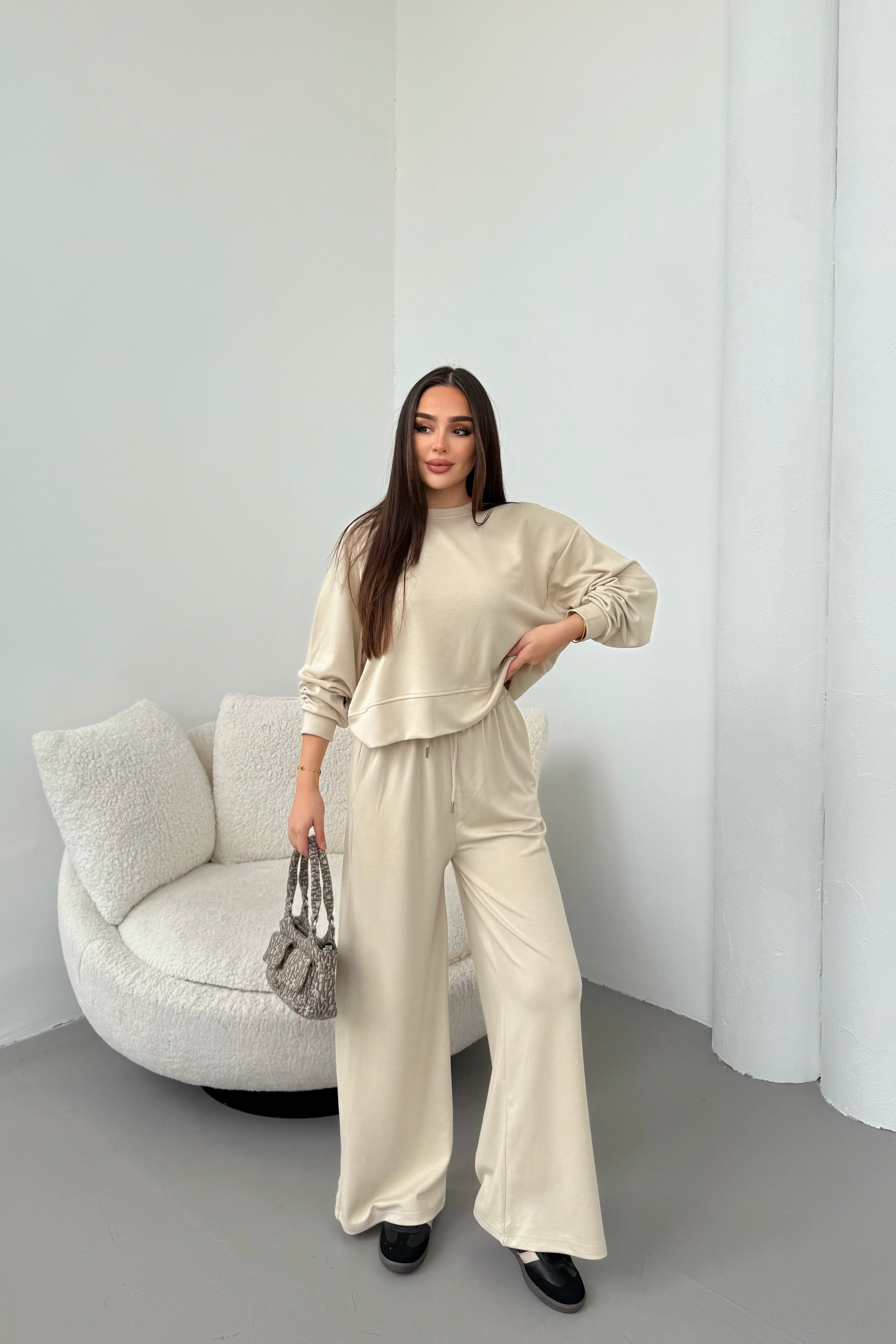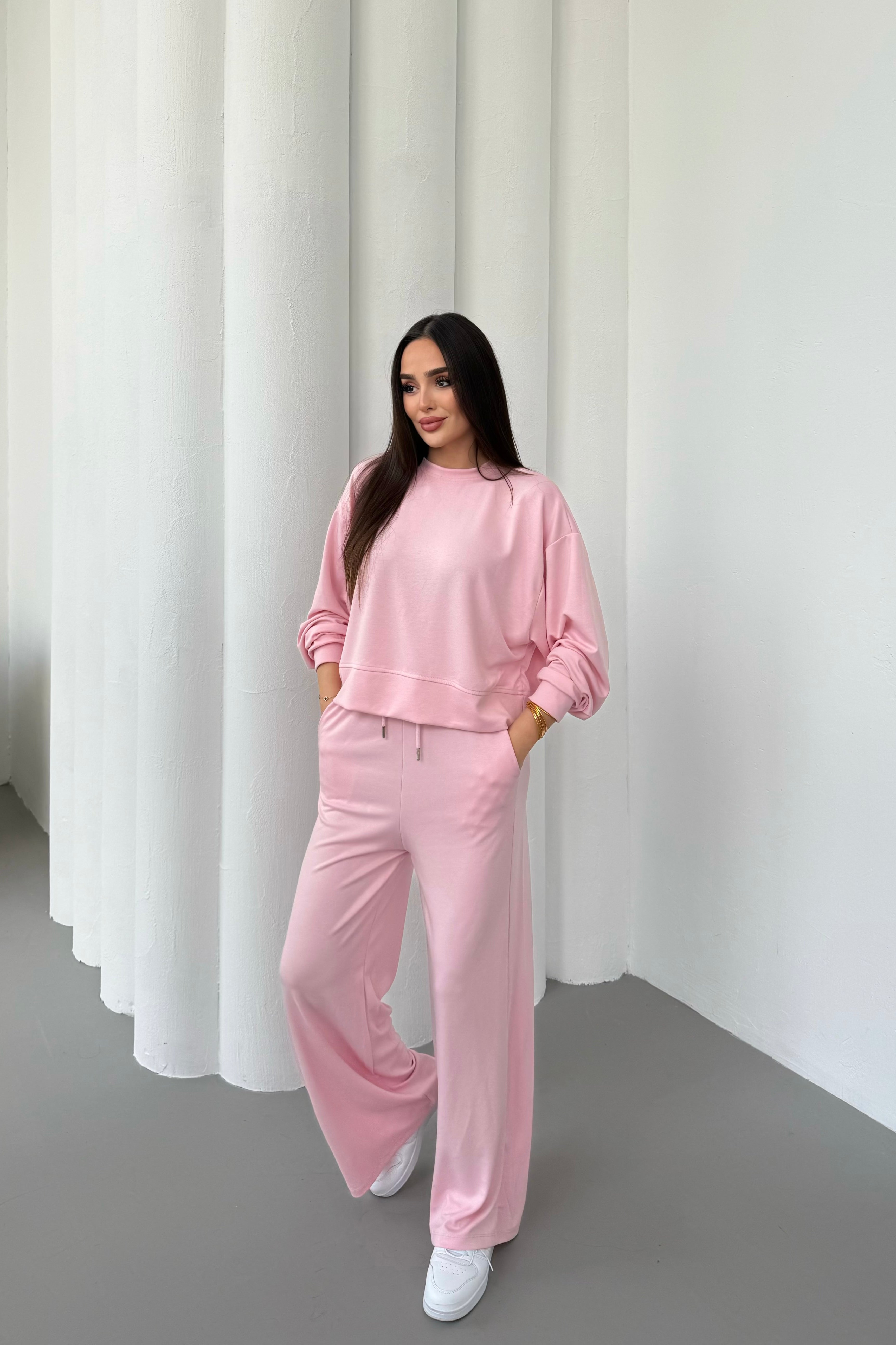 Basic Yumuşak Premium Kumaş Uzun Beli Lastikli Bol Paça Modal Alt-Üst Takım