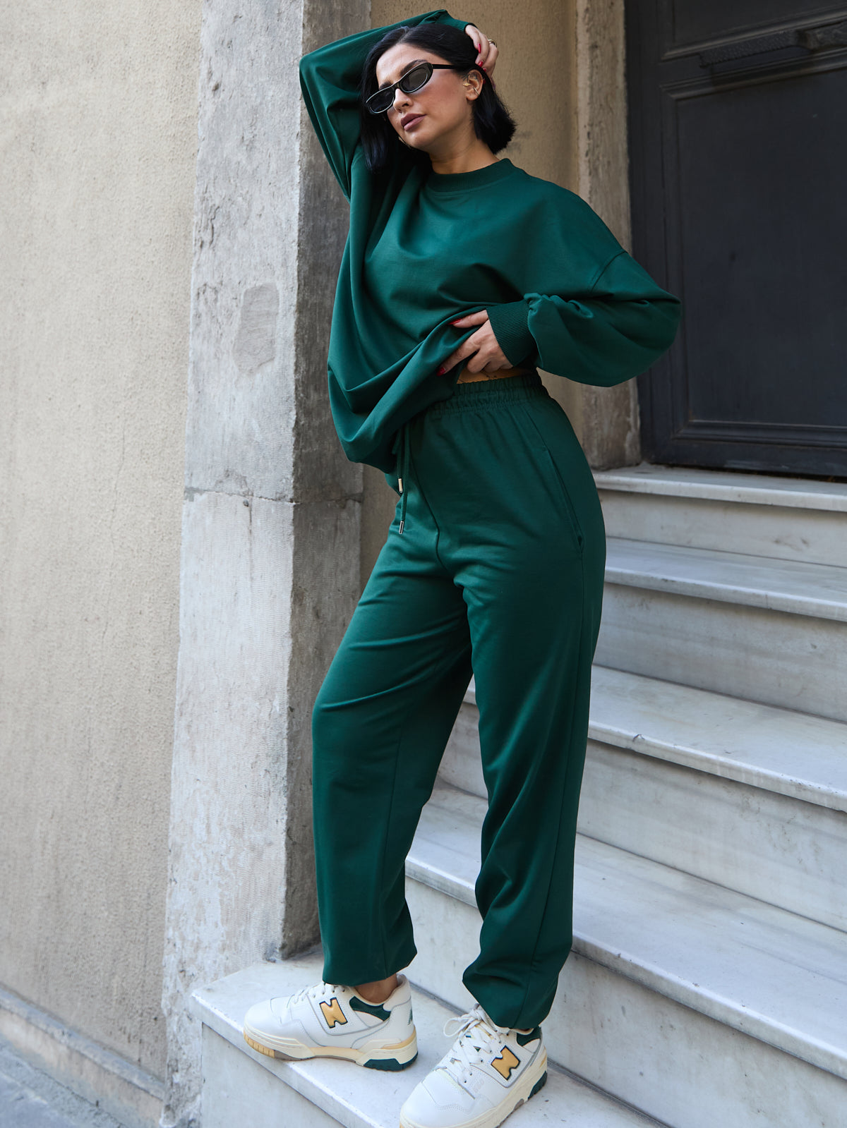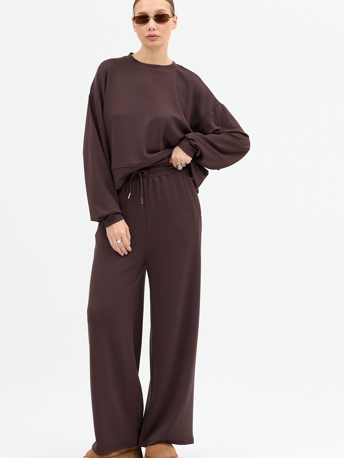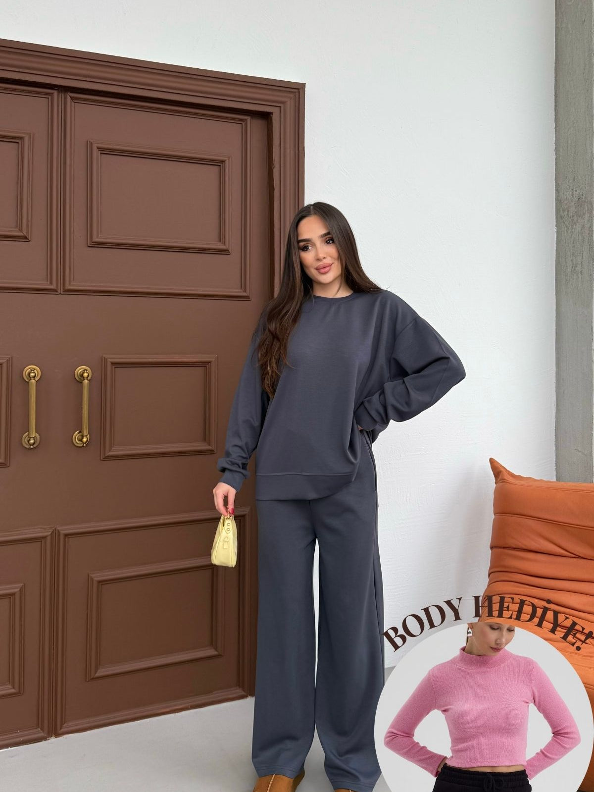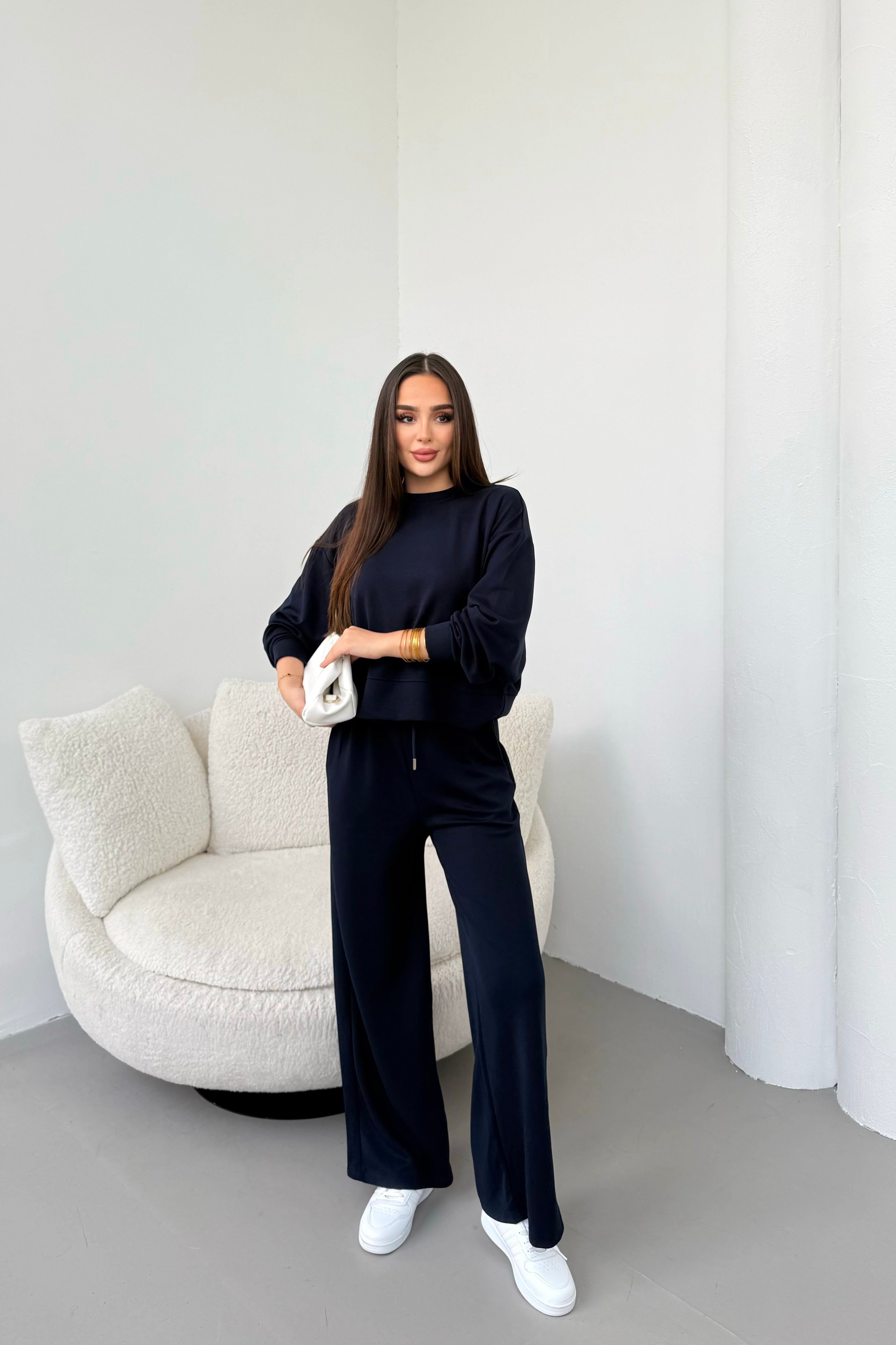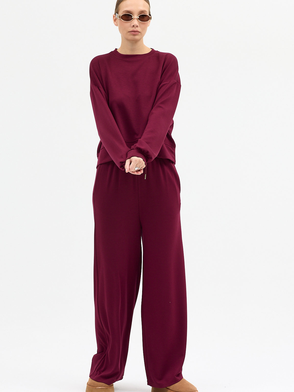 Basic Yumuşak Premium Kumaş Uzun Beli Lastikli Bol Paça Modal Alt-Üst Takım
