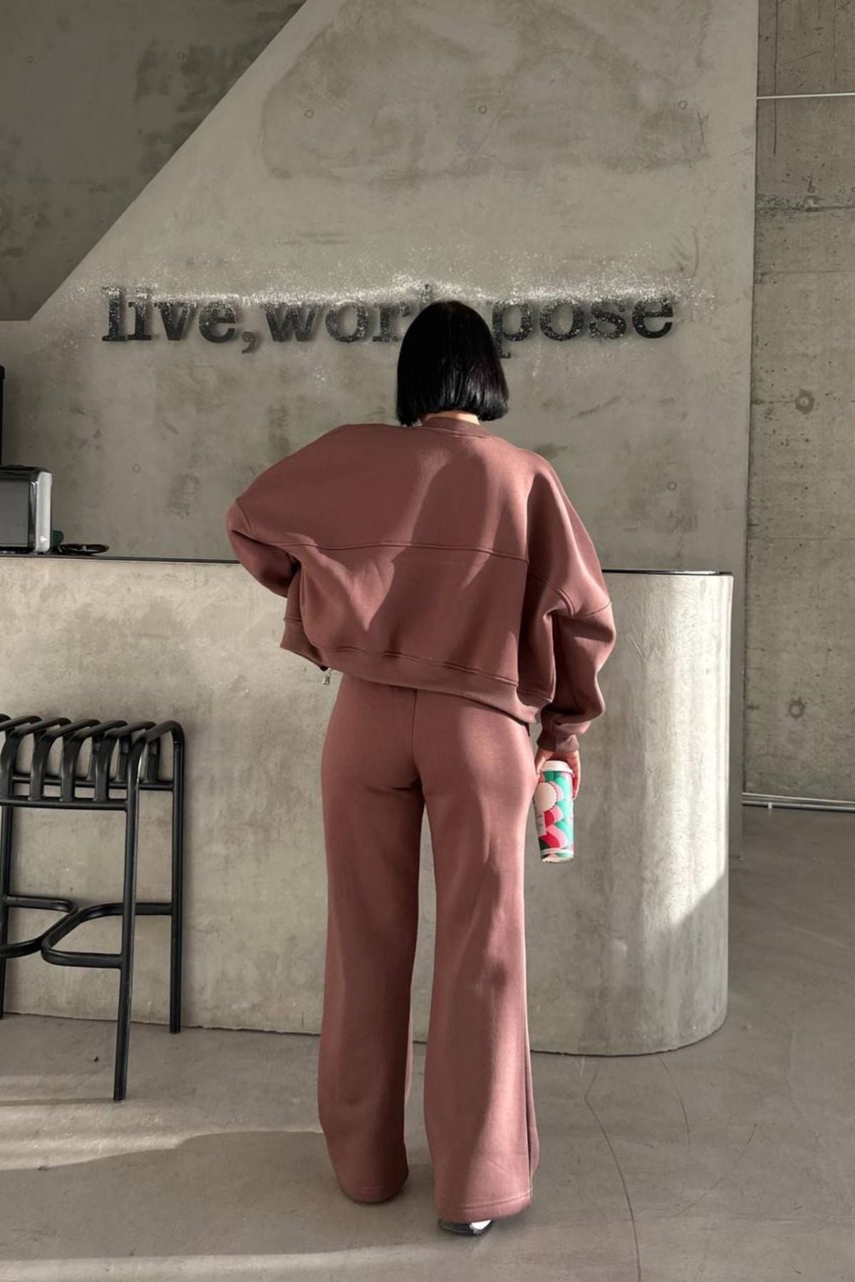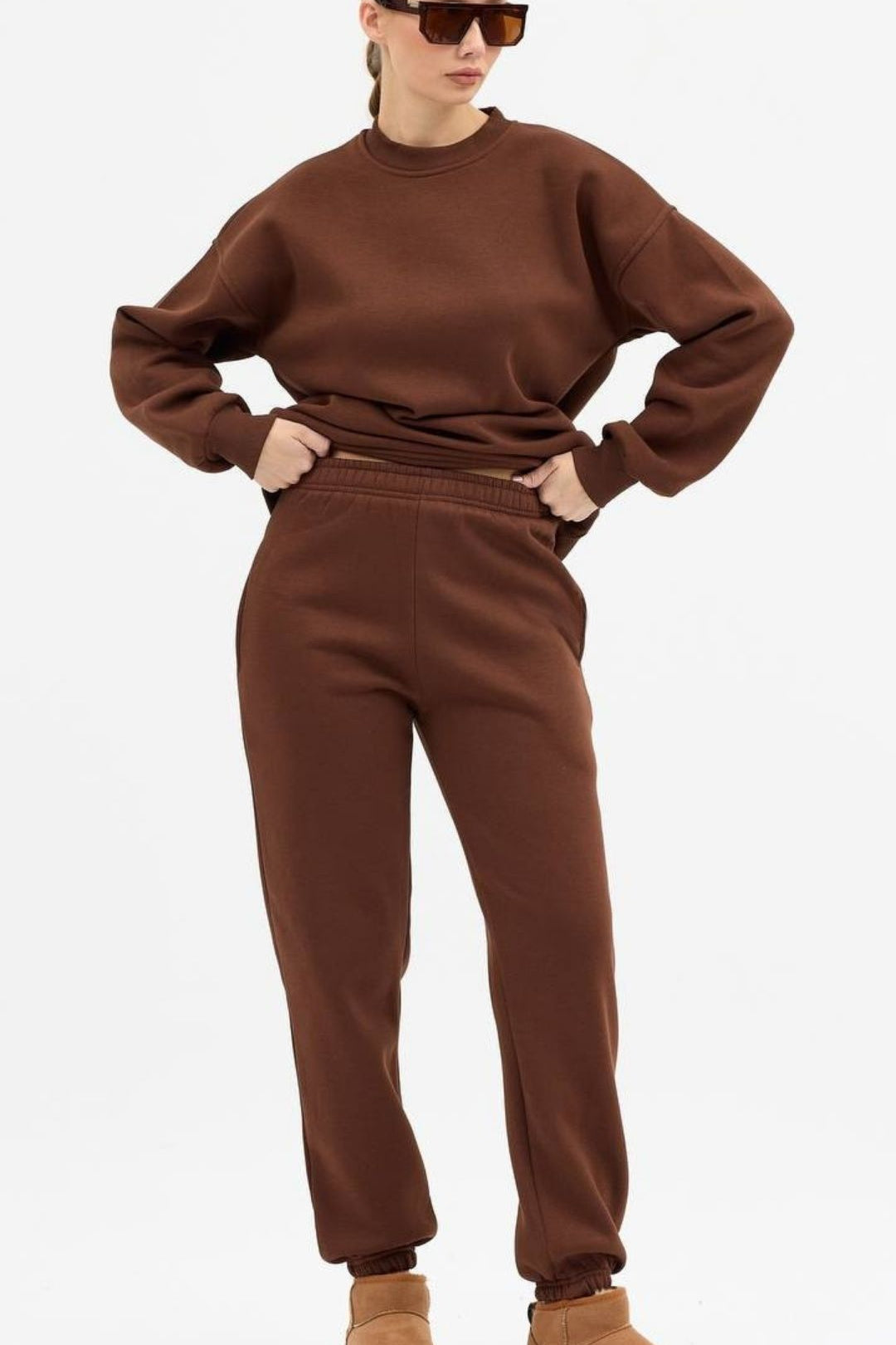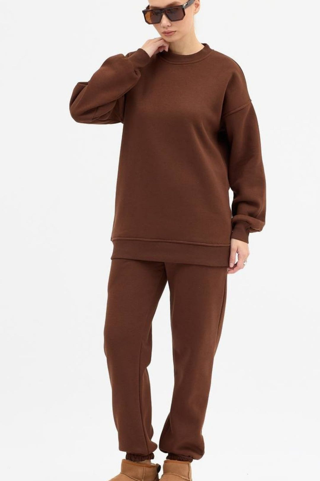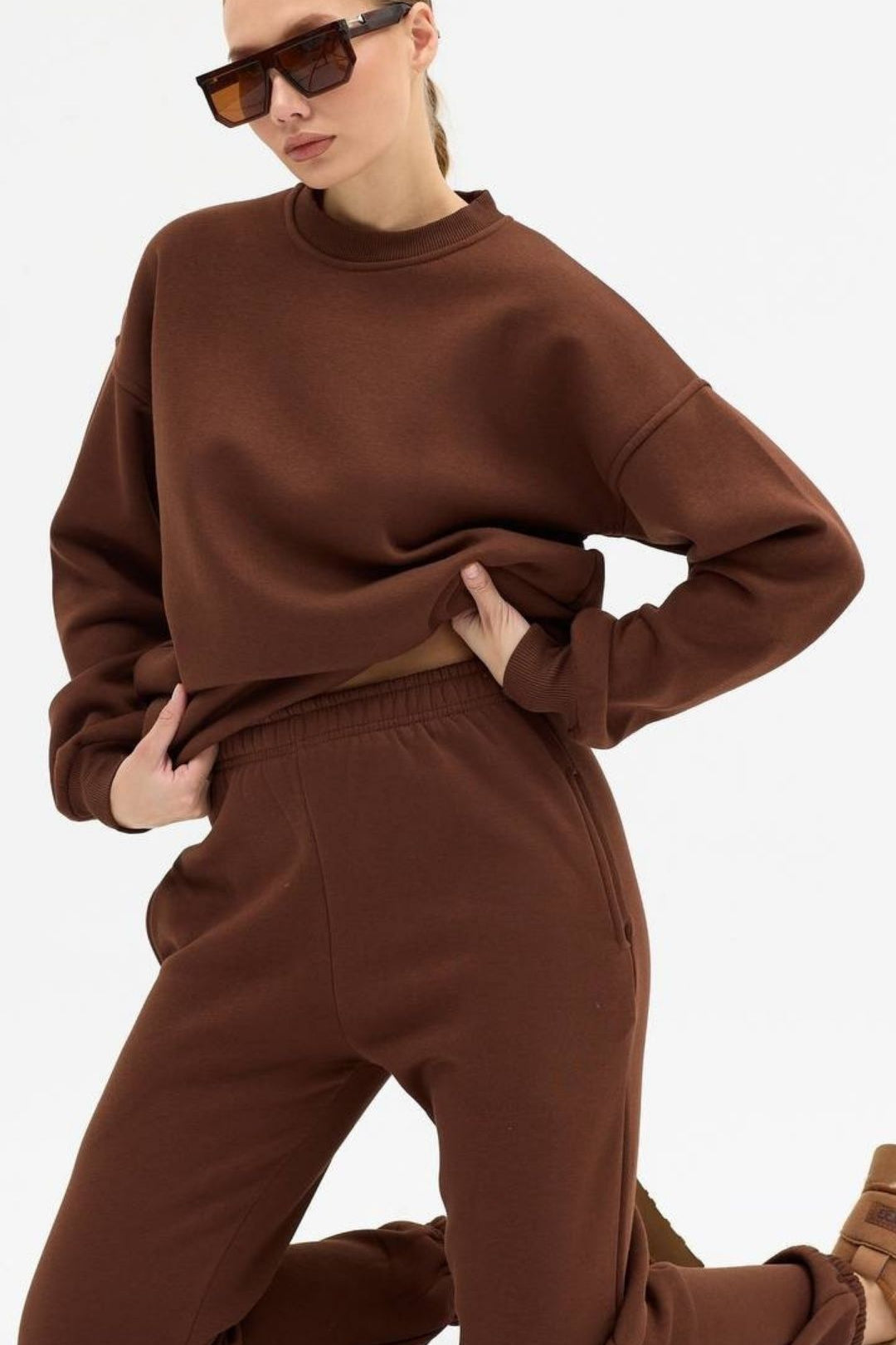 Regular Fit Normal Kalıp Basic Düz İçi Kalın Polarlı Kahverengi Eşofman Takımı