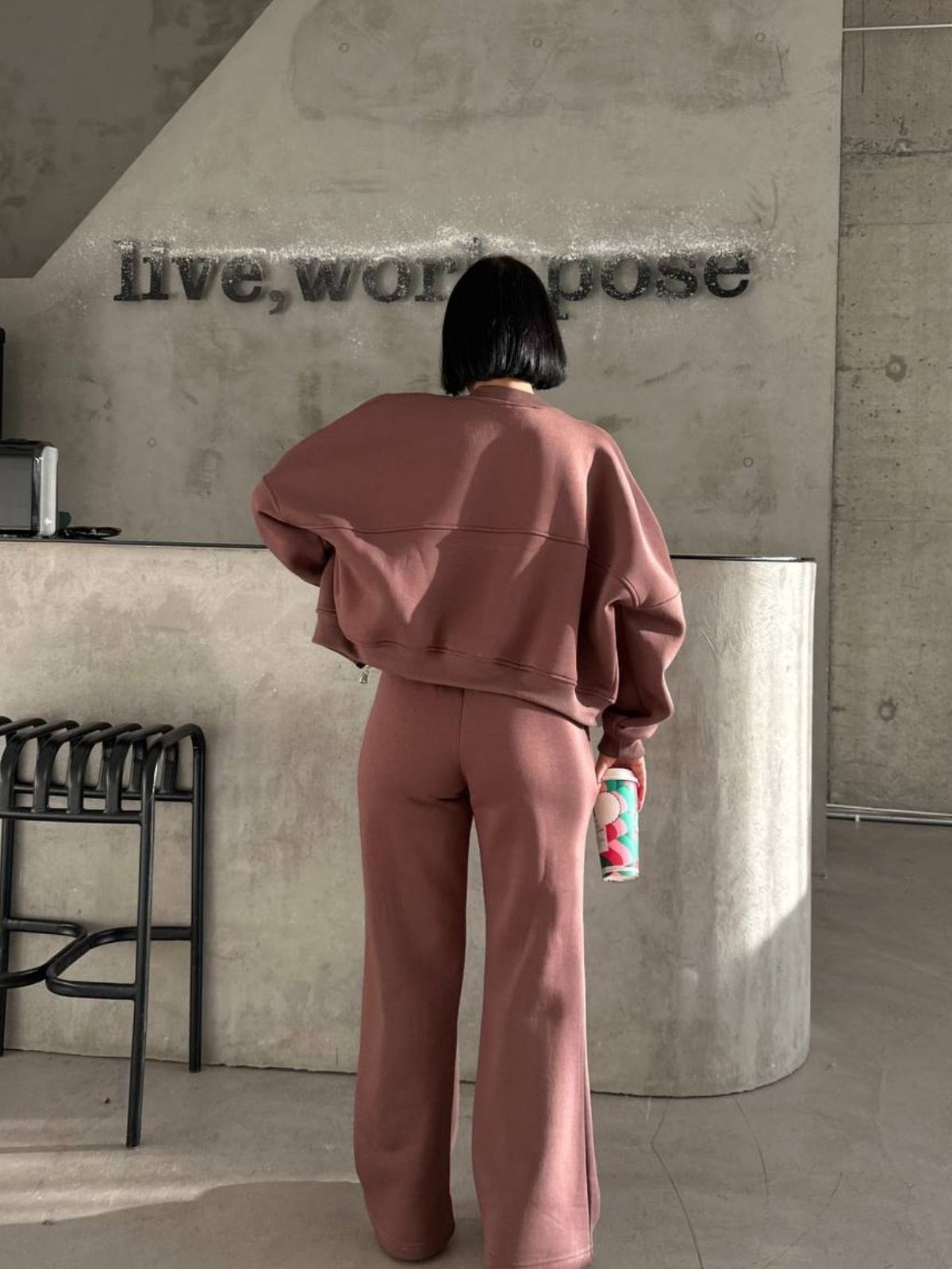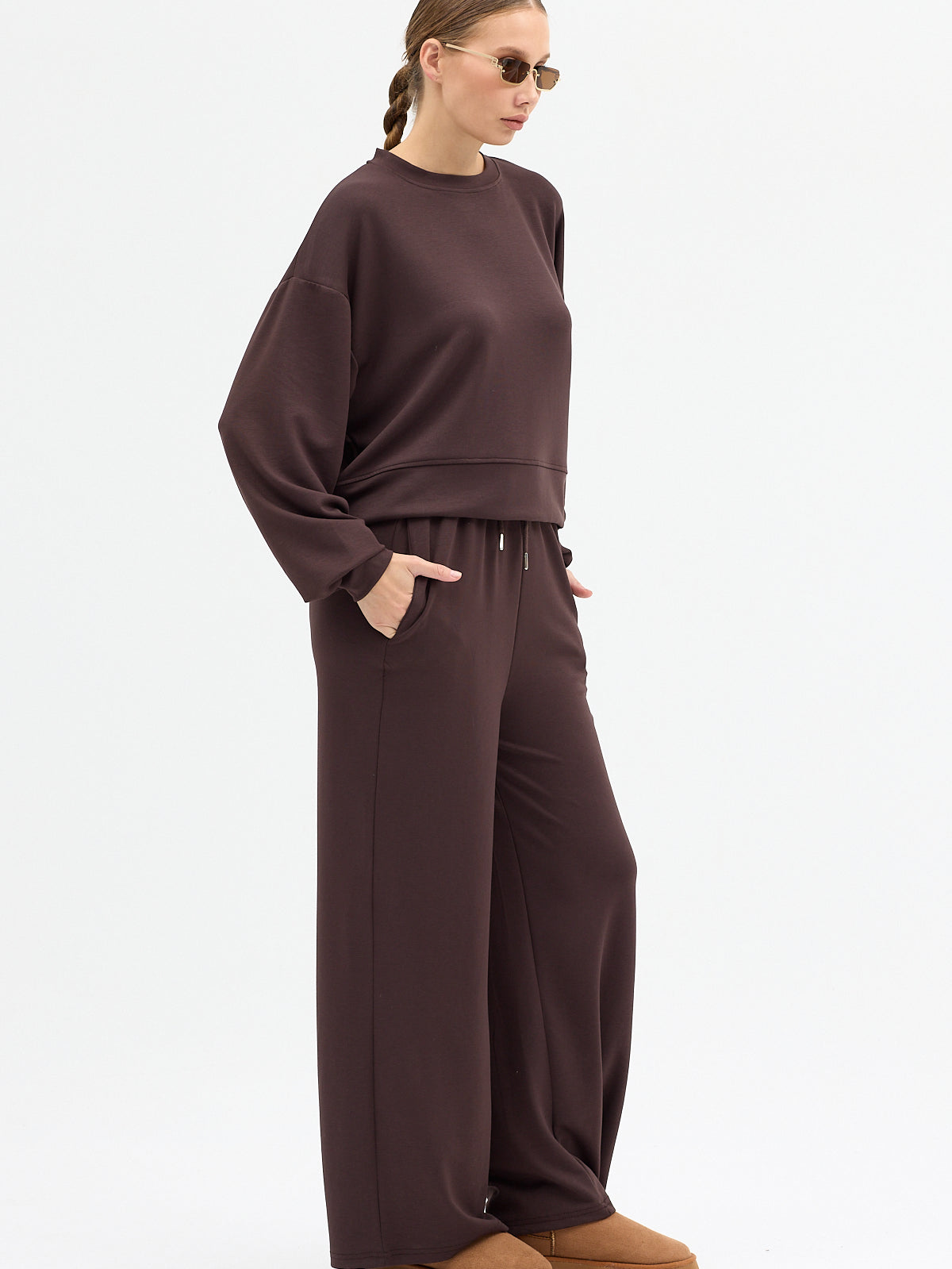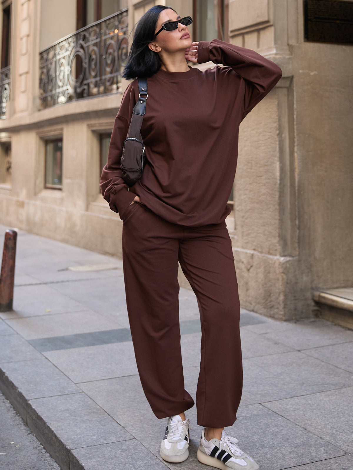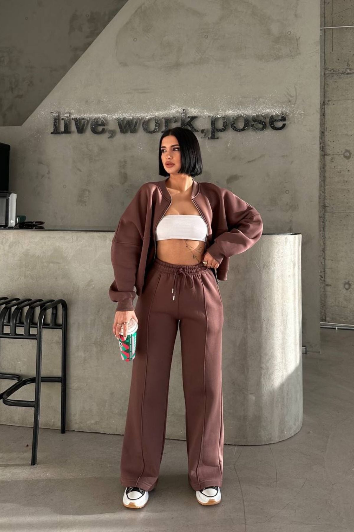 Regular Fit Normal Kalıp Basic Düz İçi Kalın Polarlı Kahverengi Eşofman Takımı