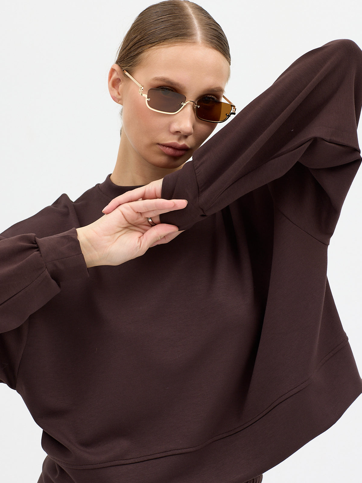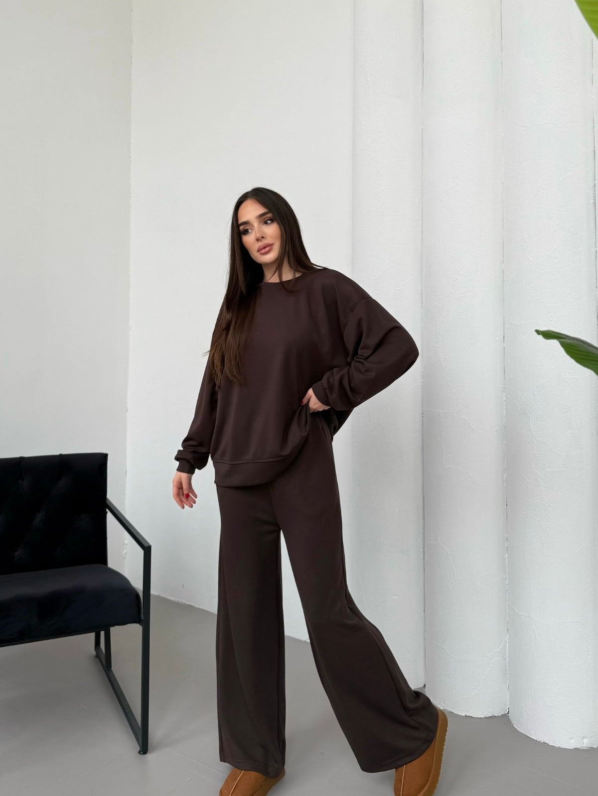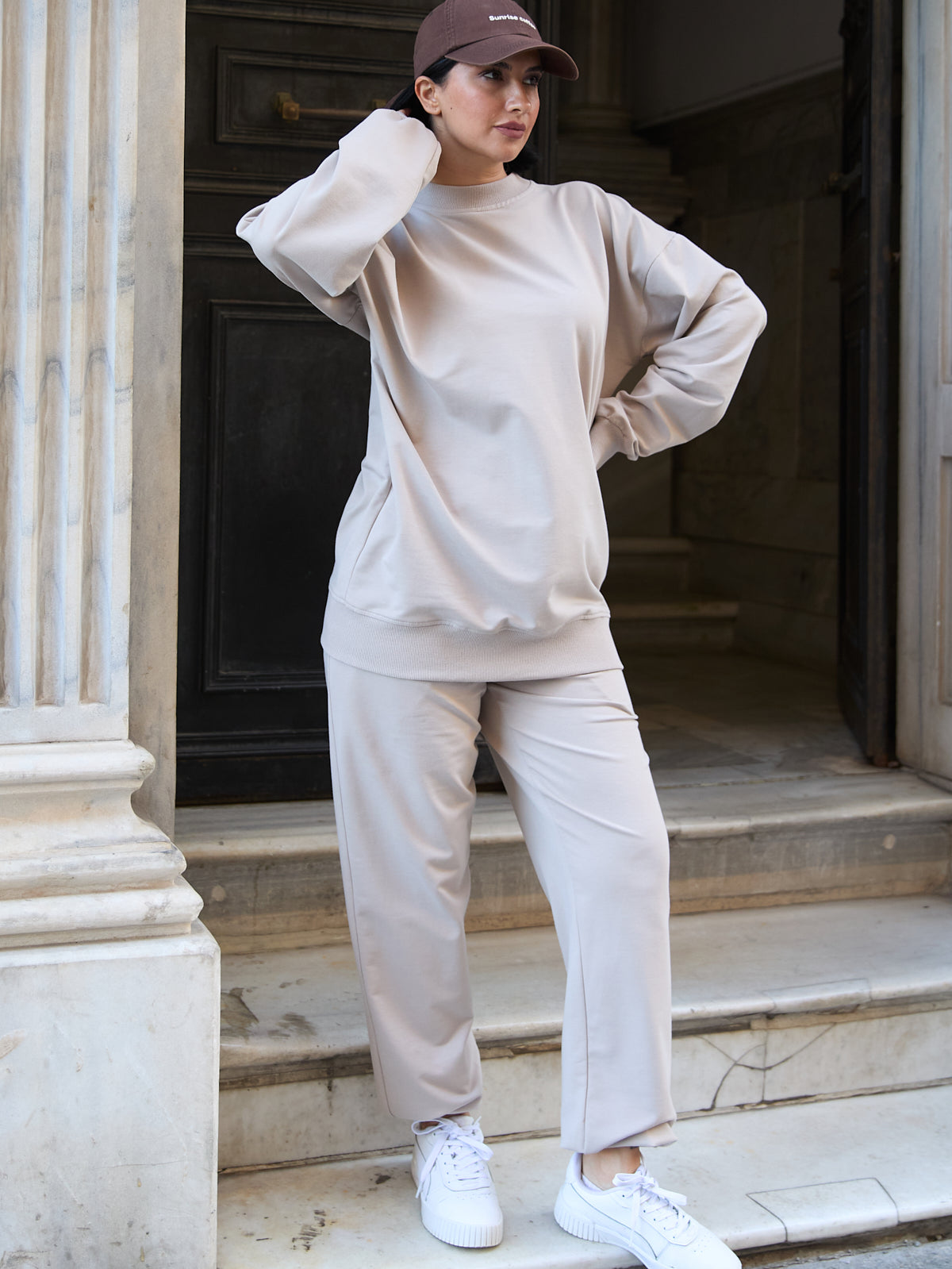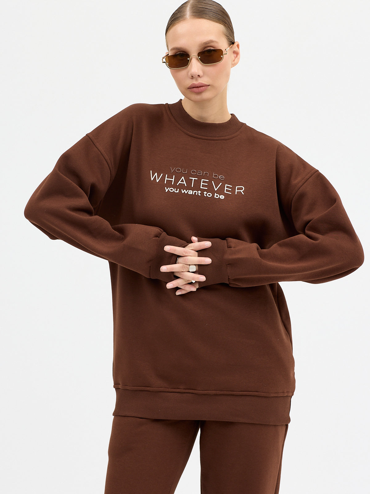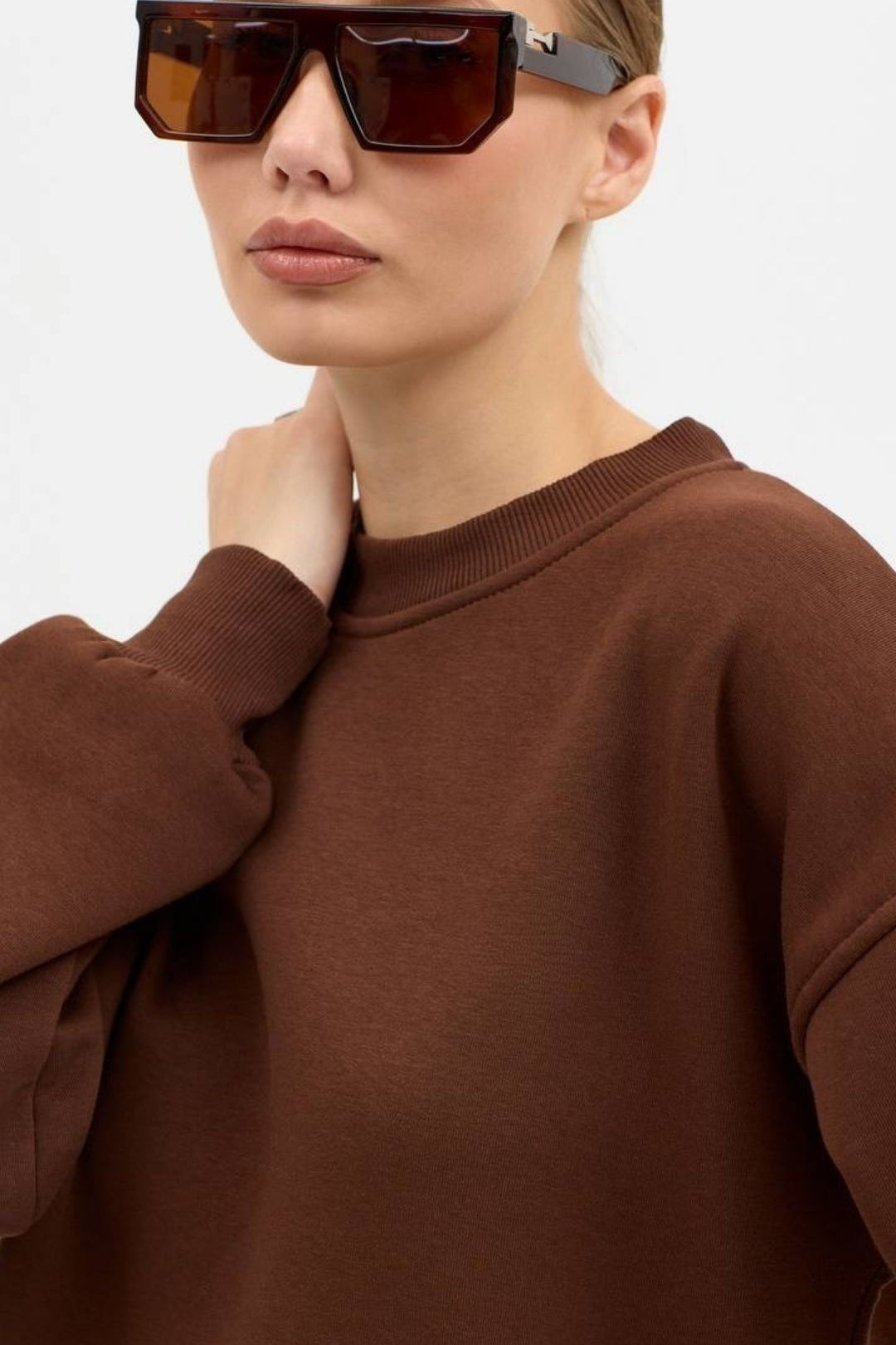 Kadın Oversize Kapüşonlu Kahverengi Eşofman Takımı Kışlık Içi Pamuklu